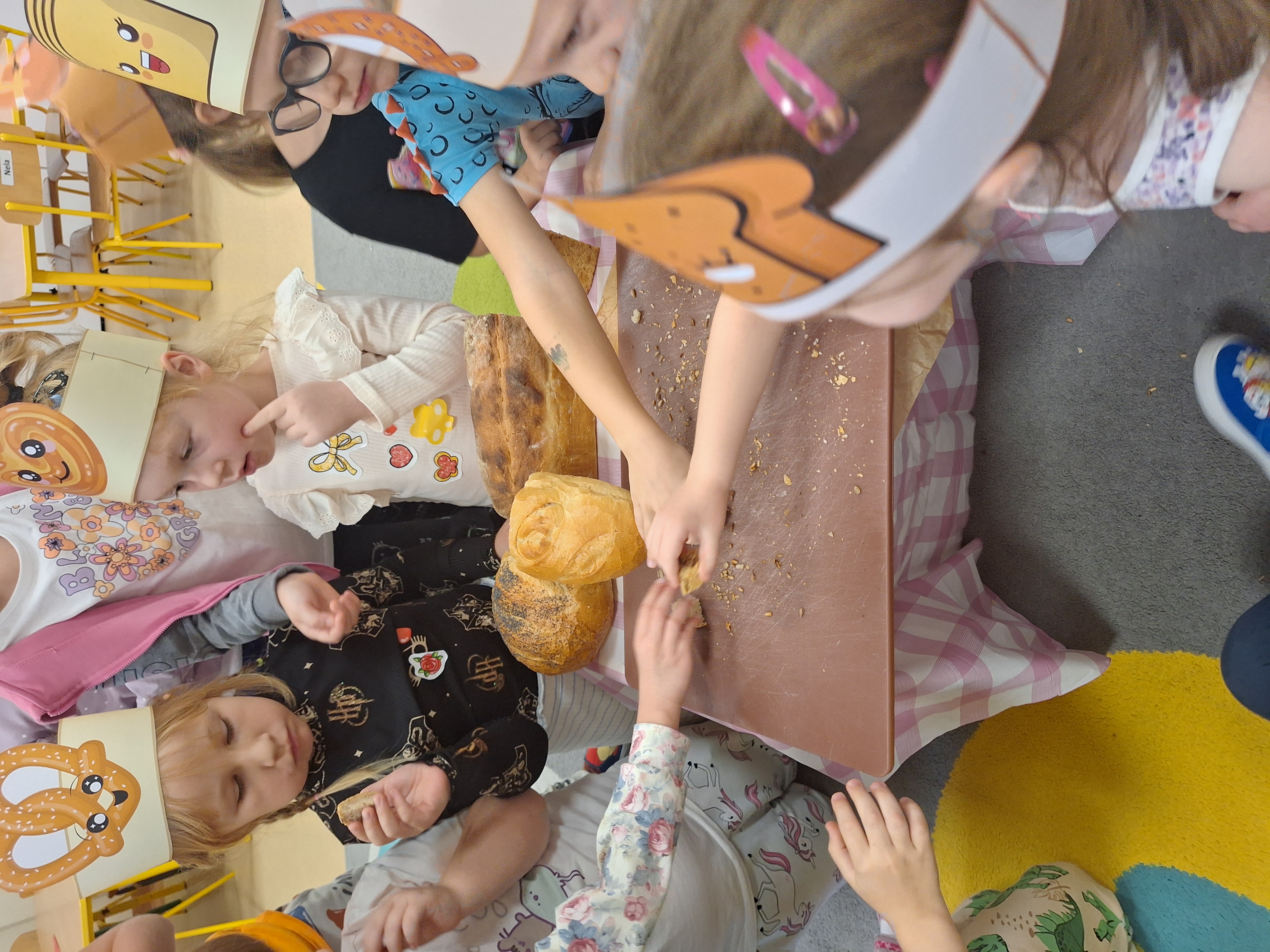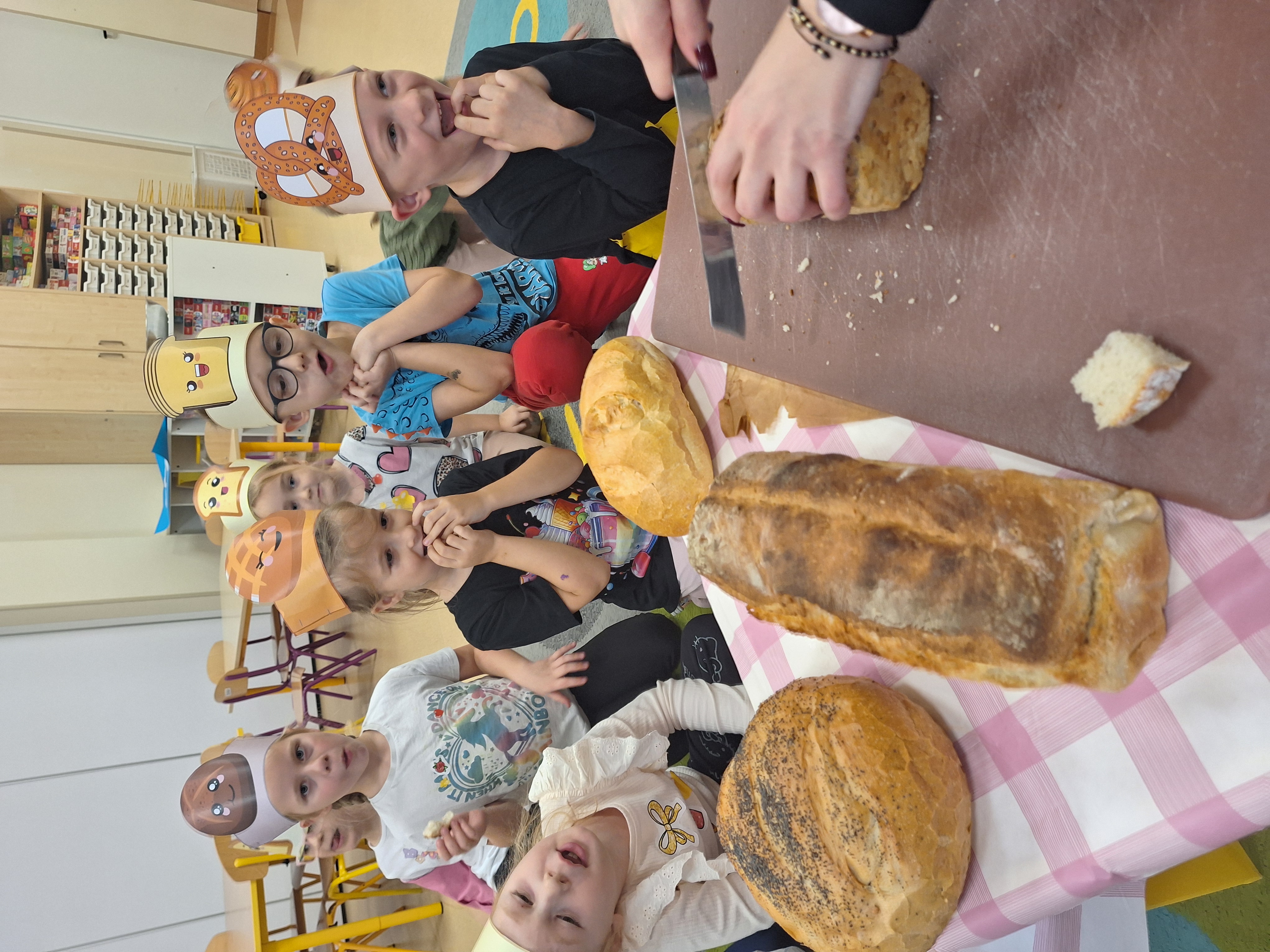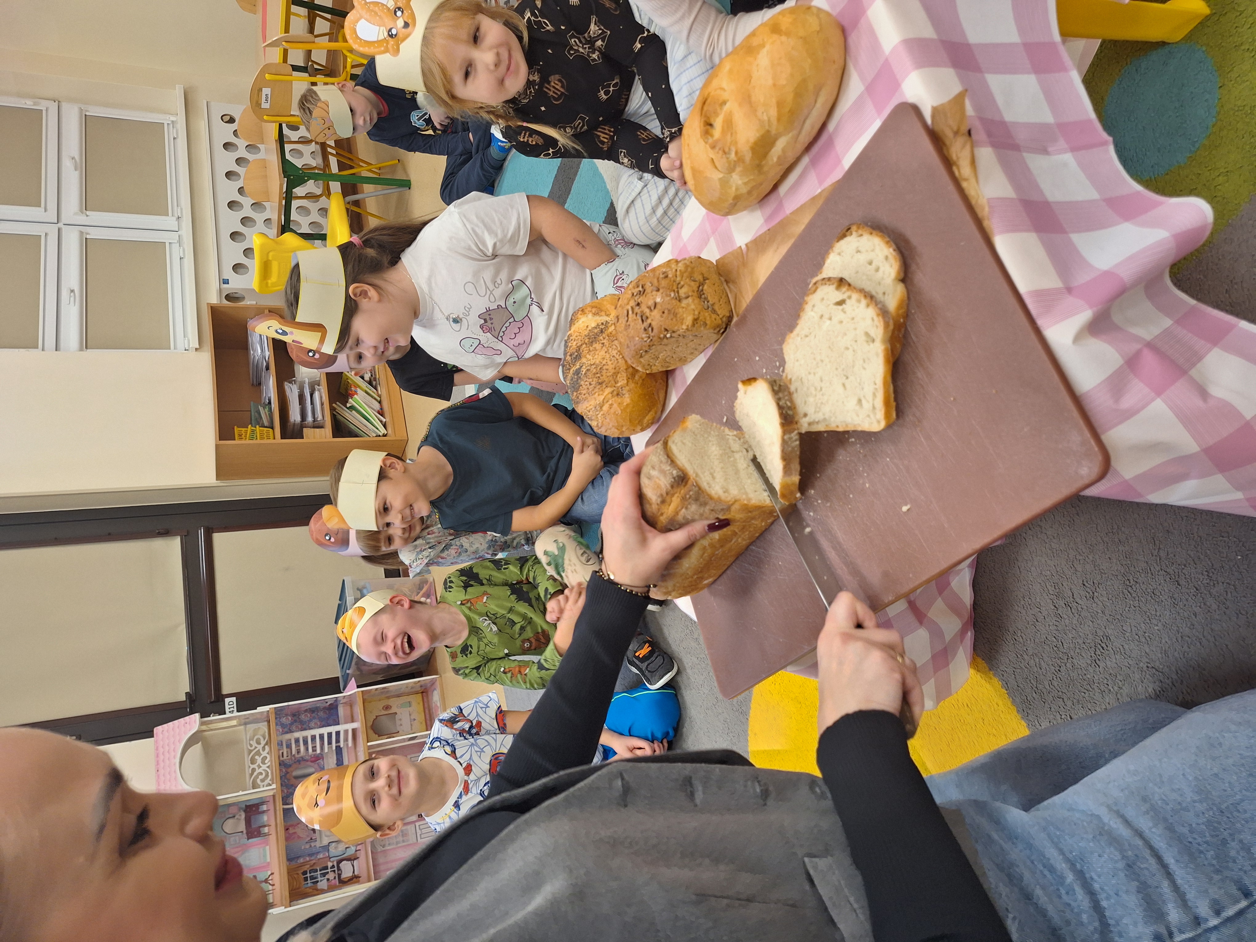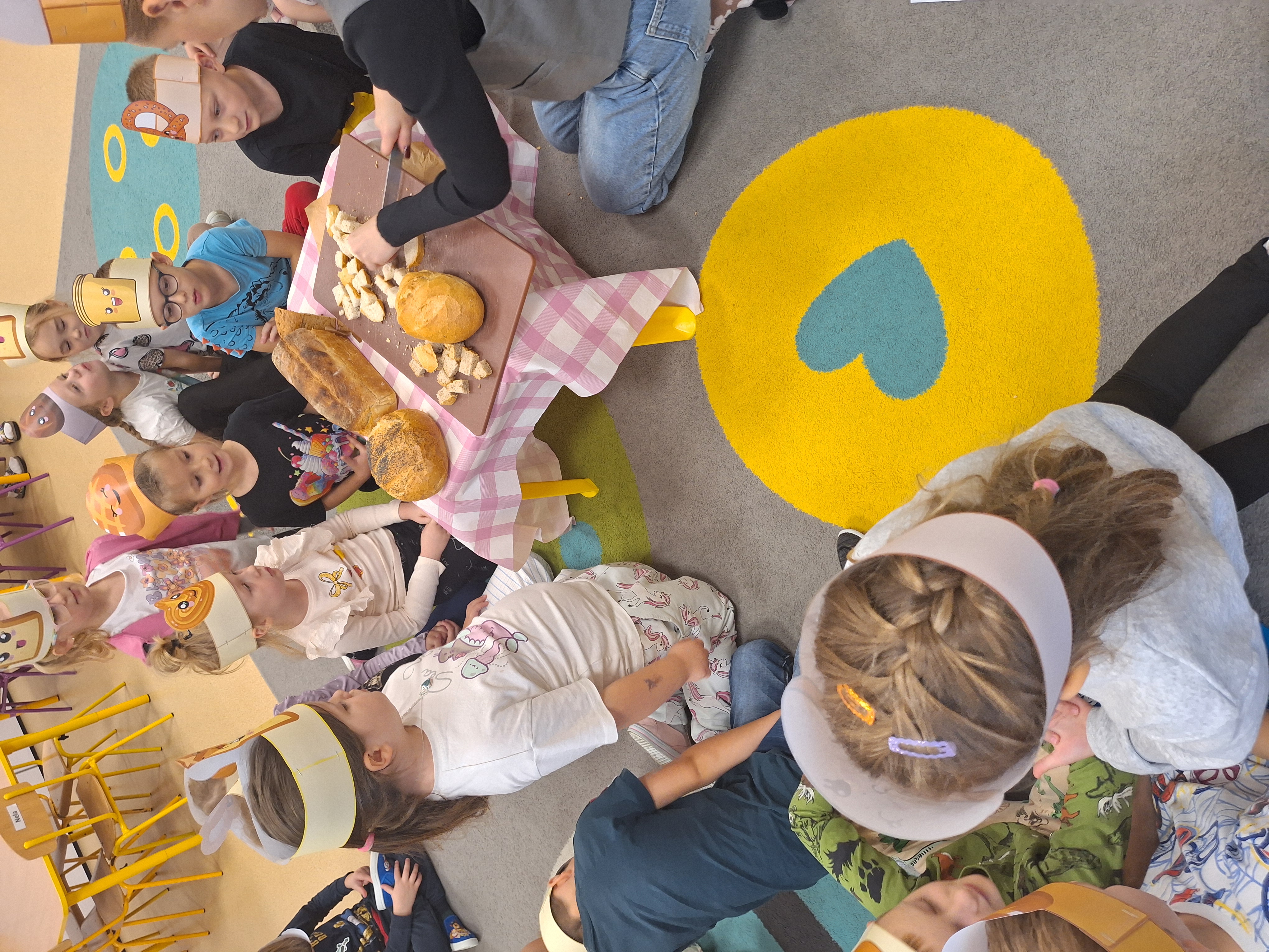 Dziś w naszym przedszkolu obchodziliśmy Dzień Chleba. Dzieci dowiedziały się, jak powstaje mąka i chleb, oraz kim jest i czym zajmuje się piekarz. Przedszkolaki mogły zobaczyć, jak wygląda proces pieczenia chleba, a także lepiły z masy solnej różne rodzaje pieczywa – bułeczki, rogaliki i chleby. Na zakończenie dzieci degustowały różne gatunki chleba: pszenne, żytnie i razowe. To był bardzo ciekawy, twórczy i smaczny dzień!