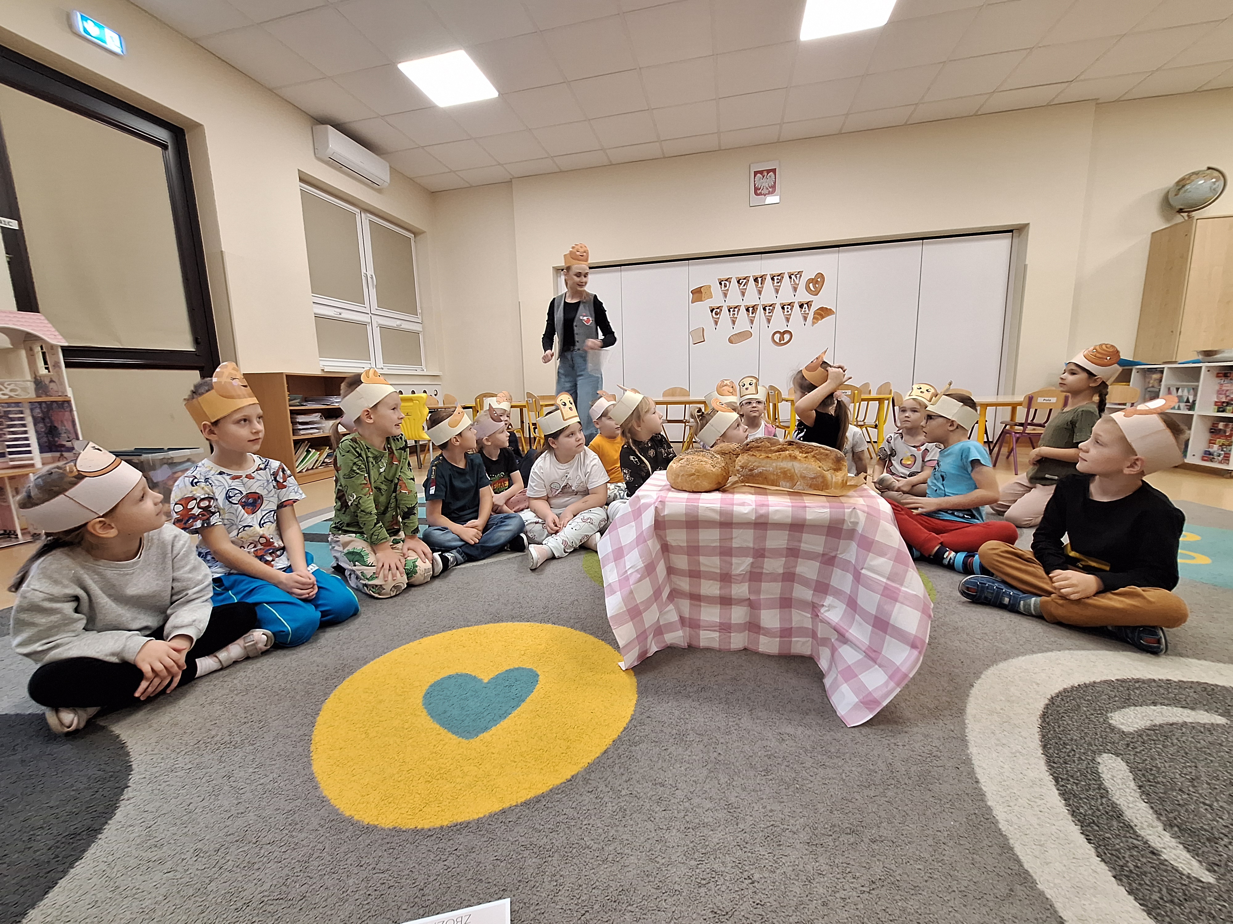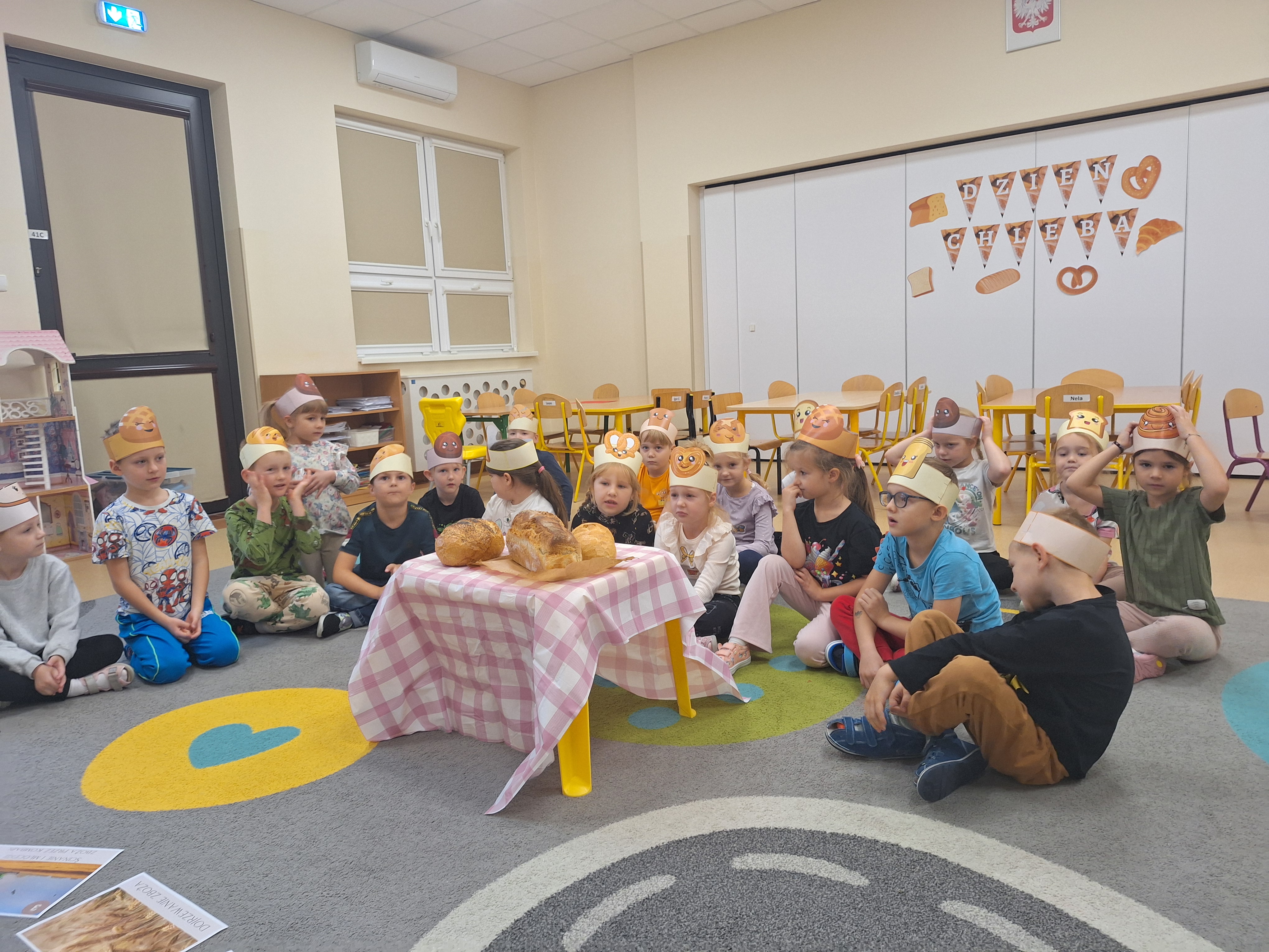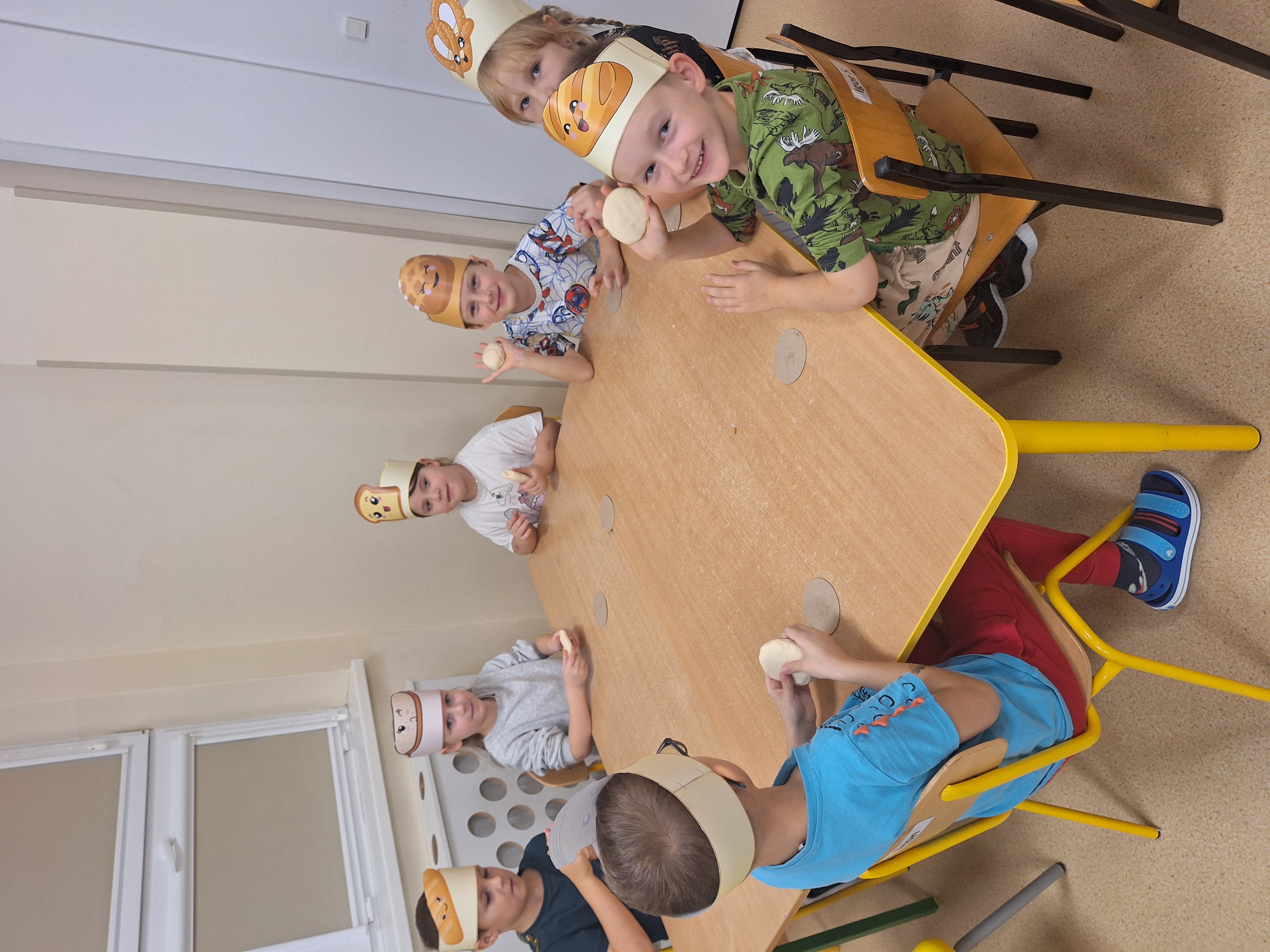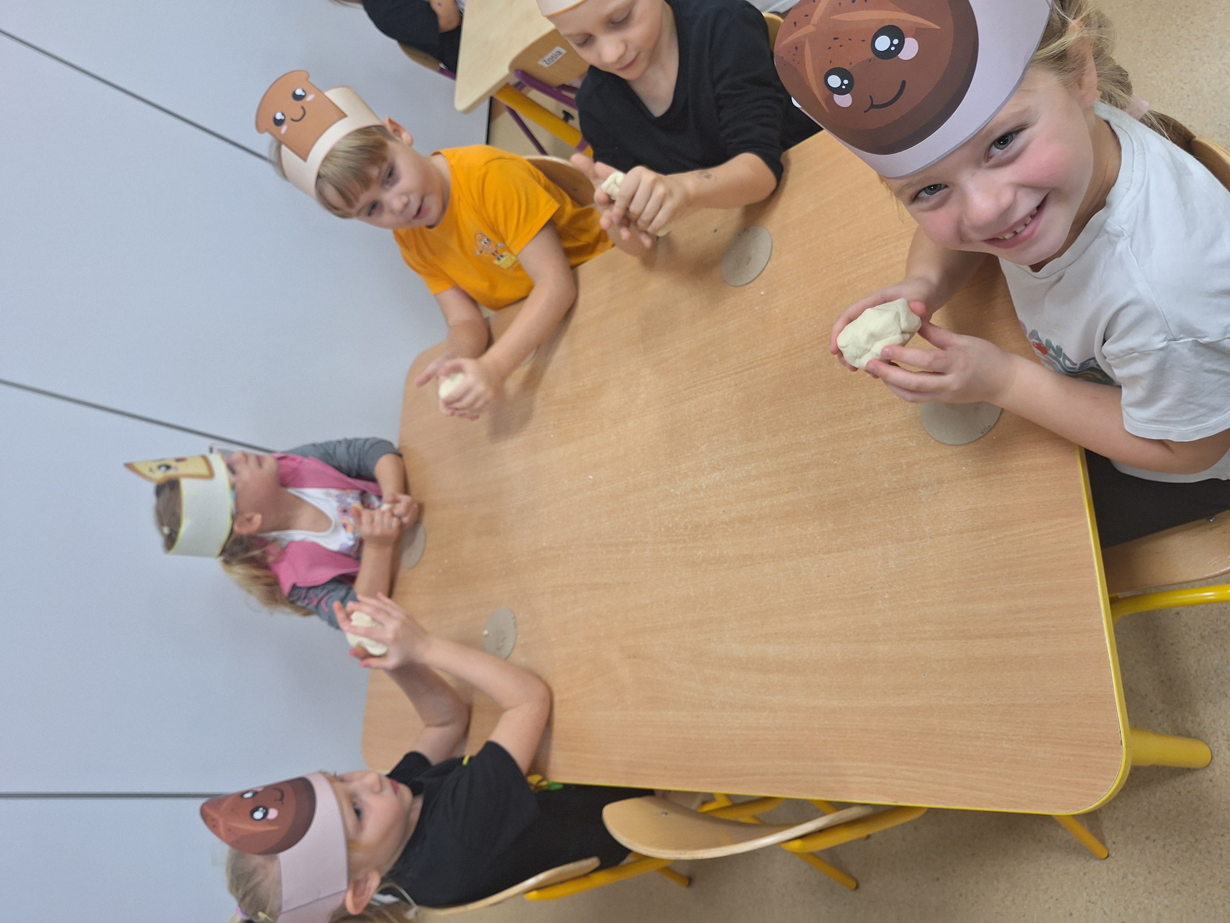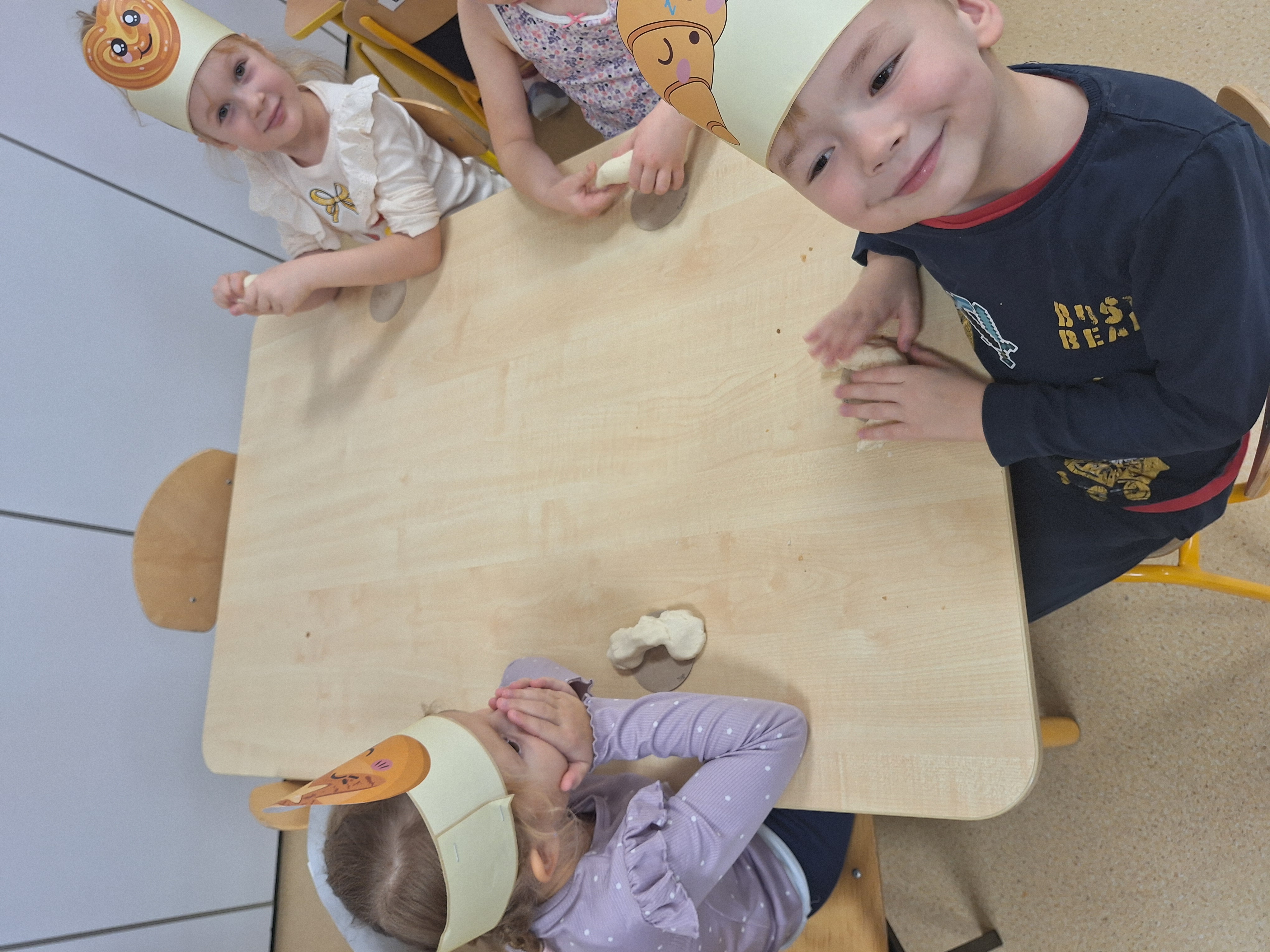 Dziś w naszym przedszkolu obchodziliśmy Dzień Chleba. Dzieci dowiedziały się, jak powstaje mąka i chleb, oraz kim jest i czym zajmuje się piekarz. Przedszkolaki mogły zobaczyć, jak wygląda proces pieczenia chleba, a także lepiły z masy solnej różne rodzaje pieczywa – bułeczki, rogaliki i chleby. Na zakończenie dzieci degustowały różne gatunki chleba: pszenne, żytnie i razowe. To był bardzo ciekawy, twórczy i smaczny dzień!