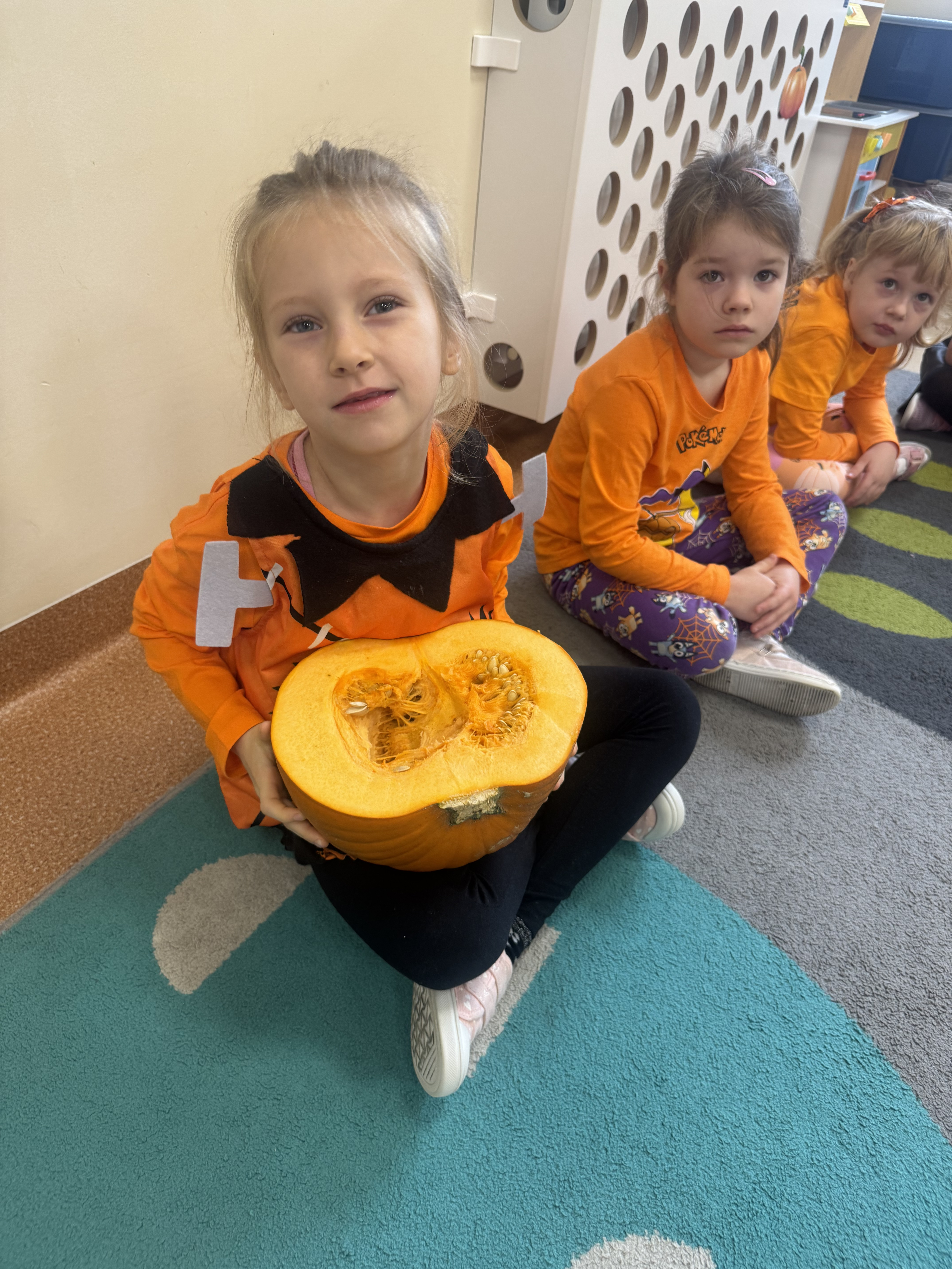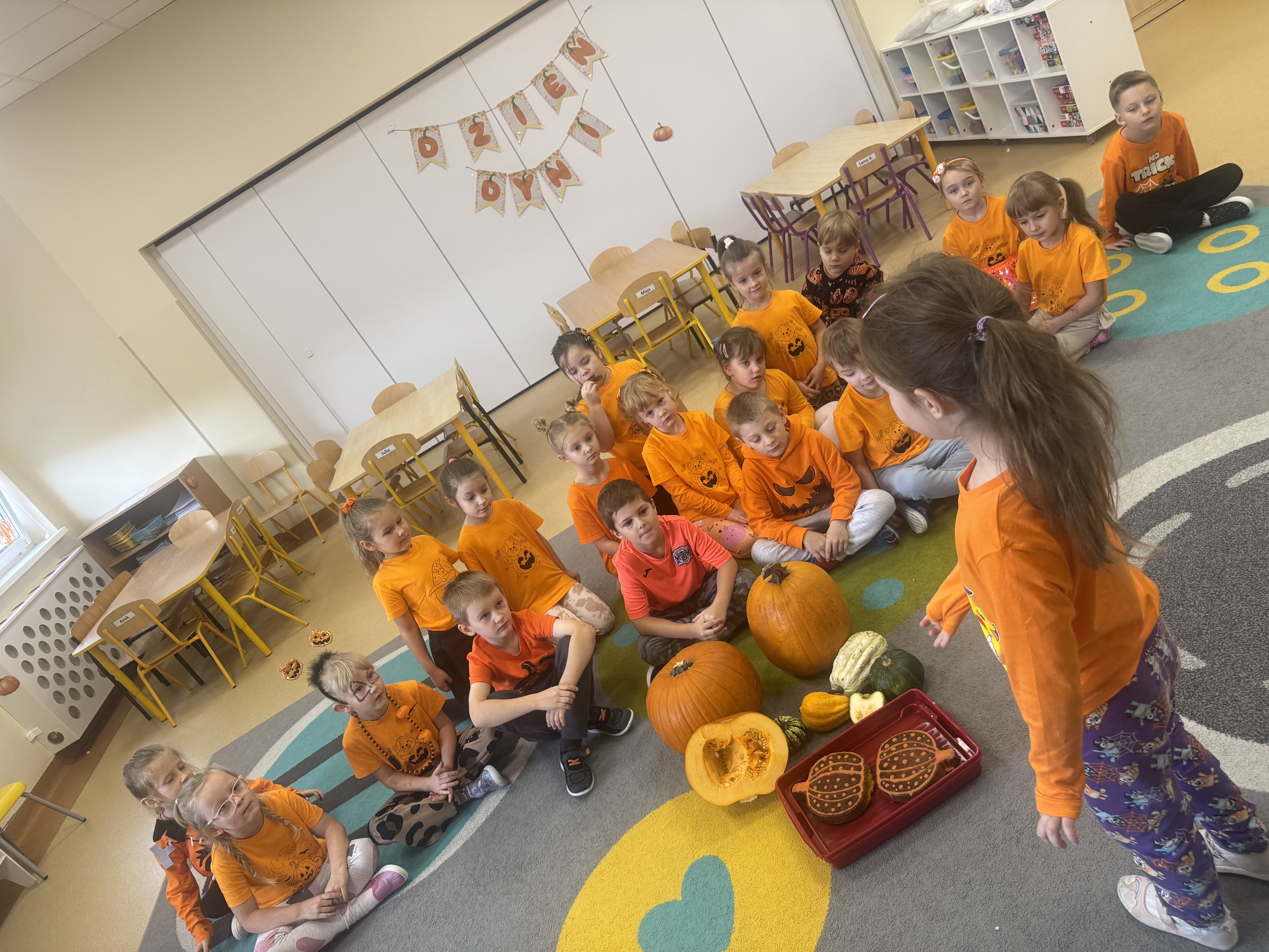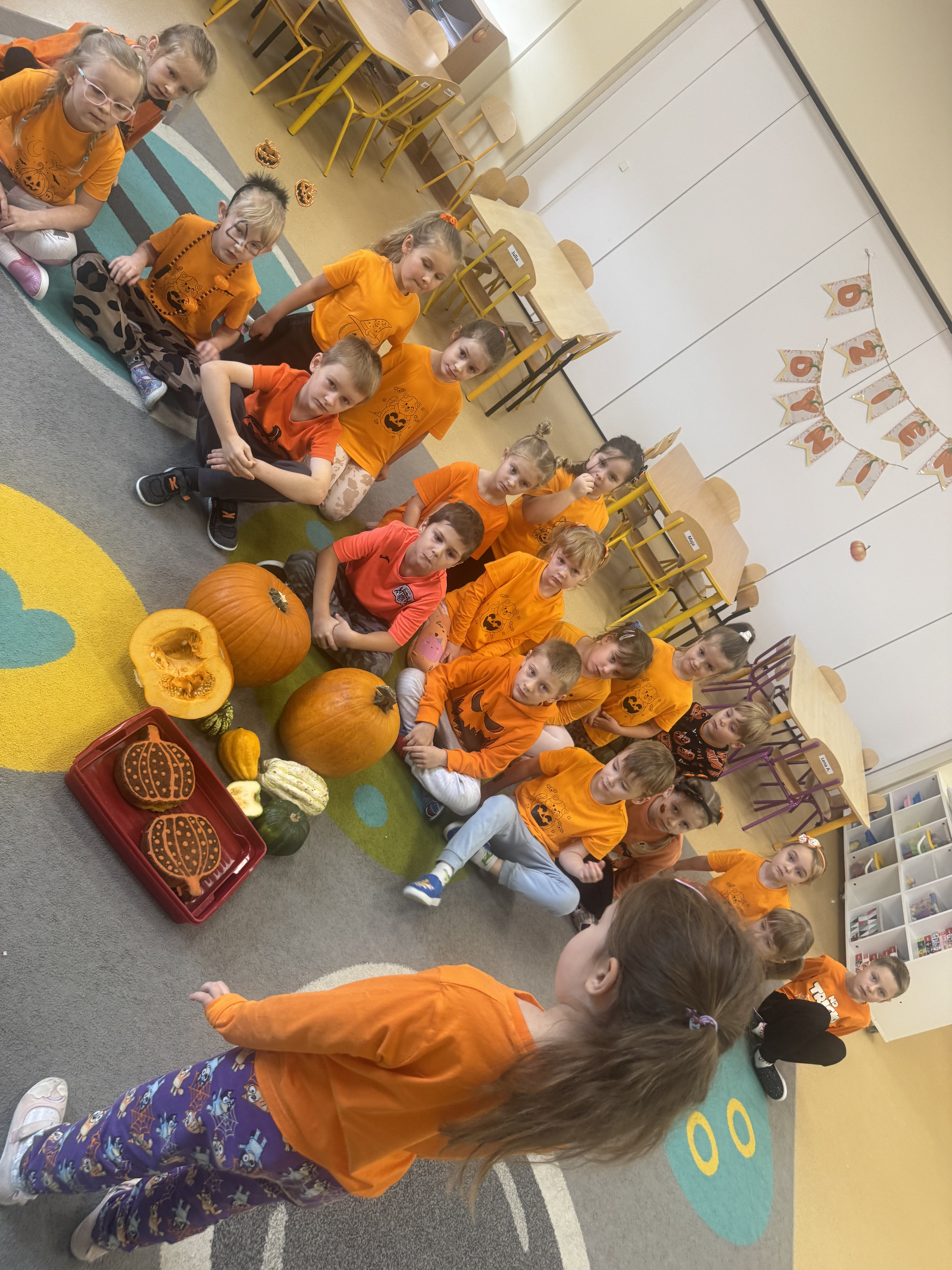 30 października obchodziliśmy Dzień Dyni! Było mnóstwo radości i pomarańczowych akcentów. Dzieci brały udział w zabawach ruchowych i tańcach, a także obejrzały film edukacyjny o dyni, z którego dowiedziały się wielu ciekawostek o tym jesiennym warzywie. Każde dziecko własnoręcznie wykonało dynię z ... SKARPETKI :)