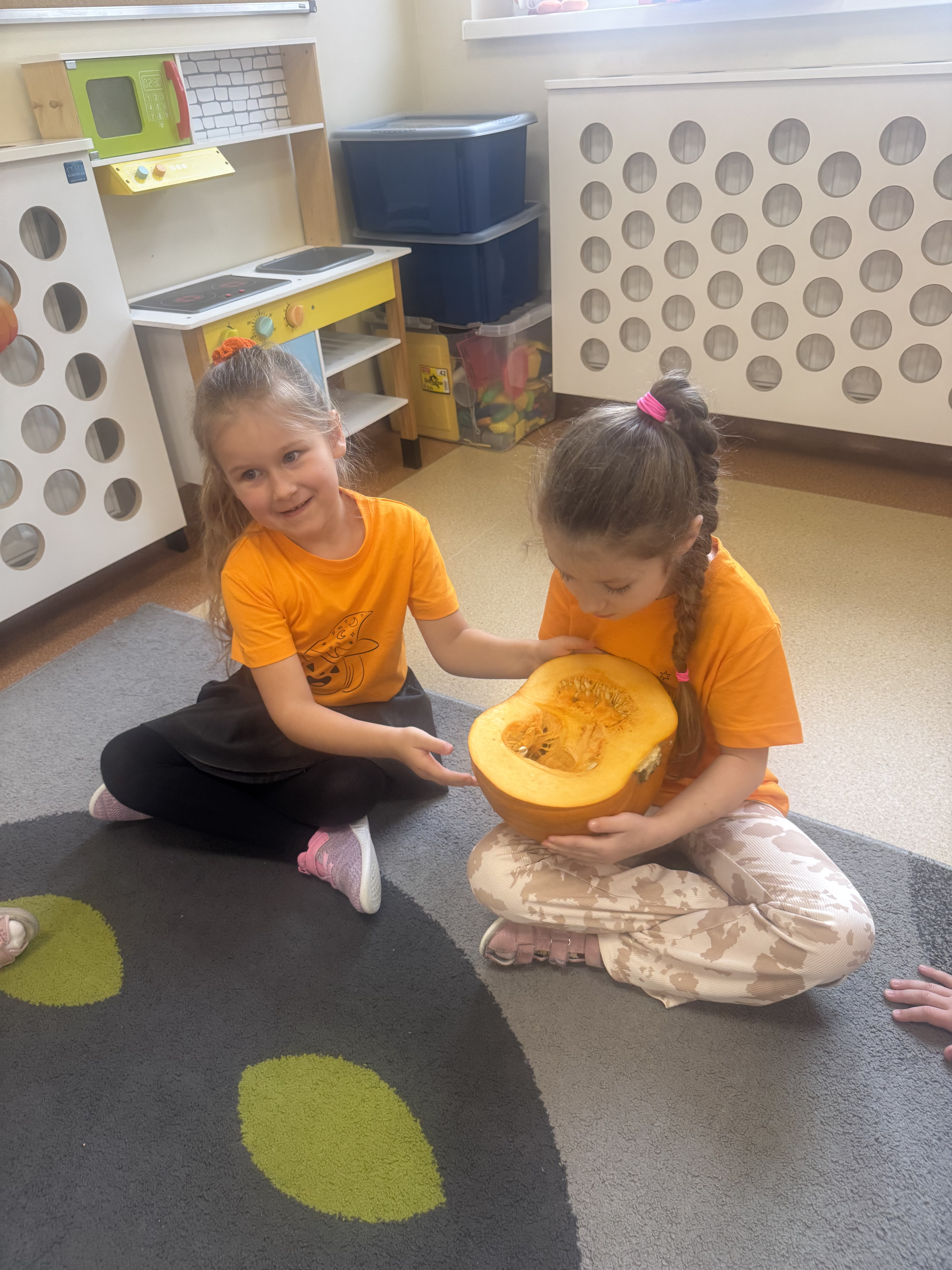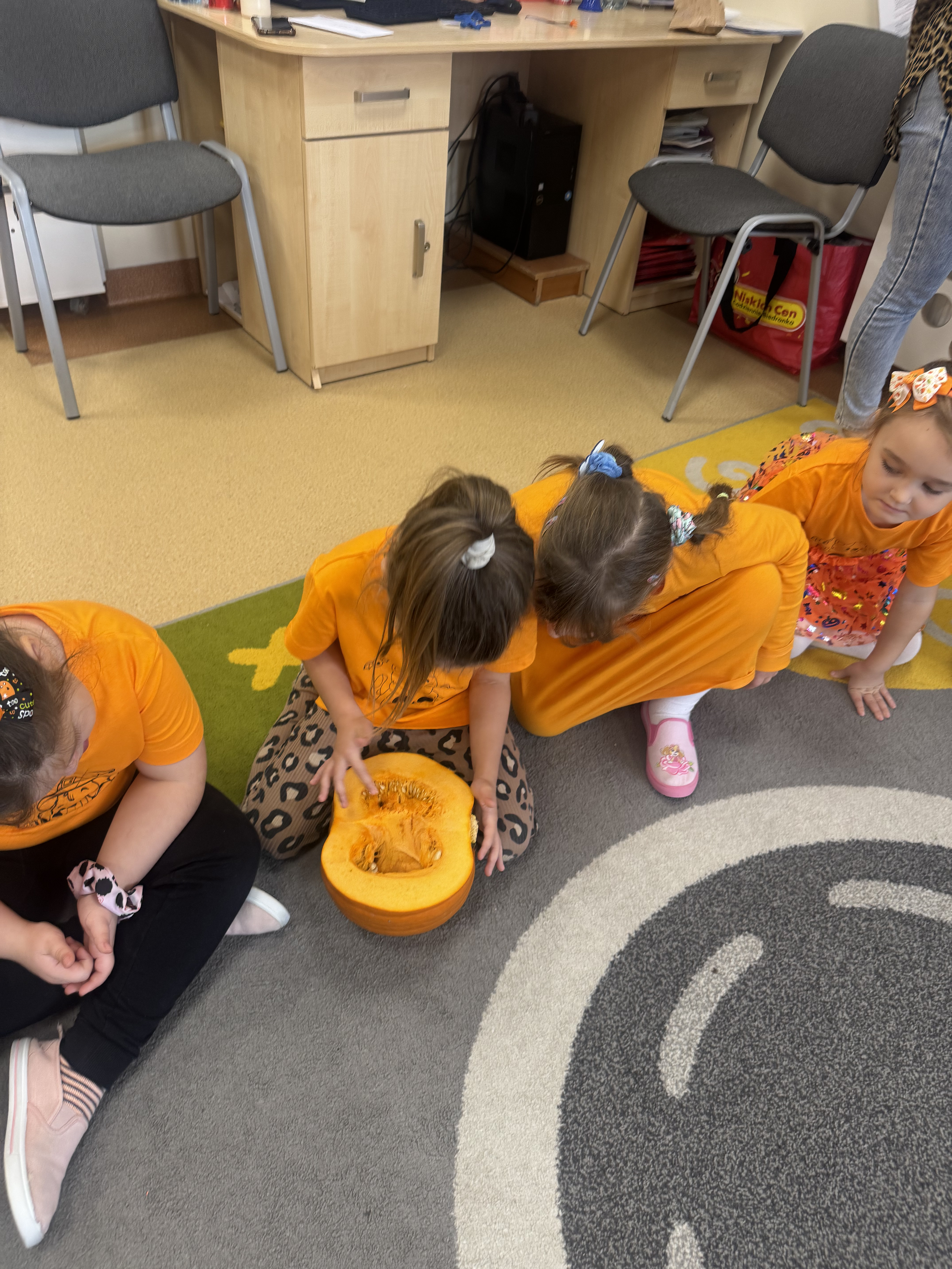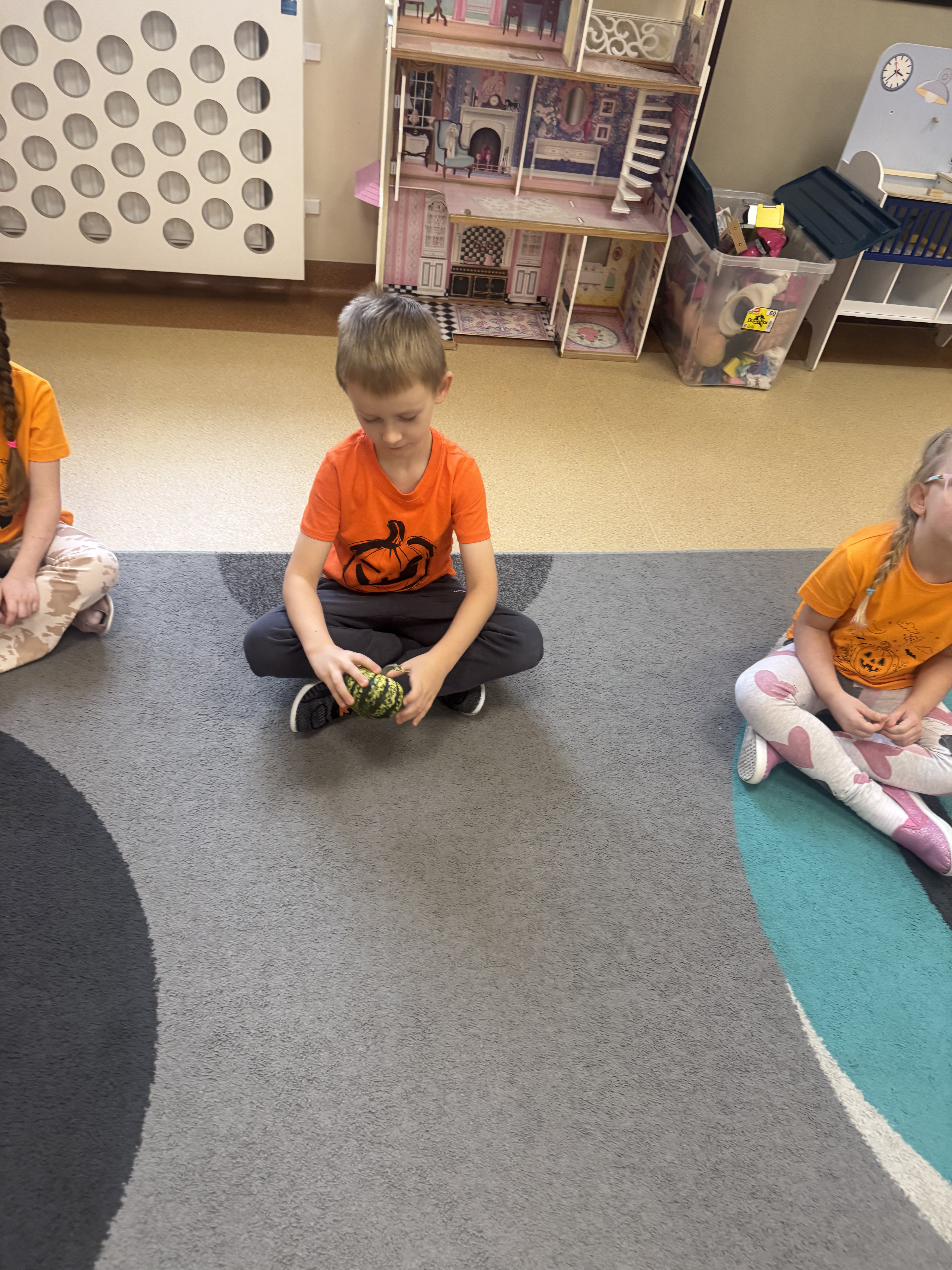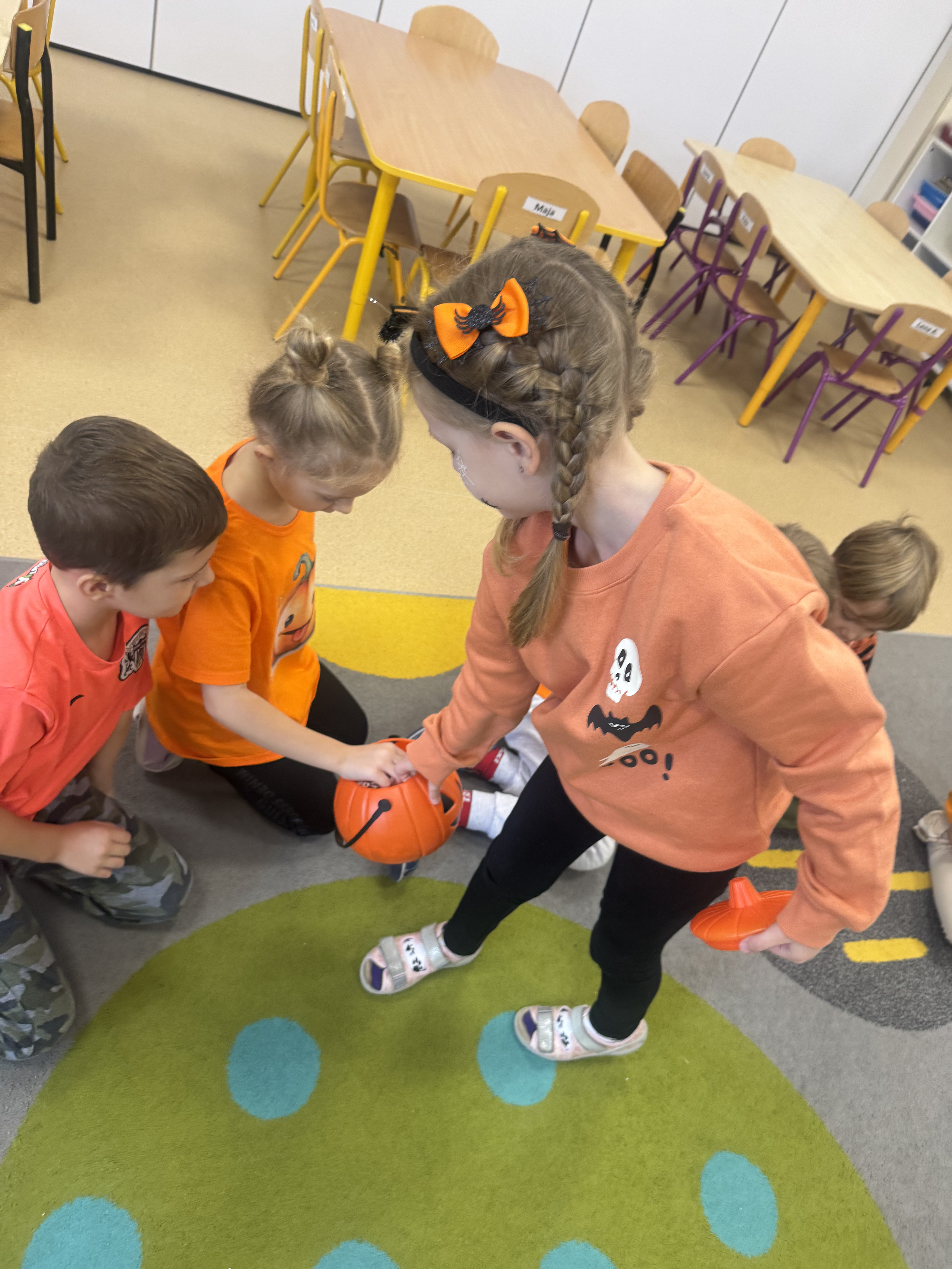 30 października obchodziliśmy Dzień Dyni! Było mnóstwo radości i pomarańczowych akcentów. Dzieci brały udział w zabawach ruchowych i tańcach, a także obejrzały film edukacyjny o dyni, z którego dowiedziały się wielu ciekawostek o tym jesiennym warzywie. Każde dziecko własnoręcznie wykonało dynię z ... SKARPETKI :)
