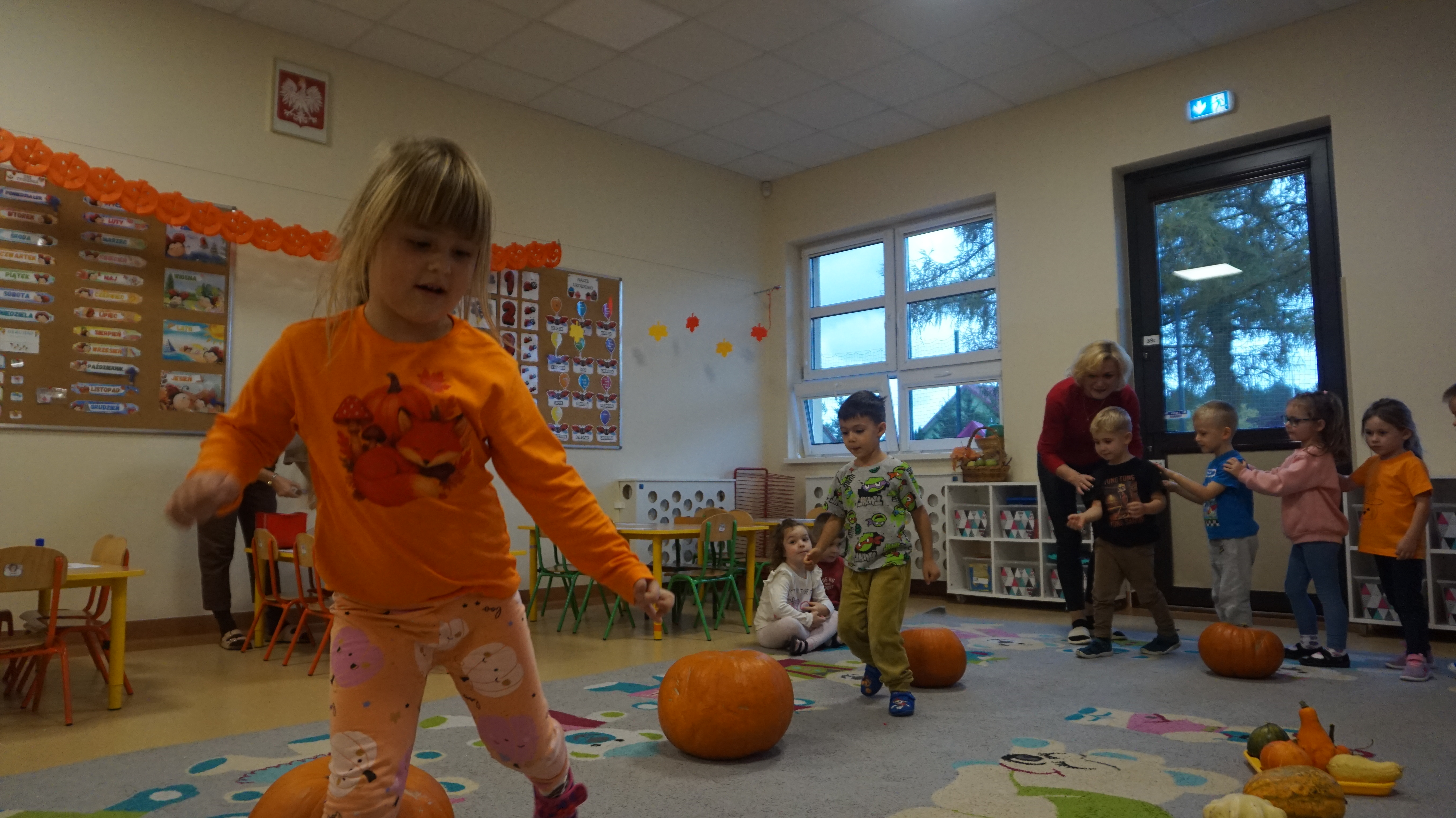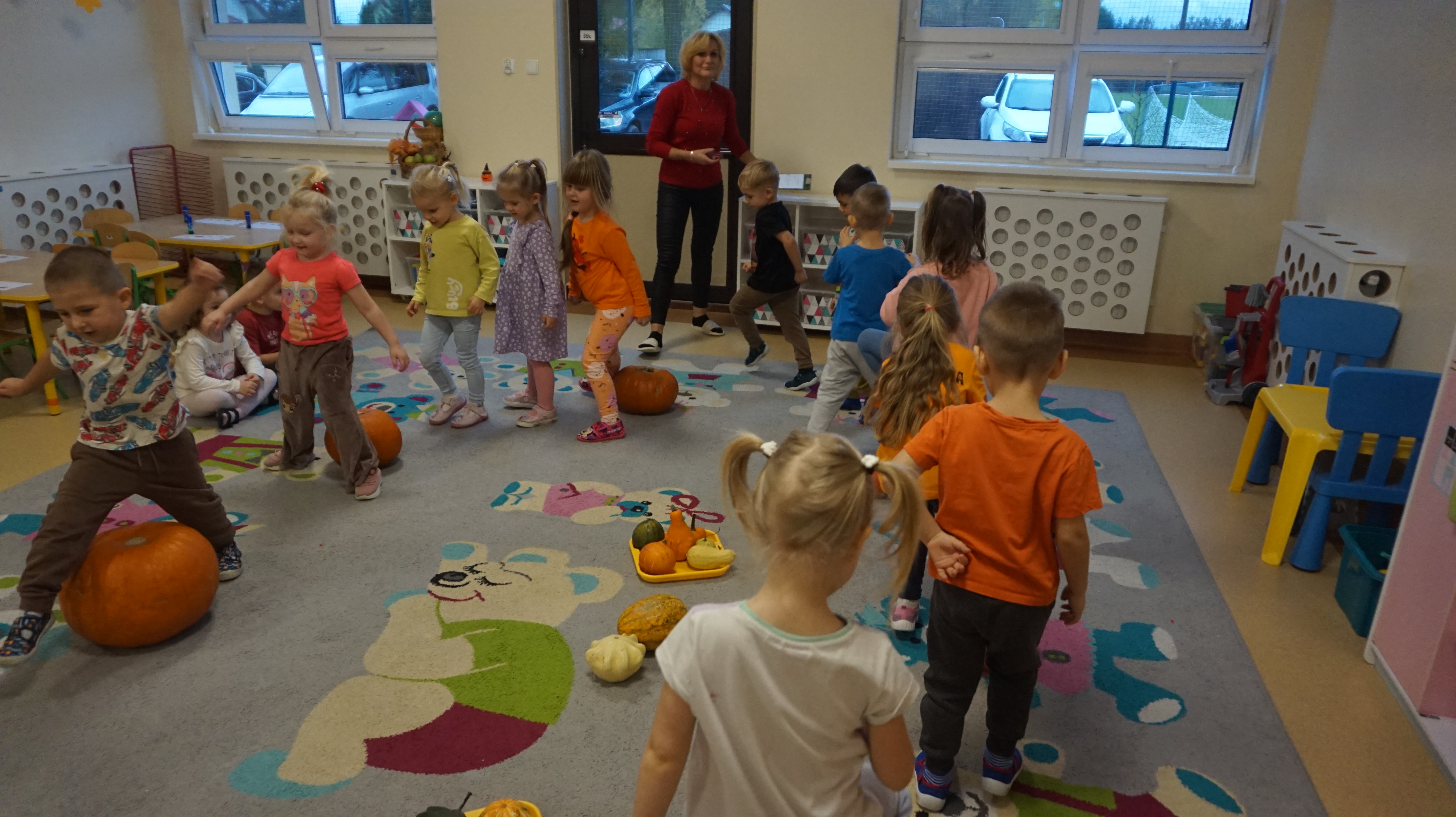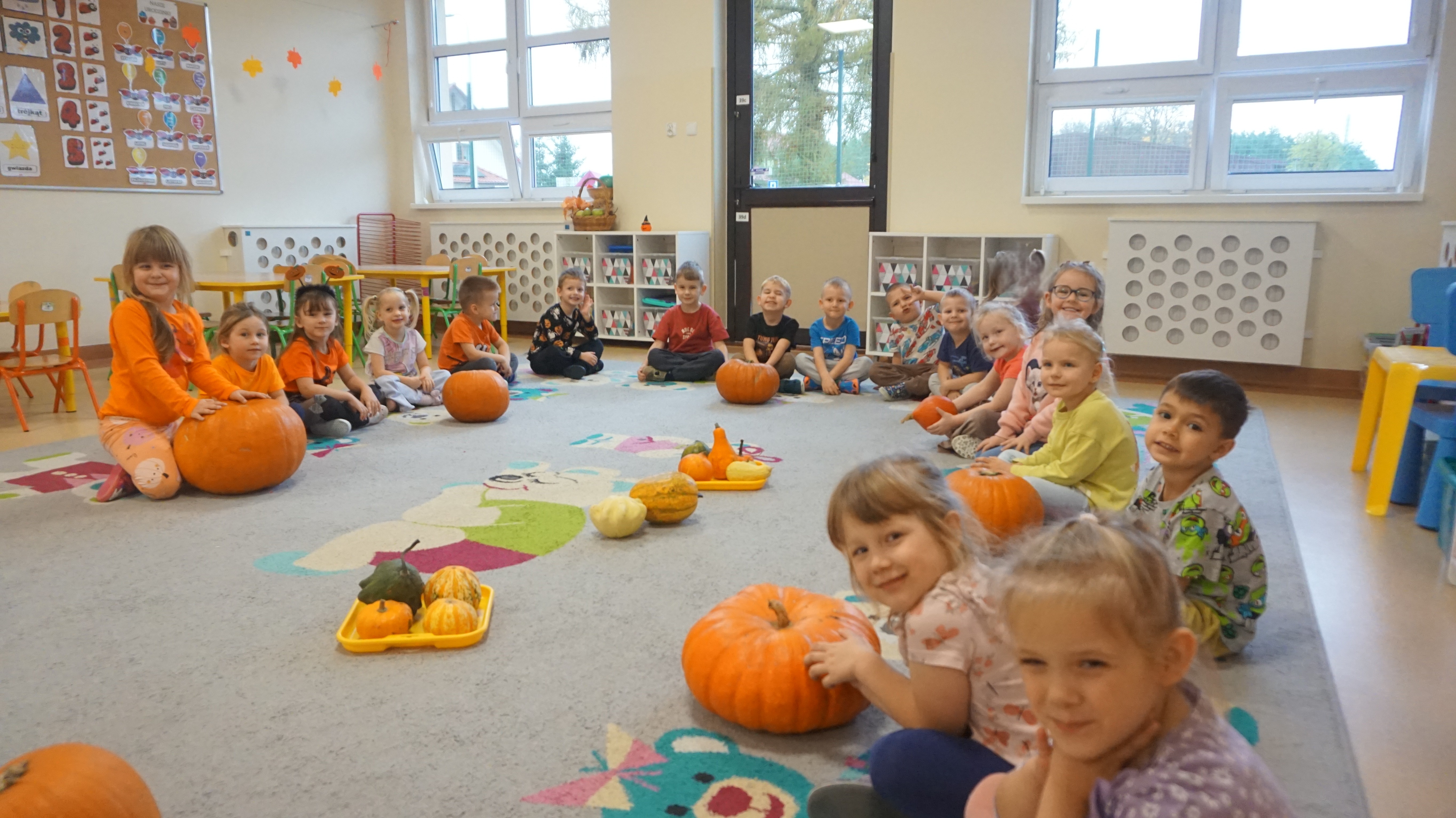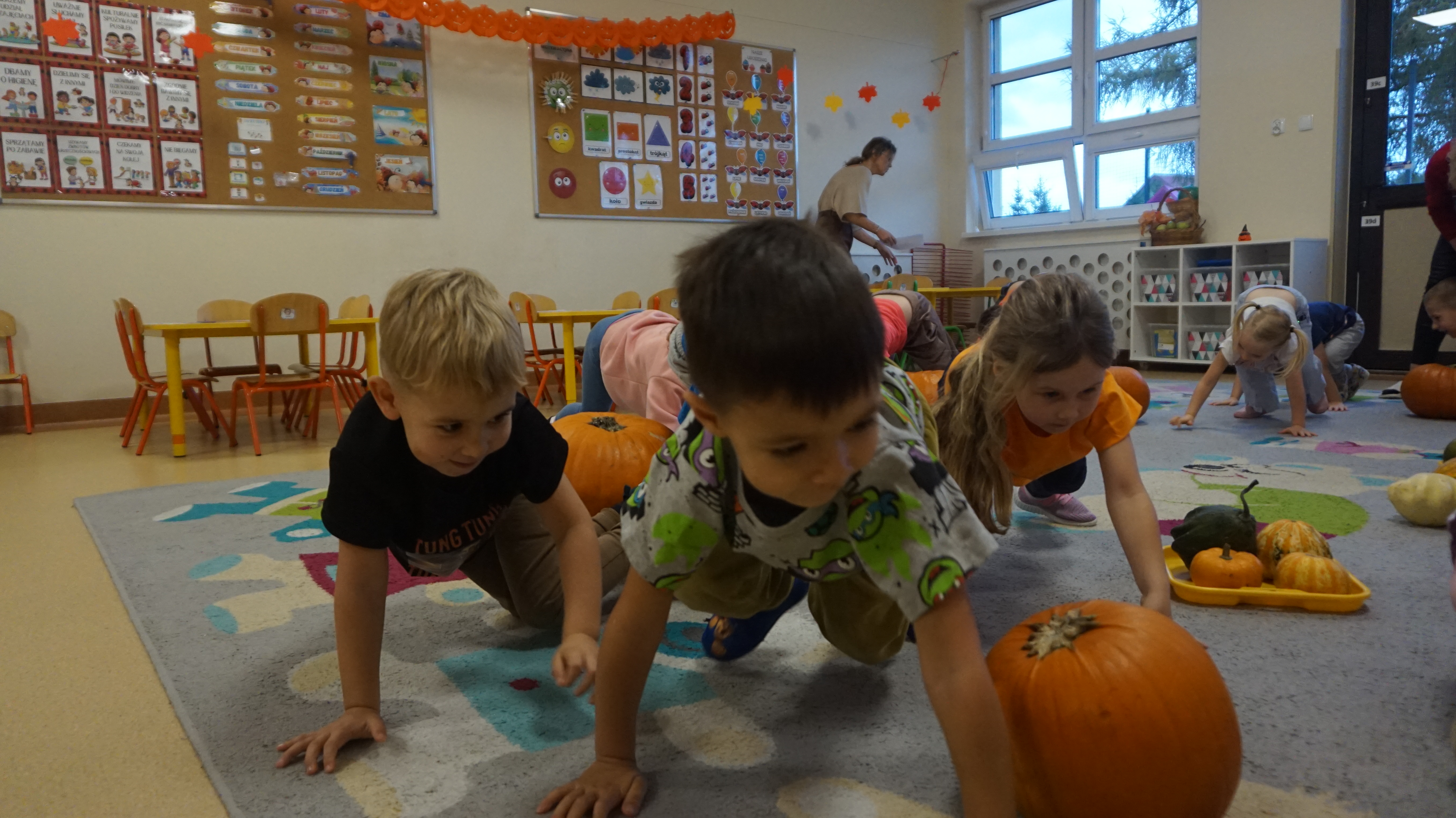 W grupie Biedronki odbyły się zajęcia otwarte dla rodziców. Dzieci poznały to dorodne i okazałe warzywo. Wysłuchały bajki o dyni Dorotce, pokonały dyniowy tor przeszkód oraz wyszukiwały dynie według cech.