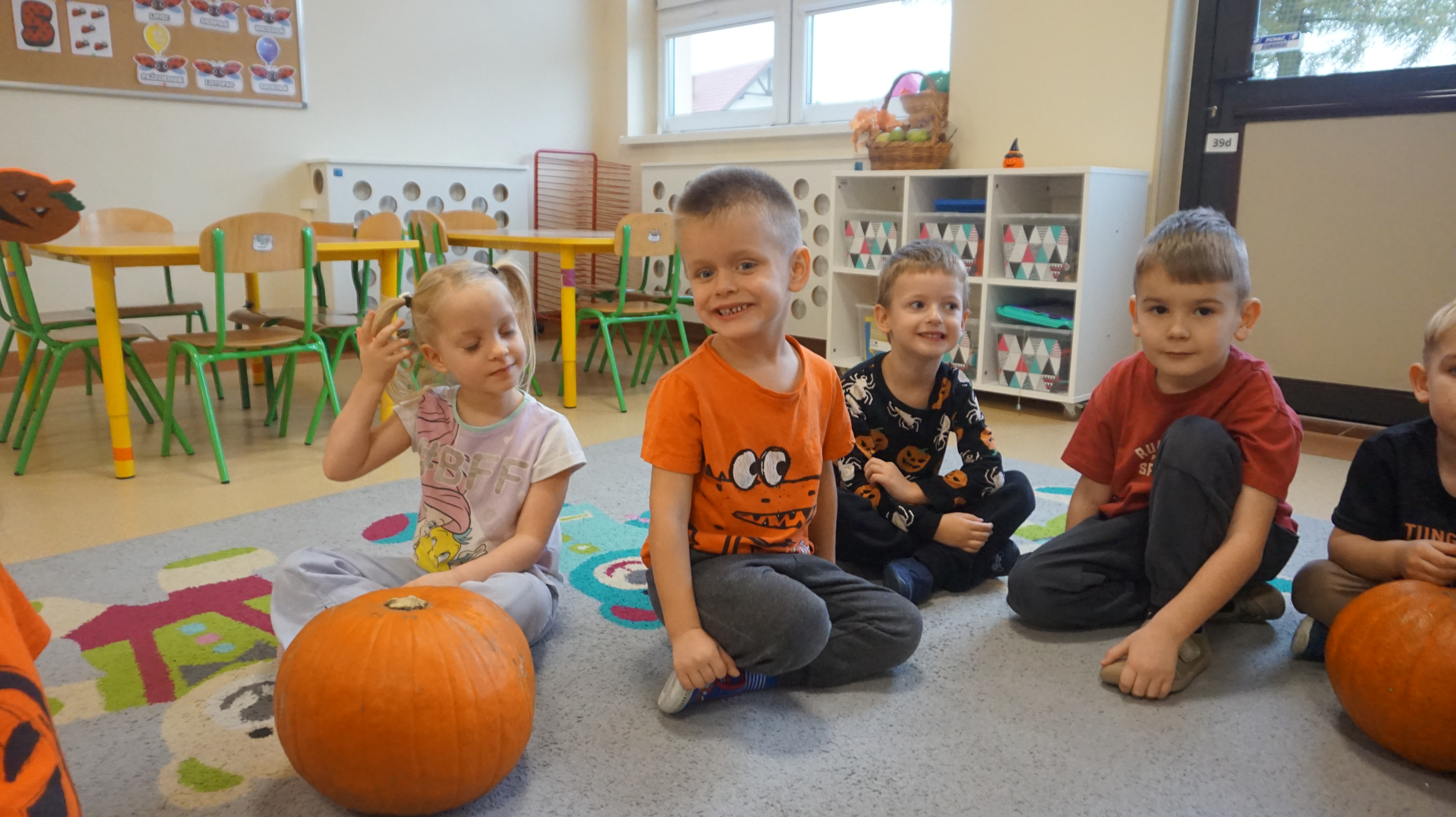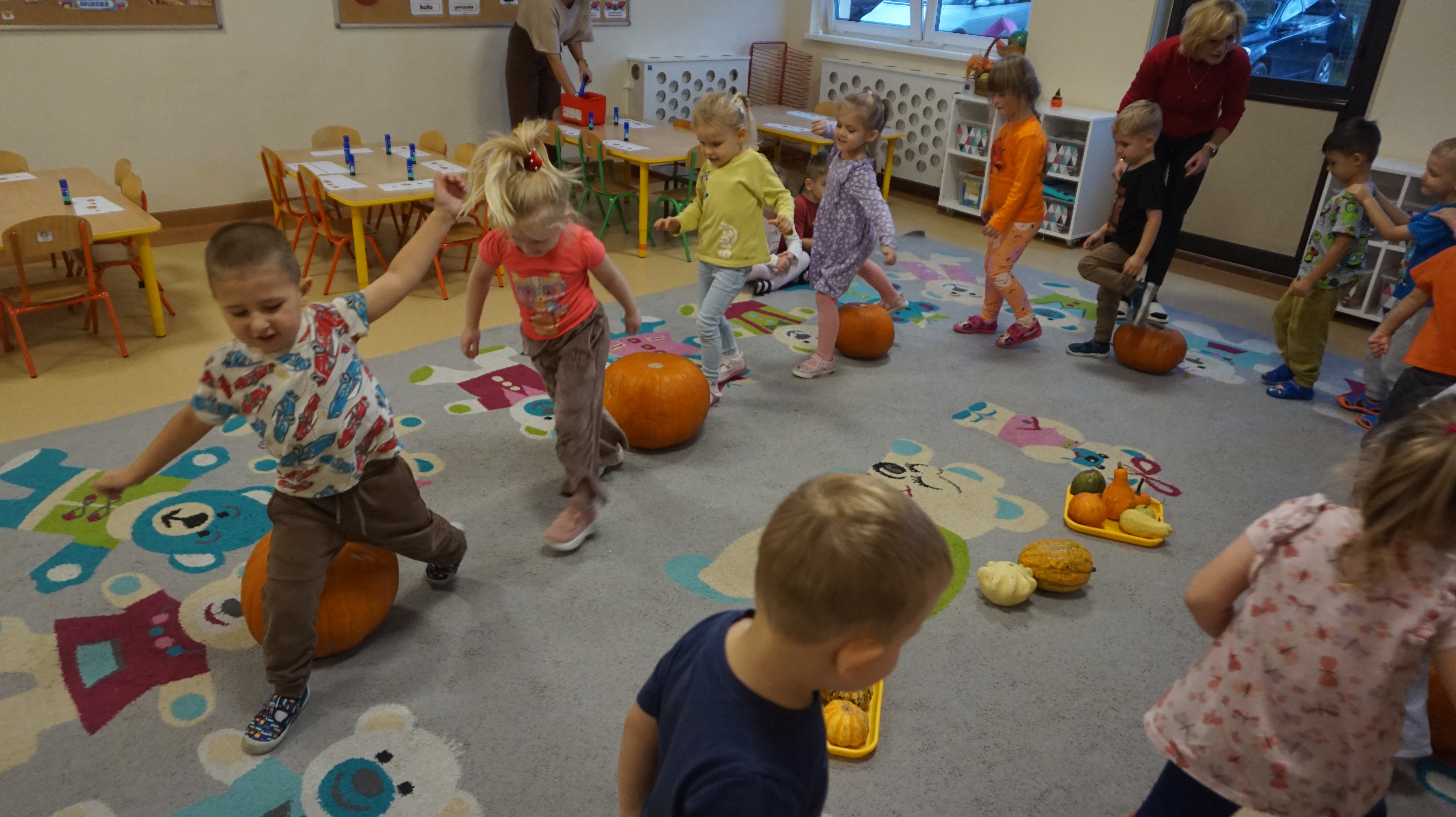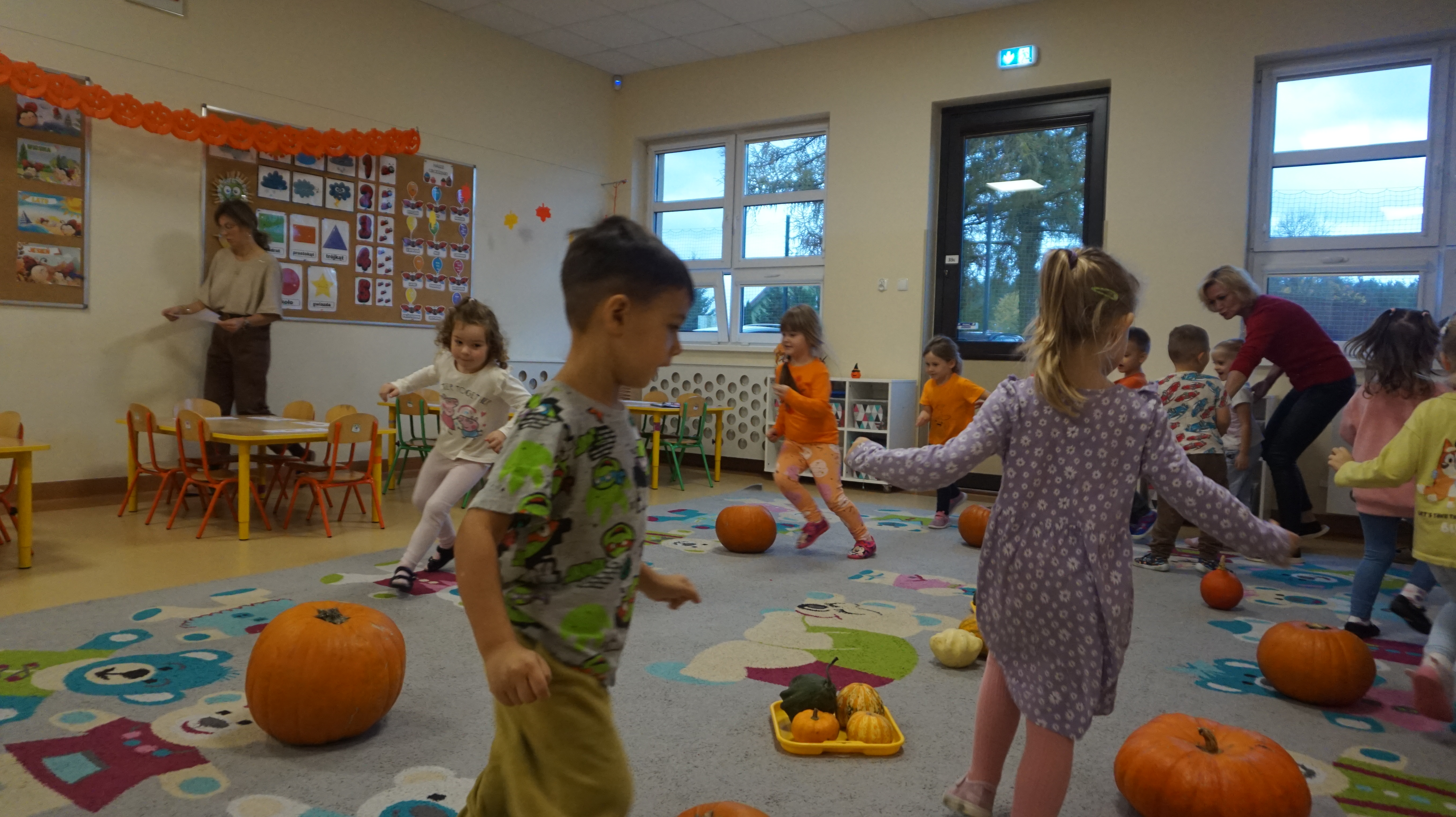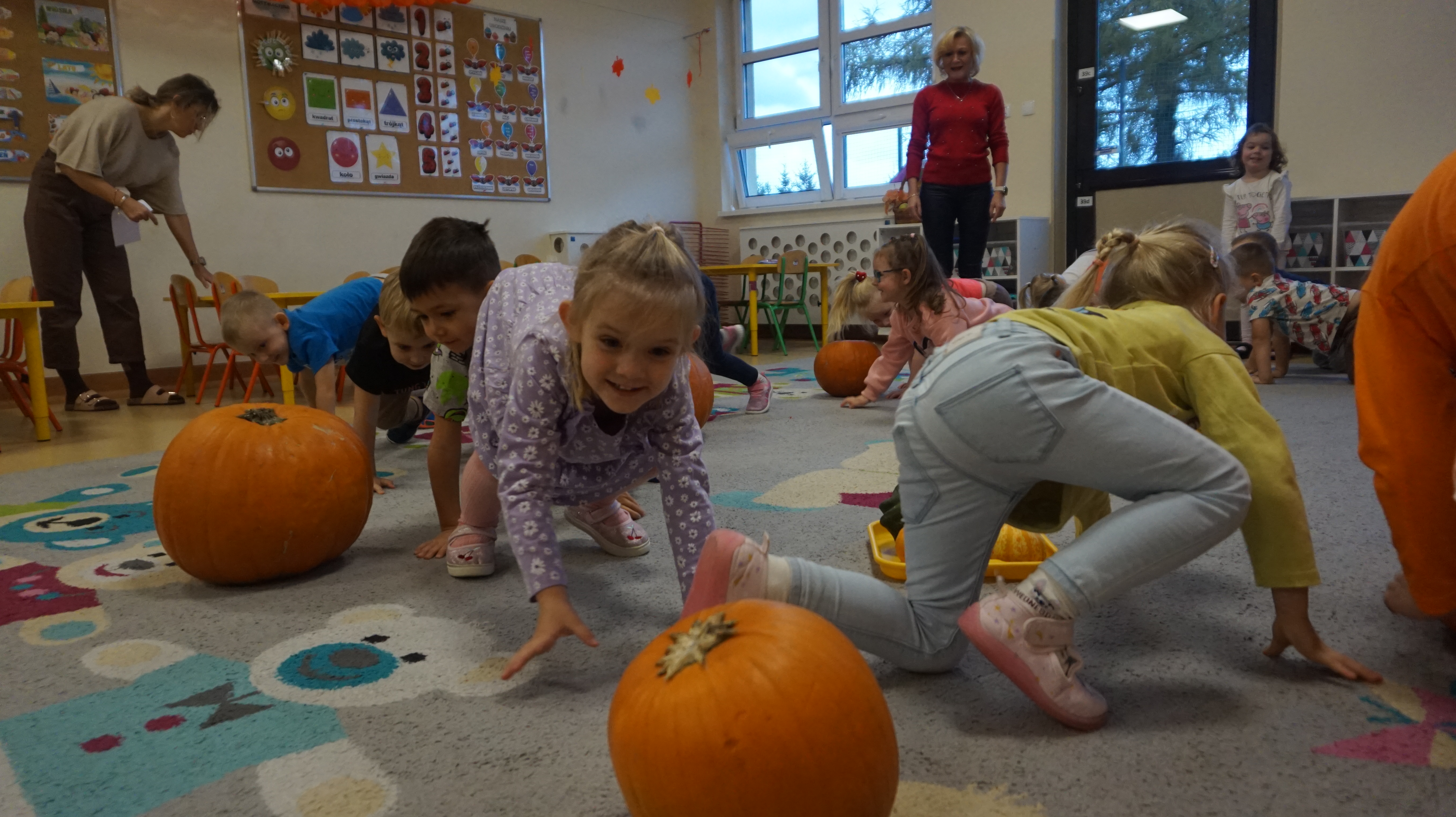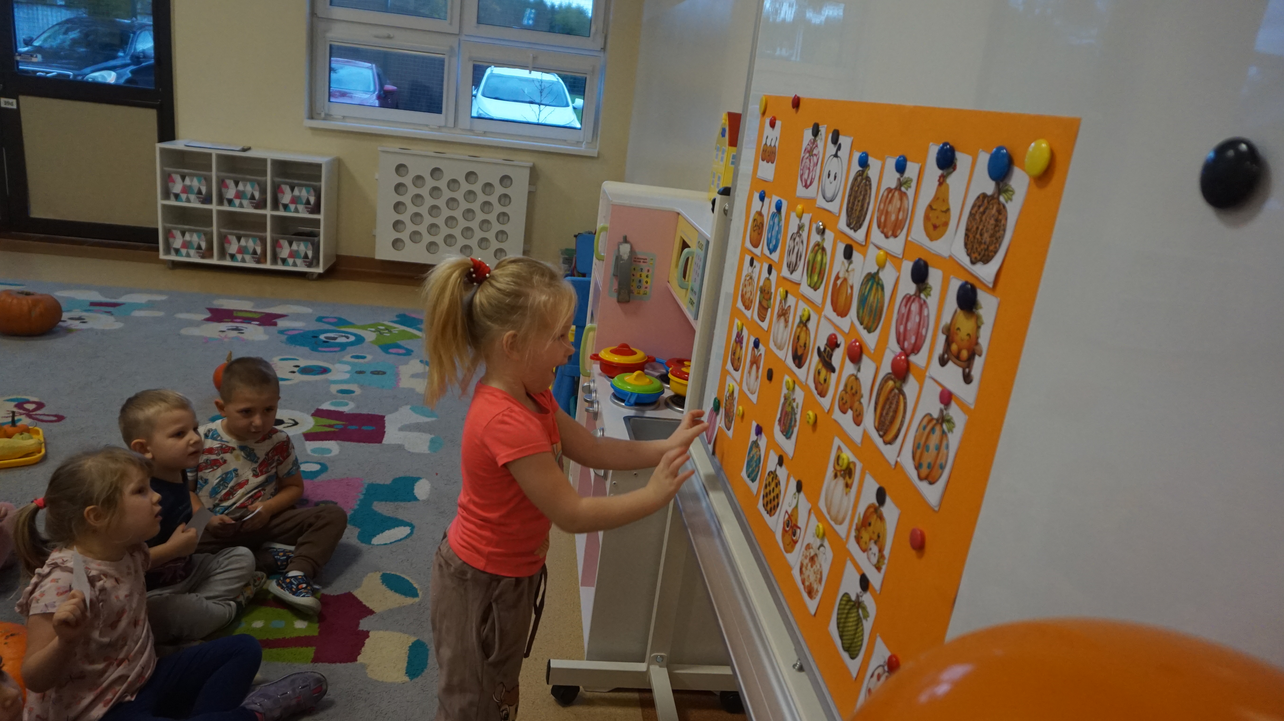 W grupie Biedronki odbyły się zajęcia otwarte dla rodziców. Dzieci poznały to dorodne i okazałe warzywo. Wysłuchały bajki o dyni Dorotce, pokonały dyniowy tor przeszkód oraz wyszukiwały dynie według cech.