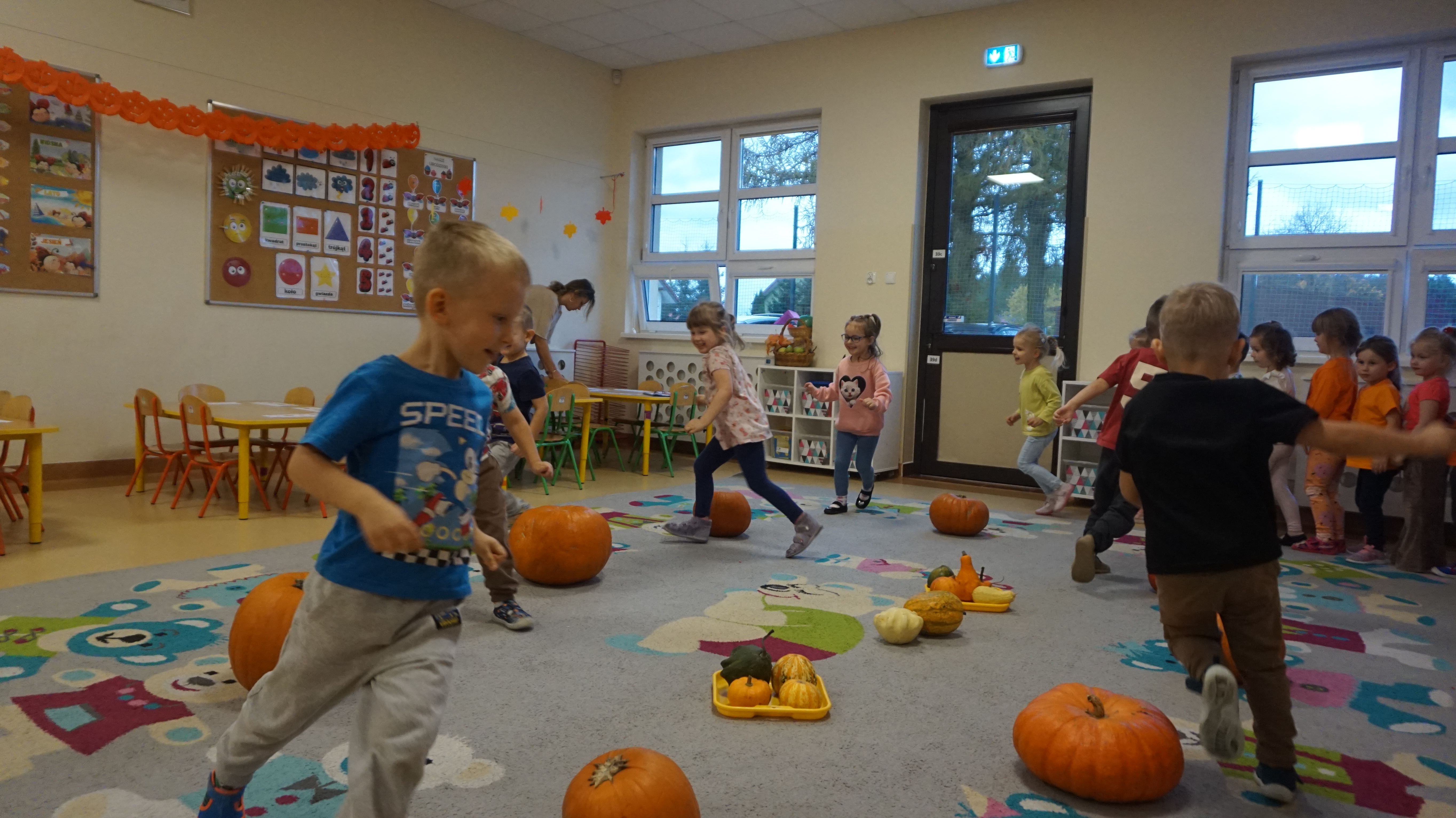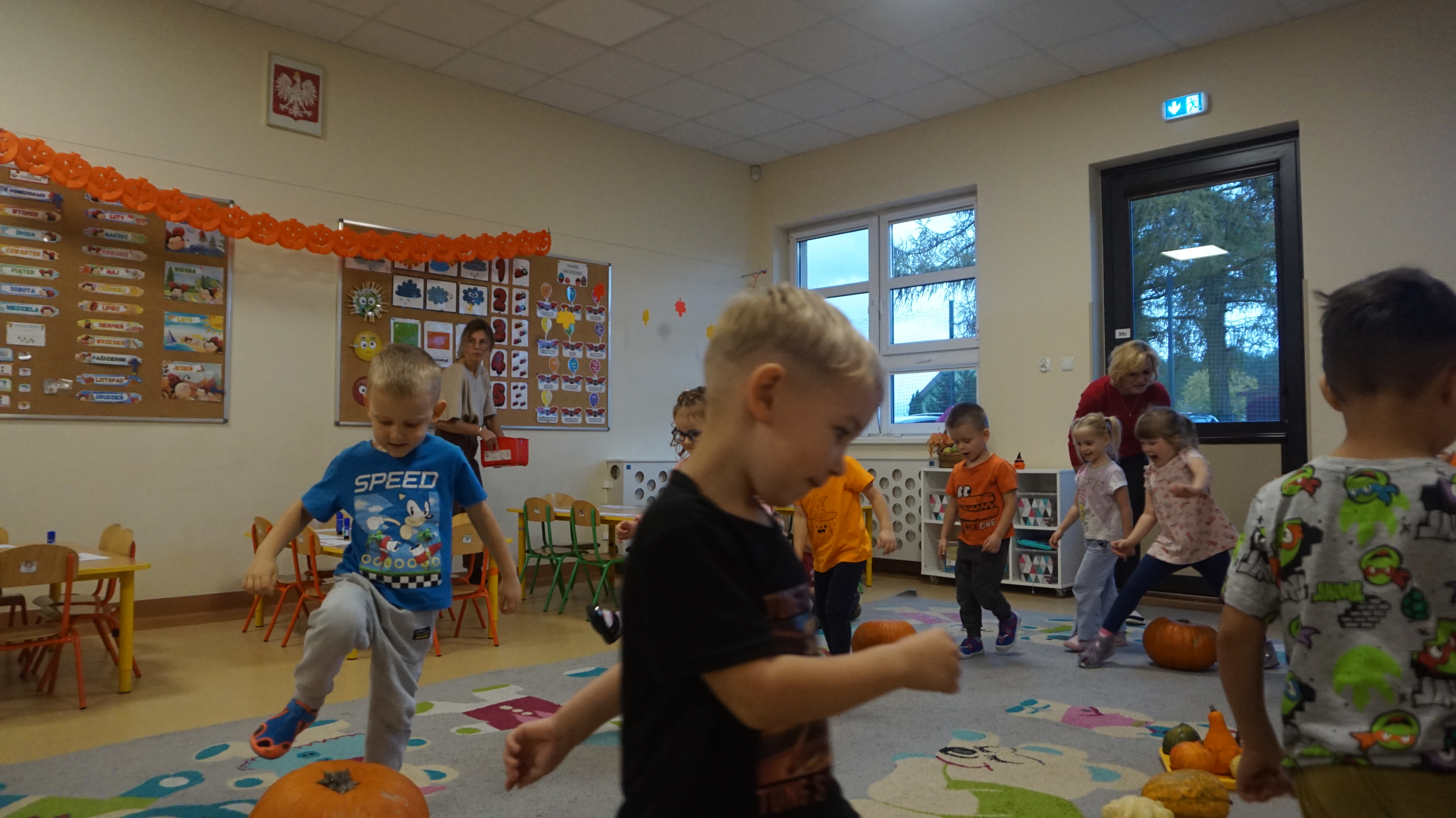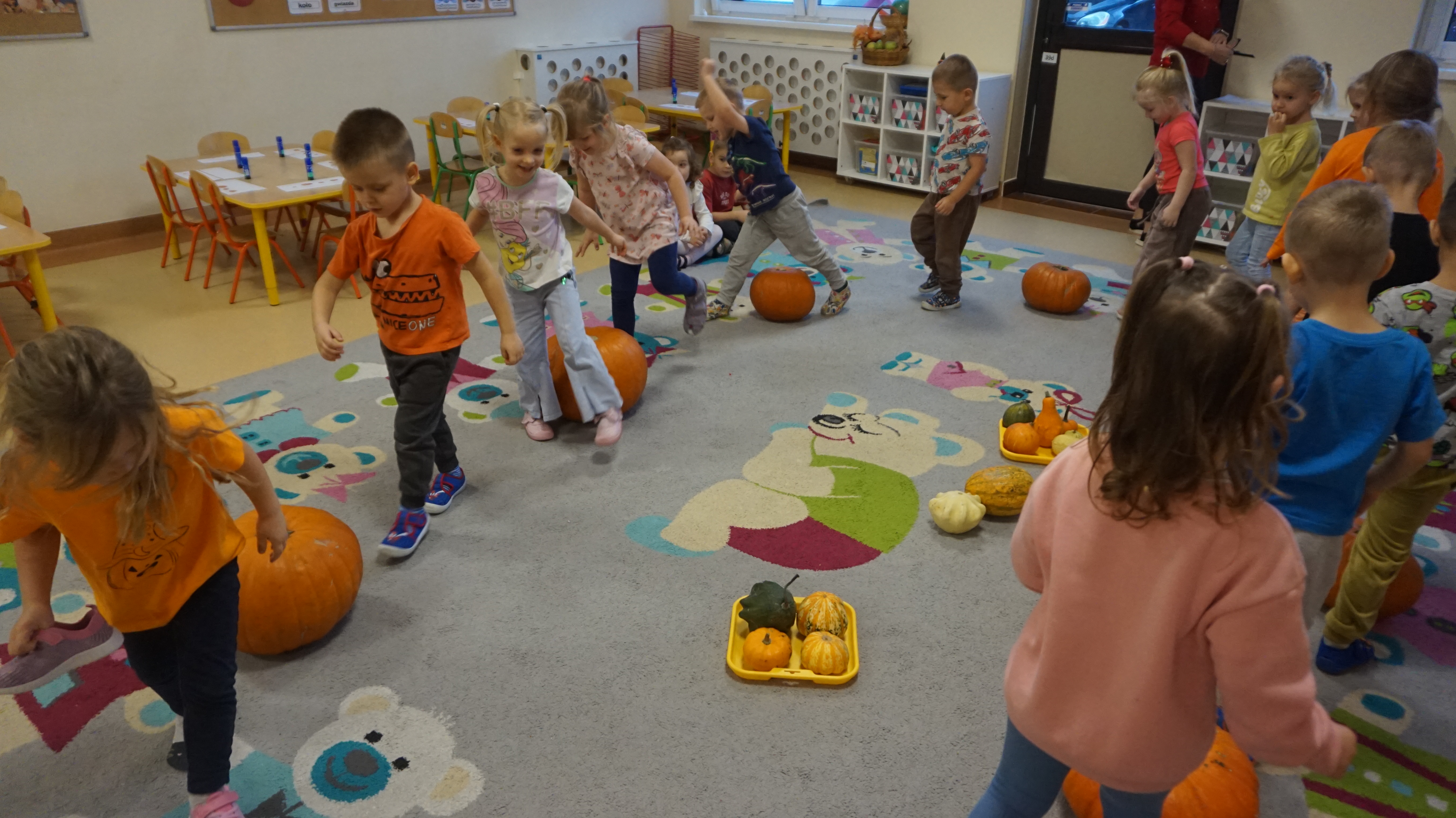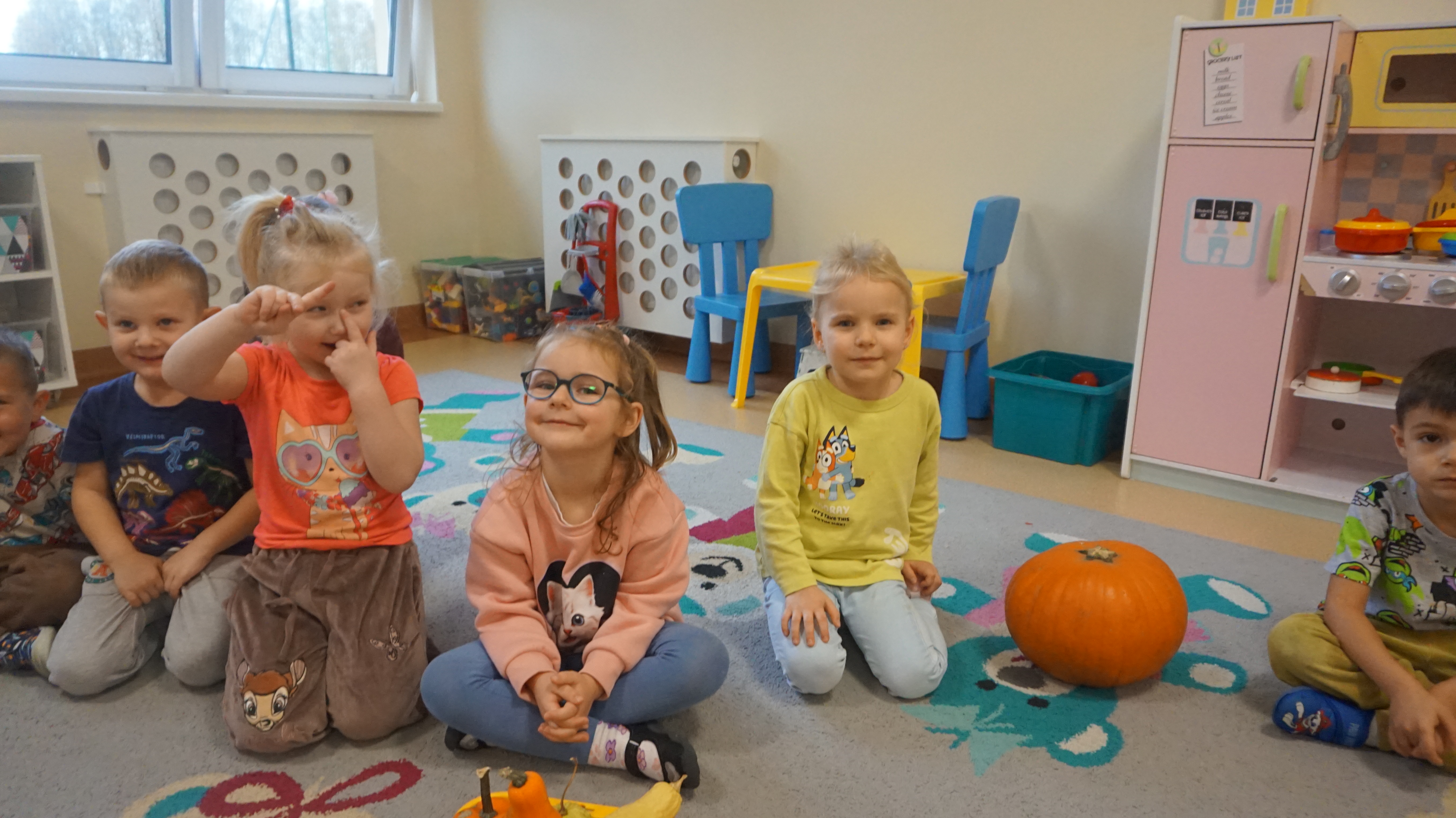 W grupie Biedronki odbyły się zajęcia otwarte dla rodziców. Dzieci poznały to dorodne i okazałe warzywo. Wysłuchały bajki o dyni Dorotce, pokonały dyniowy tor przeszkód oraz wyszukiwały dynie według cech.