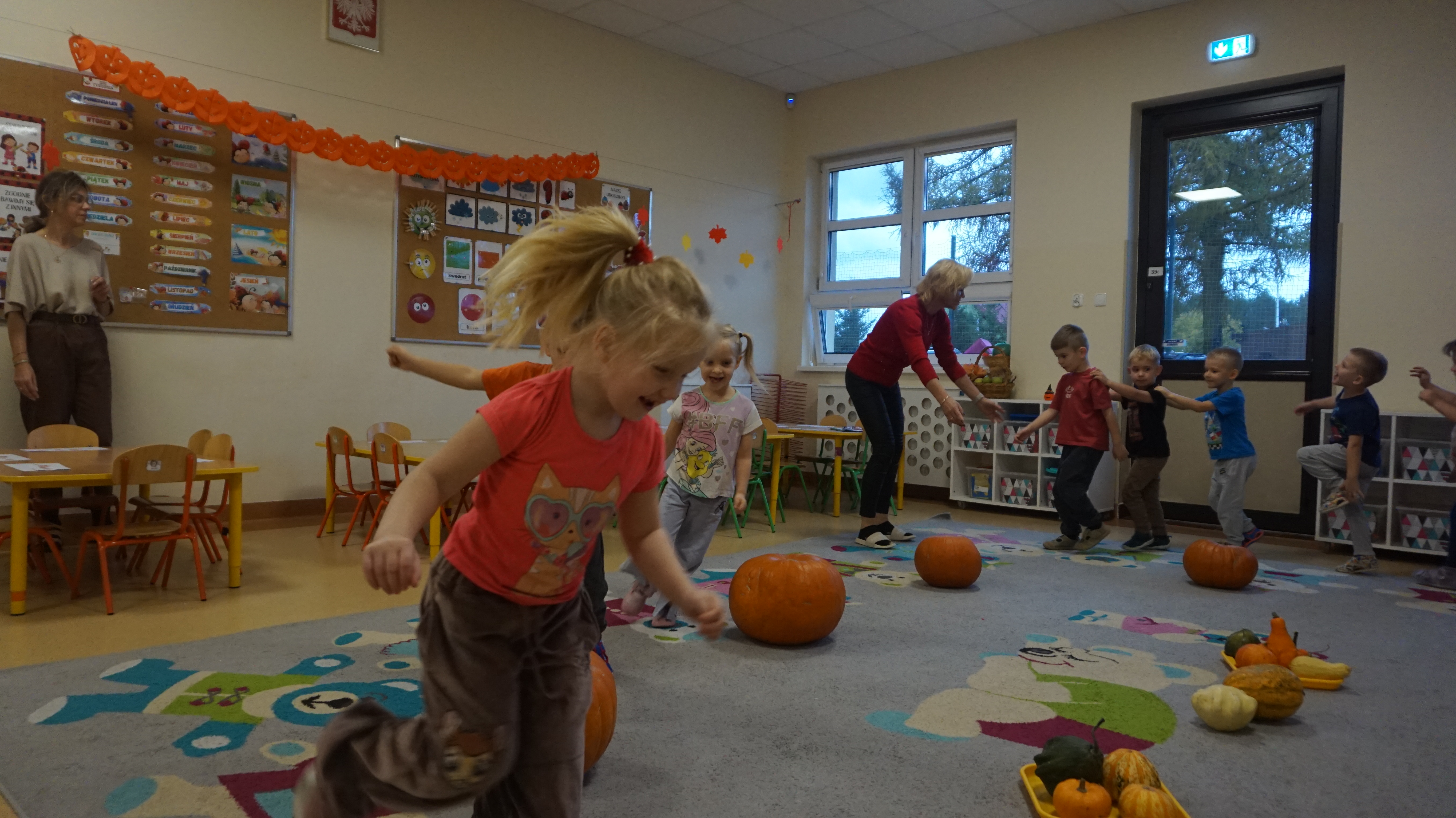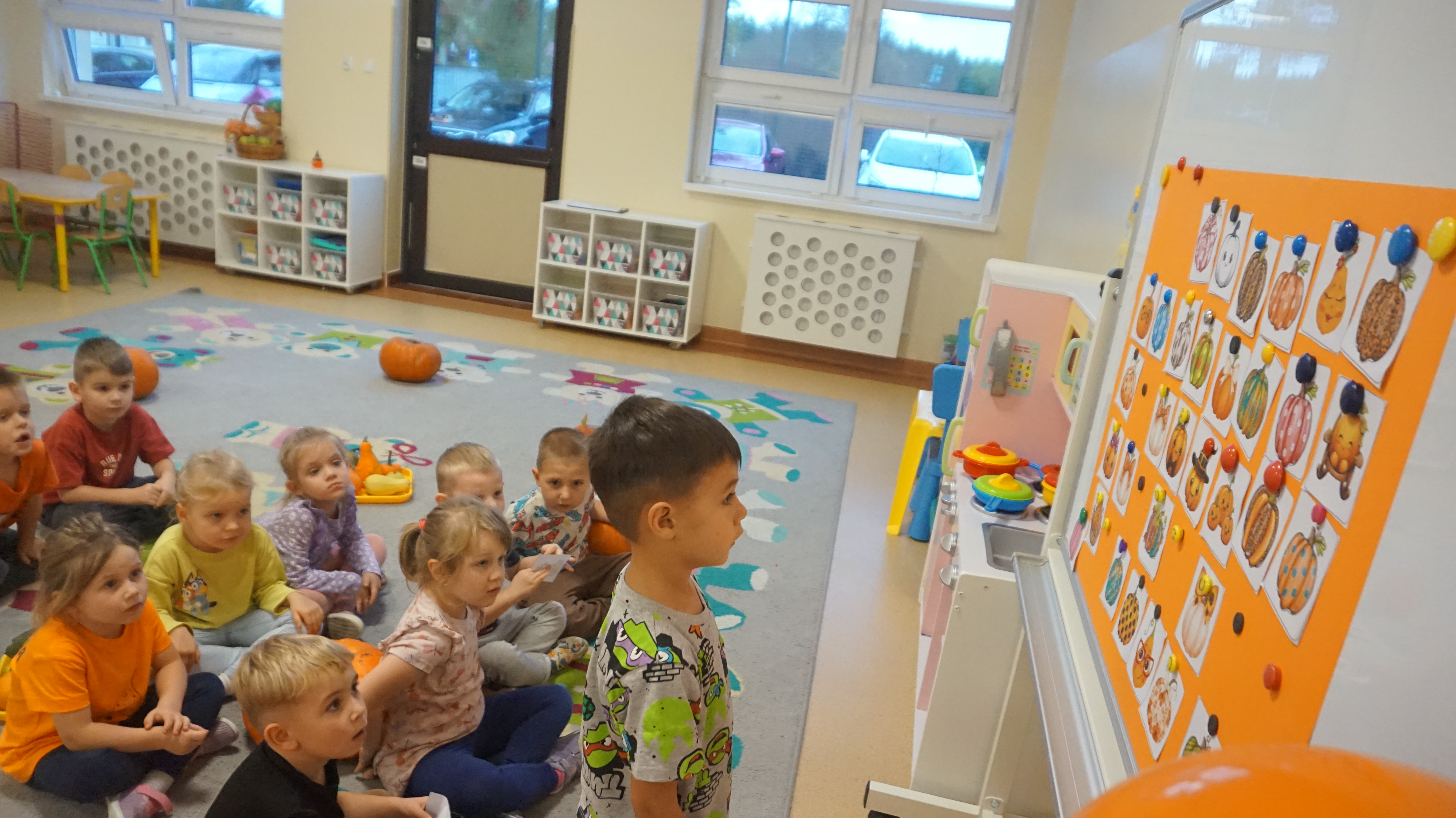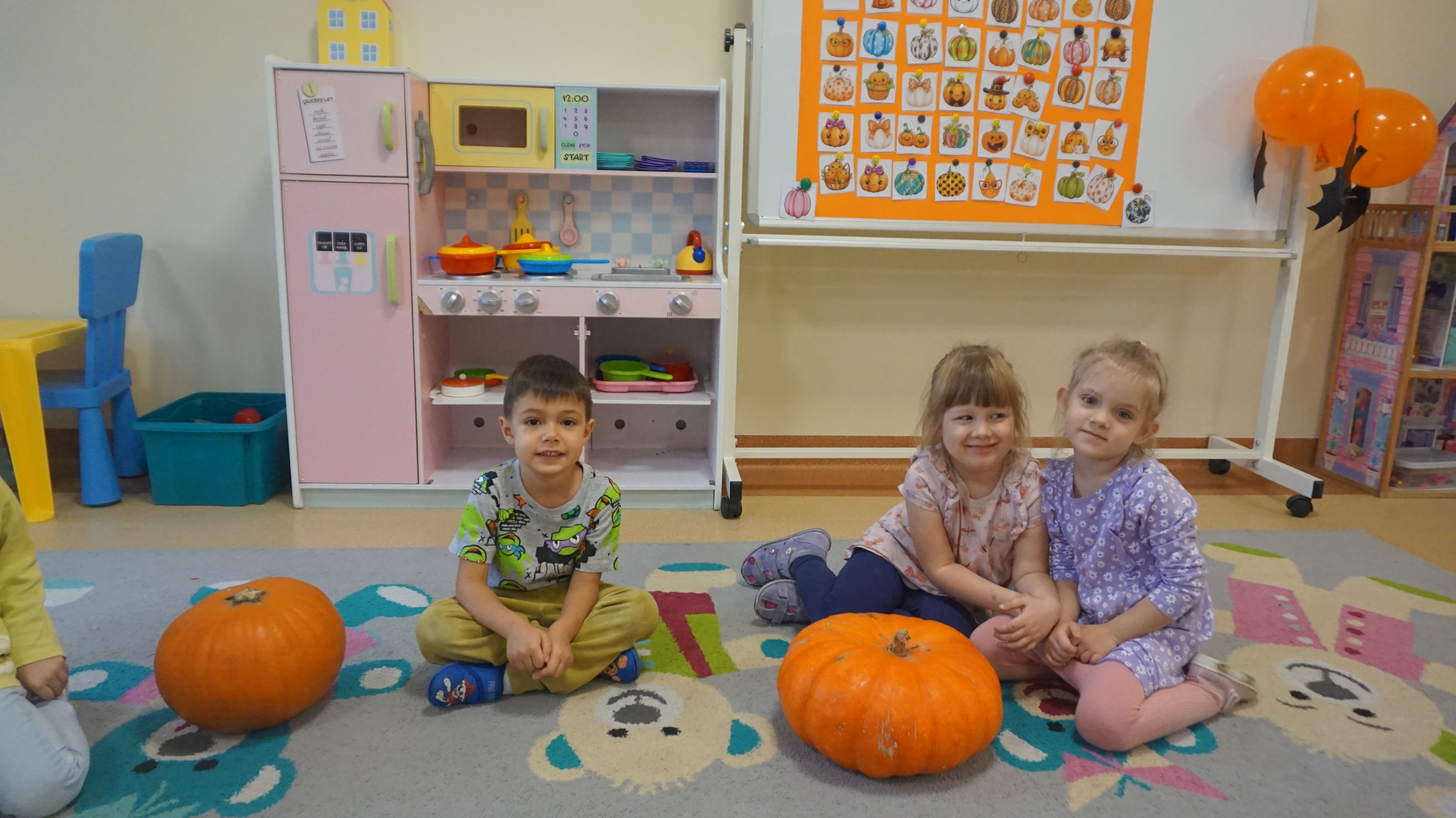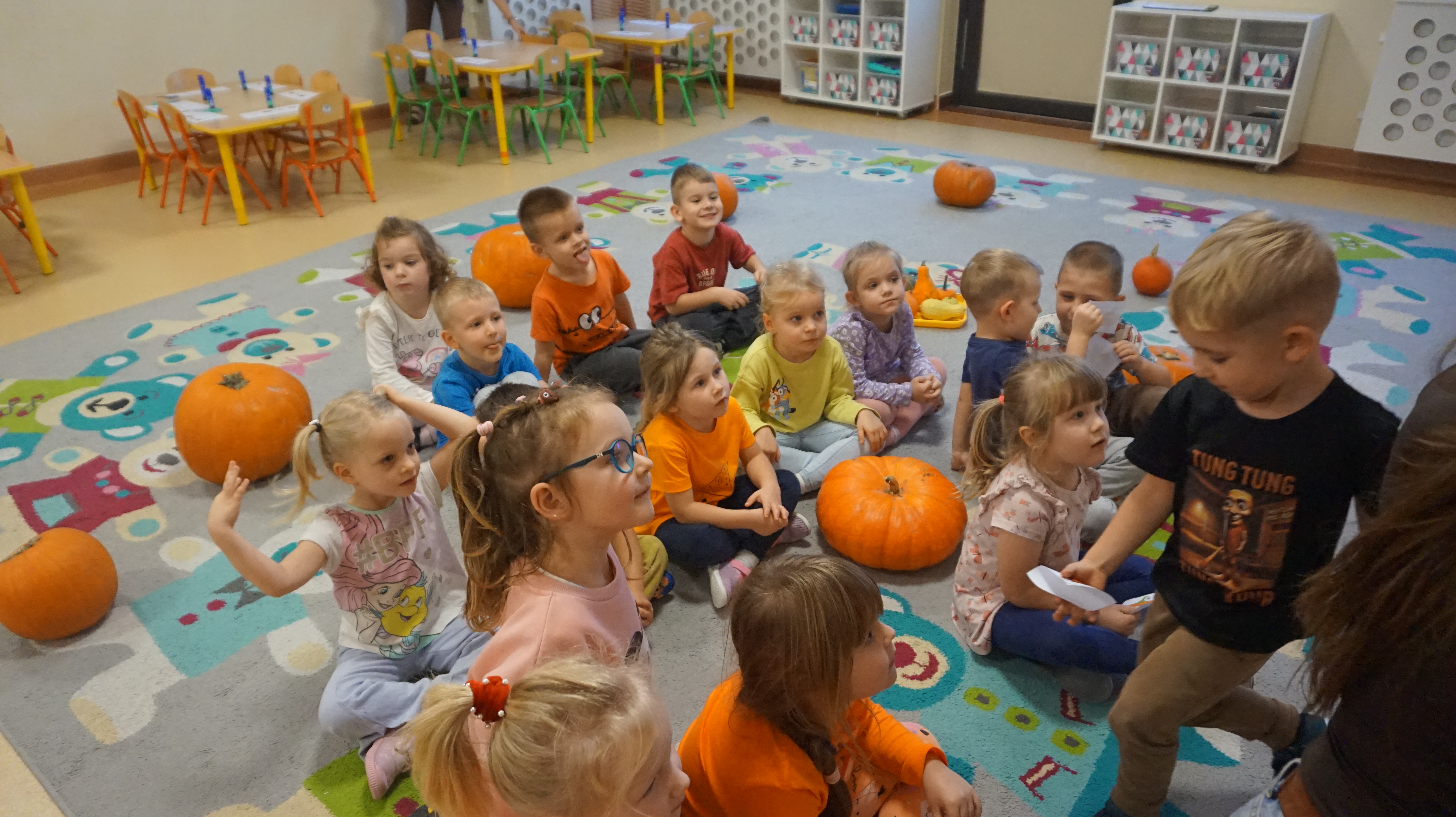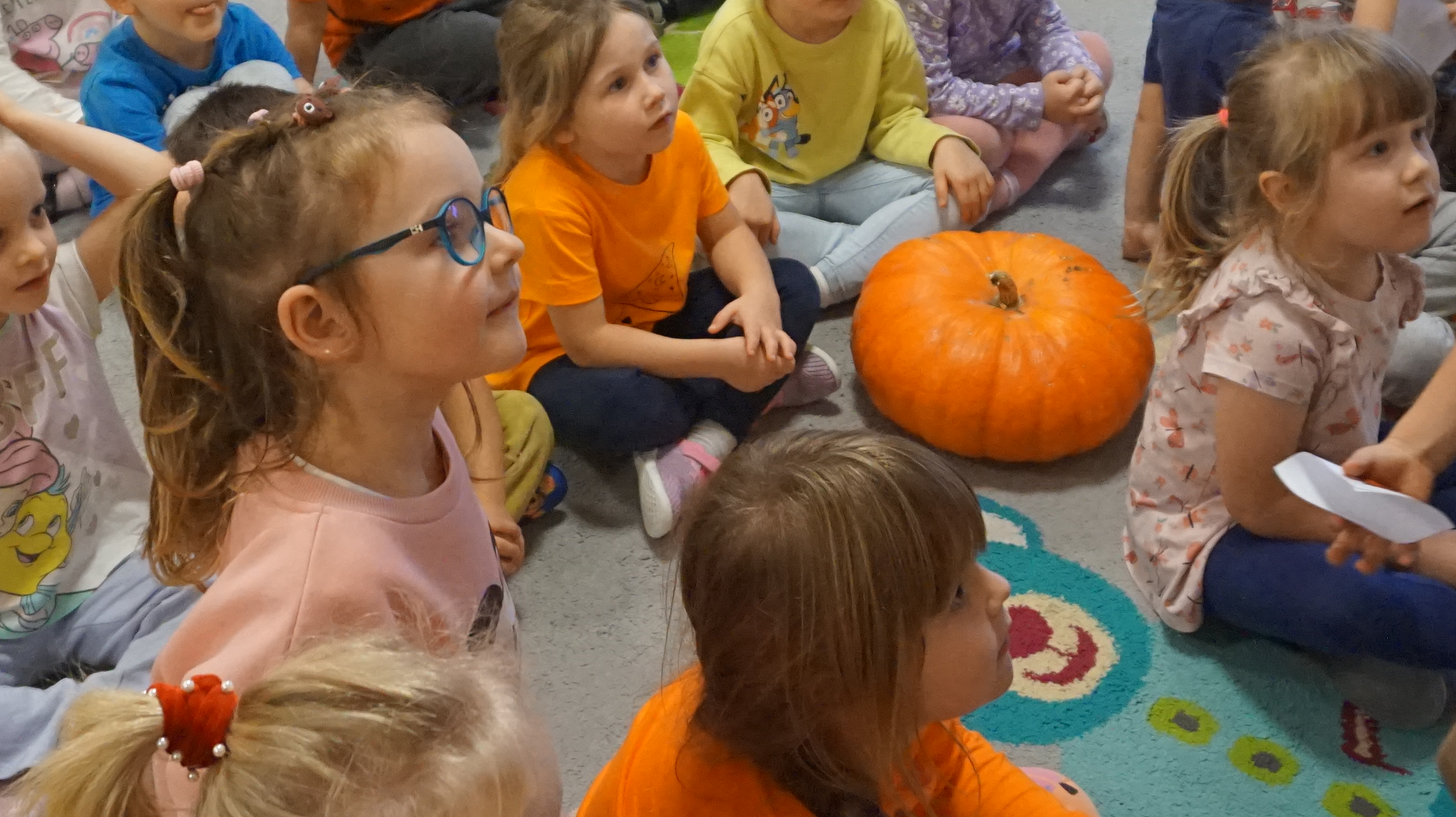 W grupie Biedronki odbyły się zajęcia otwarte dla rodziców. Dzieci poznały to dorodne i okazałe warzywo. Wysłuchały bajki o dyni Dorotce, pokonały dyniowy tor przeszkód oraz wyszukiwały dynie według cech.