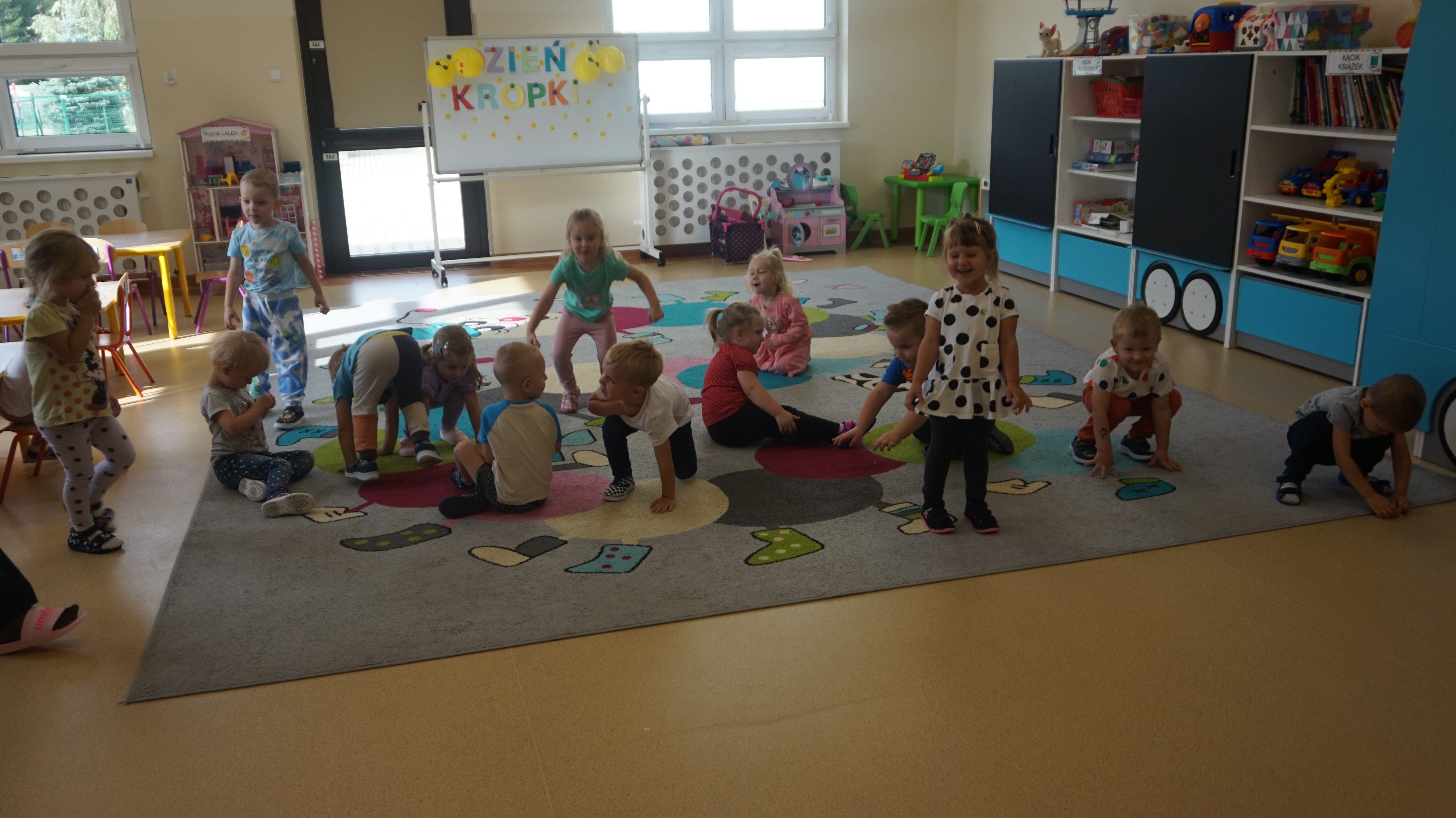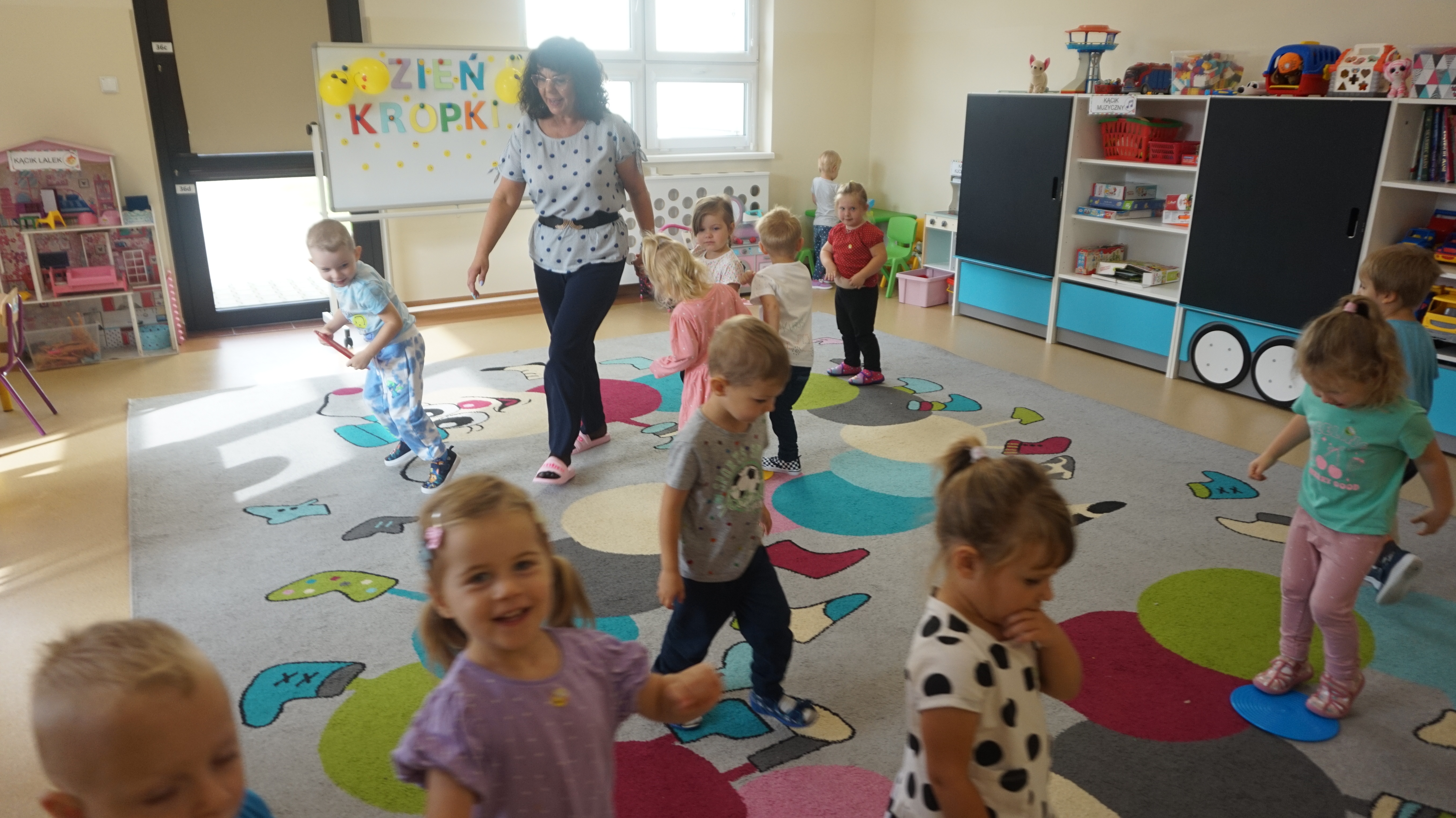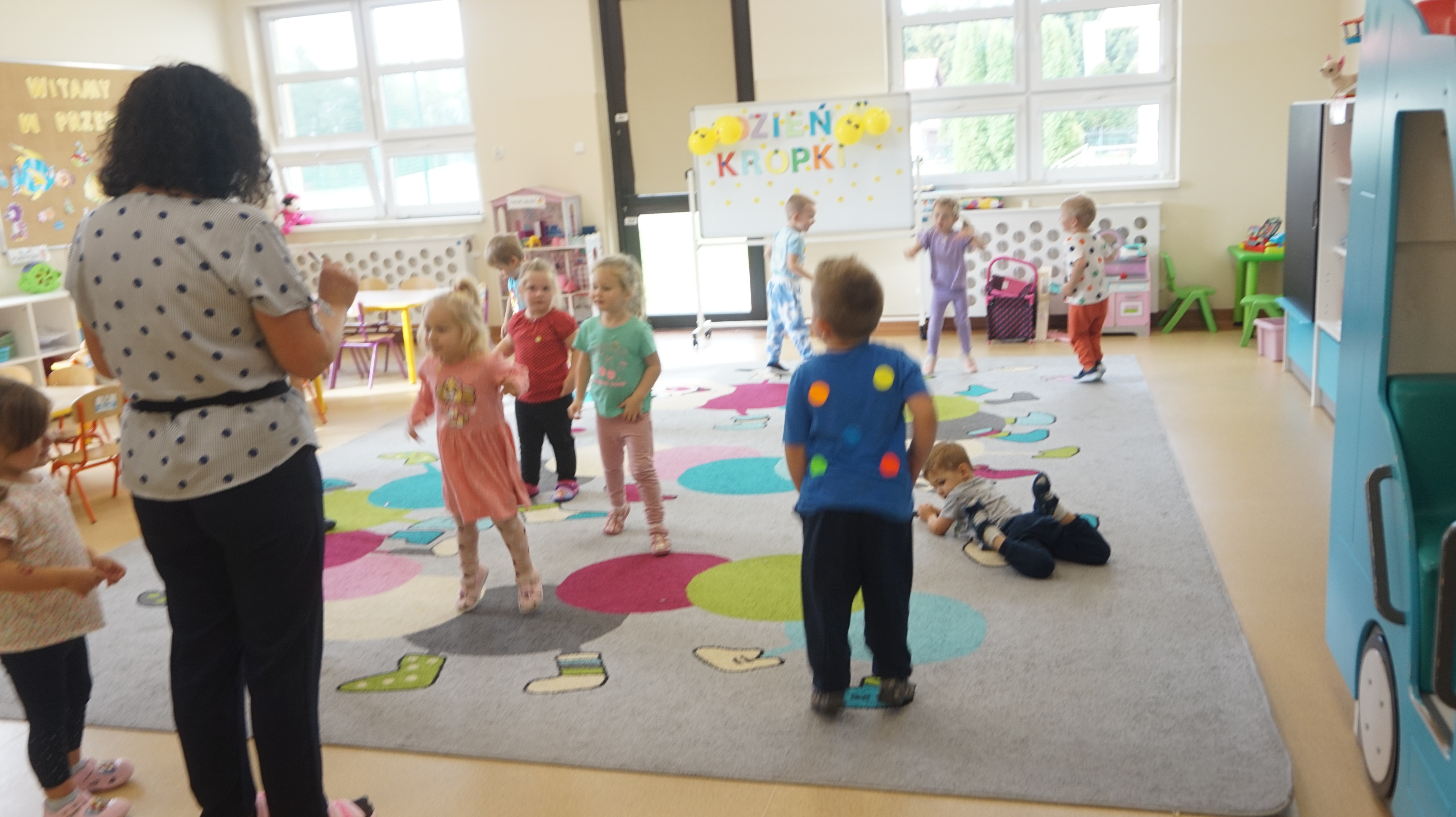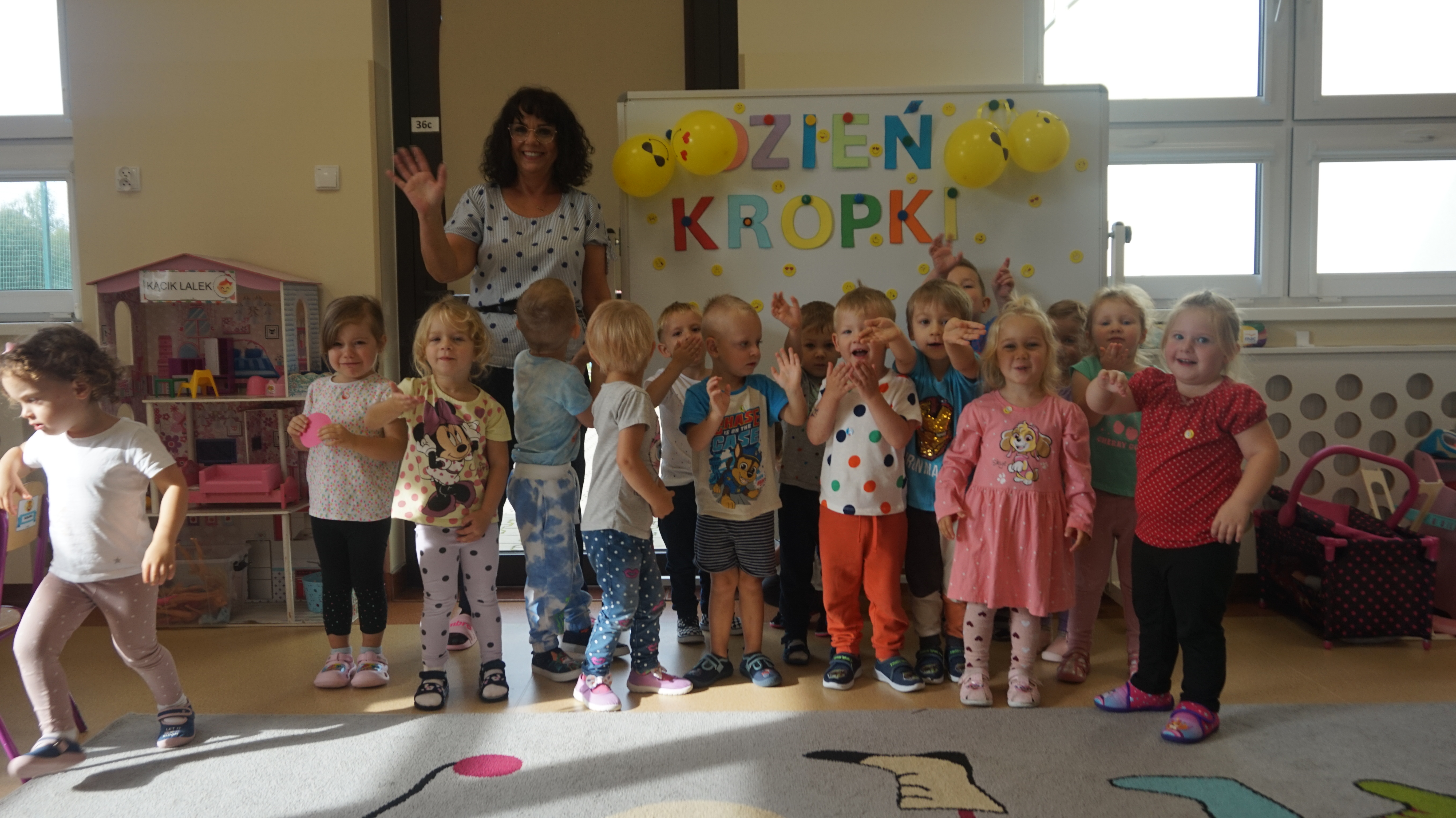 W dniu 15.09.2025 r. w grupie Krasnoludków obchodziliśmy Dzień Kropki. ,,Kropkowej gimnastyce” towarzyszył śmiech i wesoła zabawa. Potem wspólnie przedszkolaki wykonały z kropeczek słoneczko i zrobiliśmy zdjęcia pamiątkowe.