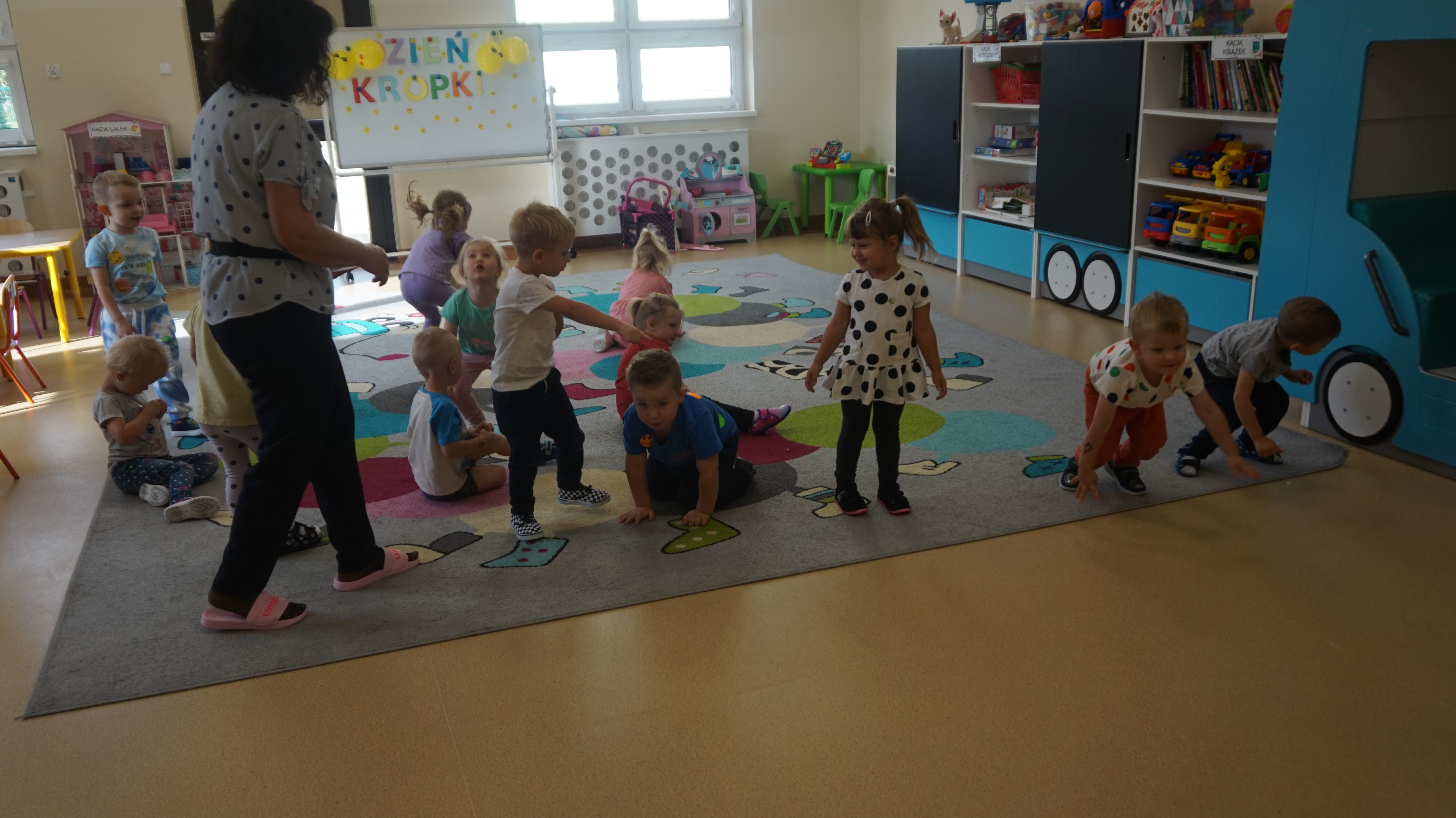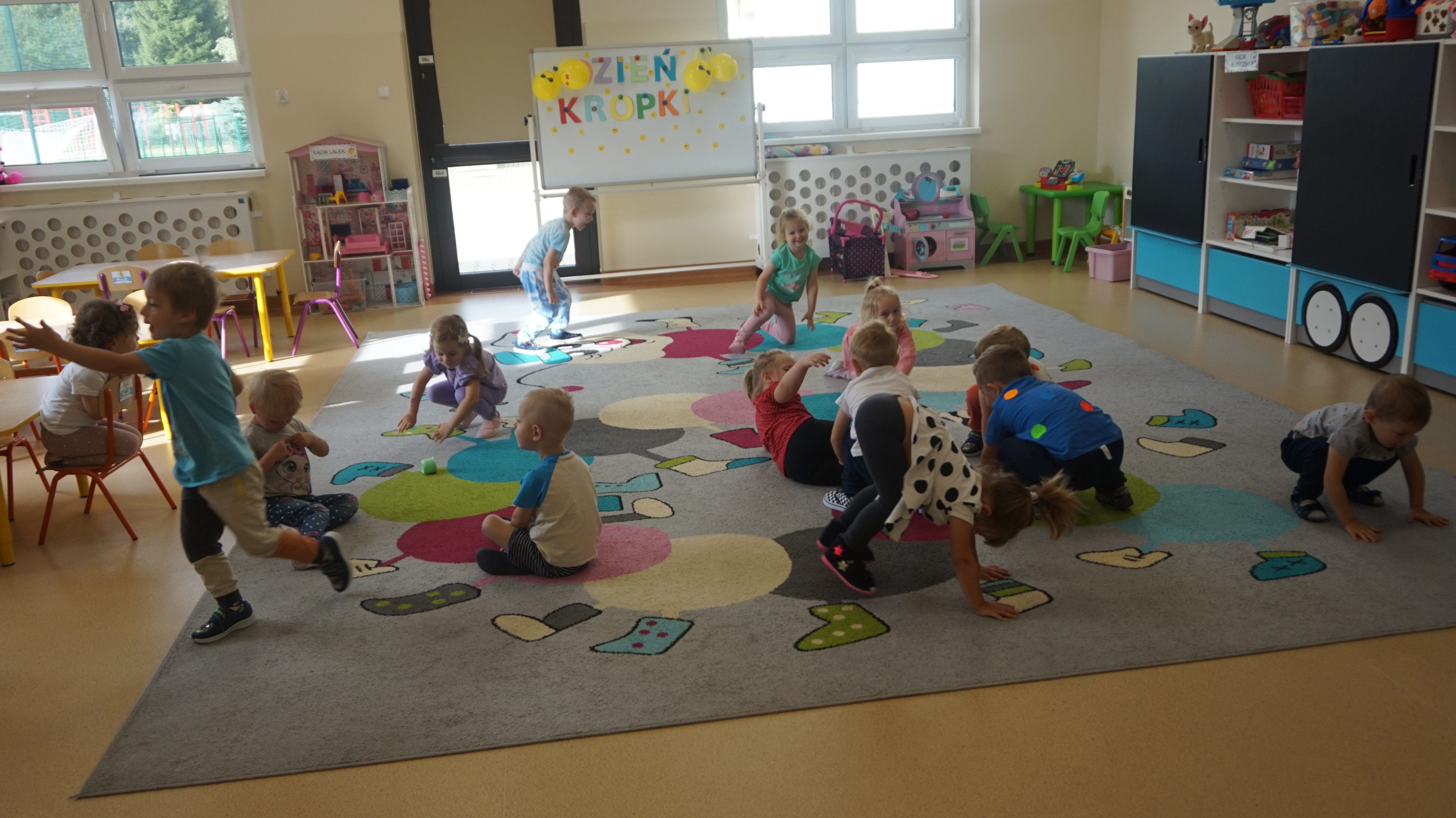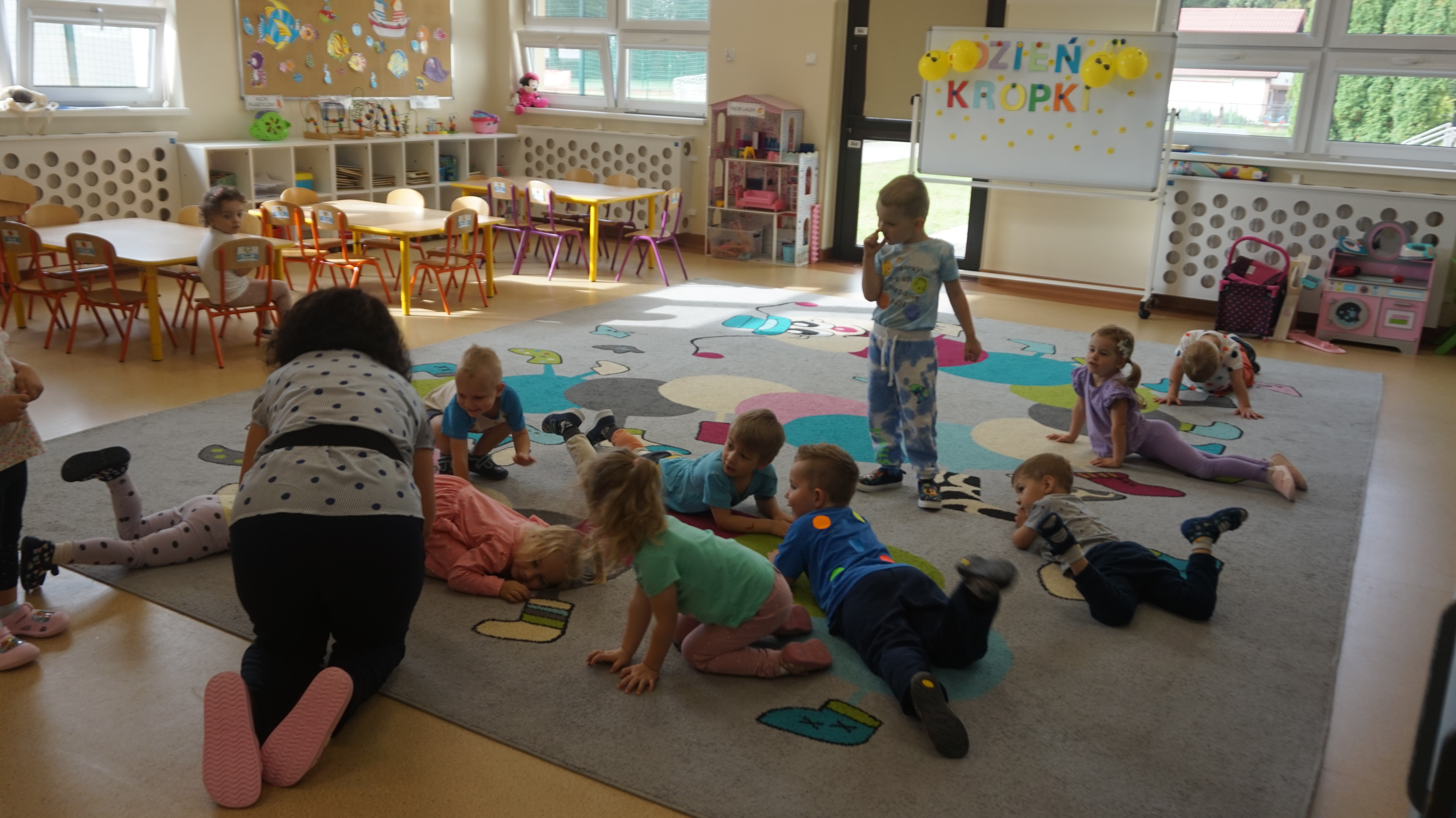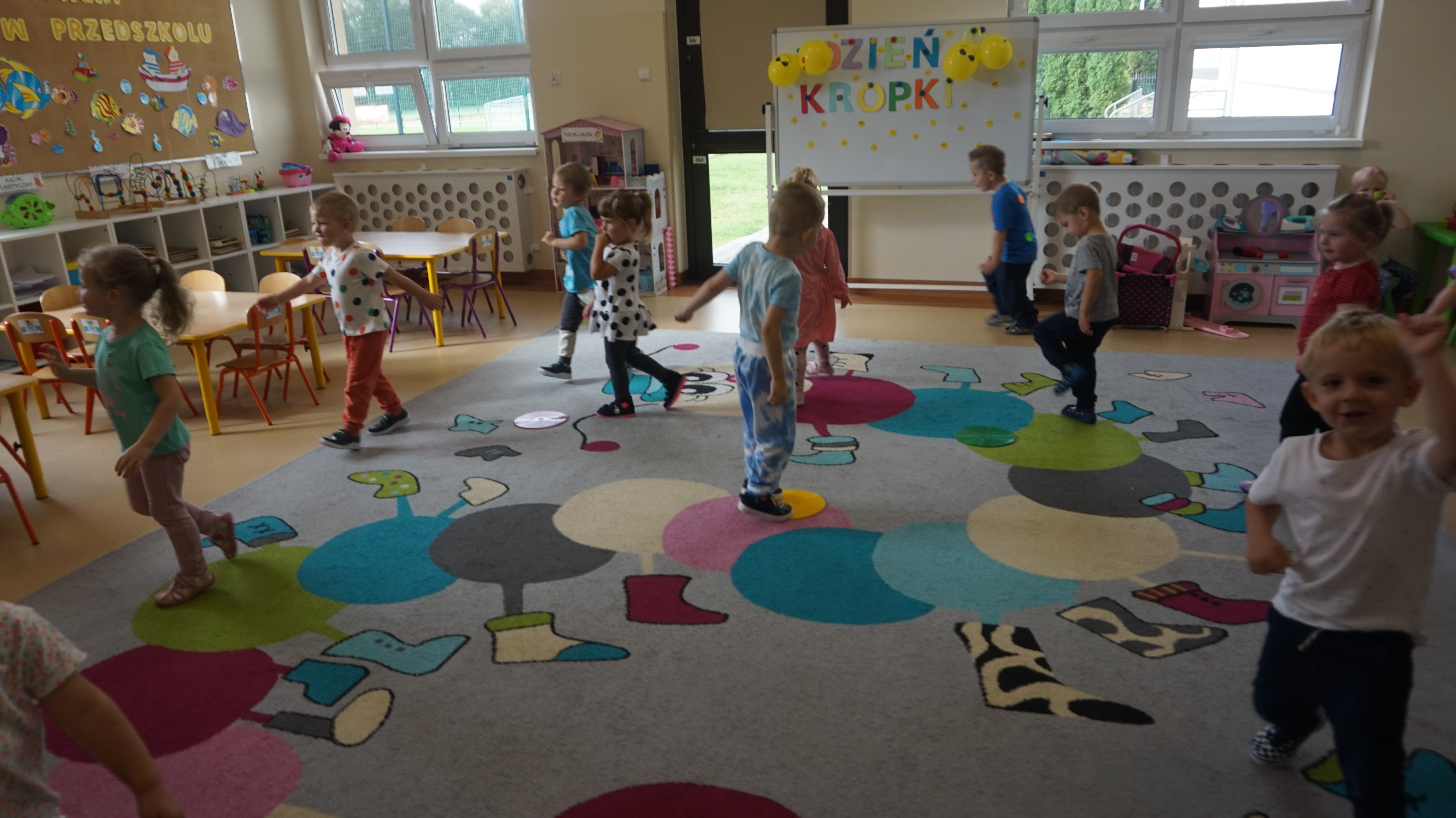 W dniu 15.09.2025 r. w grupie Krasnoludków obchodziliśmy Dzień Kropki. ,,Kropkowej gimnastyce” towarzyszył śmiech i wesoła zabawa. Potem wspólnie przedszkolaki wykonały z kropeczek słoneczko i zrobiliśmy zdjęcia pamiątkowe.