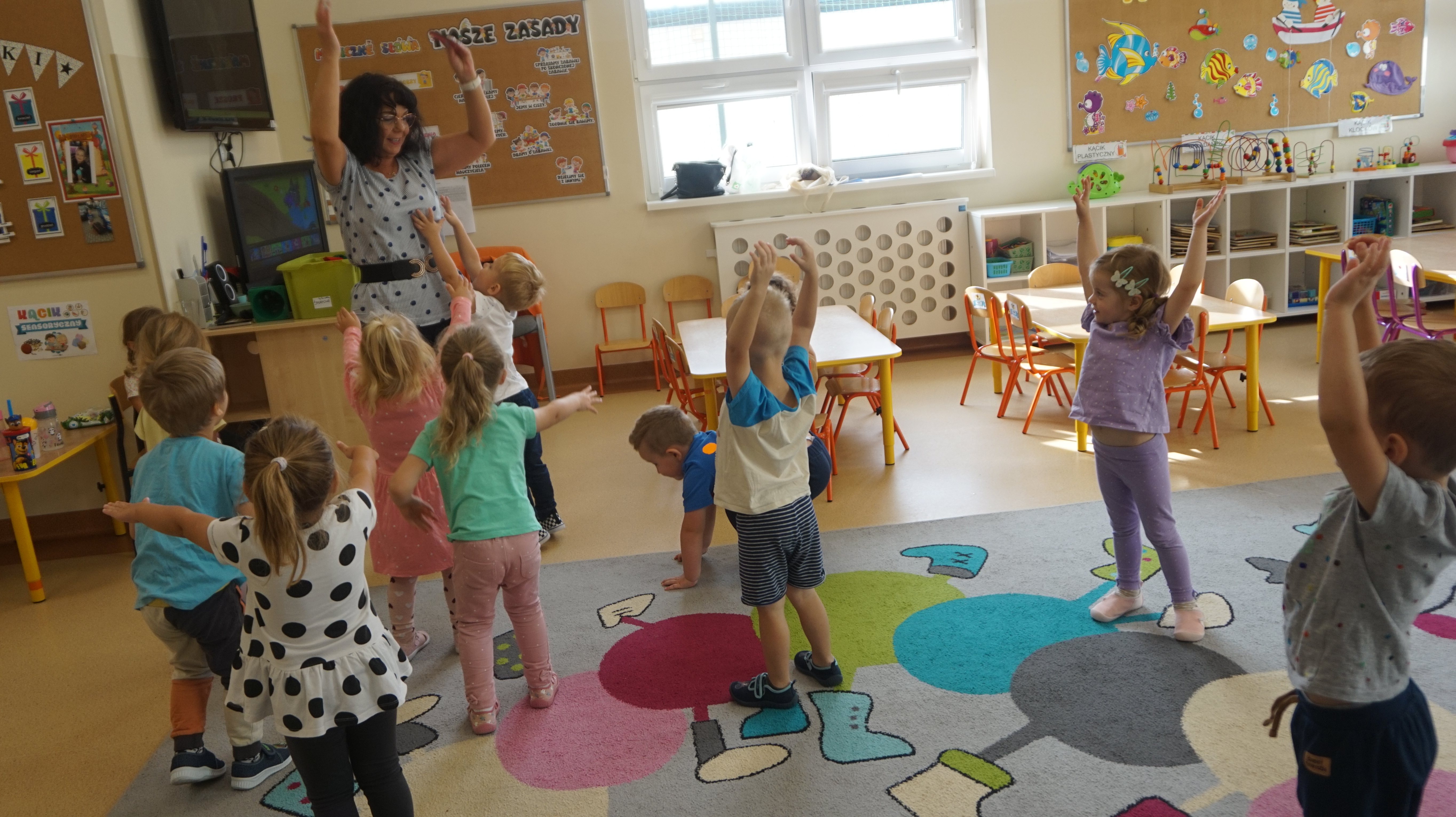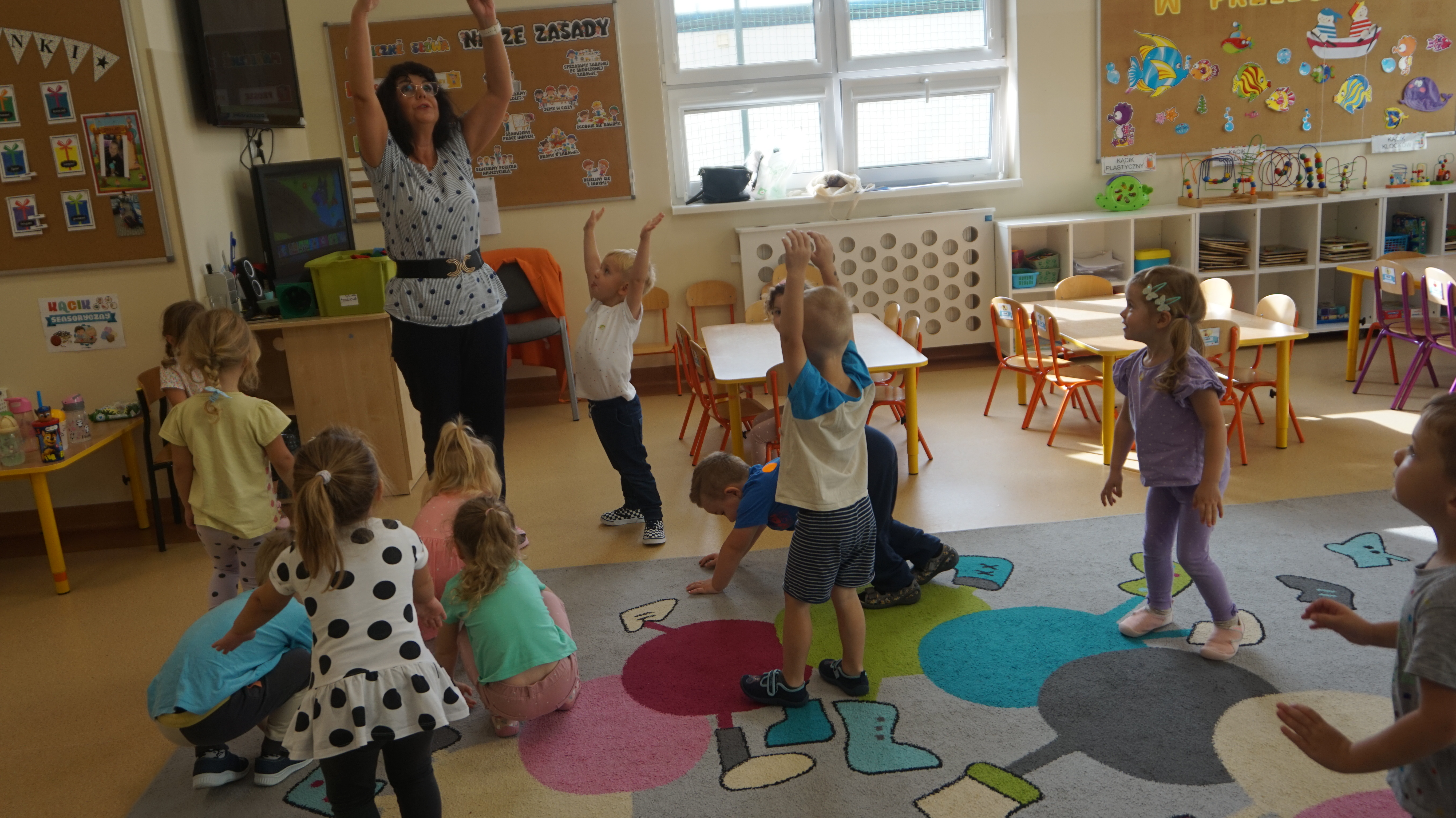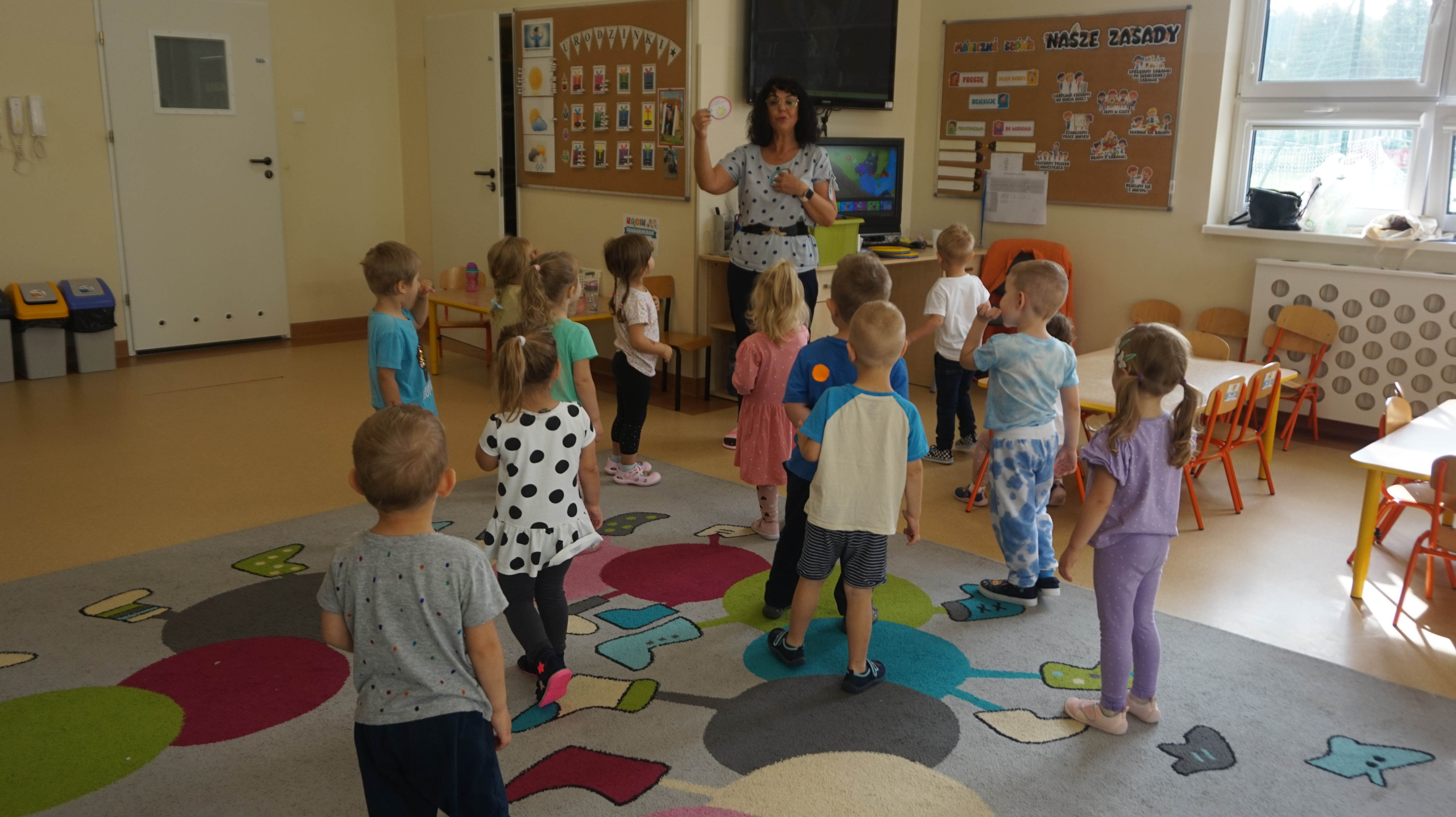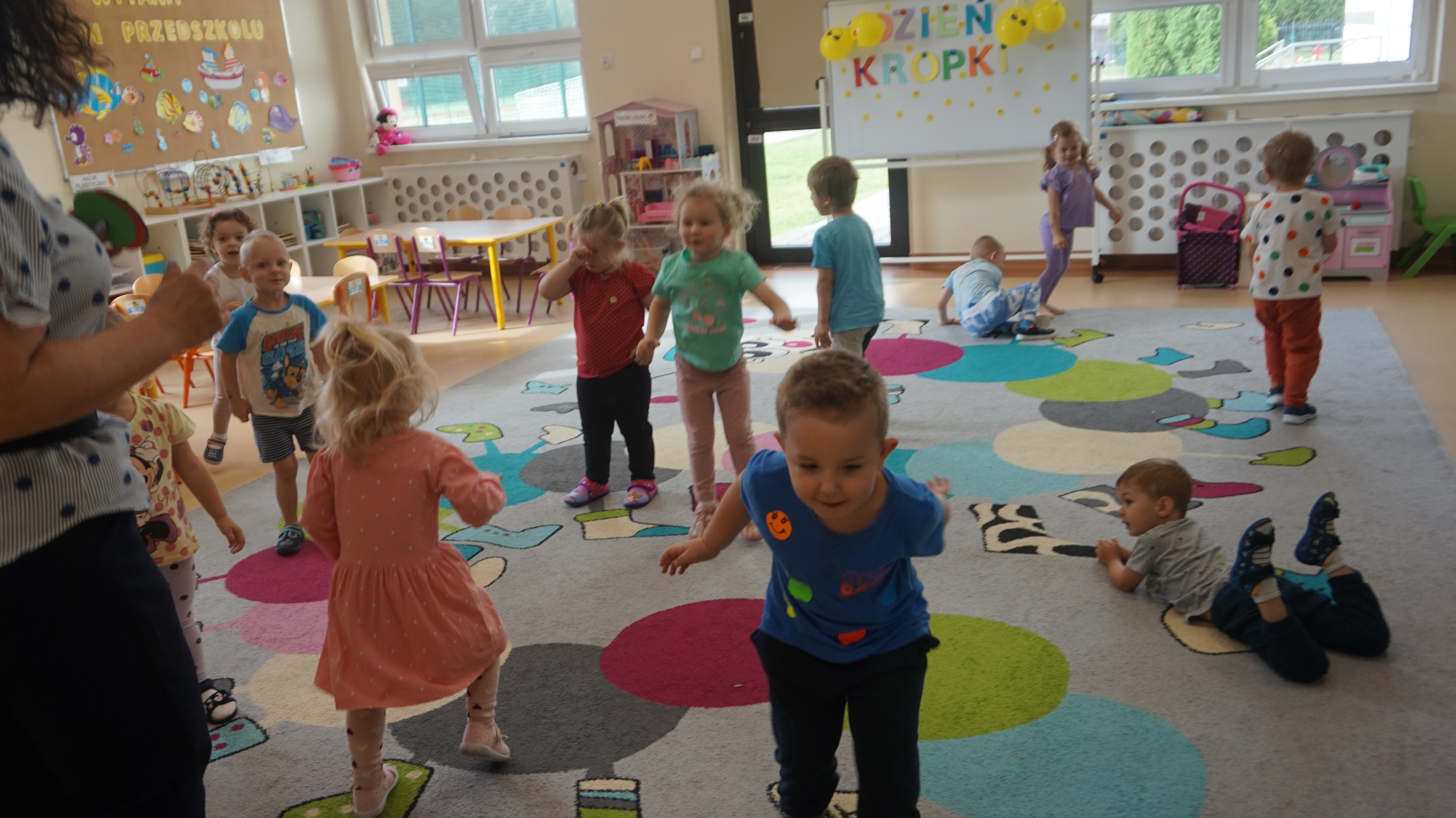 W dniu 15.09.2025 r. w grupie Krasnoludków obchodziliśmy Dzień Kropki. ,,Kropkowej gimnastyce” towarzyszył śmiech i wesoła zabawa. Potem wspólnie przedszkolaki wykonały z kropeczek słoneczko i zrobiliśmy zdjęcia pamiątkowe.