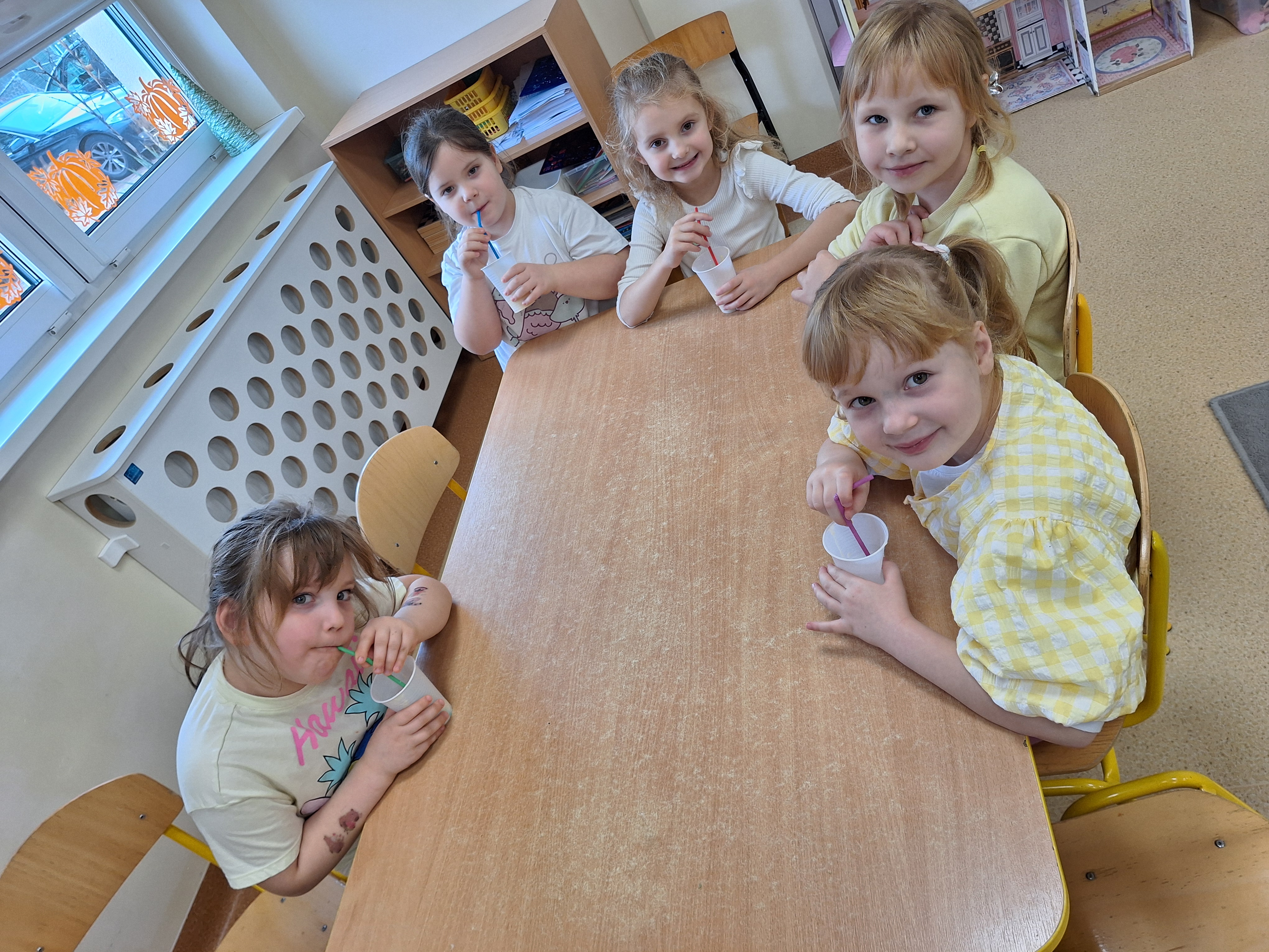 W tym dniu odbyÅ‚y siÄ™ również zajÄ™cia w ramach naszej innowacji pedagogicznej „Zdrowo i kolorowo”. Z tej okazji przygotowaliÅ›my wspólnie pyszny koktajl owocowy, który dzieci wypiÅ‚y ze smakiem.