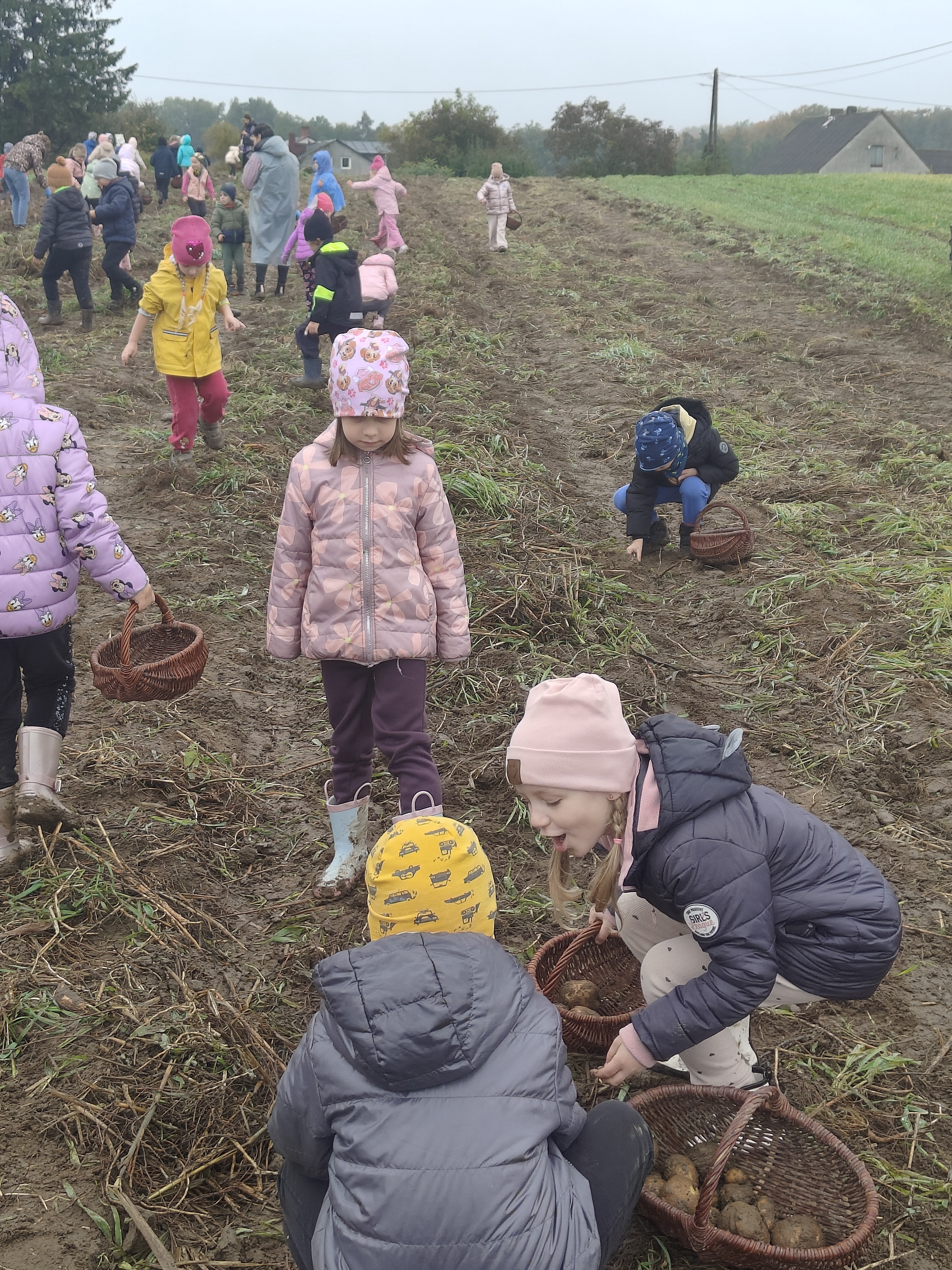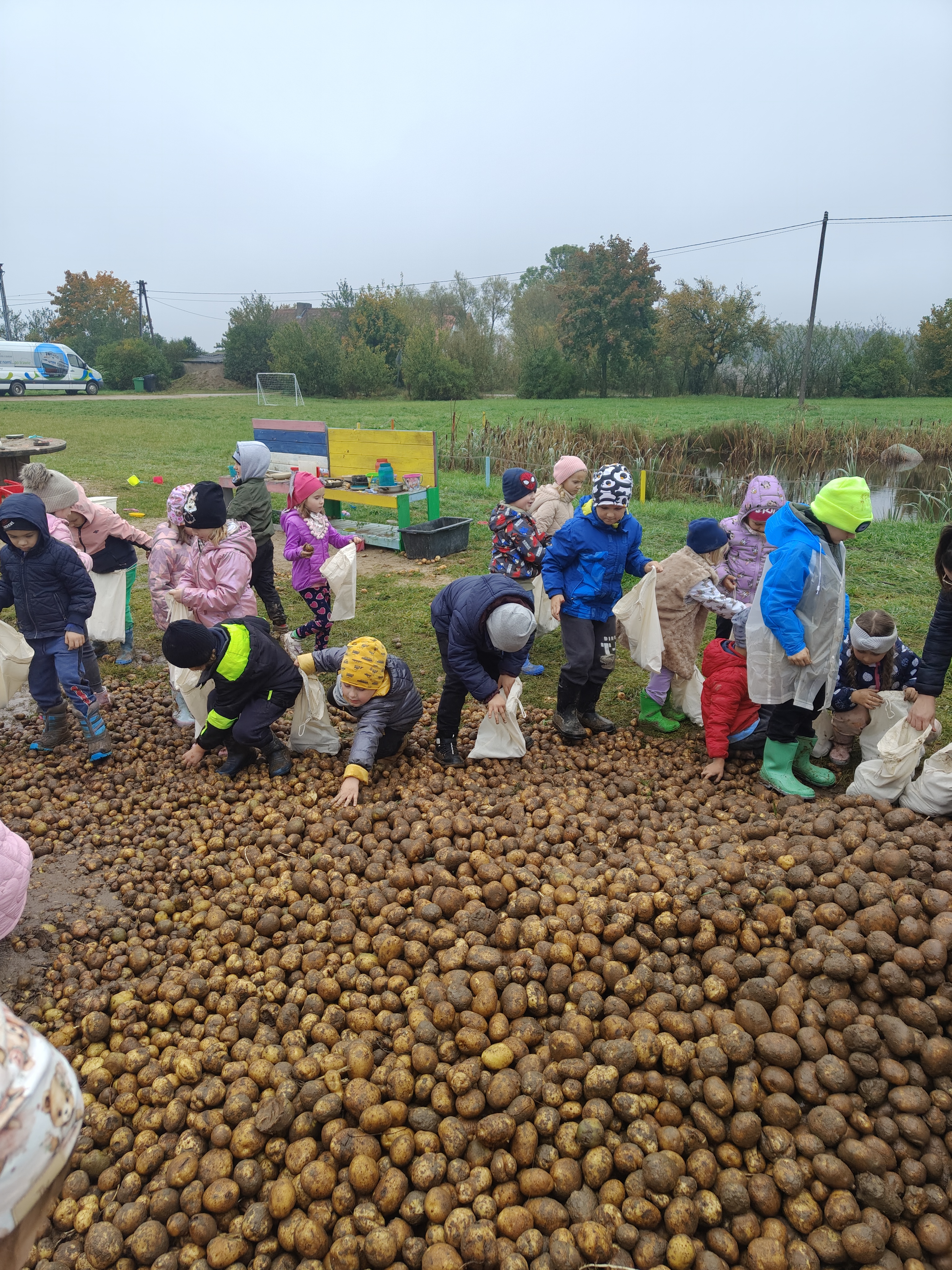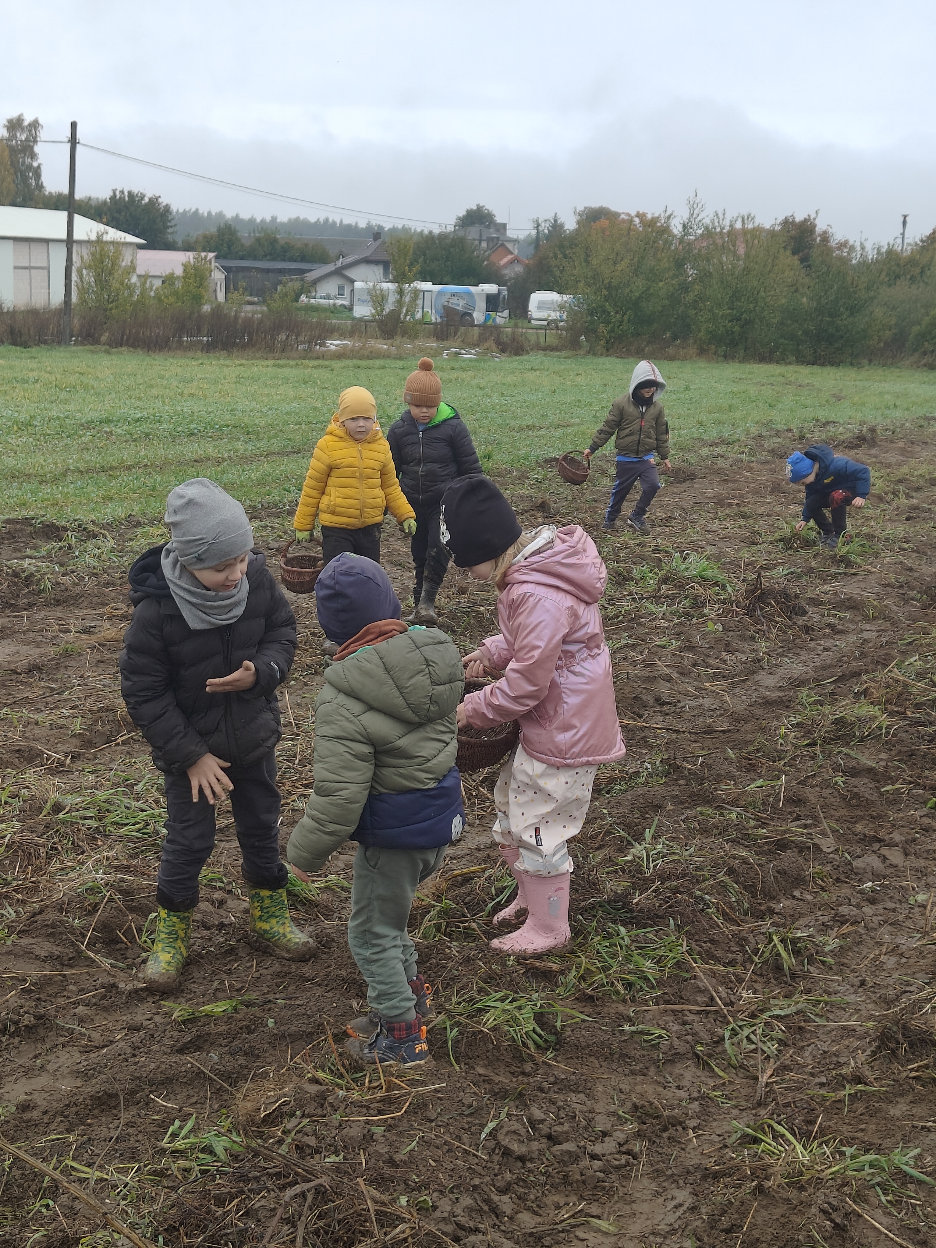 Jedną z jesiennych atrakcji dla naszych przedszkolaków były wykopki, na które udały się do gospodarstwa w Lubstynku. Dzieci miały okazję zobaczyć, jak wykopuje się ziemniaki, ale największą atrakcją było ich zbieranie oraz wspólne zabawy w polu. Zapał i zaangażowanie dzieci w pracę zaskoczył nas wszystkich, a zbieranie ziemniaków okazało się nie tylko pracą, ale dobrą zabawą. Przedszkolaki dały radę i pozbierały wszystkie ziemniaki przygotowane do zebrania. Uwieńczeniem zbierania ziemniaków było wspólne ognisko oraz warsztaty których tematem wiodącym był ziemniak. Lekko zmęczeni, lecz bardzo zadowoleni z workiem ziemniaków wróciliśmy do przedszkola.