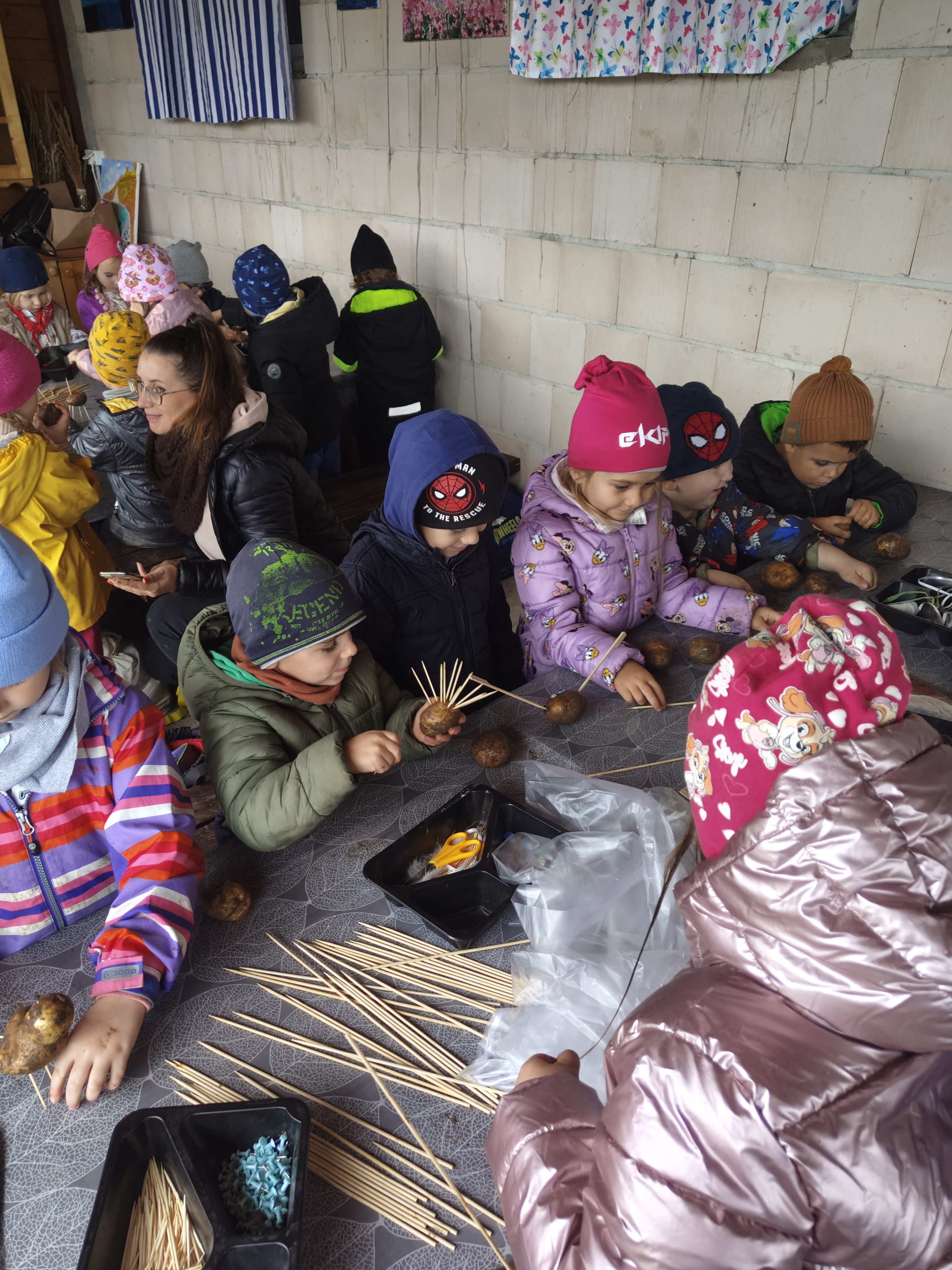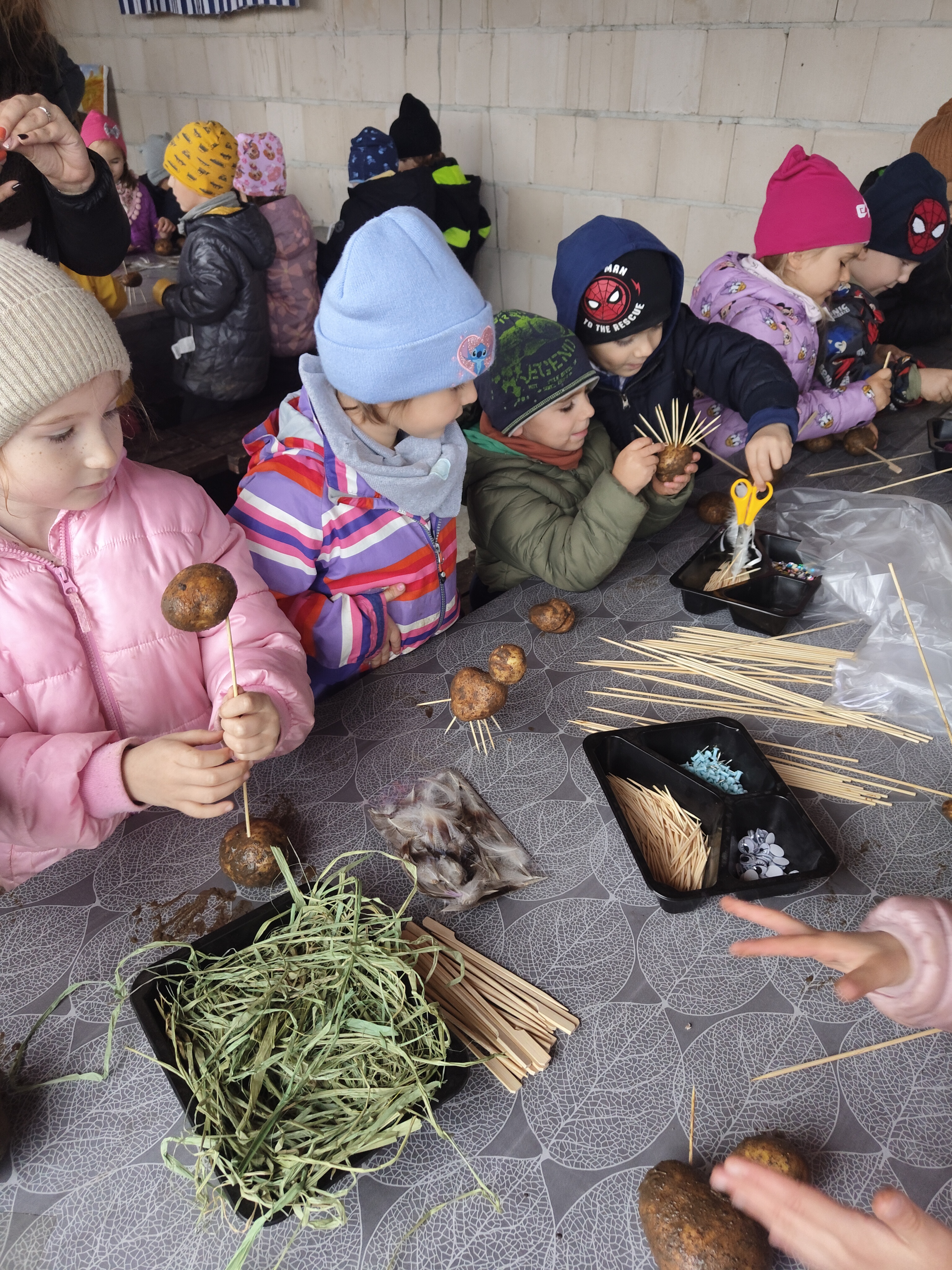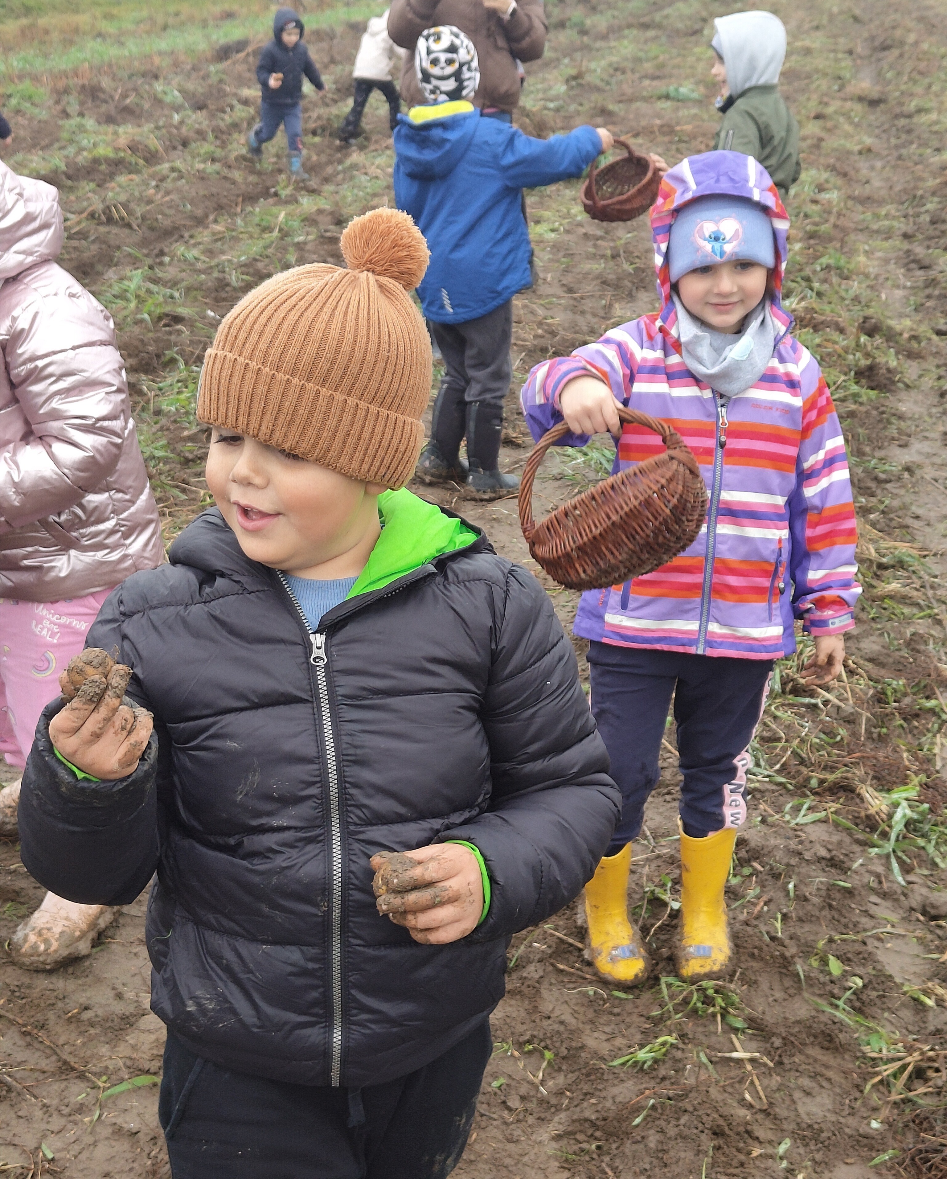 Jedną z jesiennych atrakcji dla naszych przedszkolaków były wykopki, na które udały się do gospodarstwa w Lubstynku. Dzieci miały okazję zobaczyć, jak wykopuje się ziemniaki, ale największą atrakcją było ich zbieranie oraz wspólne zabawy w polu. Zapał i zaangażowanie dzieci w pracę zaskoczył nas wszystkich, a zbieranie ziemniaków okazało się nie tylko pracą, ale dobrą zabawą. Przedszkolaki dały radę i pozbierały wszystkie ziemniaki przygotowane do zebrania. Uwieńczeniem zbierania ziemniaków było wspólne ognisko oraz warsztaty których tematem wiodącym był ziemniak. Lekko zmęczeni, lecz bardzo zadowoleni z workiem ziemniaków wróciliśmy do przedszkola.