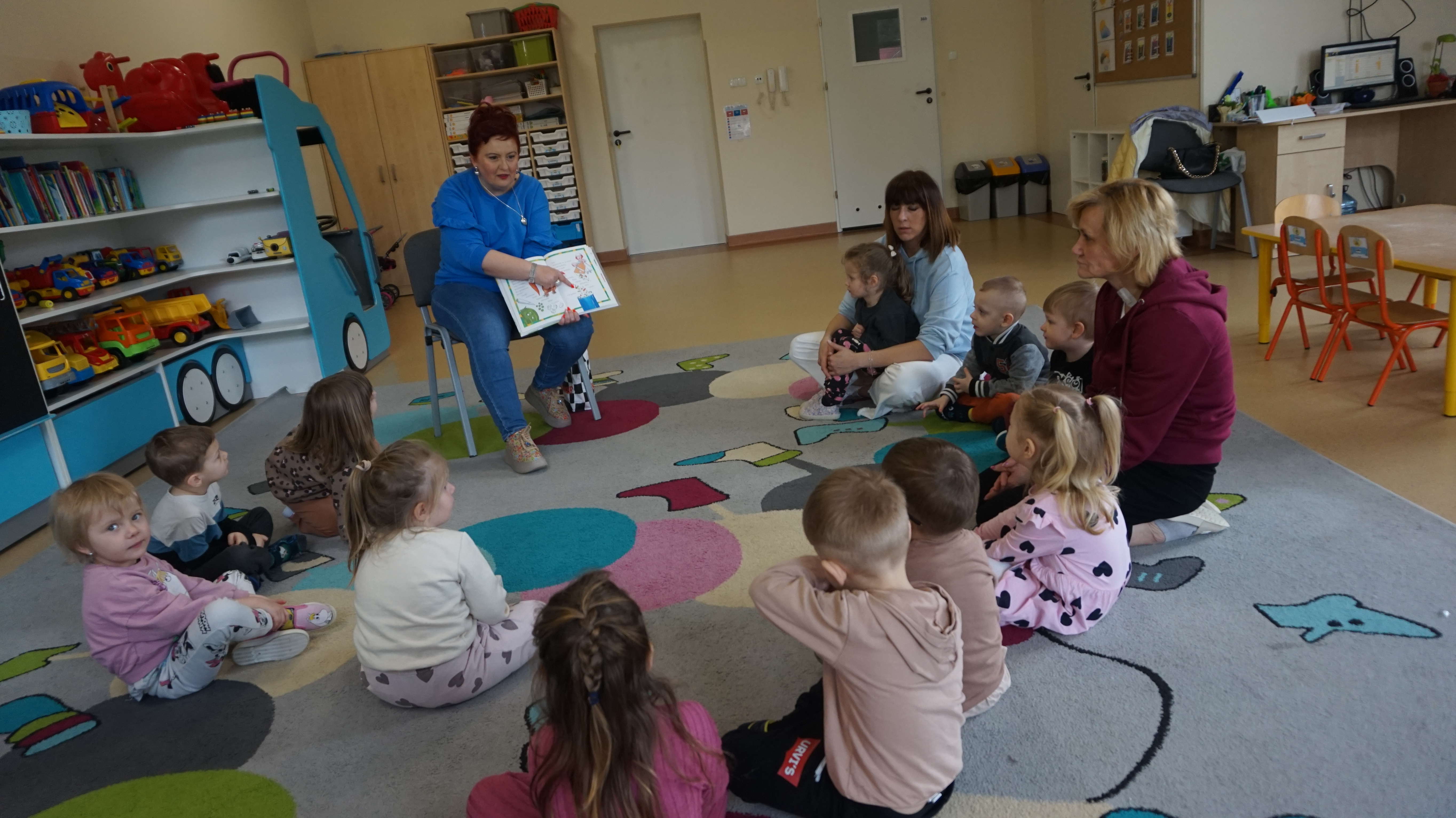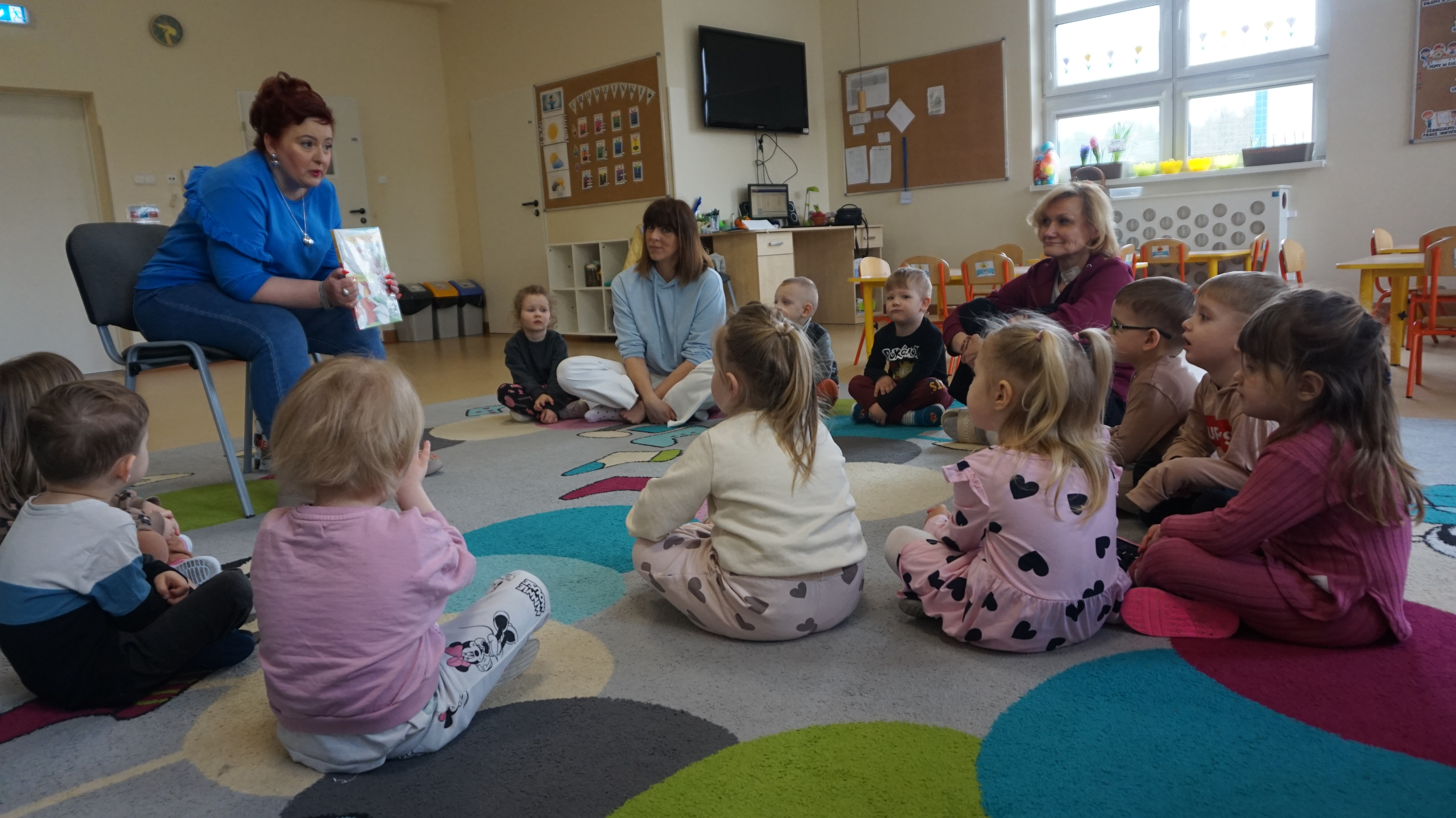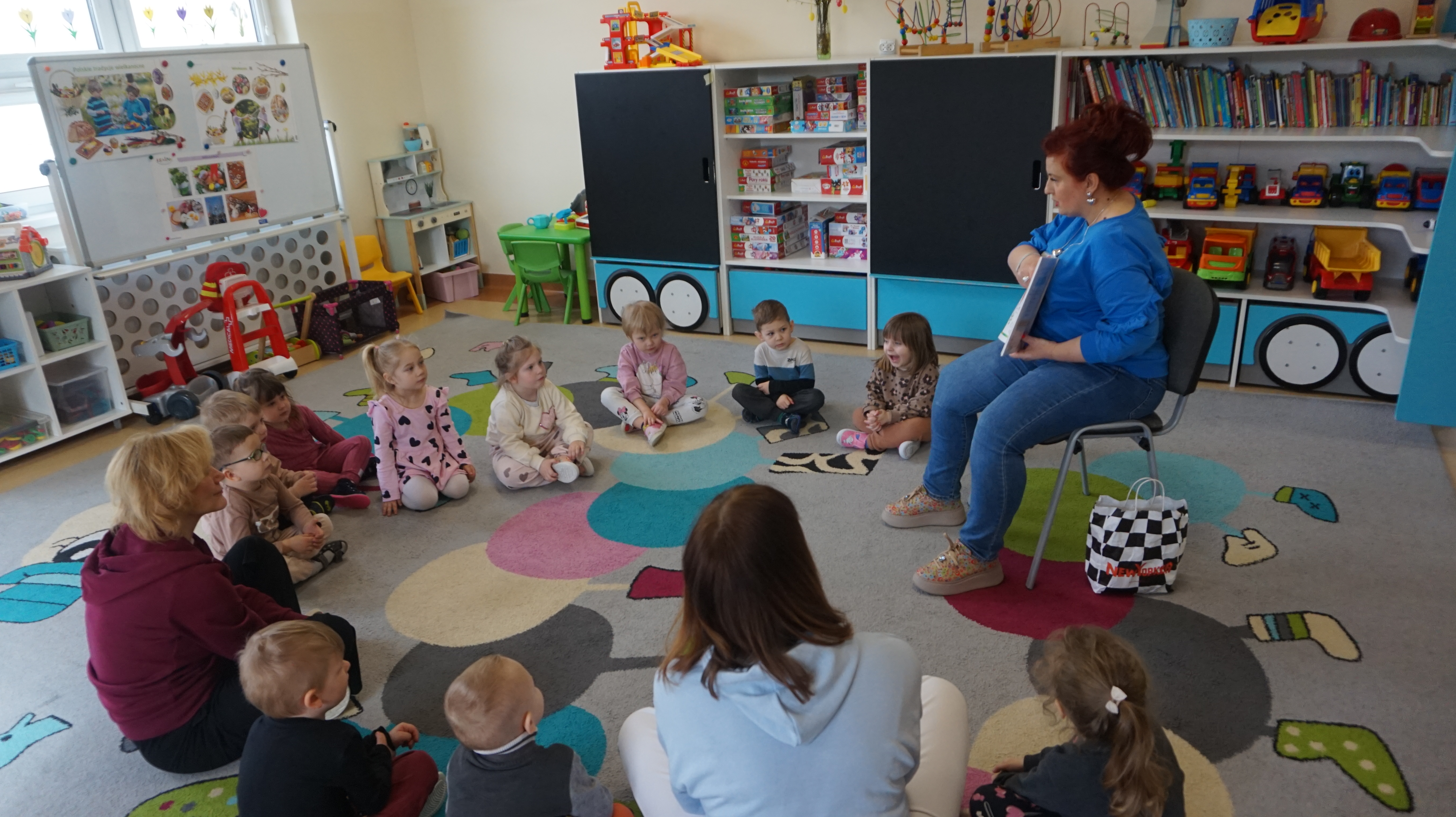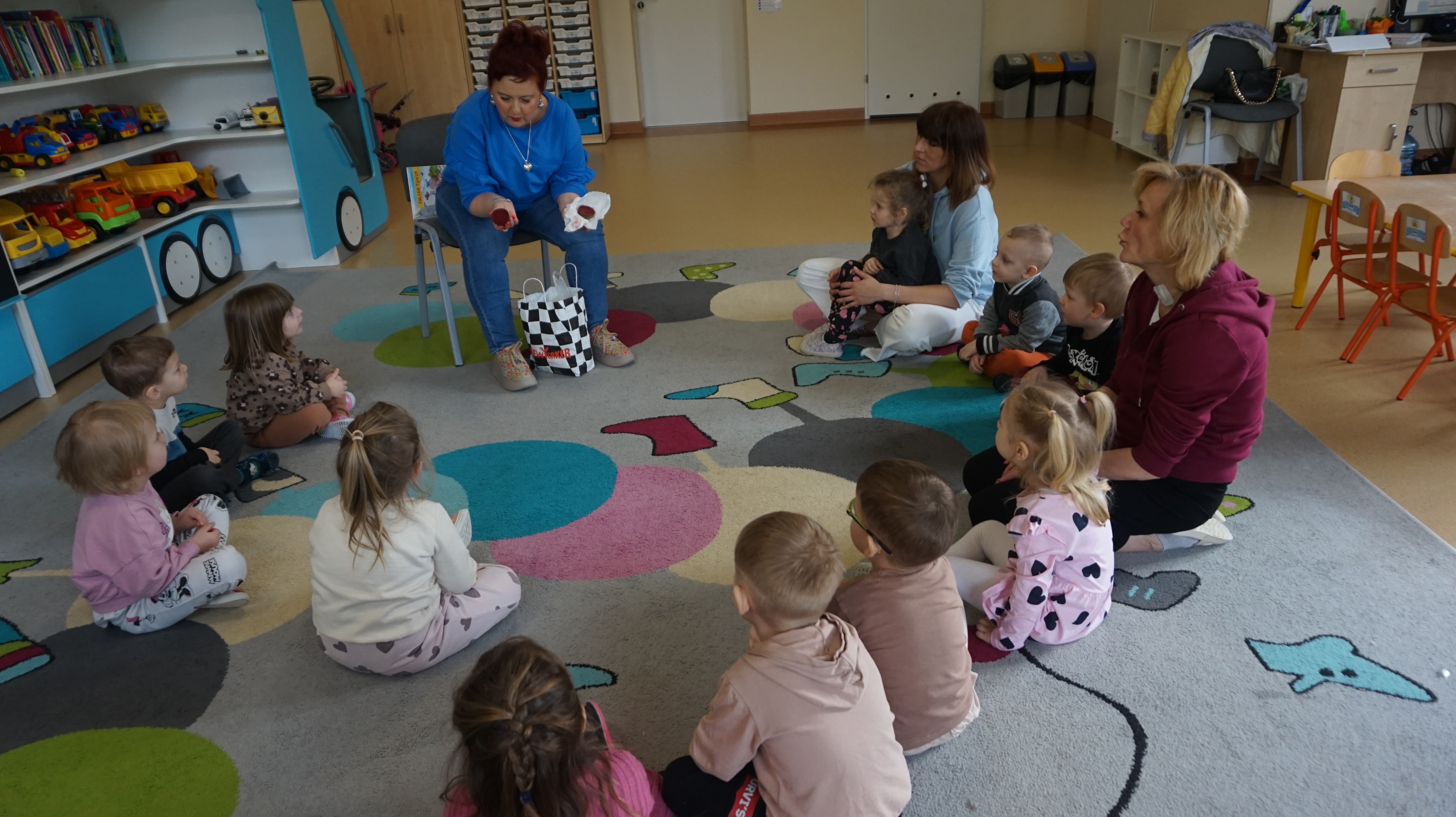 W naszej grupie trzylatków odbyły się zajęcia z udziałem pani z biblioteki pedagogicznej. Spotkanie rozpoczęło się od wysłuchania ciekawej bajki o warzywach, która wprowadziła dzieci w temat zdrowego odżywiania. Następnie przedszkolaki miały okazję poznać różne warzywa wszystkimi zmysłami – mogły je obejrzeć, dotknąć oraz powąchać. Podczas rozmowy dzieci chętnie dzieliły się swoimi spostrzeżeniami i doświadczeniami. Na zakończenie zajęć trzylatki z zaangażowaniem kolorowały obrazki przedstawiające warzywa, utrwalając zdobytą wiedzę. Było to bardzo ciekawe i rozwijające spotkanie, które dostarczyło dzieciom wielu pozytywnych wrażeń.