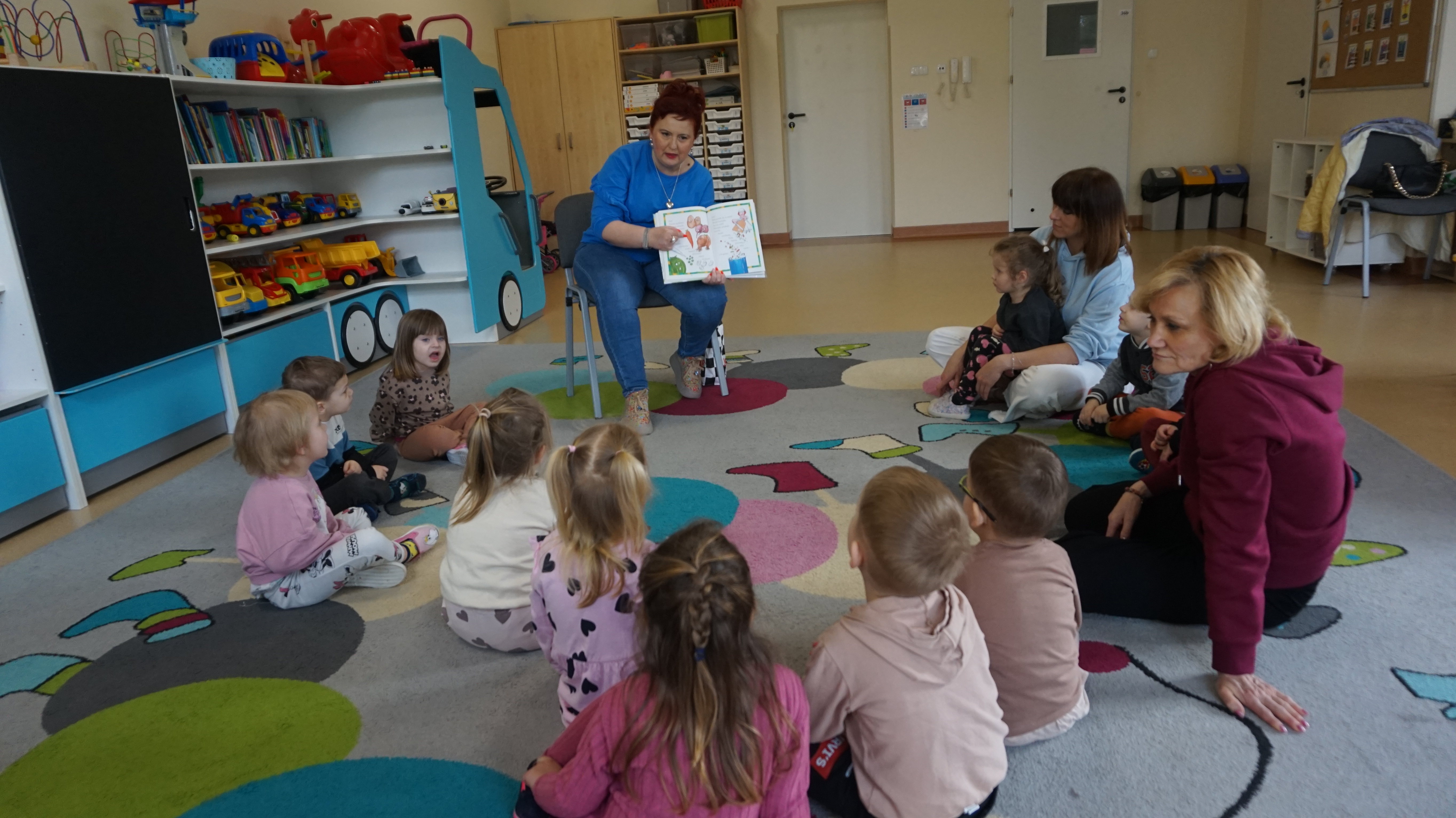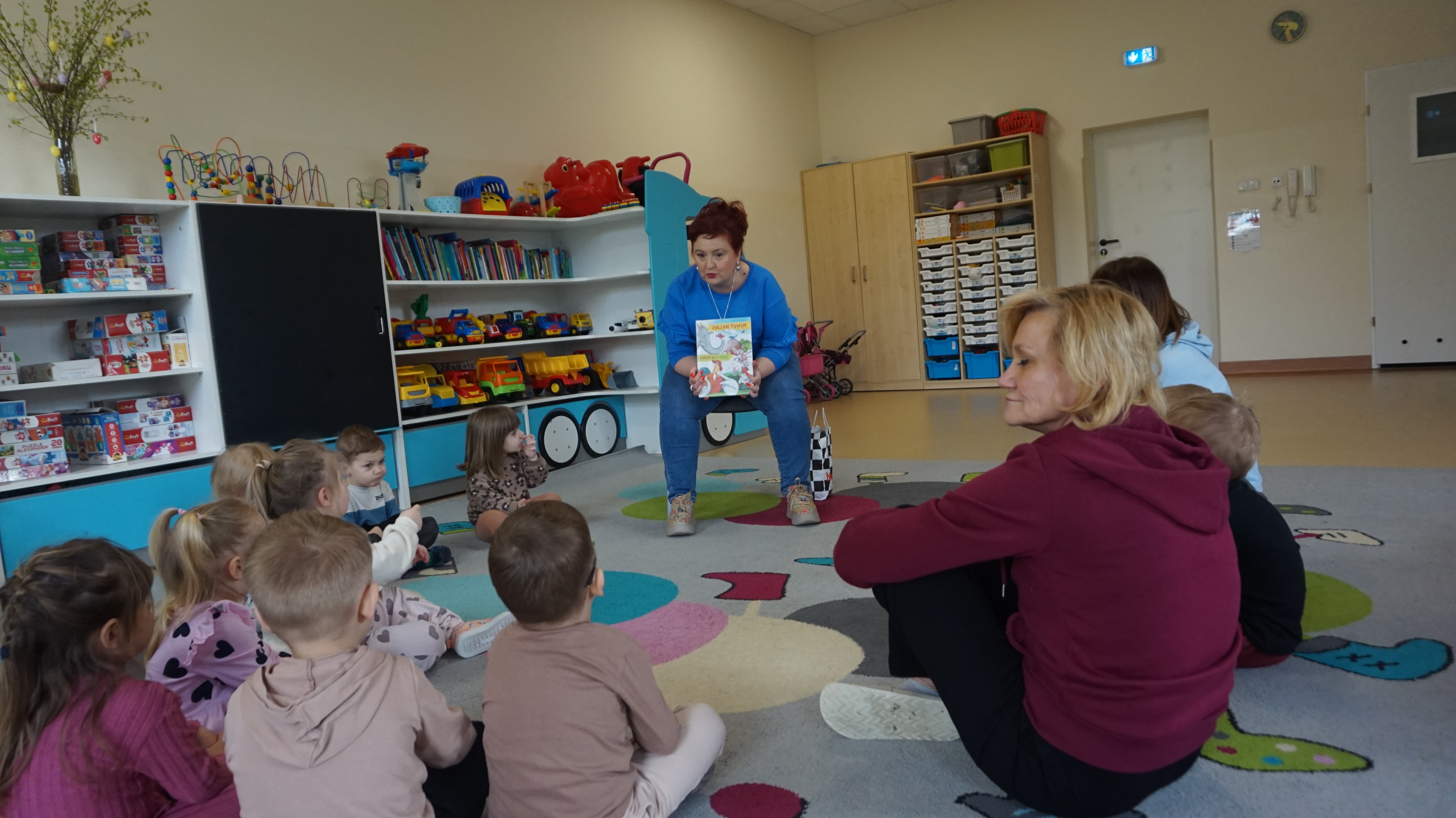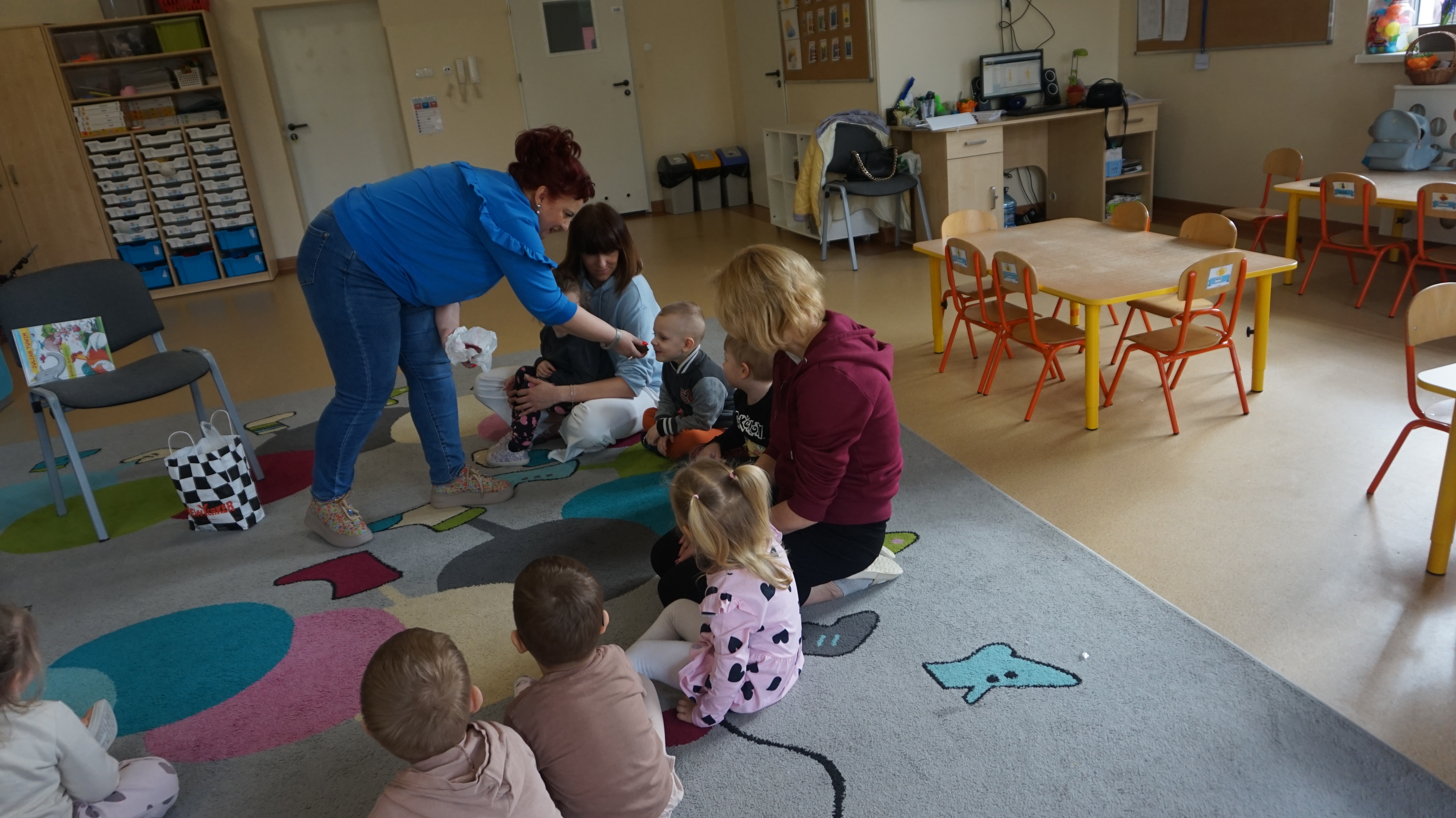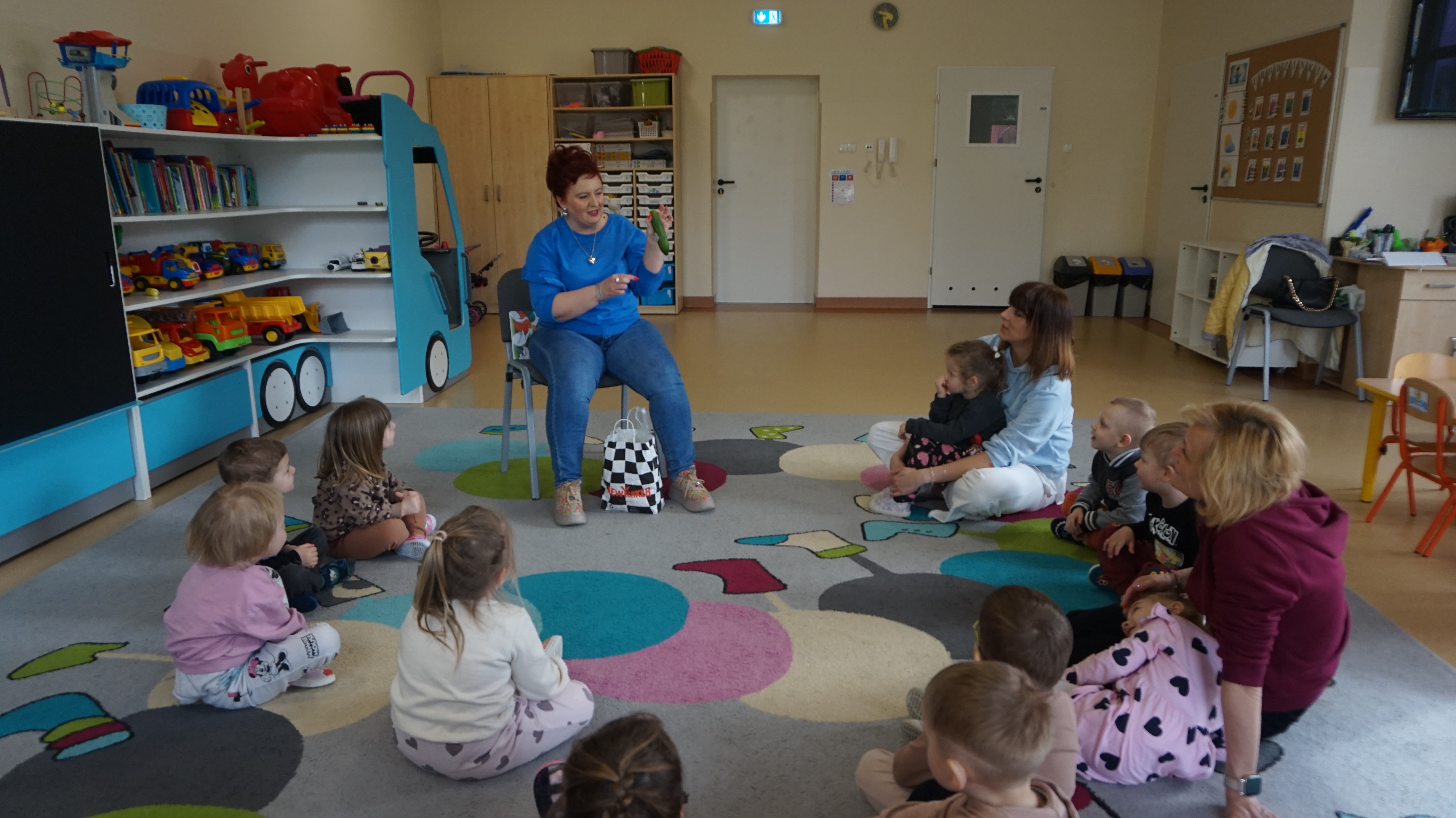 W naszej grupie trzylatków odbyły się zajęcia z udziałem pani z biblioteki pedagogicznej. Spotkanie rozpoczęło się od wysłuchania ciekawej bajki o warzywach, która wprowadziła dzieci w temat zdrowego odżywiania. Następnie przedszkolaki miały okazję poznać różne warzywa wszystkimi zmysłami – mogły je obejrzeć, dotknąć oraz powąchać. Podczas rozmowy dzieci chętnie dzieliły się swoimi spostrzeżeniami i doświadczeniami. Na zakończenie zajęć trzylatki z zaangażowaniem kolorowały obrazki przedstawiające warzywa, utrwalając zdobytą wiedzę. Było to bardzo ciekawe i rozwijające spotkanie, które dostarczyło dzieciom wielu pozytywnych wrażeń.