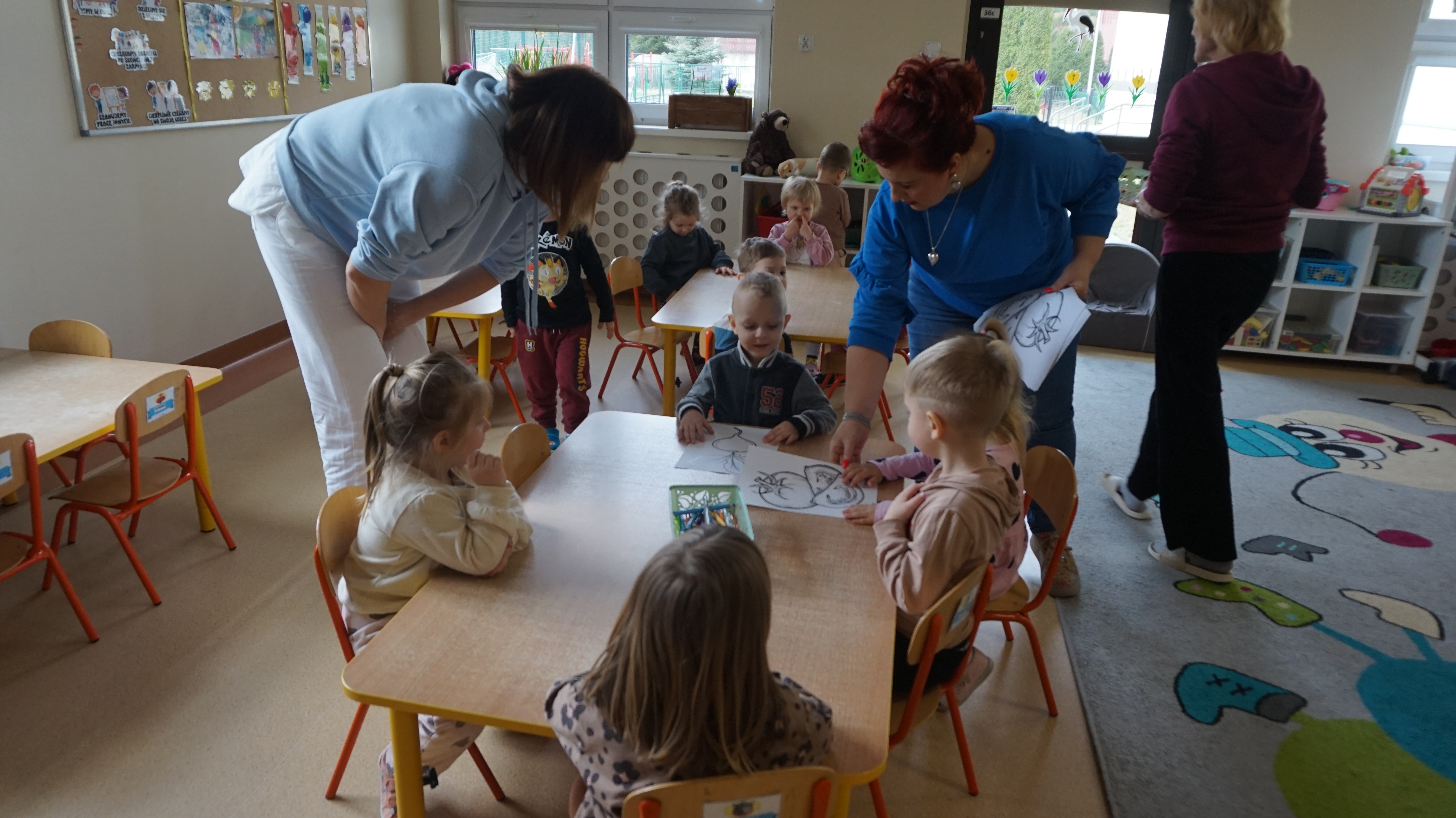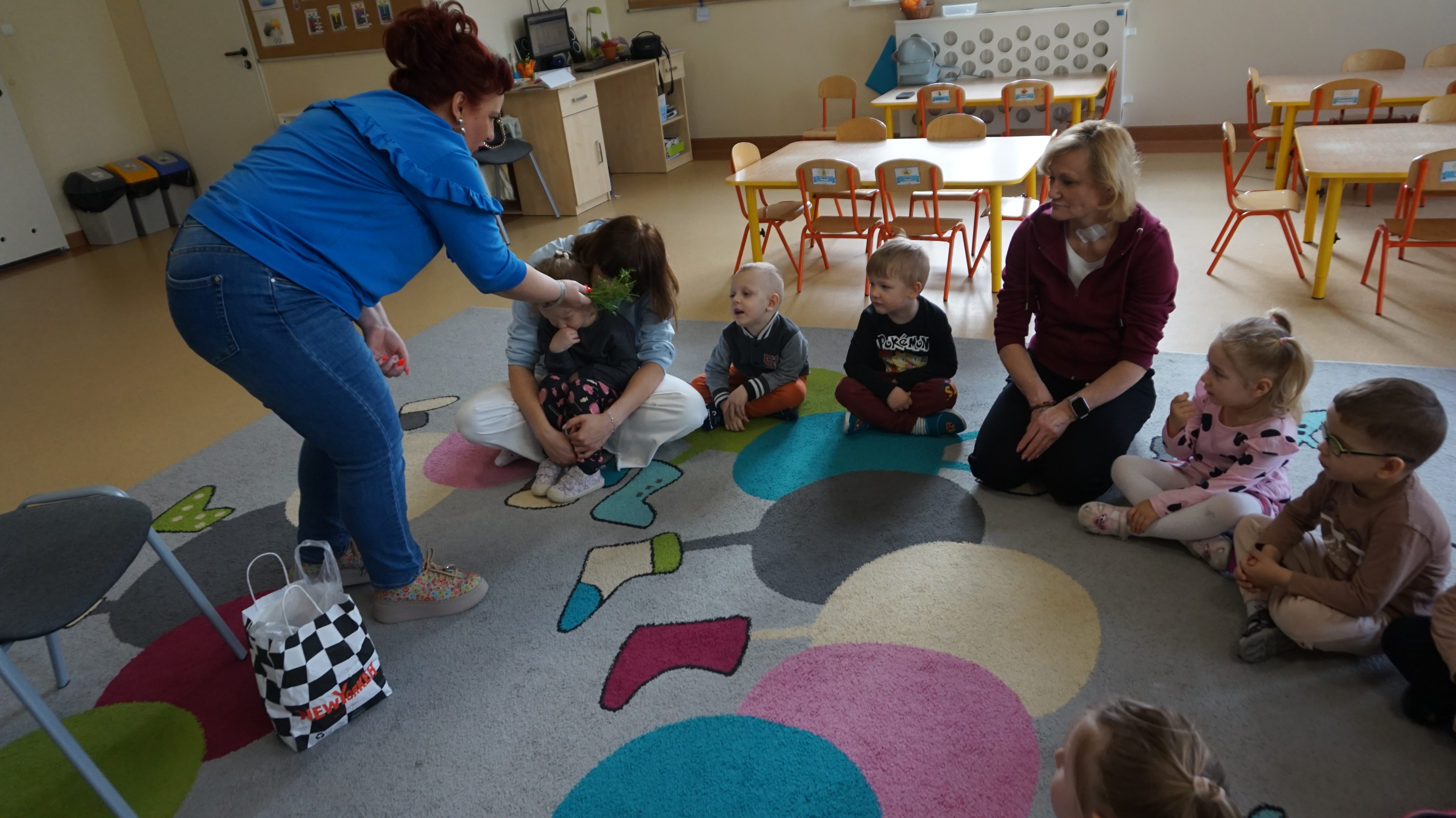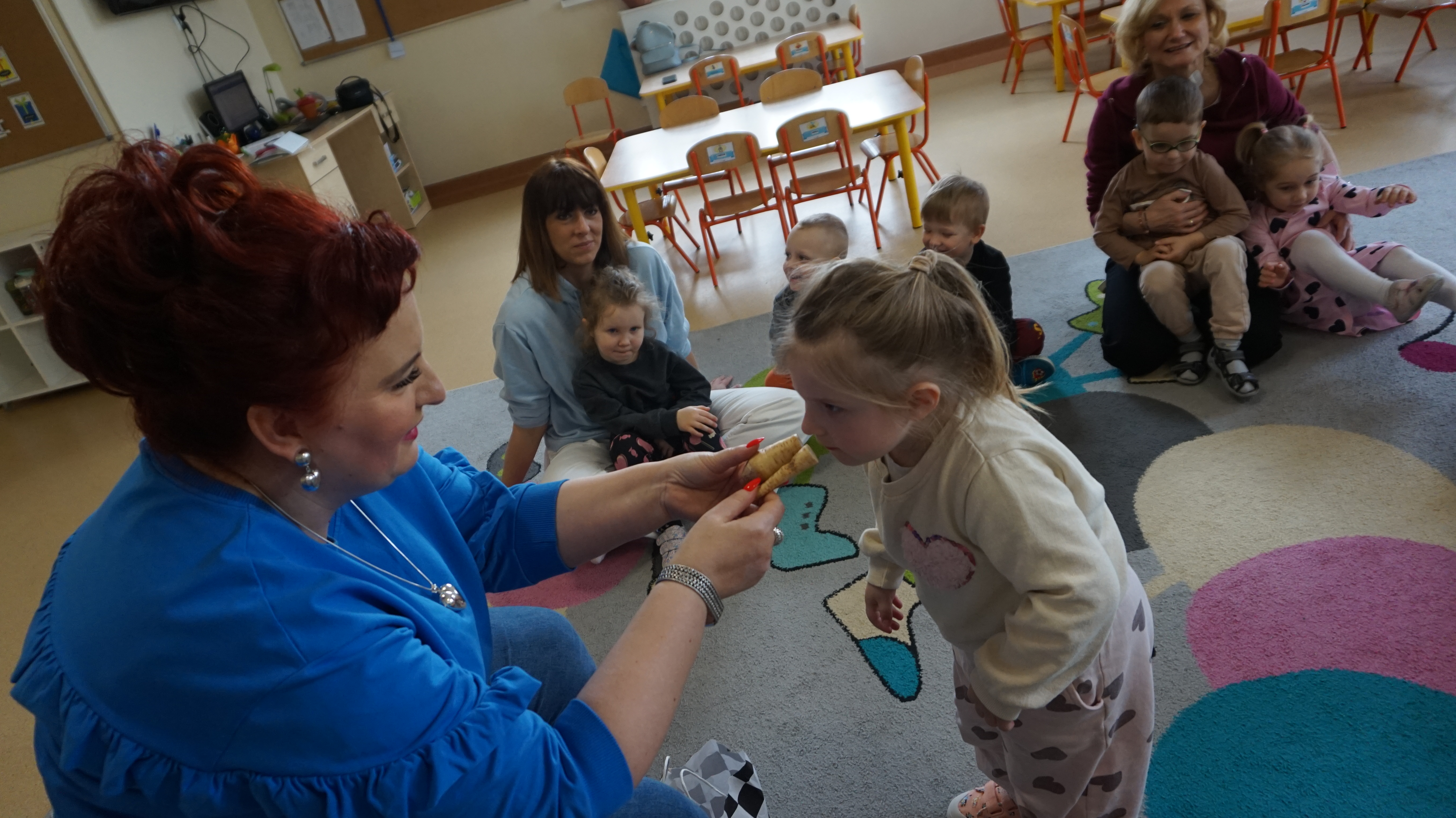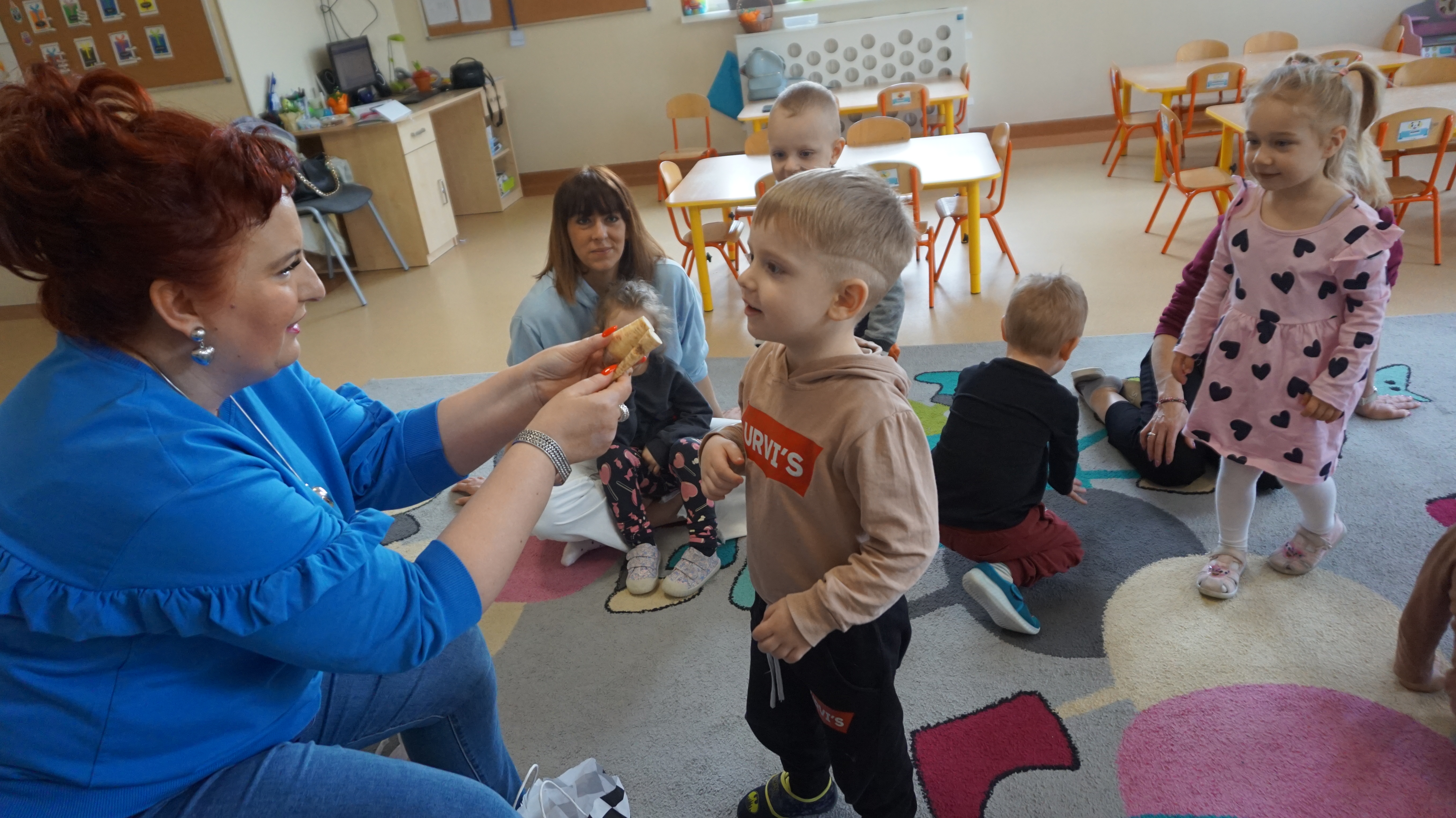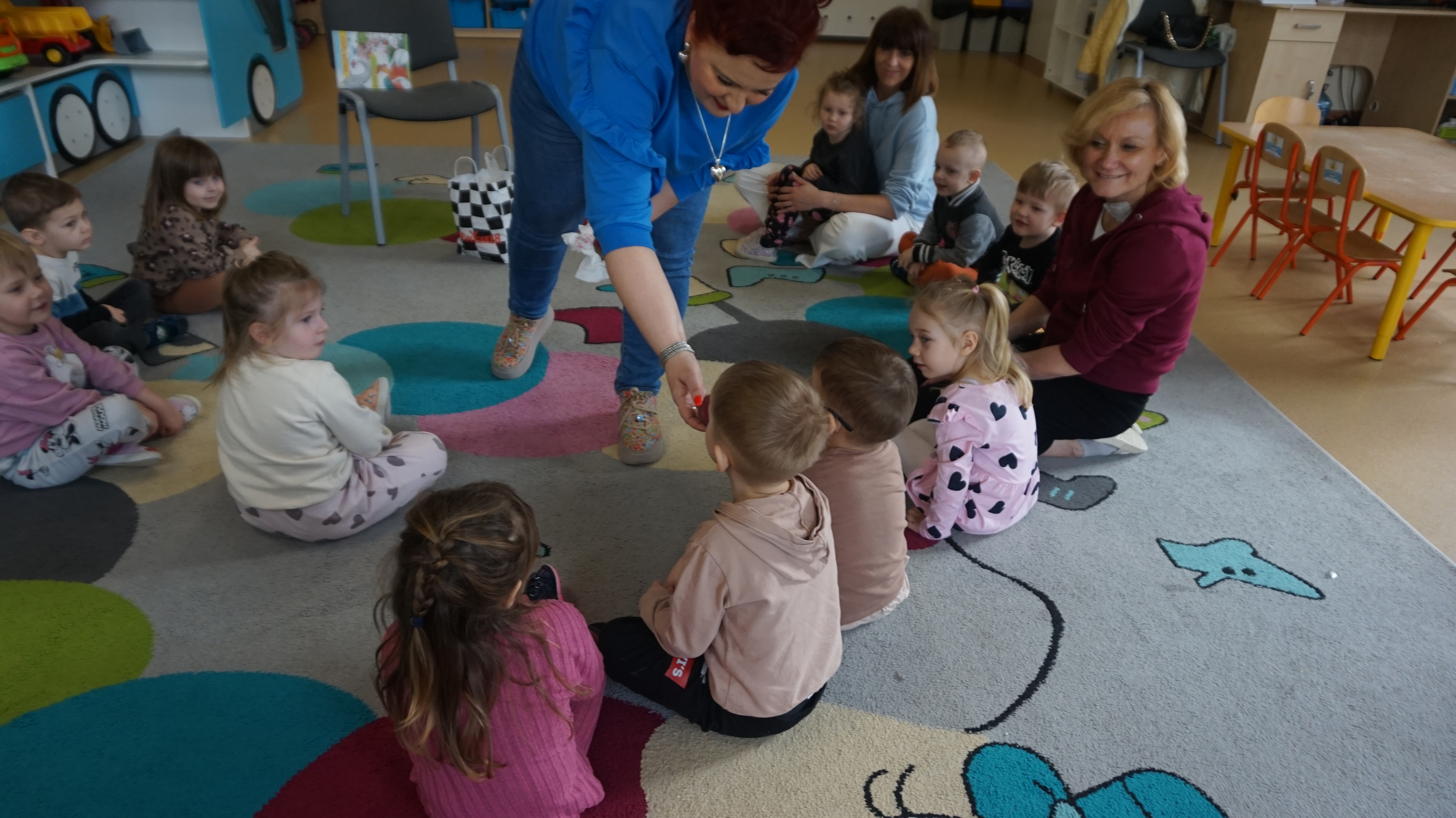 W naszej grupie trzylatków odbyły się zajęcia z udziałem pani z biblioteki pedagogicznej. Spotkanie rozpoczęło się od wysłuchania ciekawej bajki o warzywach, która wprowadziła dzieci w temat zdrowego odżywiania. Następnie przedszkolaki miały okazję poznać różne warzywa wszystkimi zmysłami – mogły je obejrzeć, dotknąć oraz powąchać. Podczas rozmowy dzieci chętnie dzieliły się swoimi spostrzeżeniami i doświadczeniami. Na zakończenie zajęć trzylatki z zaangażowaniem kolorowały obrazki przedstawiające warzywa, utrwalając zdobytą wiedzę. Było to bardzo ciekawe i rozwijające spotkanie, które dostarczyło dzieciom wielu pozytywnych wrażeń.