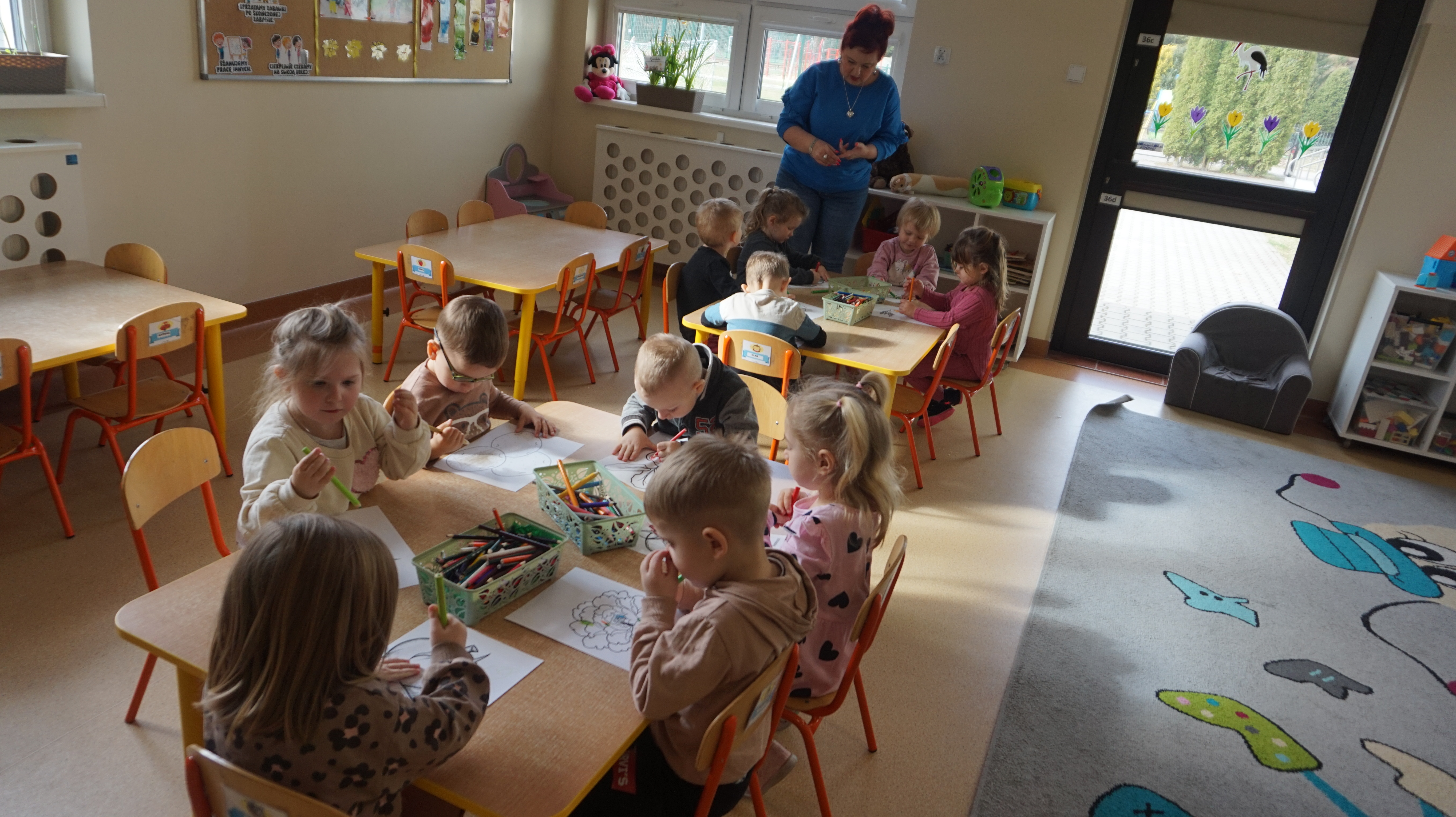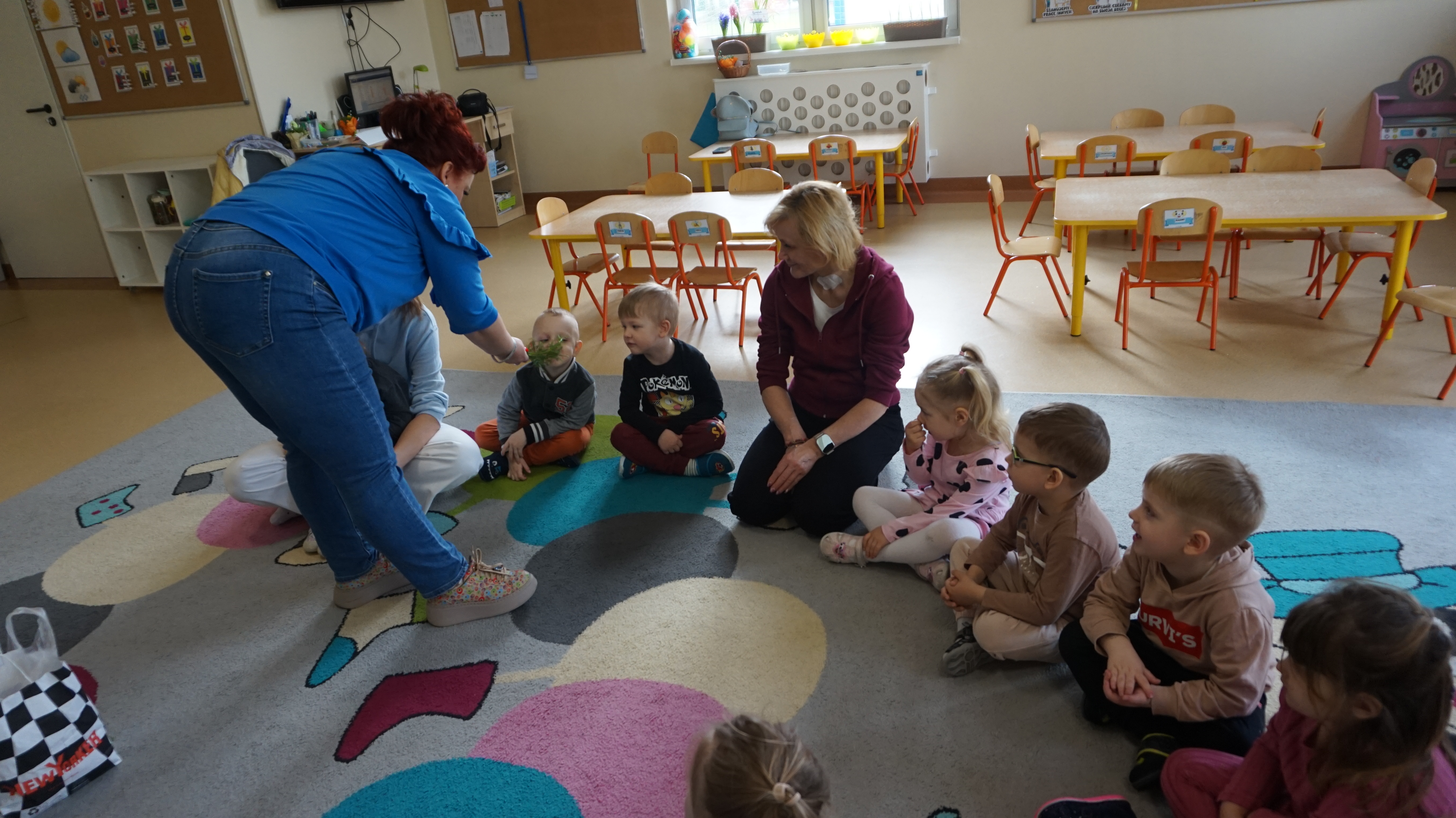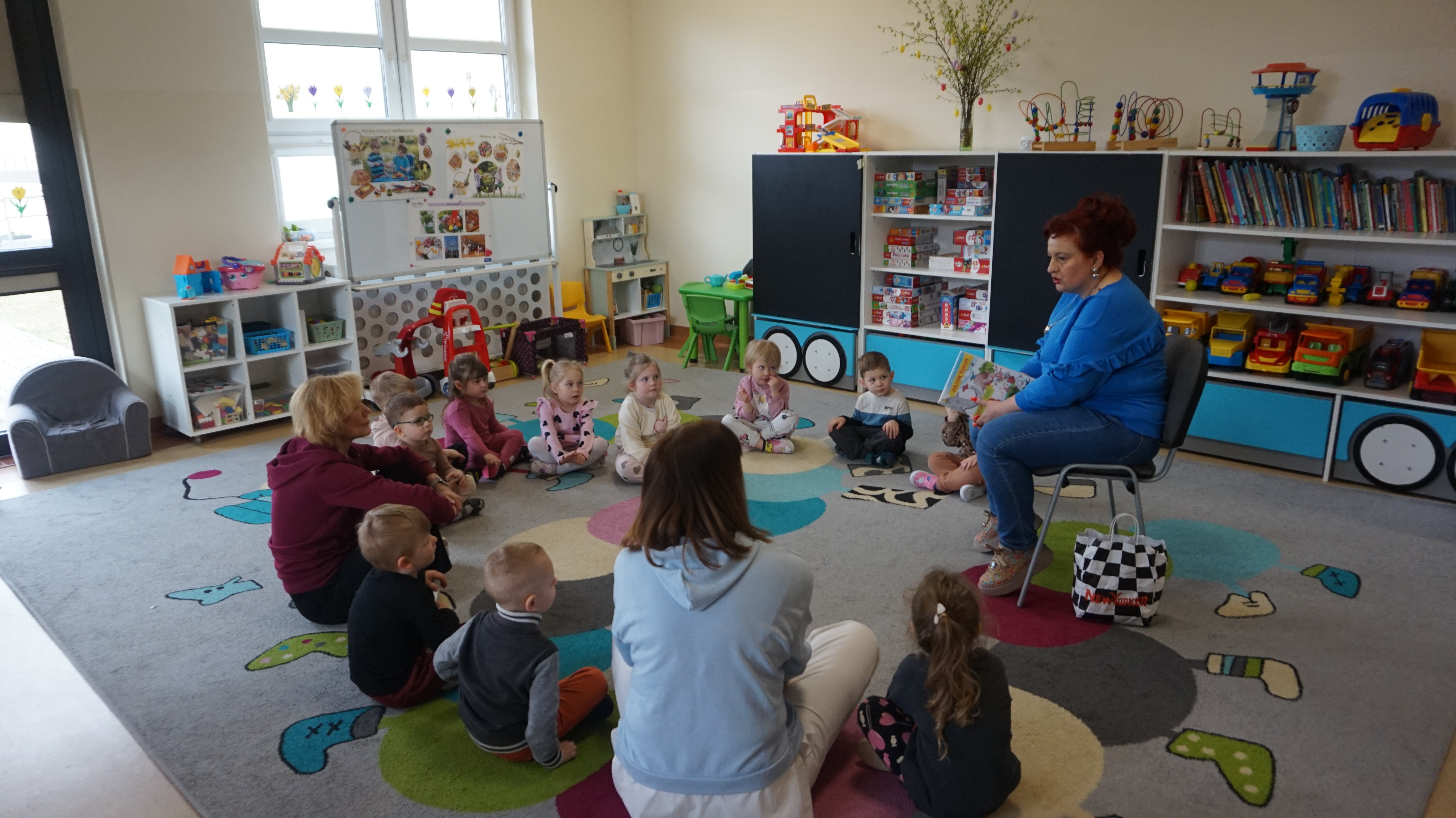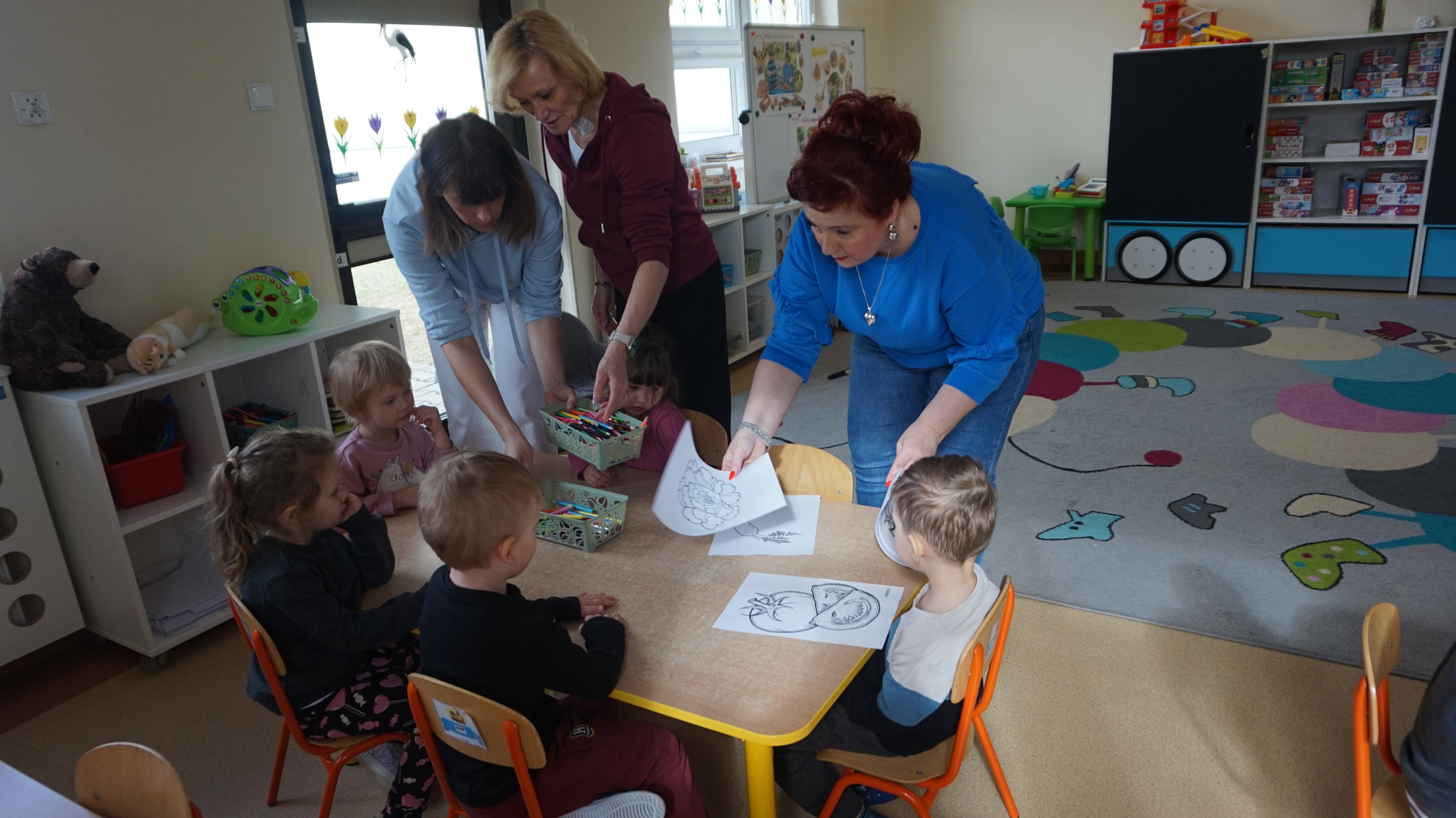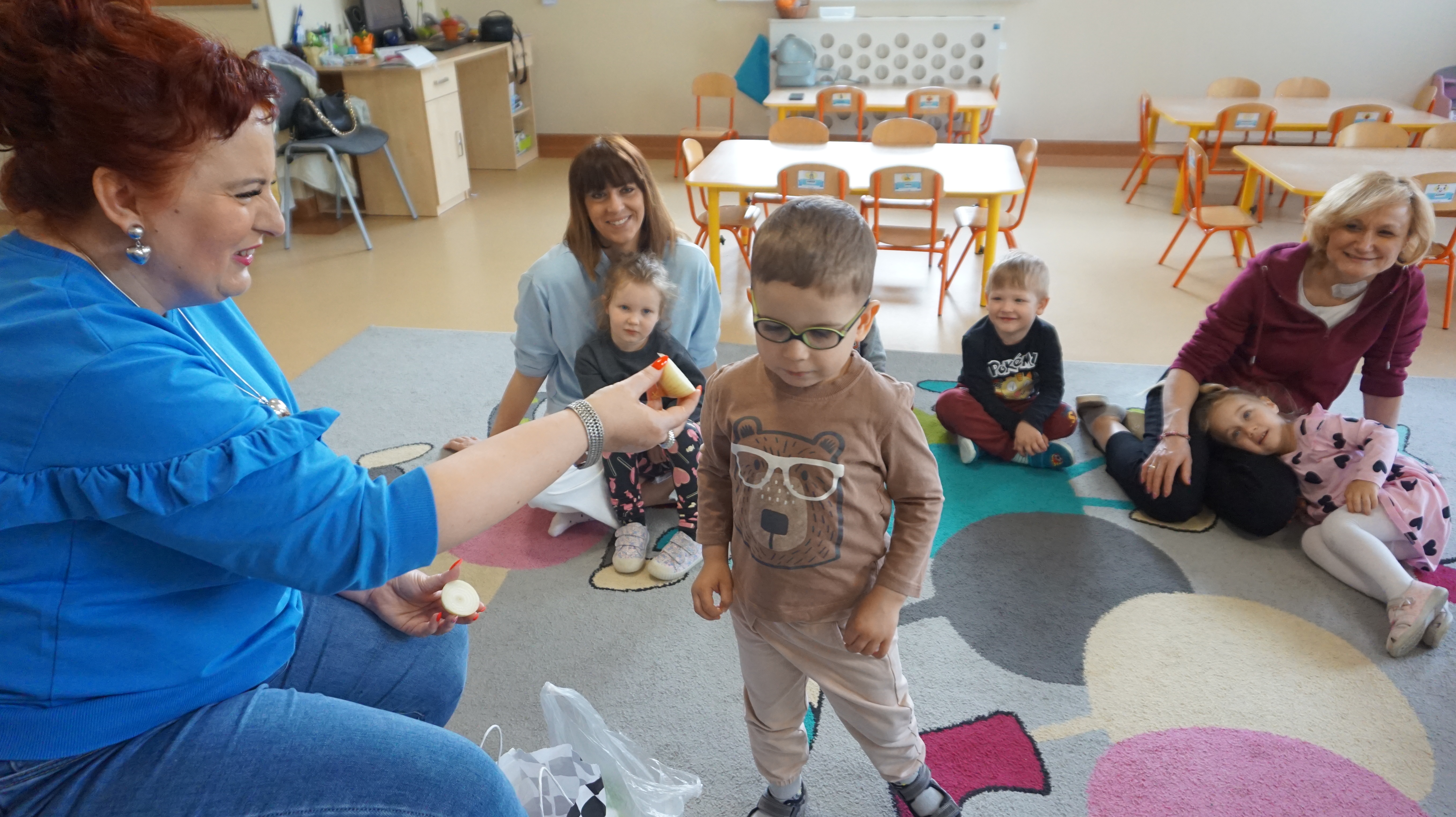W naszej grupie trzylatków odbyły się zajęcia z udziałem pani z biblioteki pedagogicznej. Spotkanie rozpoczęło się od wysłuchania ciekawej bajki o warzywach, która wprowadziła dzieci w temat zdrowego odżywiania. Następnie przedszkolaki miały okazję poznać różne warzywa wszystkimi zmysłami – mogły je obejrzeć, dotknąć oraz powąchać. Podczas rozmowy dzieci chętnie dzieliły się swoimi spostrzeżeniami i doświadczeniami. Na zakończenie zajęć trzylatki z zaangażowaniem kolorowały obrazki przedstawiające warzywa, utrwalając zdobytą wiedzę. Było to bardzo ciekawe i rozwijające spotkanie, które dostarczyło dzieciom wielu pozytywnych wrażeń.