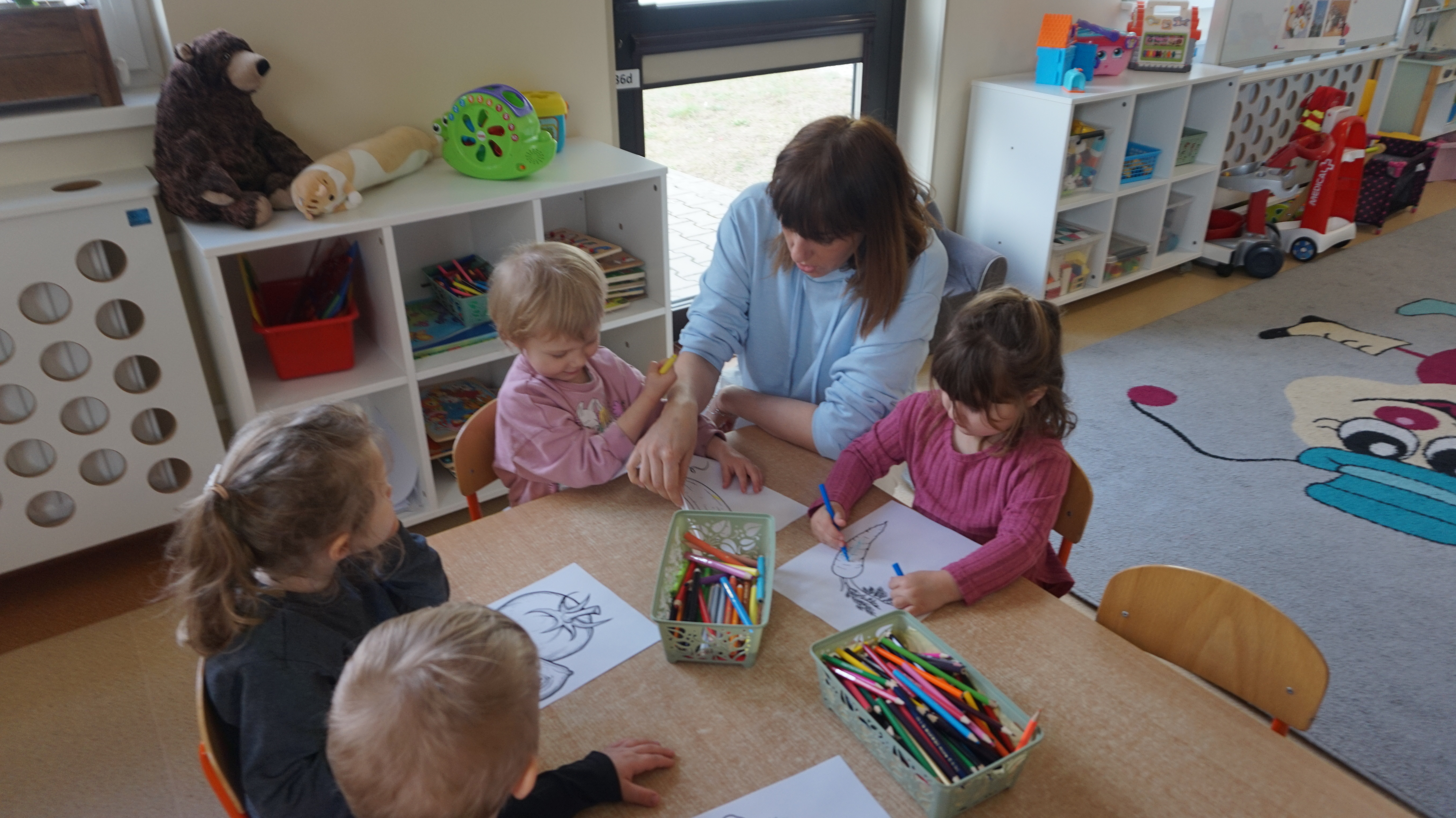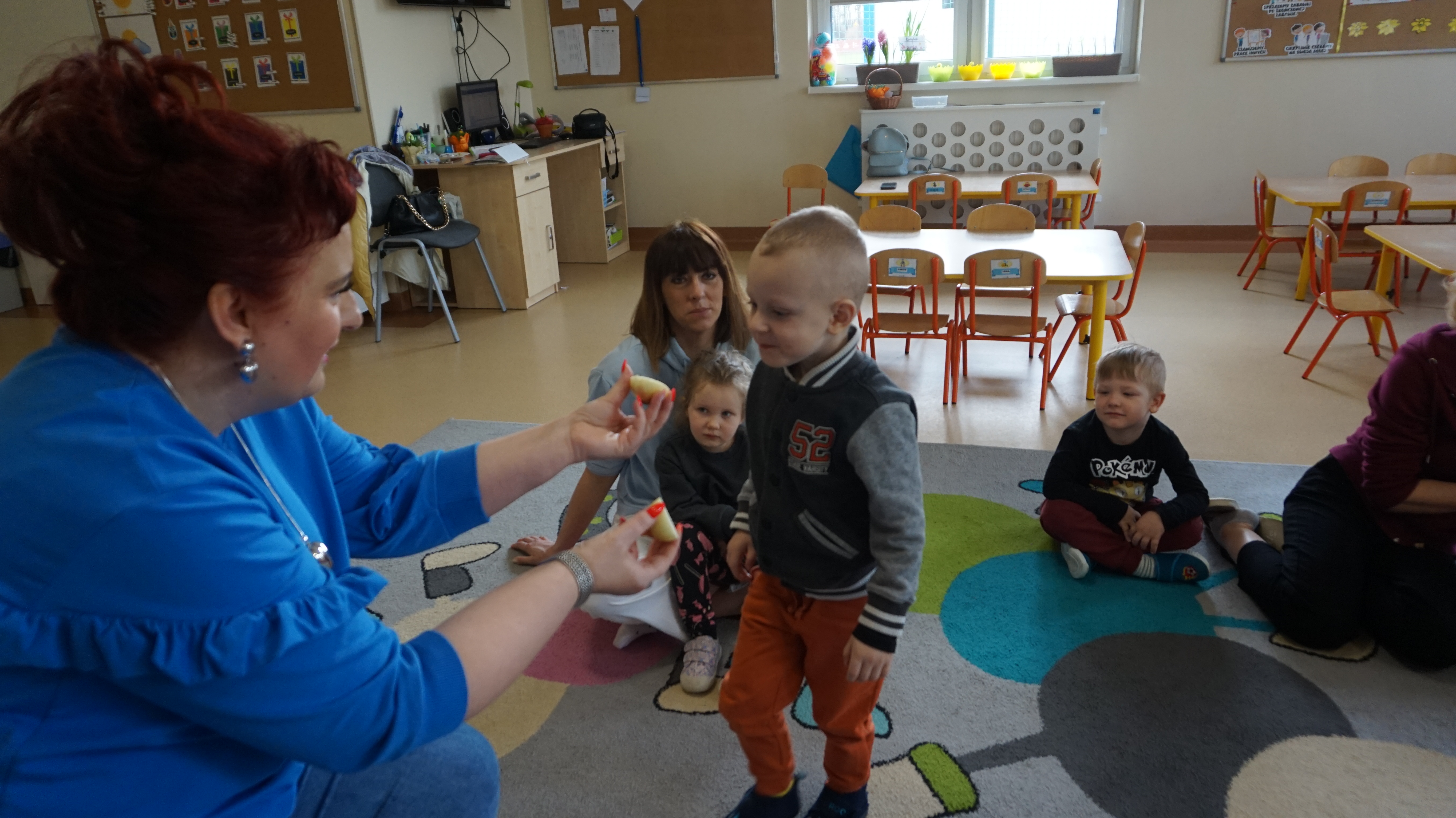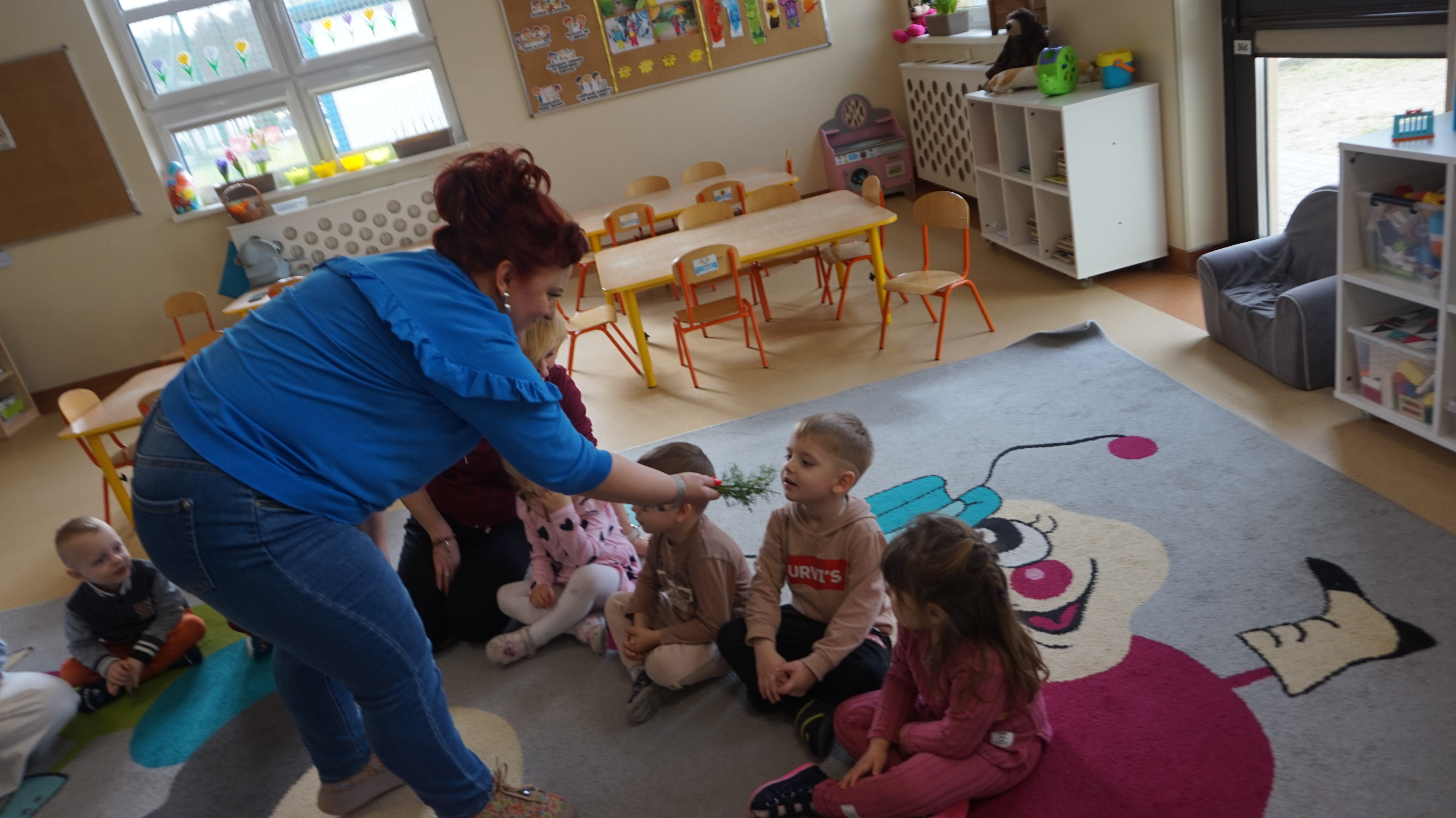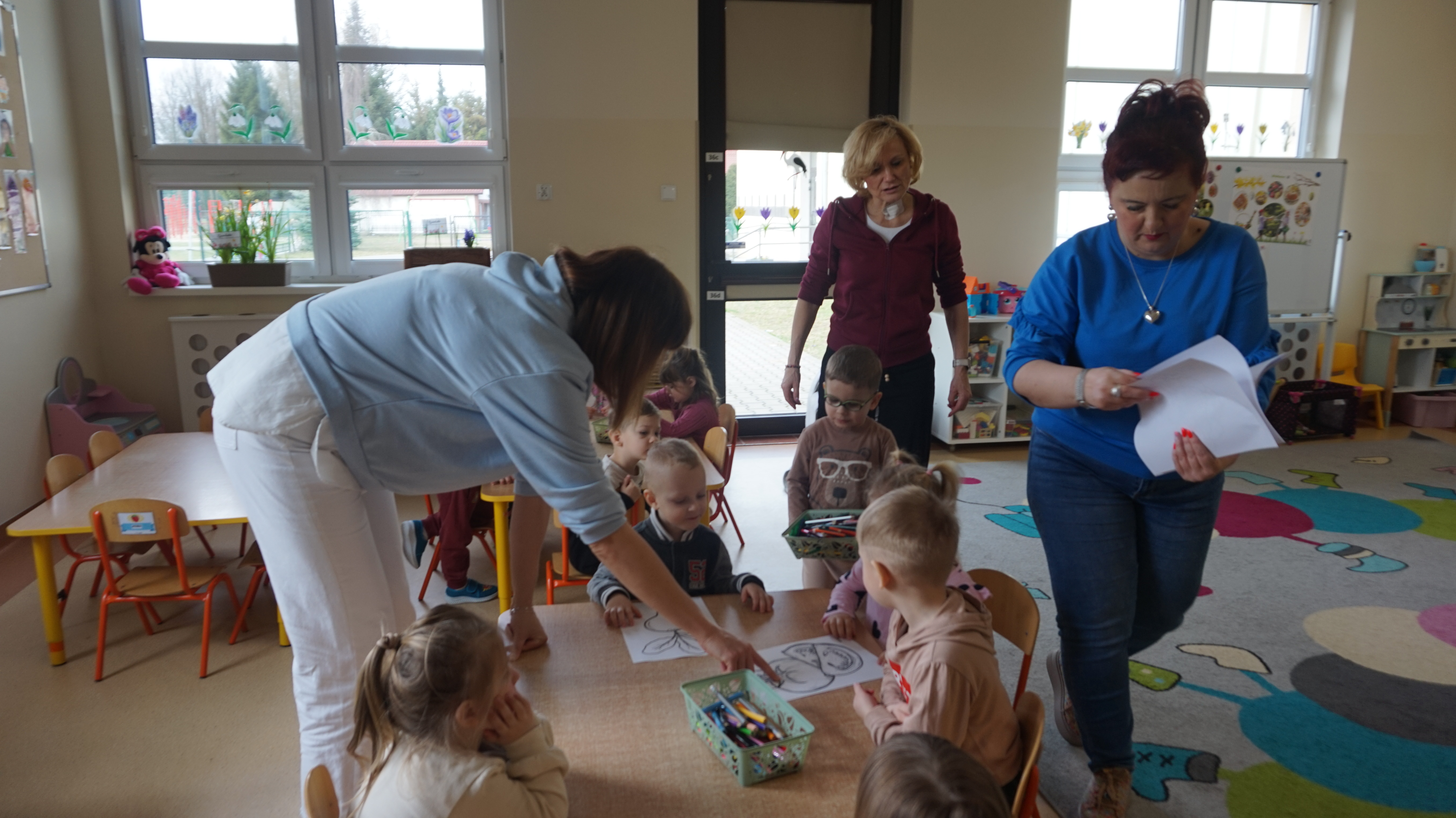 W naszej grupie trzylatków odbyły się zajęcia z udziałem pani z biblioteki pedagogicznej. Spotkanie rozpoczęło się od wysłuchania ciekawej bajki o warzywach, która wprowadziła dzieci w temat zdrowego odżywiania. Następnie przedszkolaki miały okazję poznać różne warzywa wszystkimi zmysłami – mogły je obejrzeć, dotknąć oraz powąchać. Podczas rozmowy dzieci chętnie dzieliły się swoimi spostrzeżeniami i doświadczeniami. Na zakończenie zajęć trzylatki z zaangażowaniem kolorowały obrazki przedstawiające warzywa, utrwalając zdobytą wiedzę. Było to bardzo ciekawe i rozwijające spotkanie, które dostarczyło dzieciom wielu pozytywnych wrażeń.