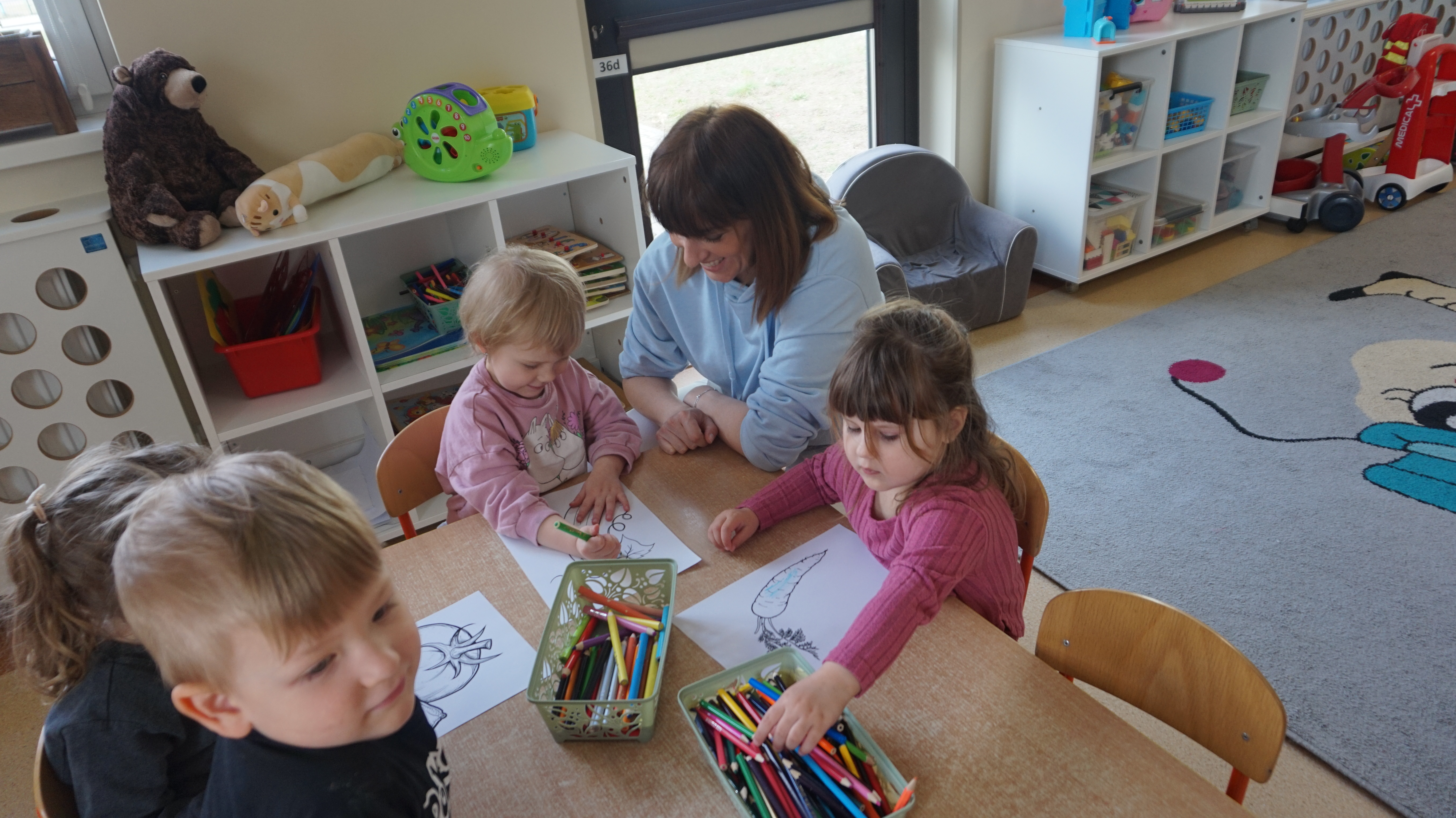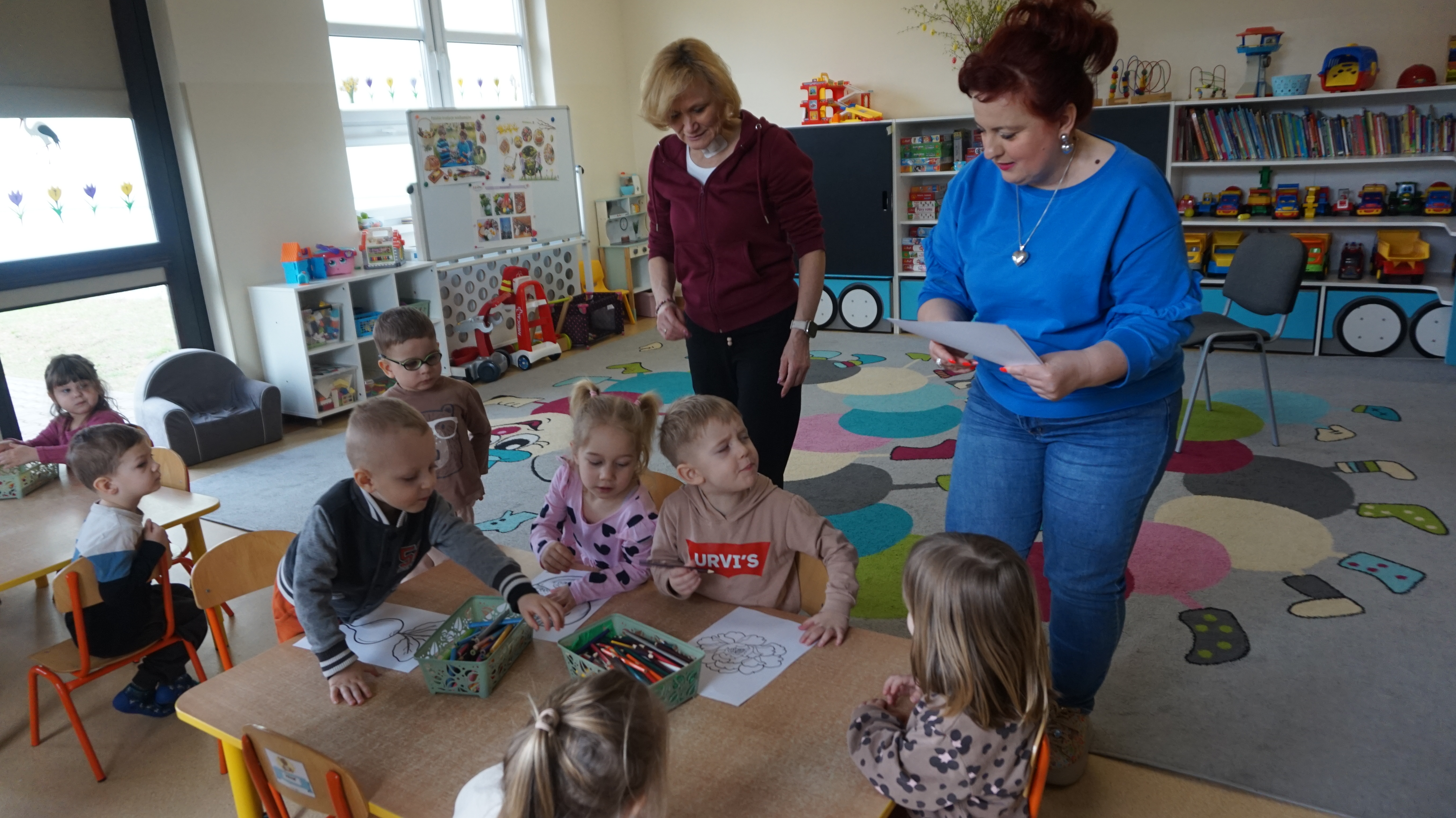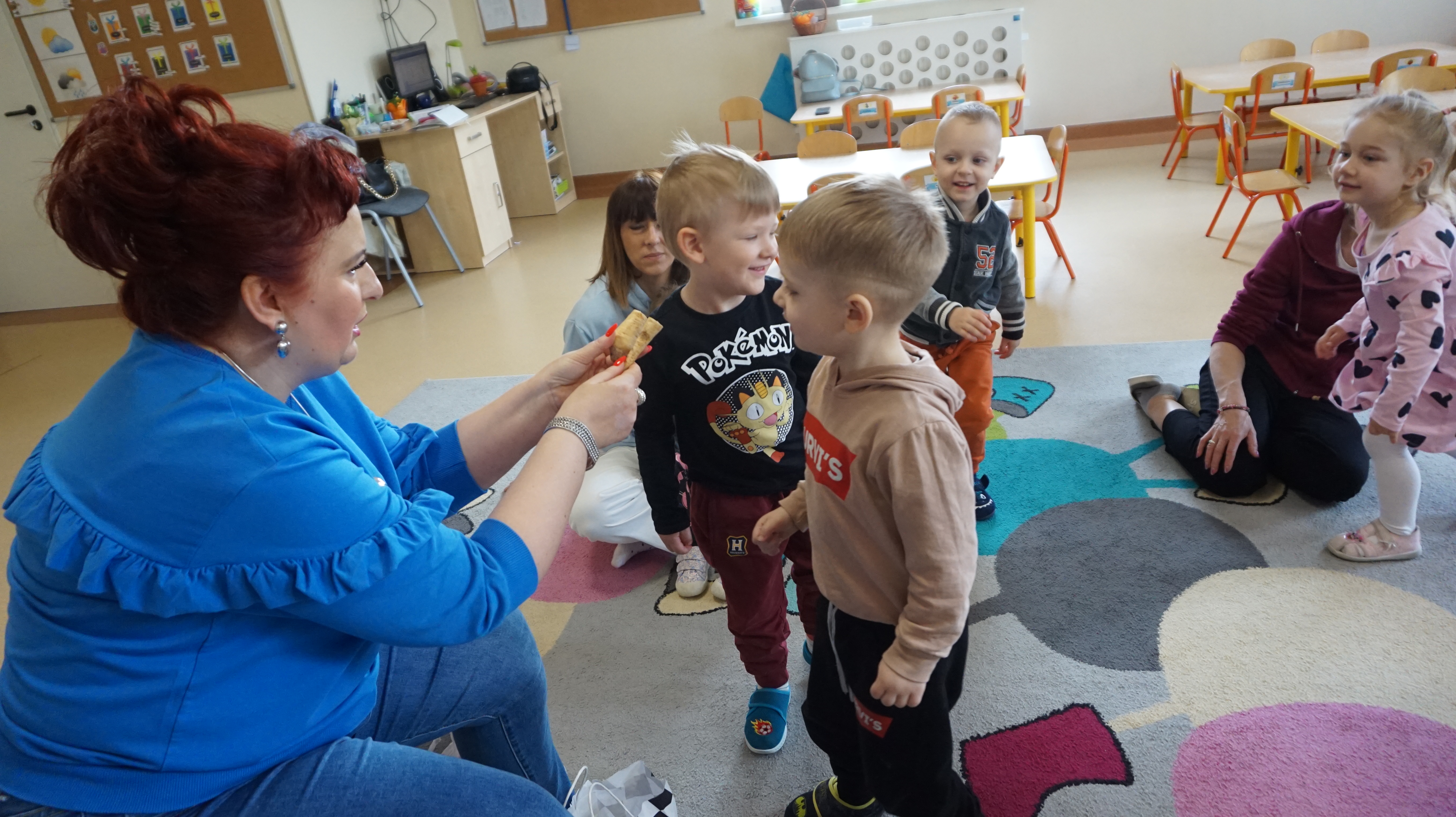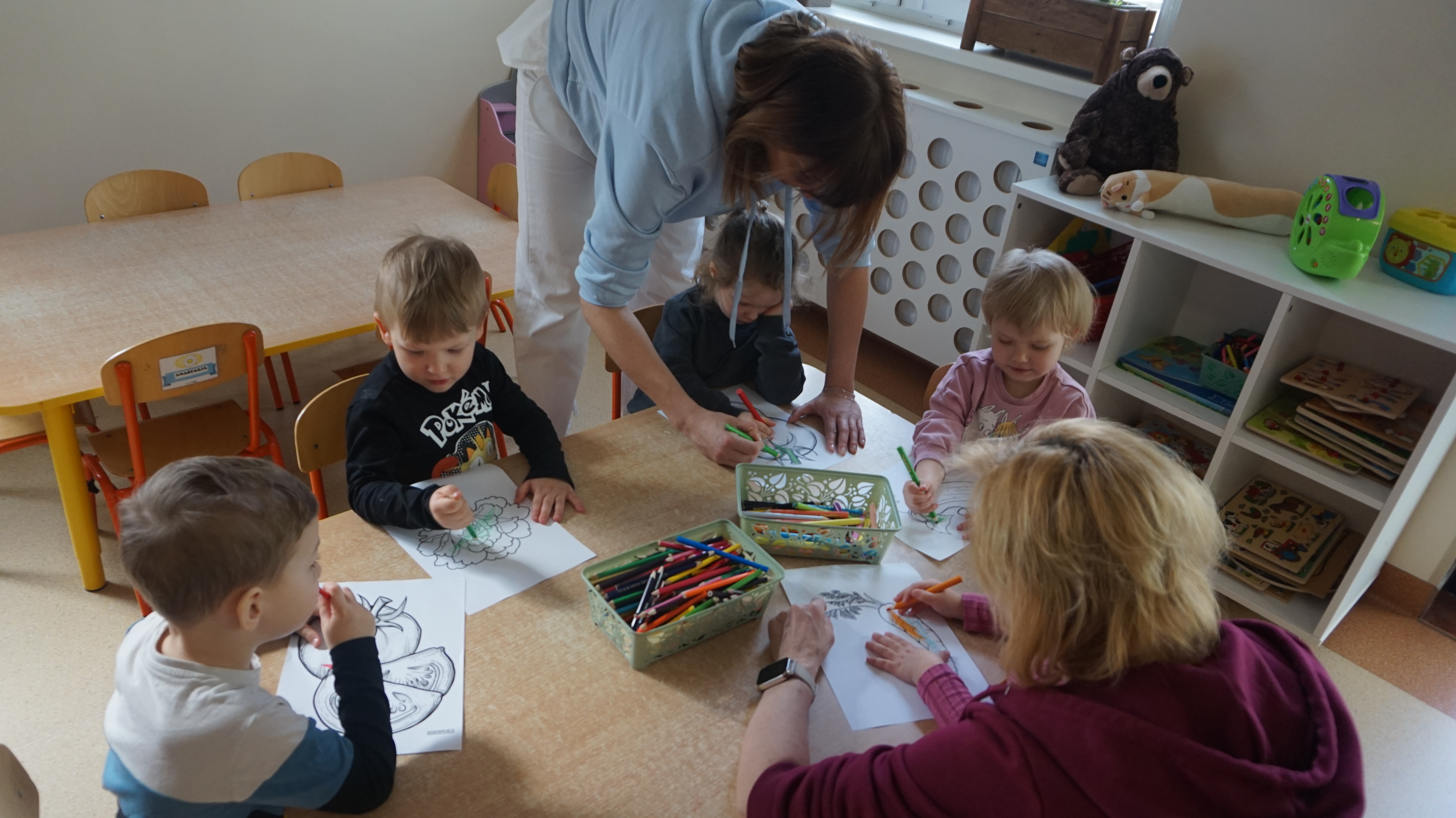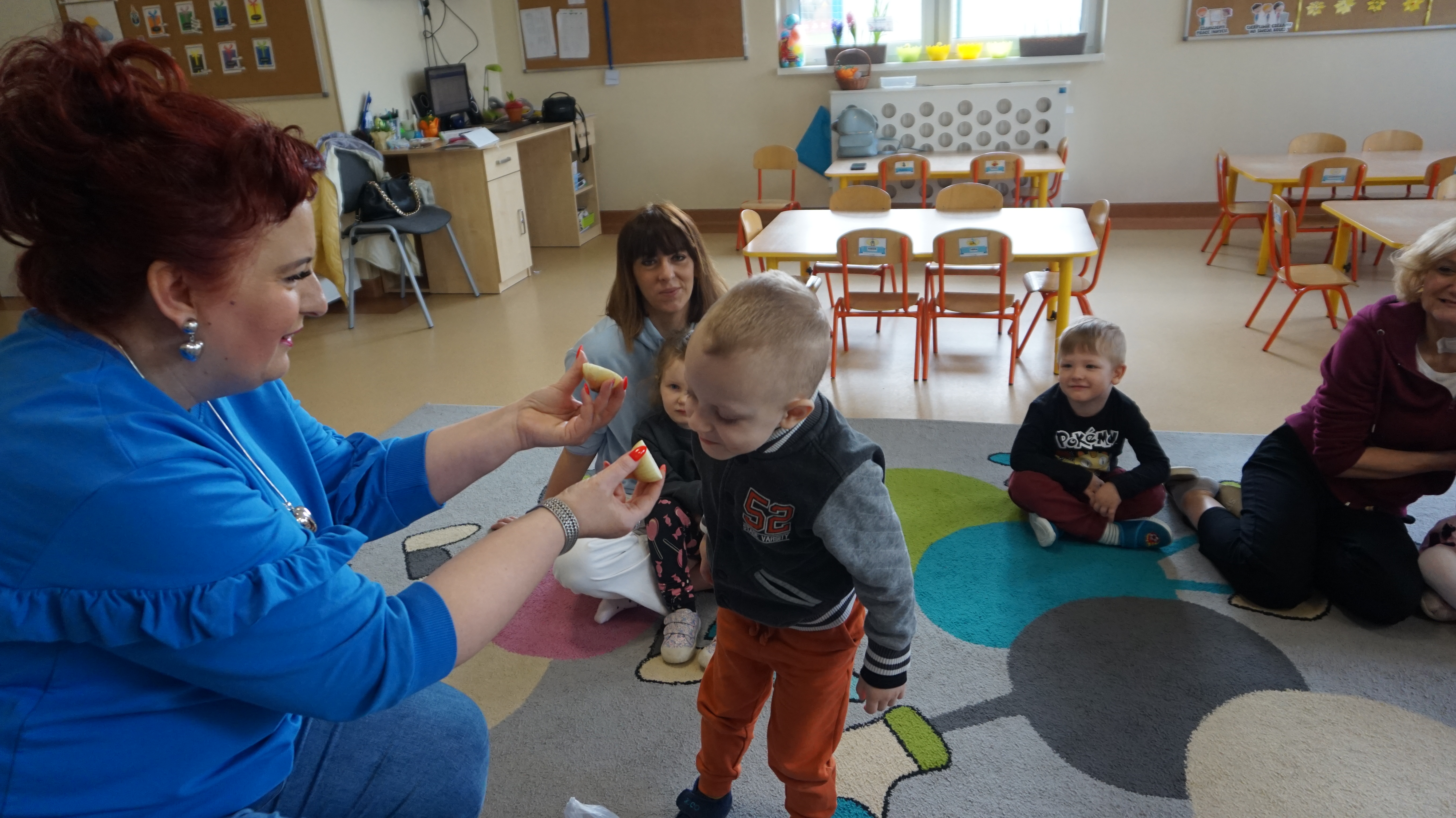 W naszej grupie trzylatków odbyły się zajęcia z udziałem pani z biblioteki pedagogicznej. Spotkanie rozpoczęło się od wysłuchania ciekawej bajki o warzywach, która wprowadziła dzieci w temat zdrowego odżywiania. Następnie przedszkolaki miały okazję poznać różne warzywa wszystkimi zmysłami – mogły je obejrzeć, dotknąć oraz powąchać. Podczas rozmowy dzieci chętnie dzieliły się swoimi spostrzeżeniami i doświadczeniami. Na zakończenie zajęć trzylatki z zaangażowaniem kolorowały obrazki przedstawiające warzywa, utrwalając zdobytą wiedzę. Było to bardzo ciekawe i rozwijające spotkanie, które dostarczyło dzieciom wielu pozytywnych wrażeń.