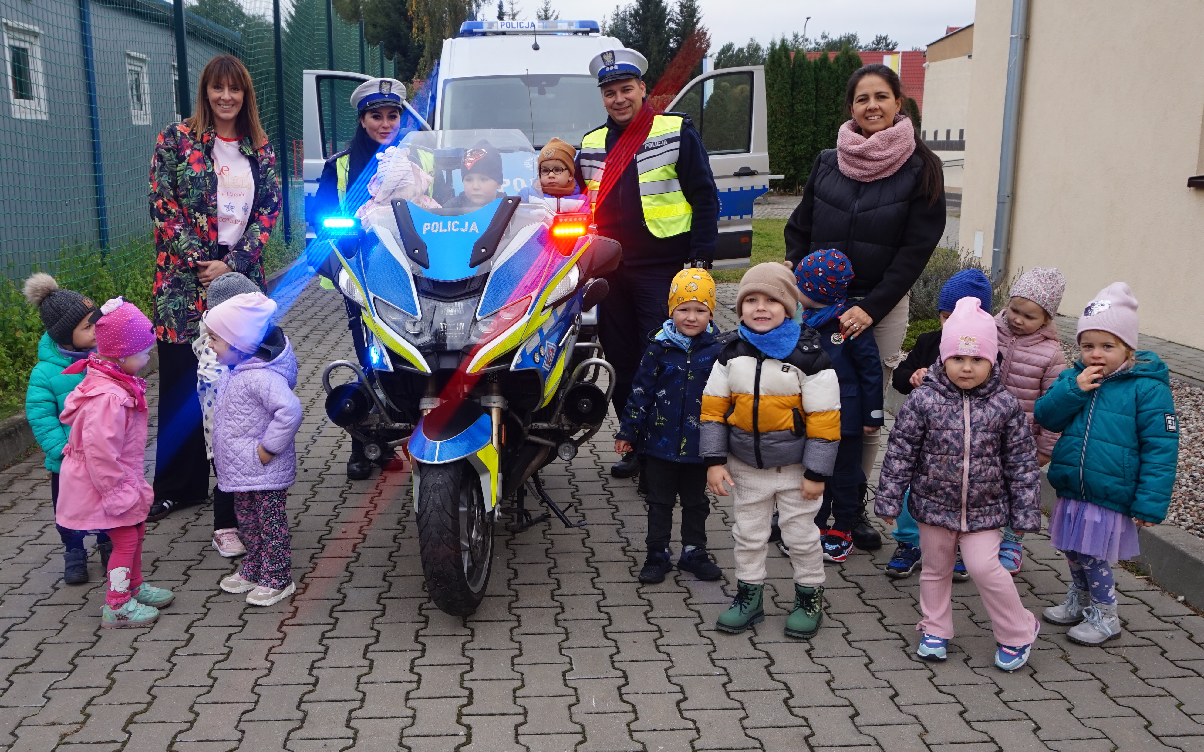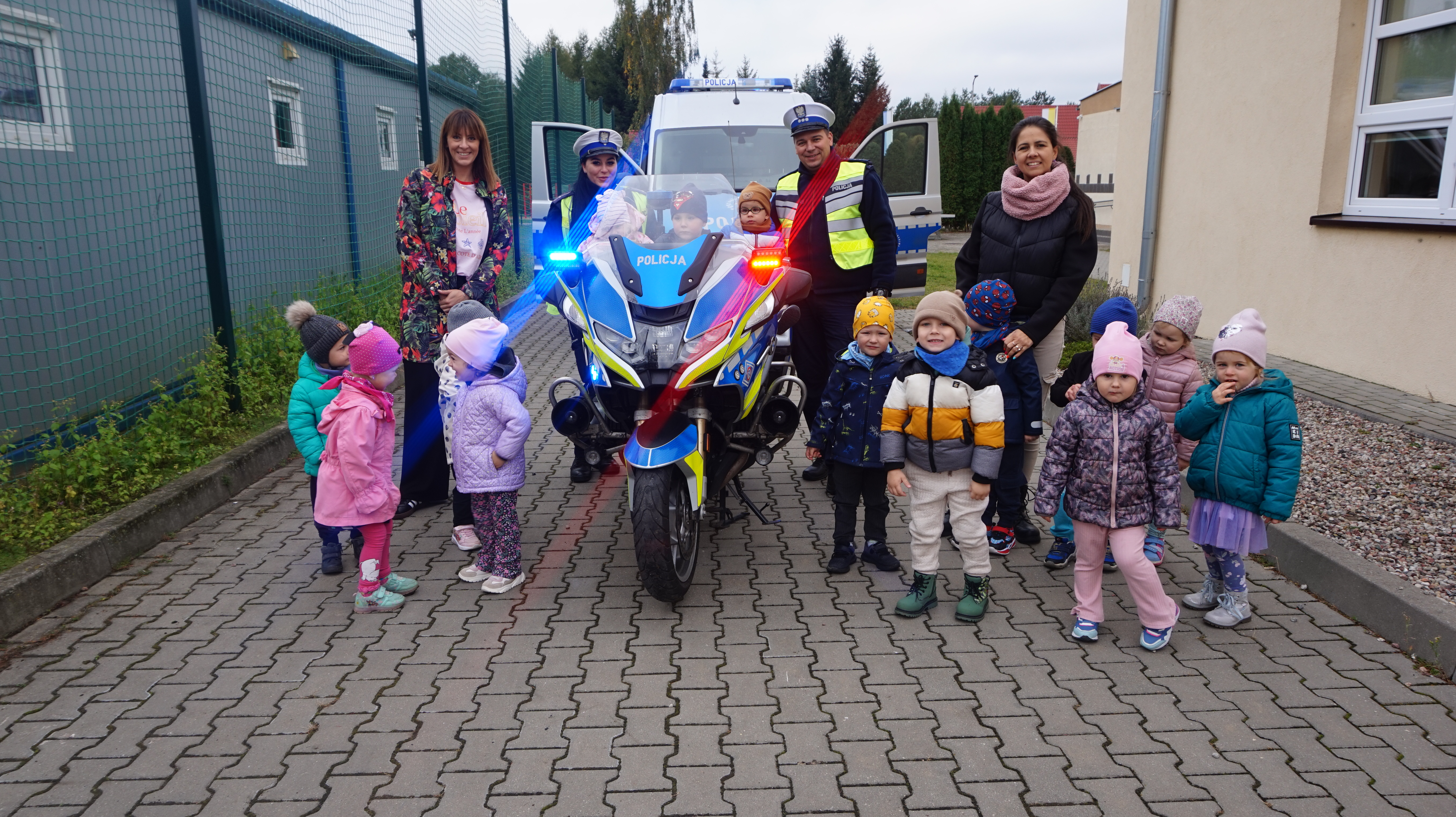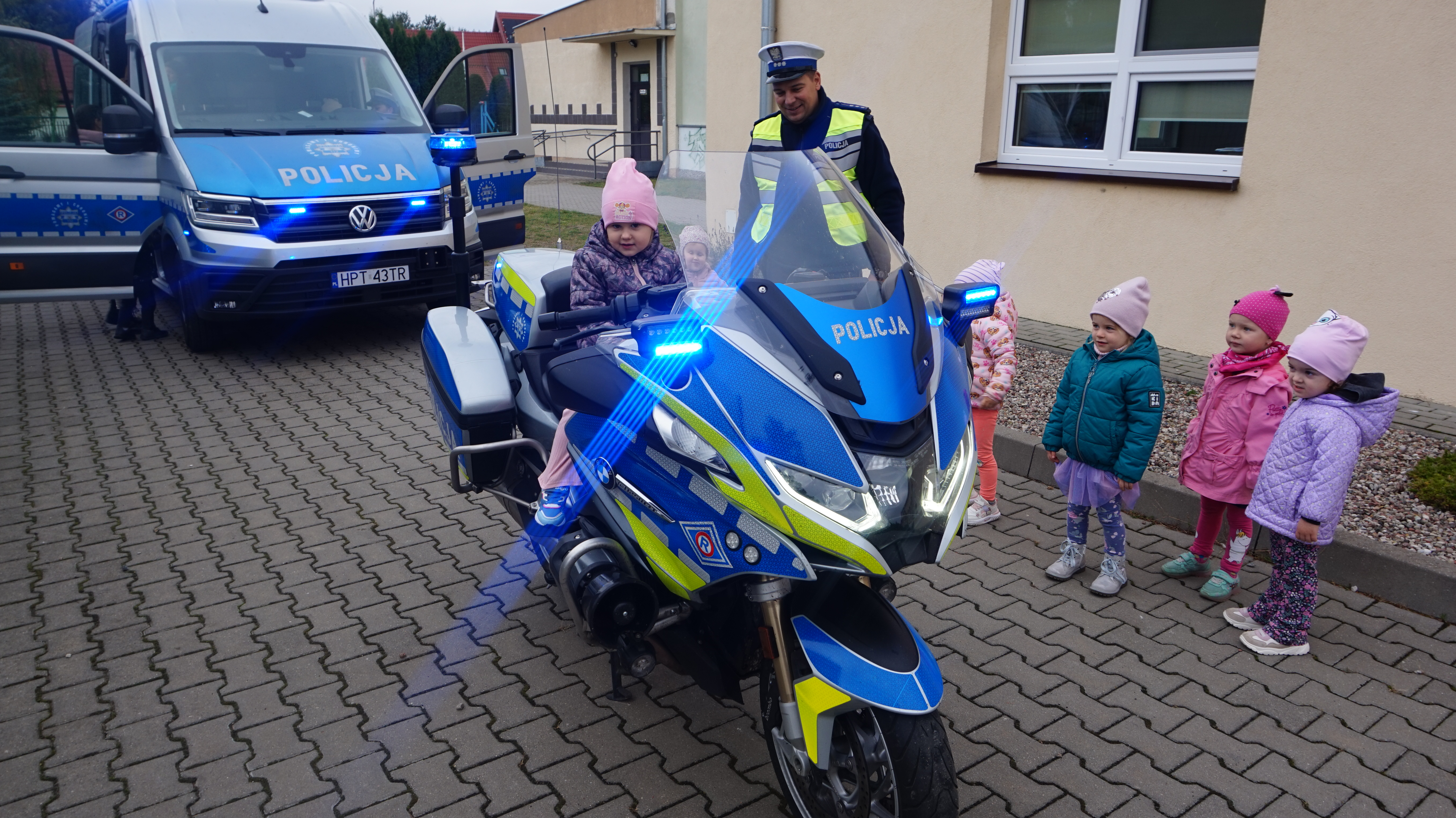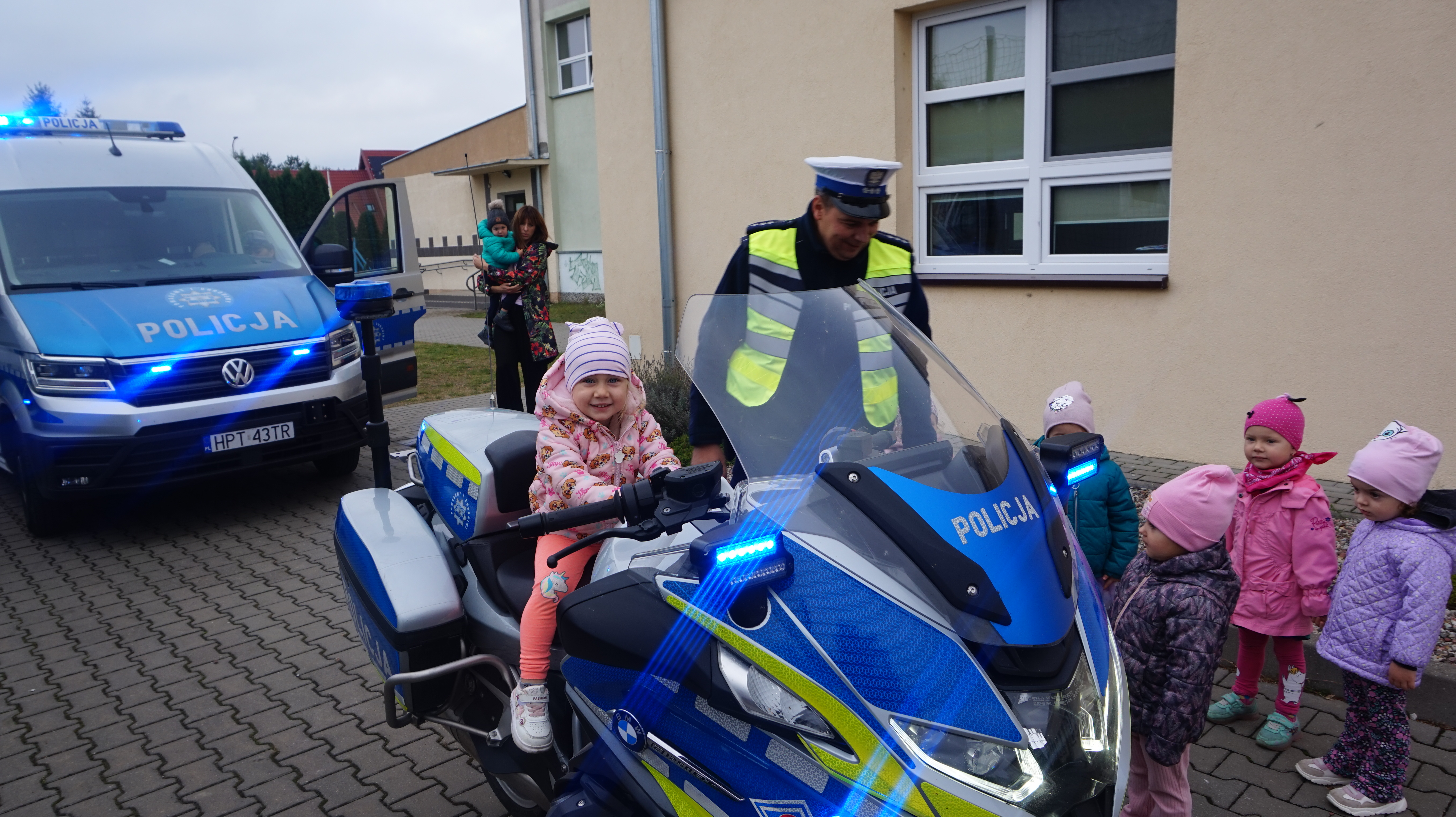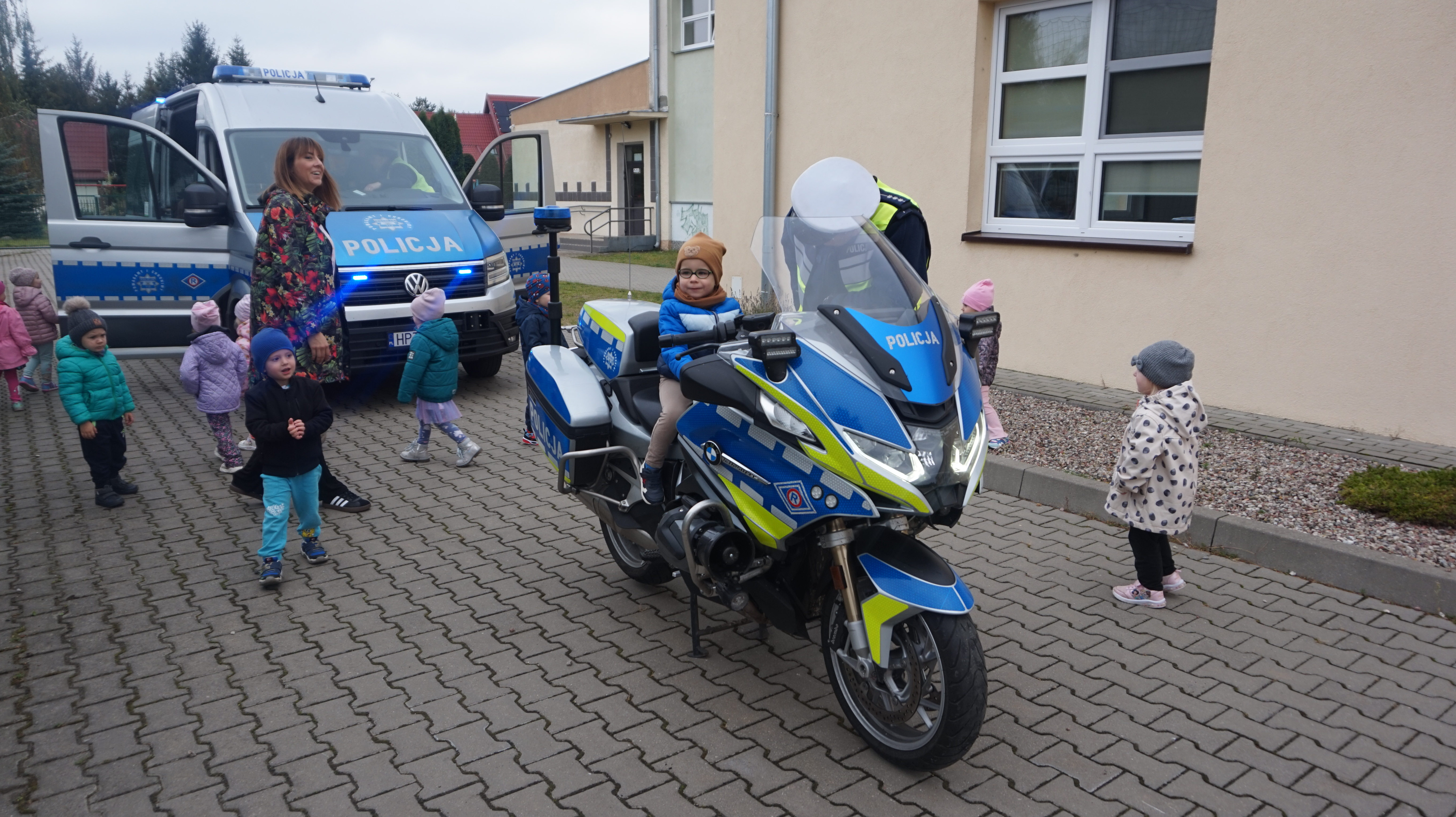 Nasze przedszkole odwiedzili wyjątkowi goście – policjanci z ostródzkiej komendy! Dzieci dowiedziały się, jak bezpiecznie poruszać się po drodze, jak reagować w sytuacjach zagrożenia oraz kogo prosić o pomoc. Najwięcej emocji wzbudziła możliwość obejrzenia z bliska radiowozu policyjnego oraz motocyklu, przymierzenia czapki i włączenie syren. To była niezwykle ciekawa i pouczająca lekcja bezpieczeństwa. Dziękujemy naszym gościom za wizytę!