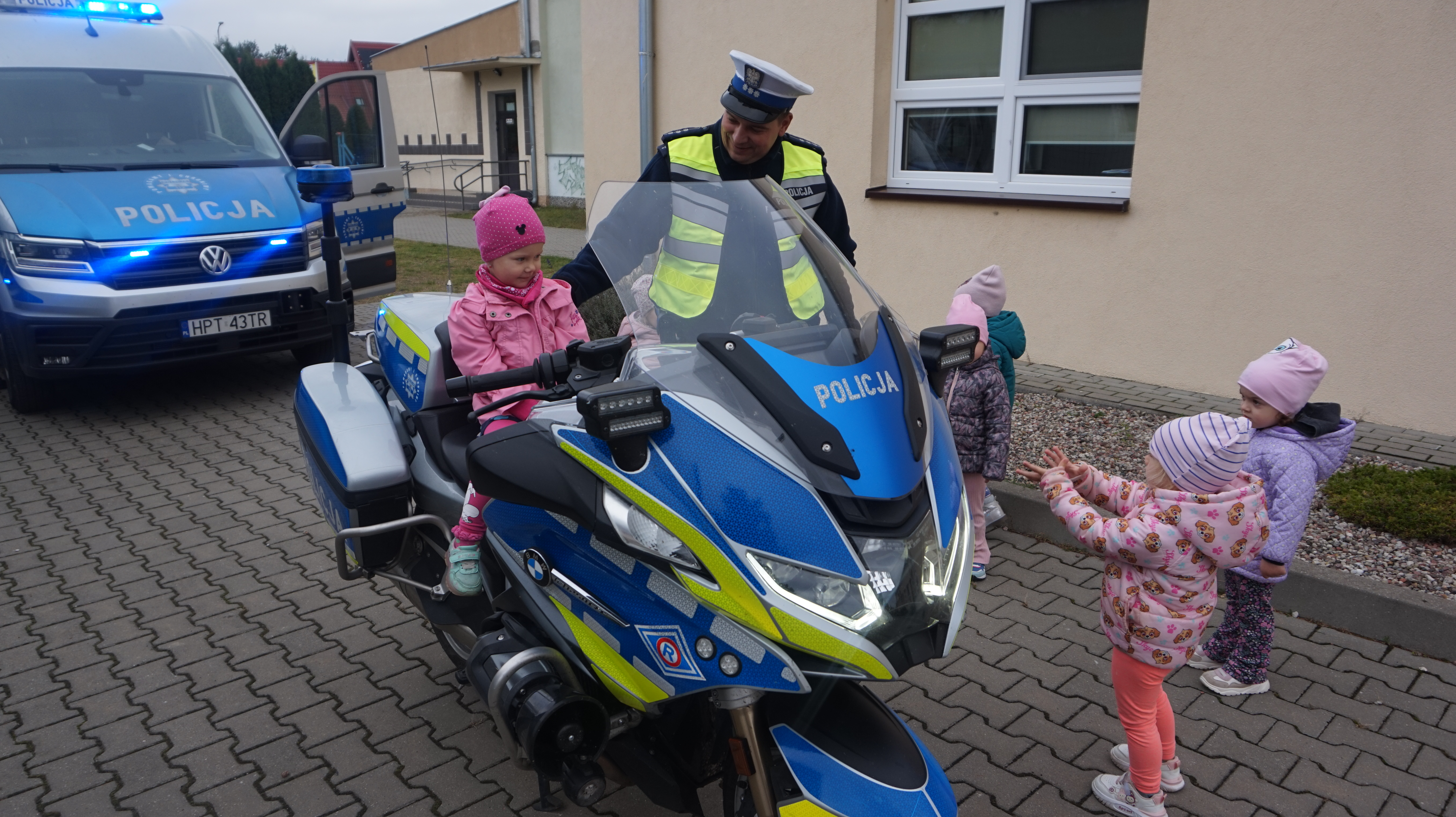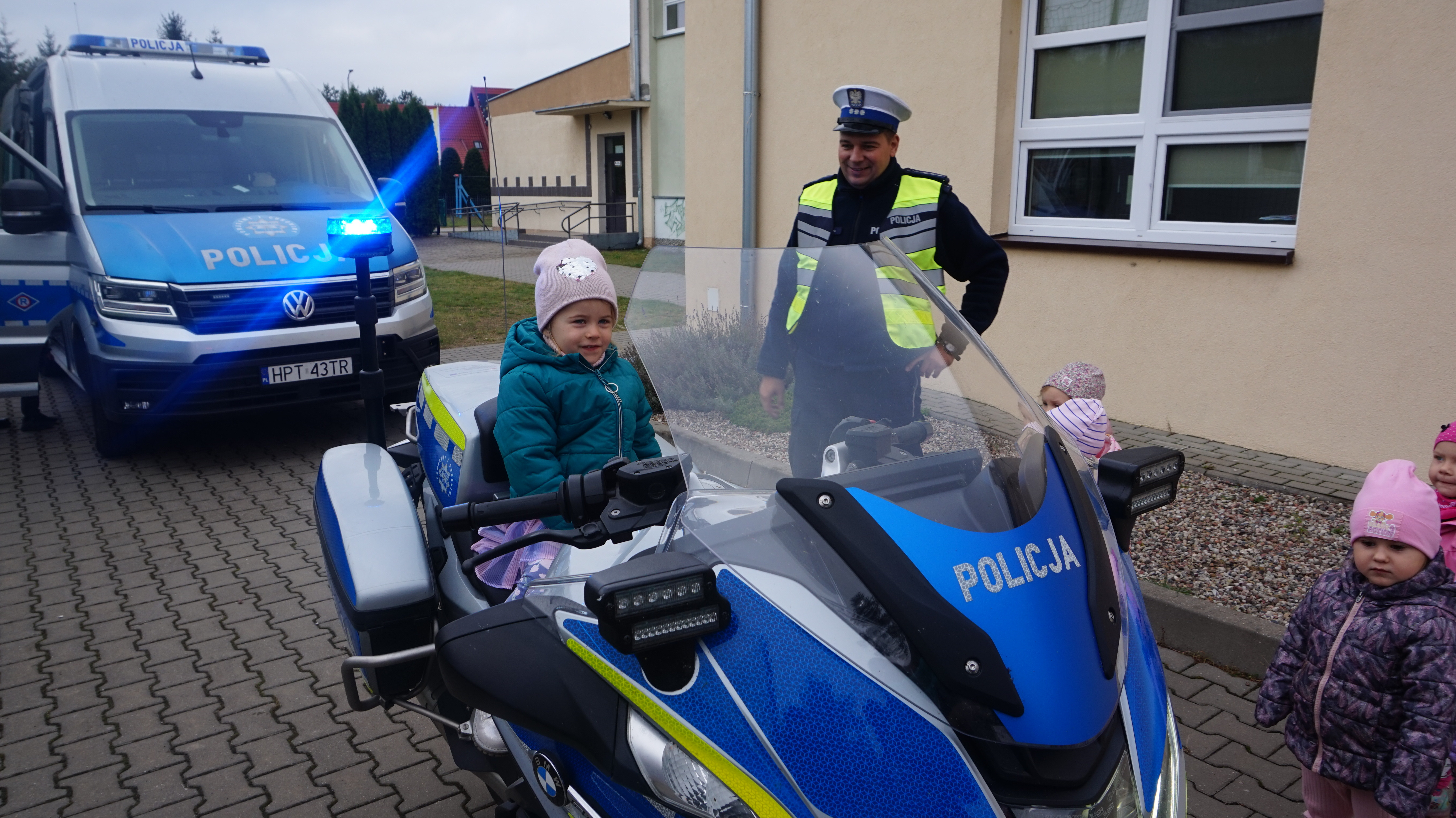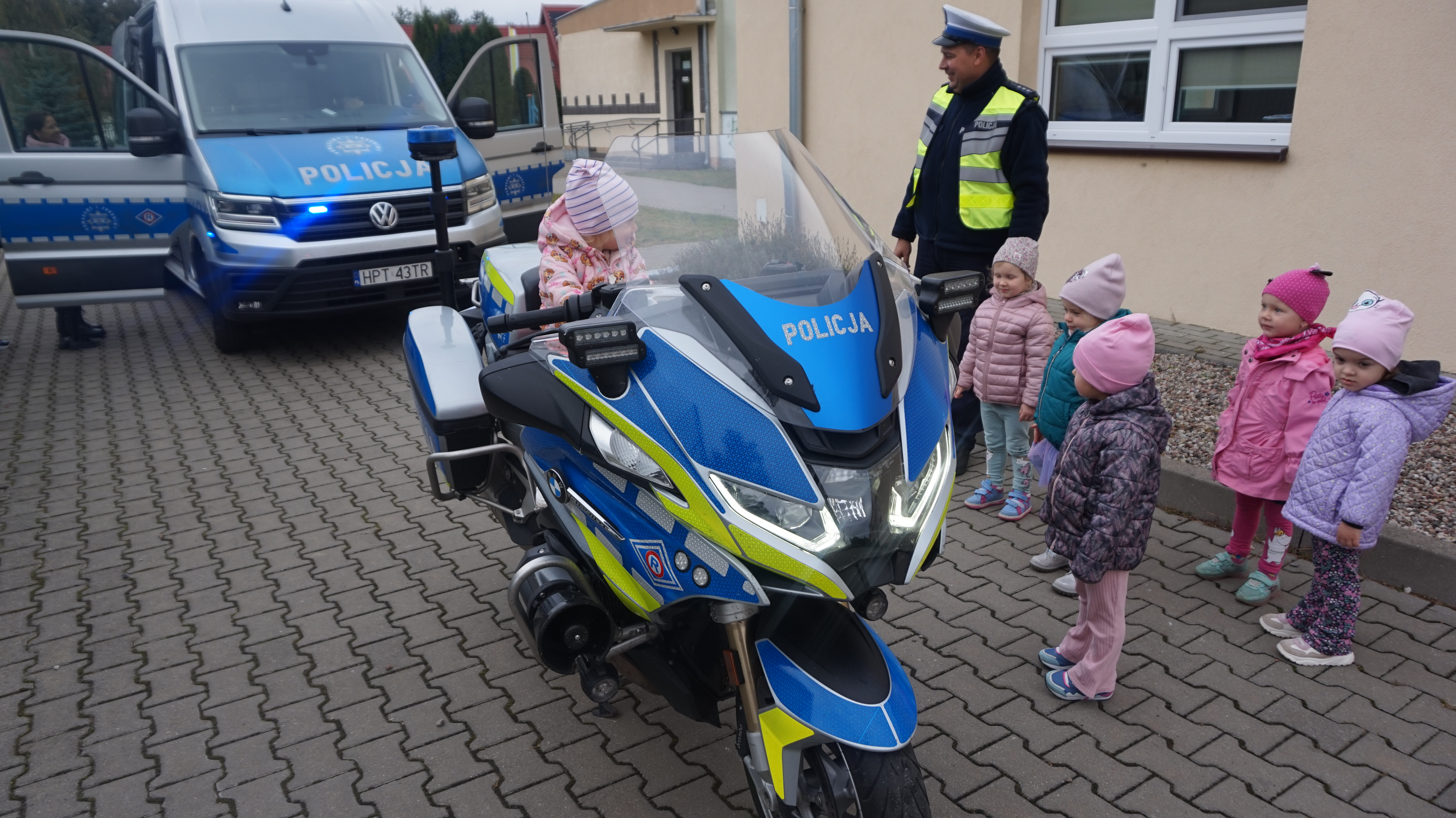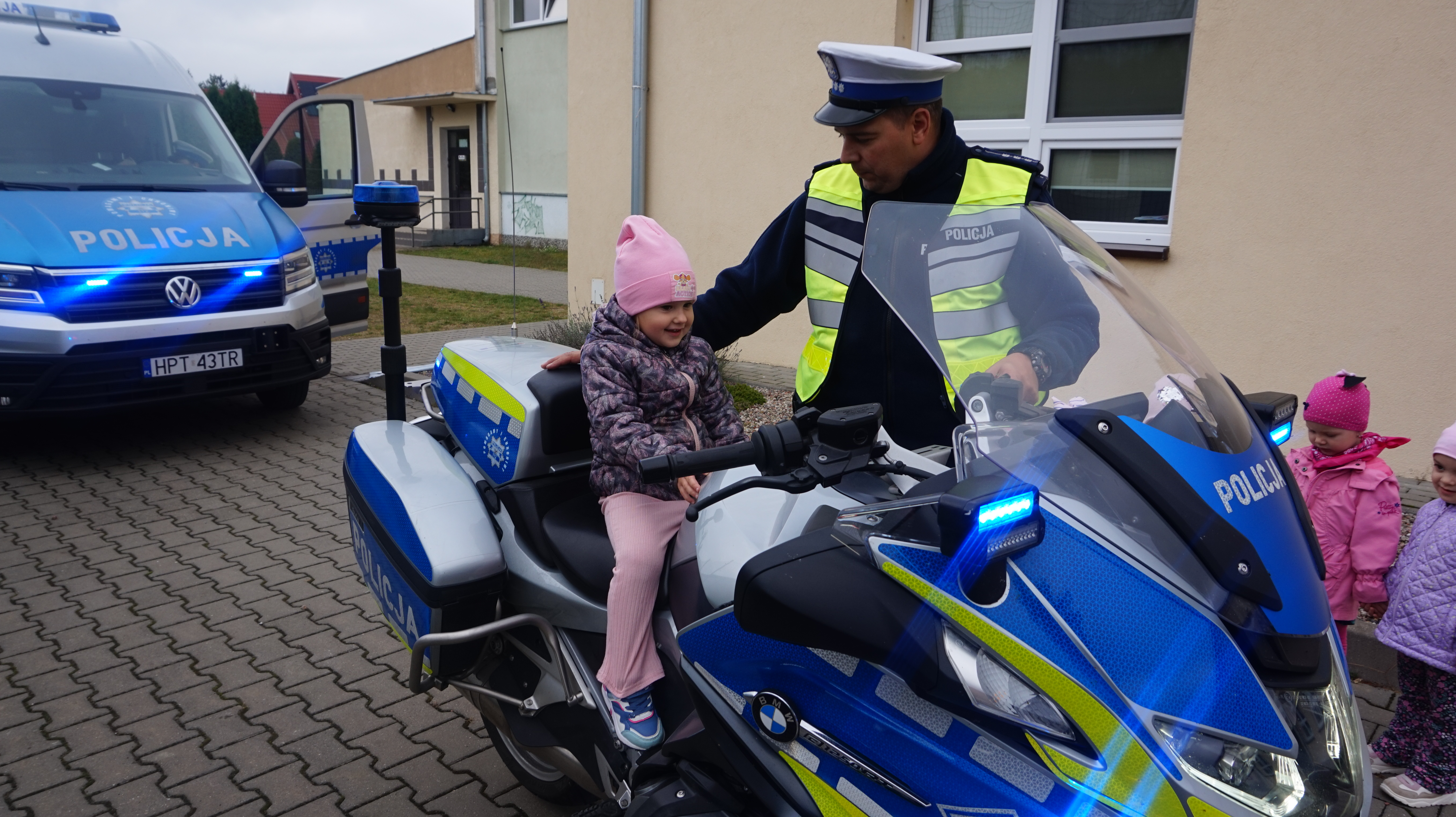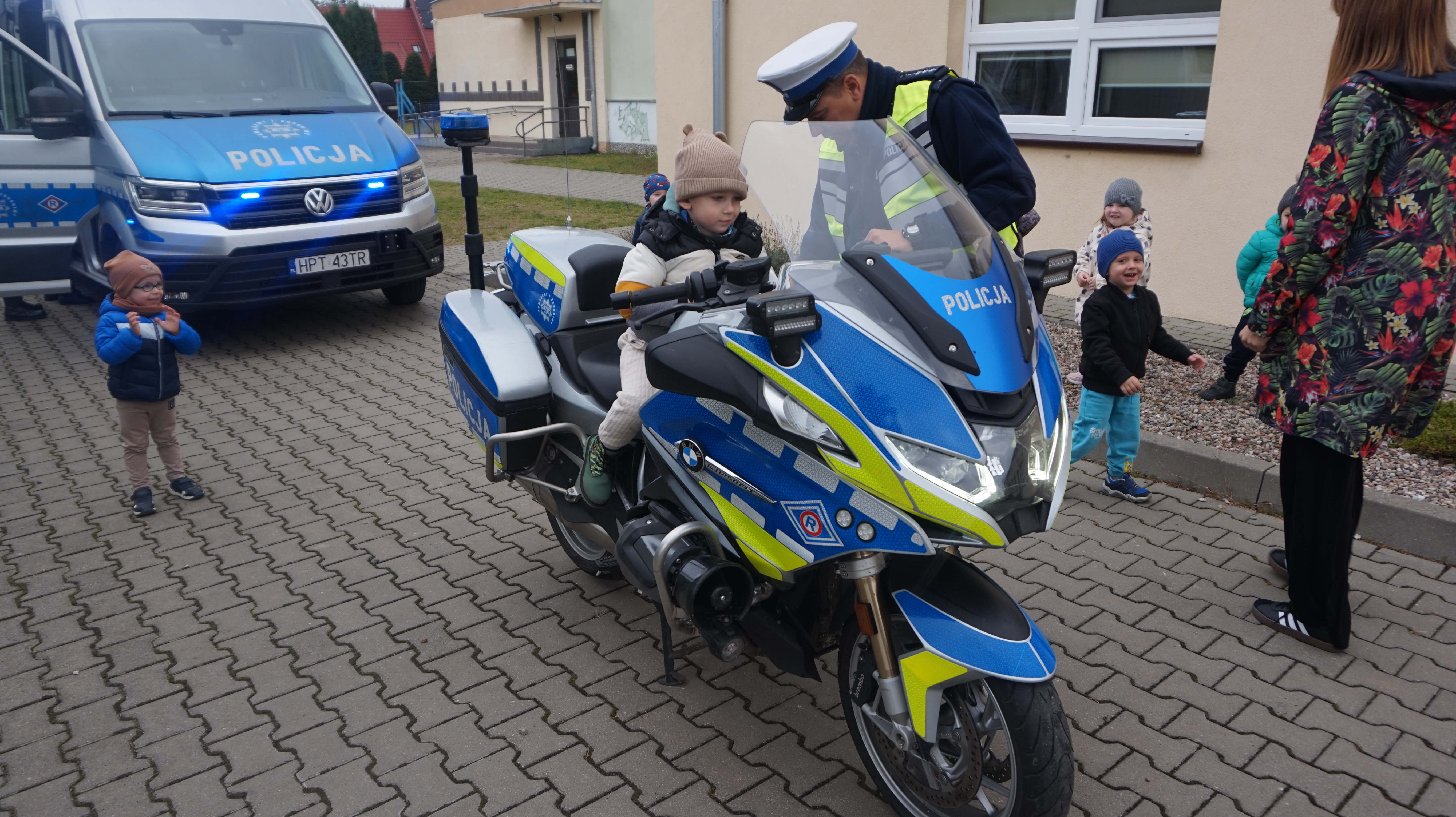 Nasze przedszkole odwiedzili wyjątkowi goście – policjanci z ostródzkiej komendy! Dzieci dowiedziały się, jak bezpiecznie poruszać się po drodze, jak reagować w sytuacjach zagrożenia oraz kogo prosić o pomoc. Najwięcej emocji wzbudziła możliwość obejrzenia z bliska radiowozu policyjnego oraz motocyklu, przymierzenia czapki i włączenie syren. To była niezwykle ciekawa i pouczająca lekcja bezpieczeństwa. Dziękujemy naszym gościom za wizytę!