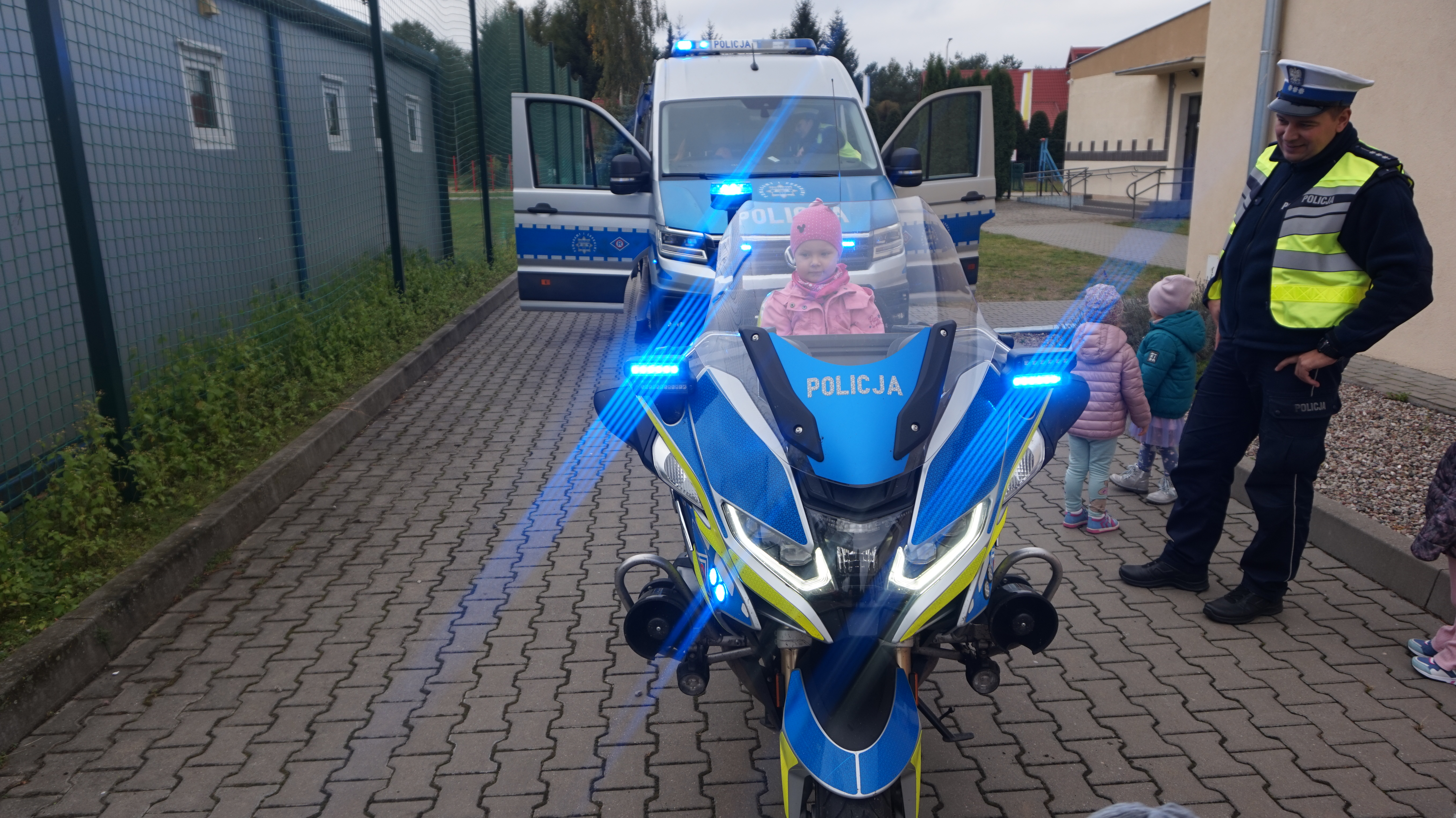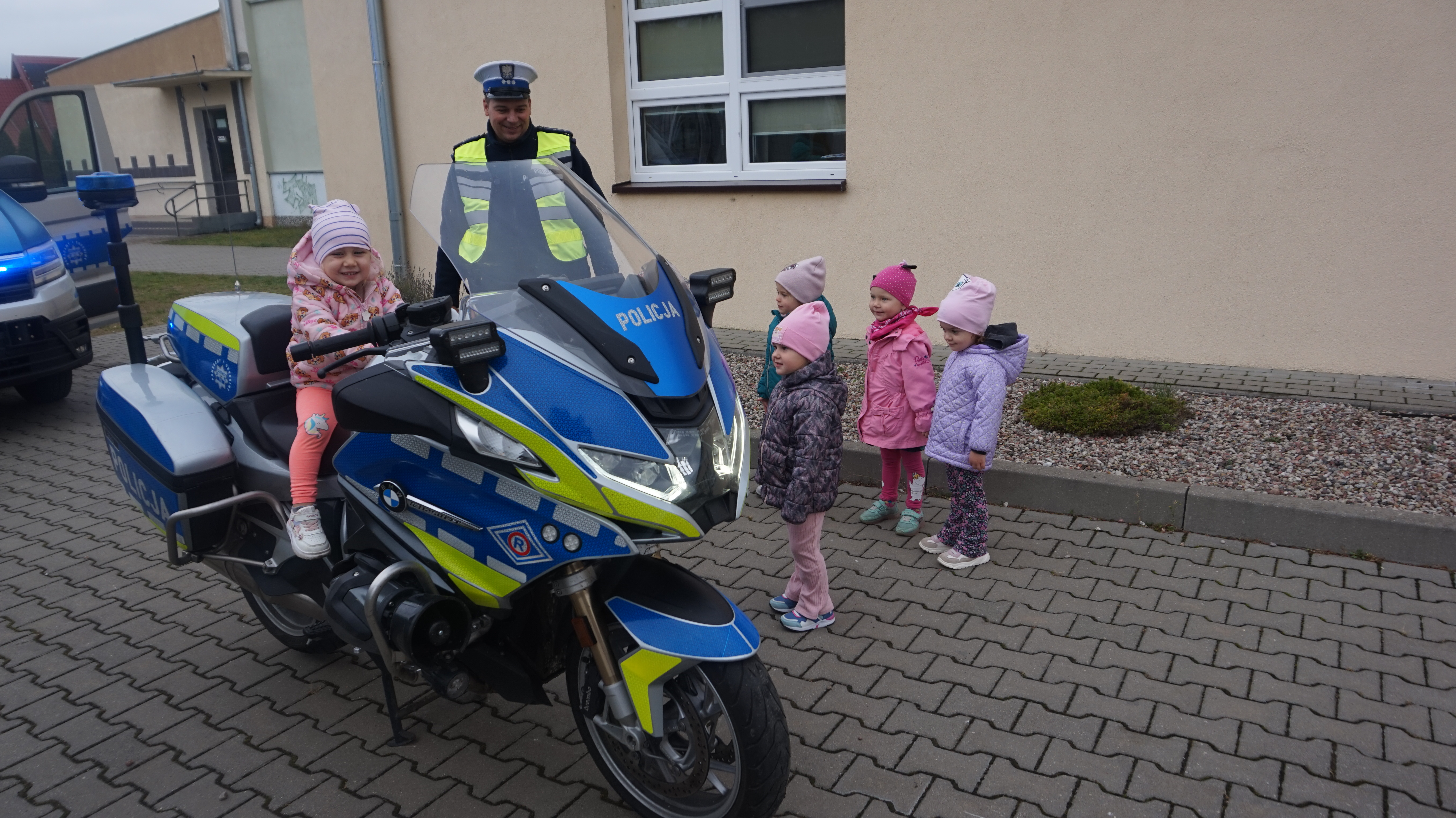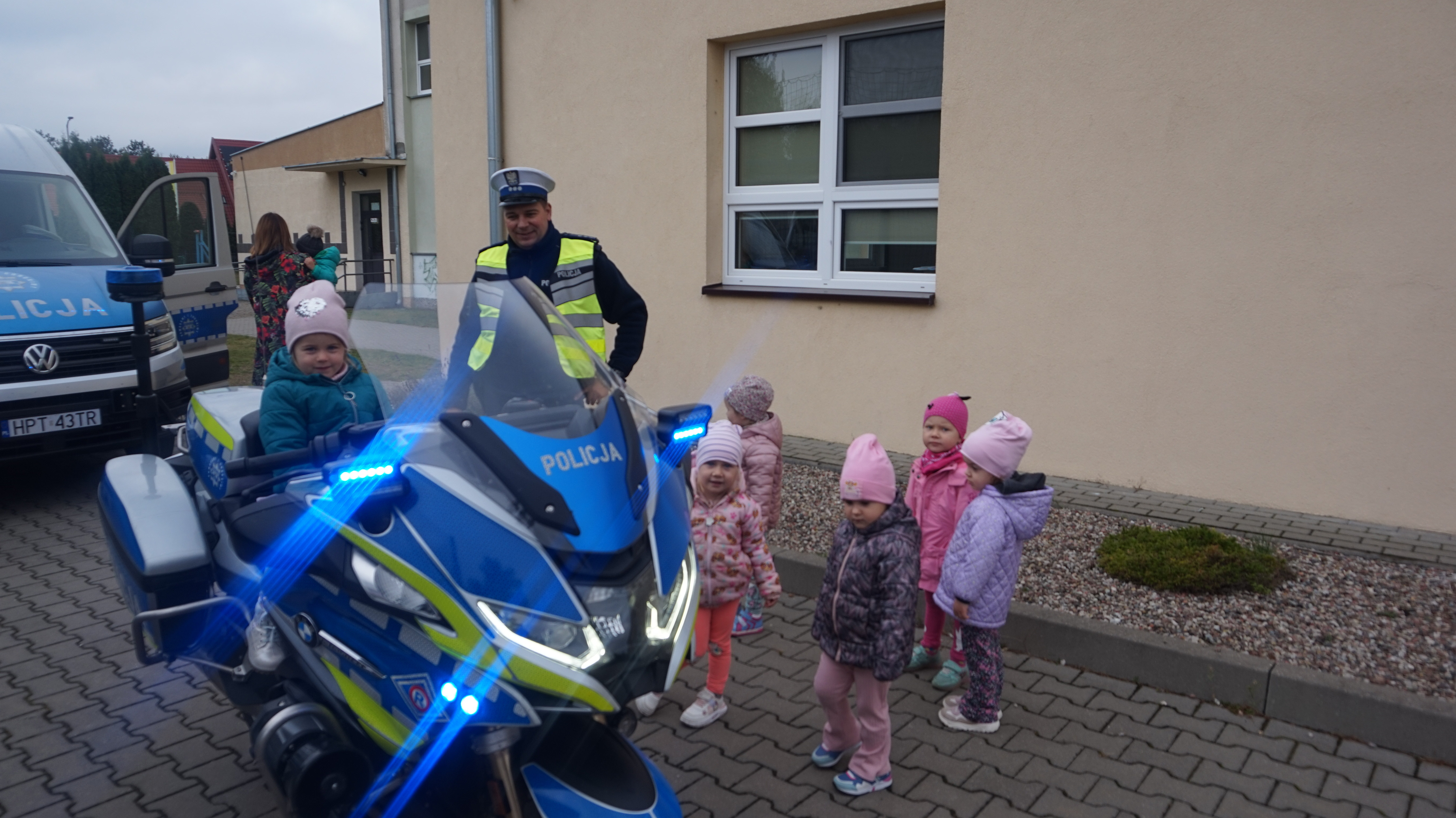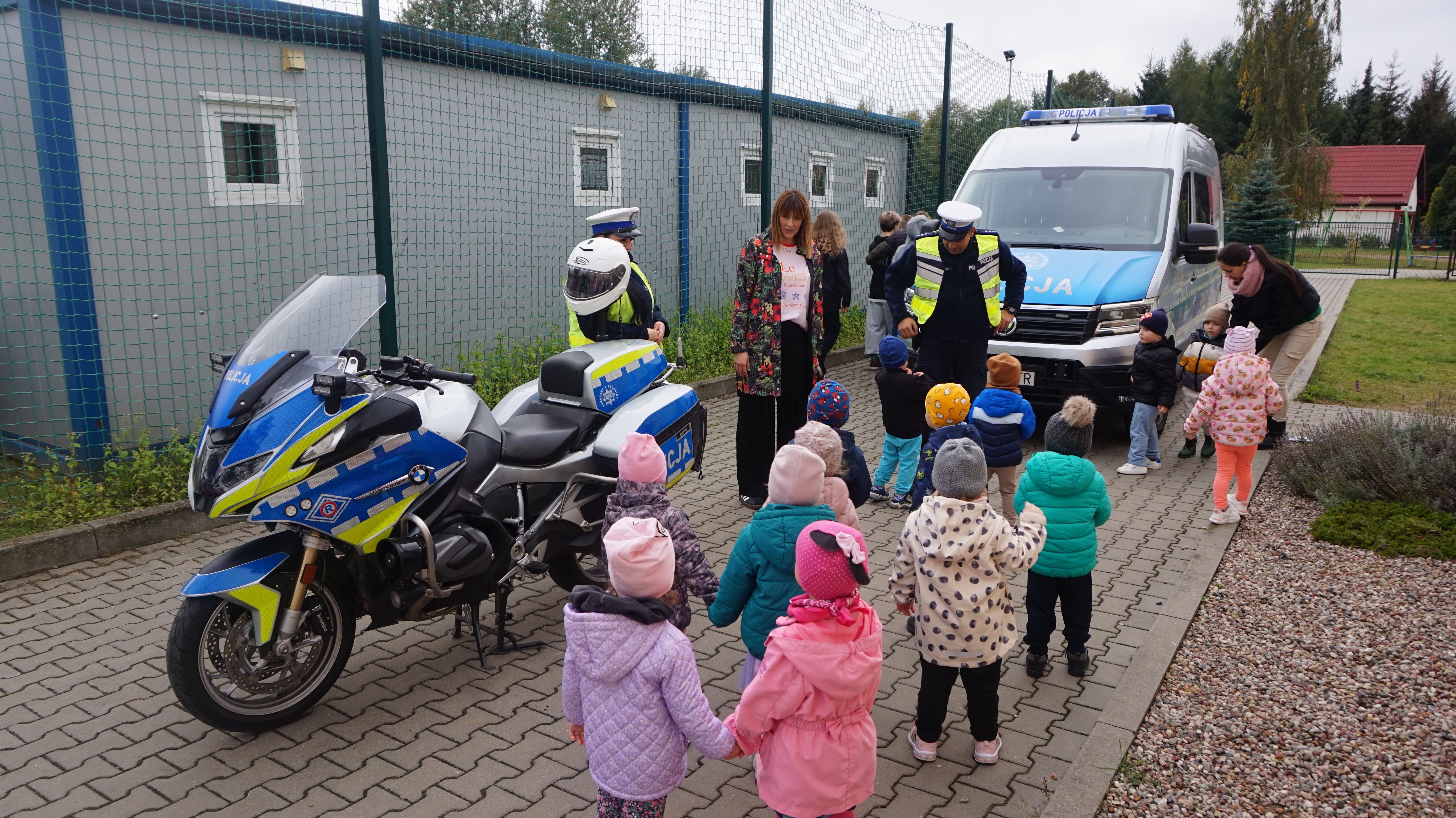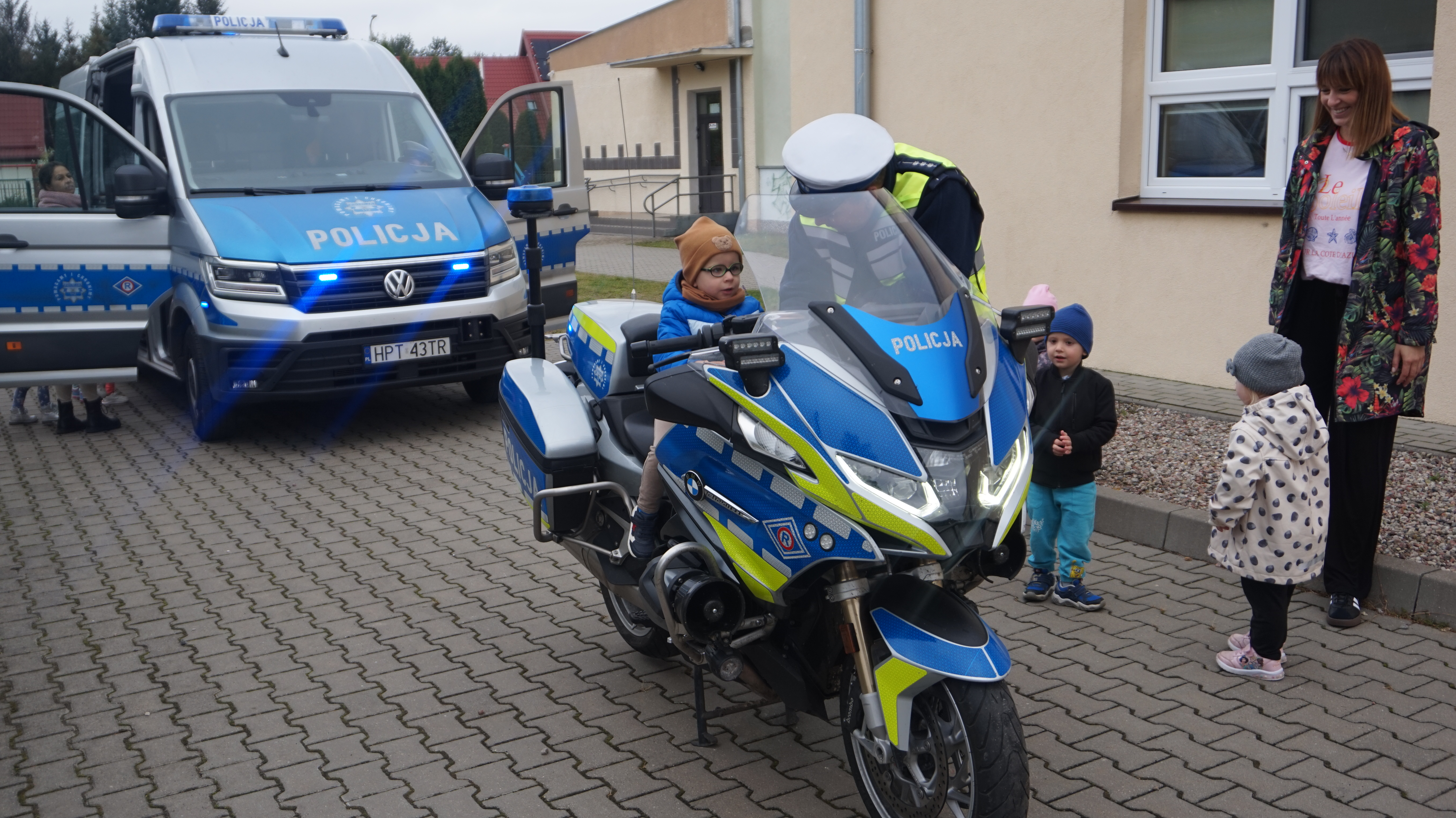 Nasze przedszkole odwiedzili wyjątkowi goście – policjanci z ostródzkiej komendy! Dzieci dowiedziały się, jak bezpiecznie poruszać się po drodze, jak reagować w sytuacjach zagrożenia oraz kogo prosić o pomoc. Najwięcej emocji wzbudziła możliwość obejrzenia z bliska radiowozu policyjnego oraz motocyklu, przymierzenia czapki i włączenie syren. To była niezwykle ciekawa i pouczająca lekcja bezpieczeństwa. Dziękujemy naszym gościom za wizytę!