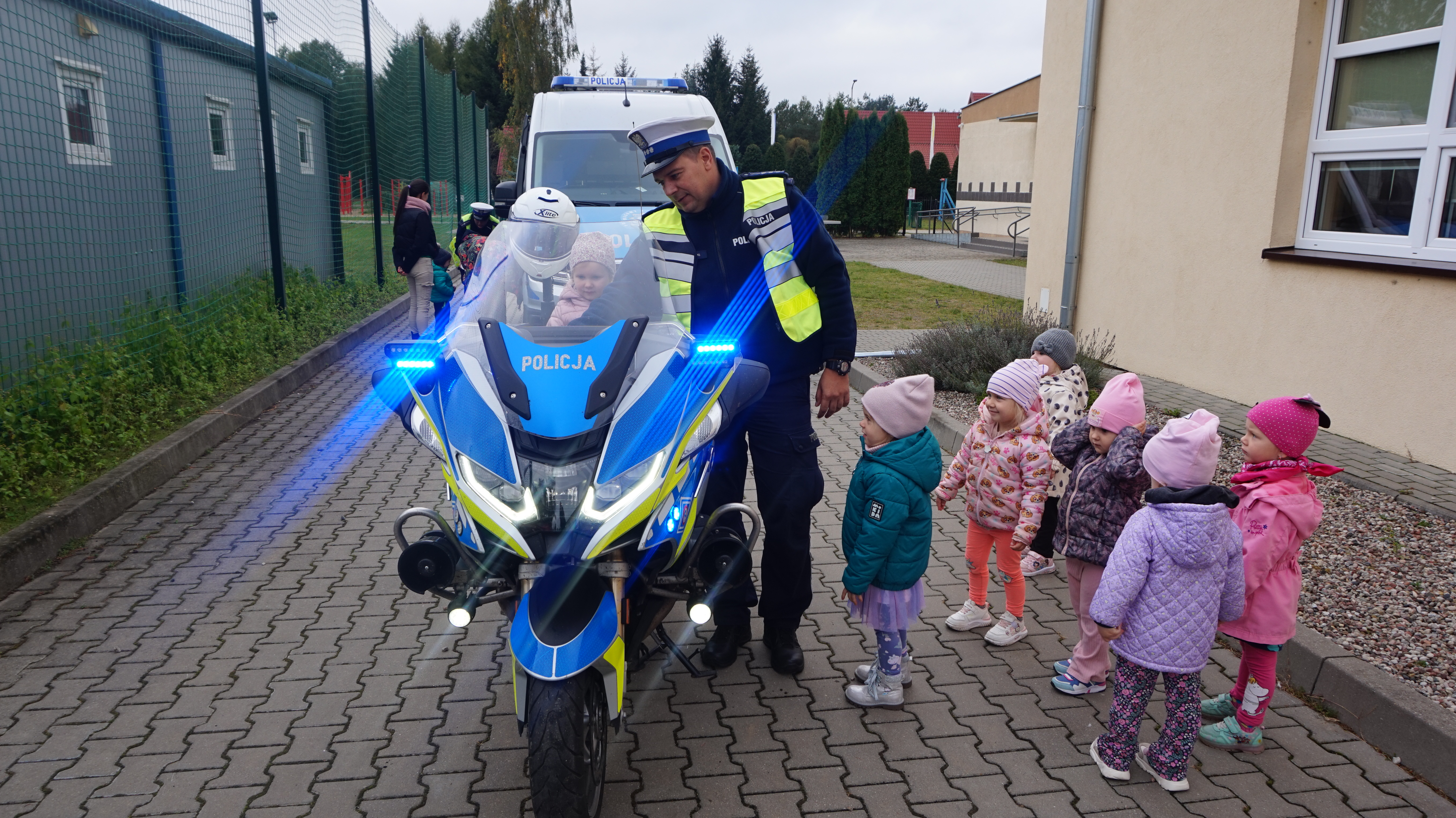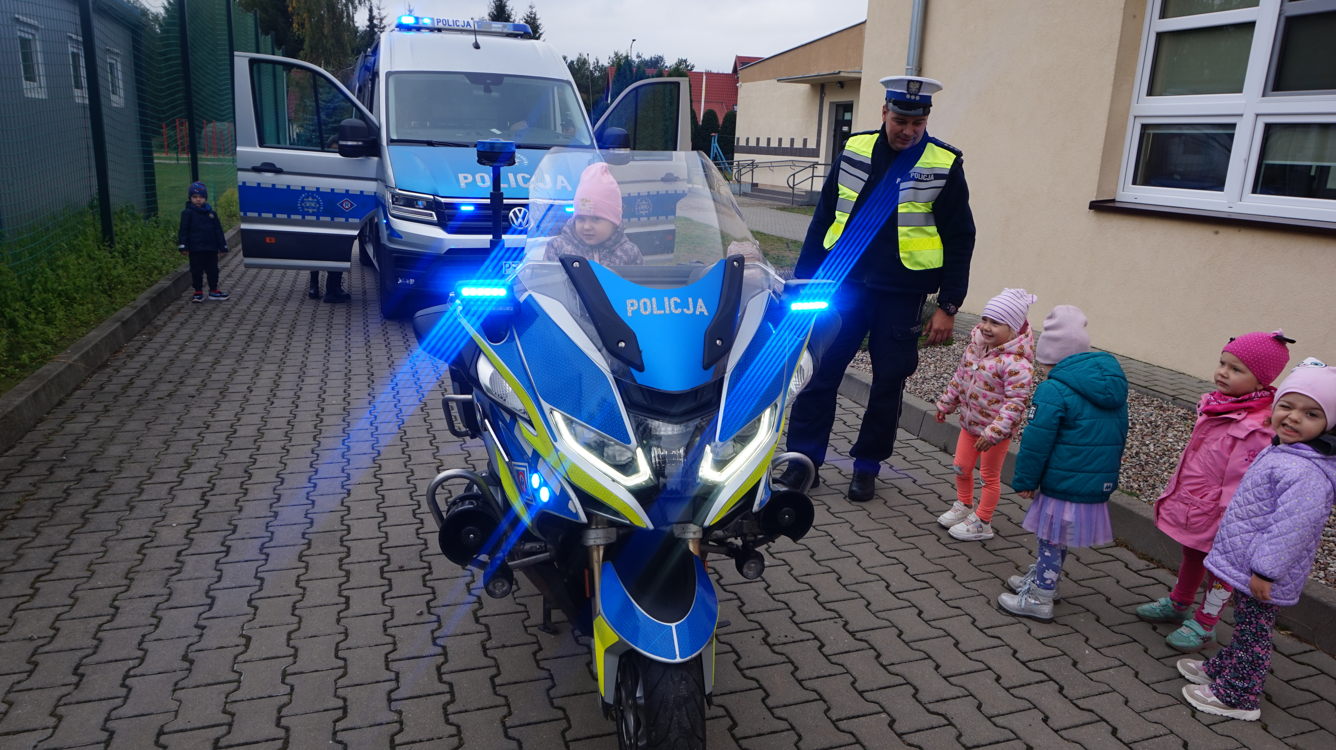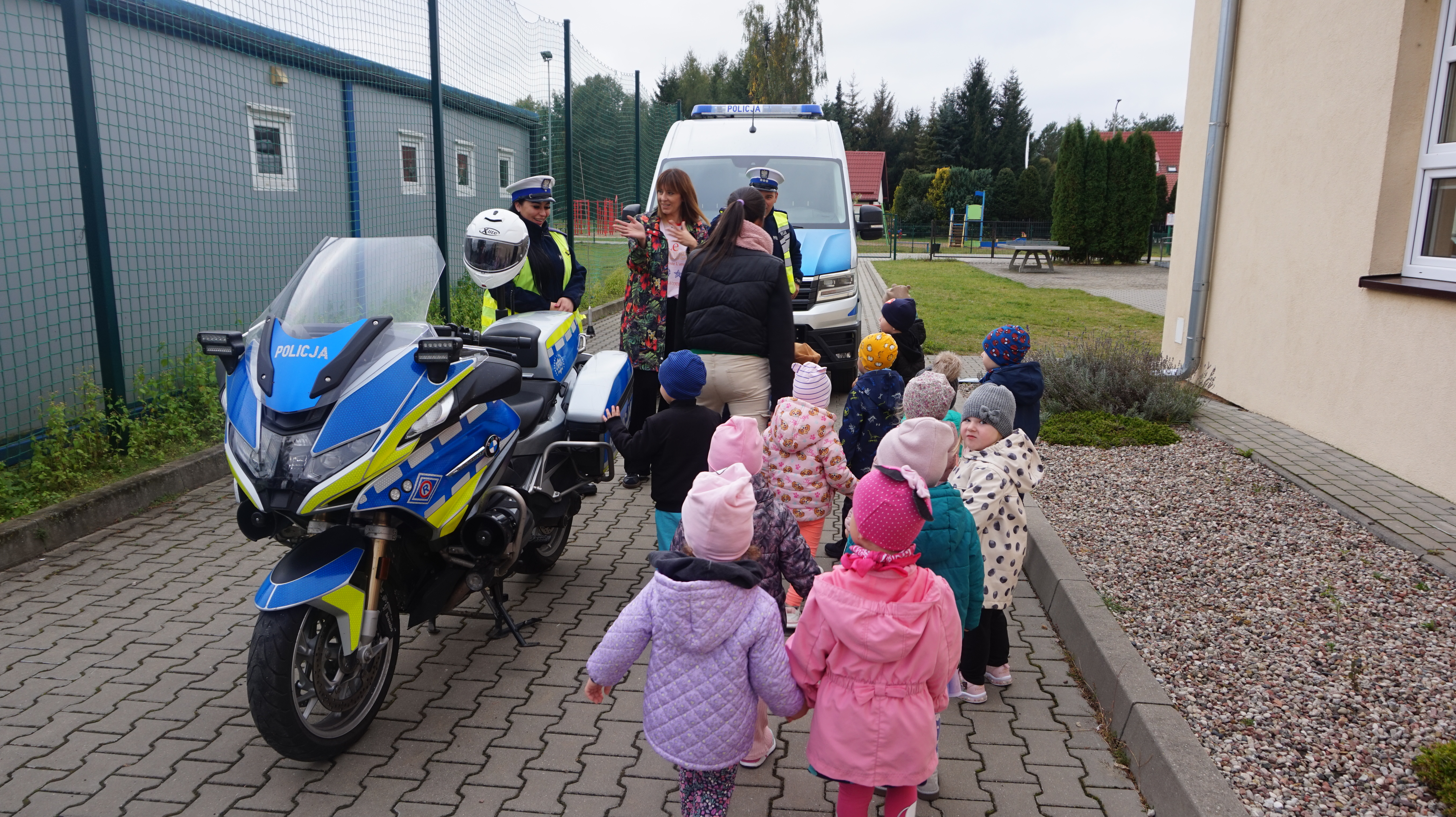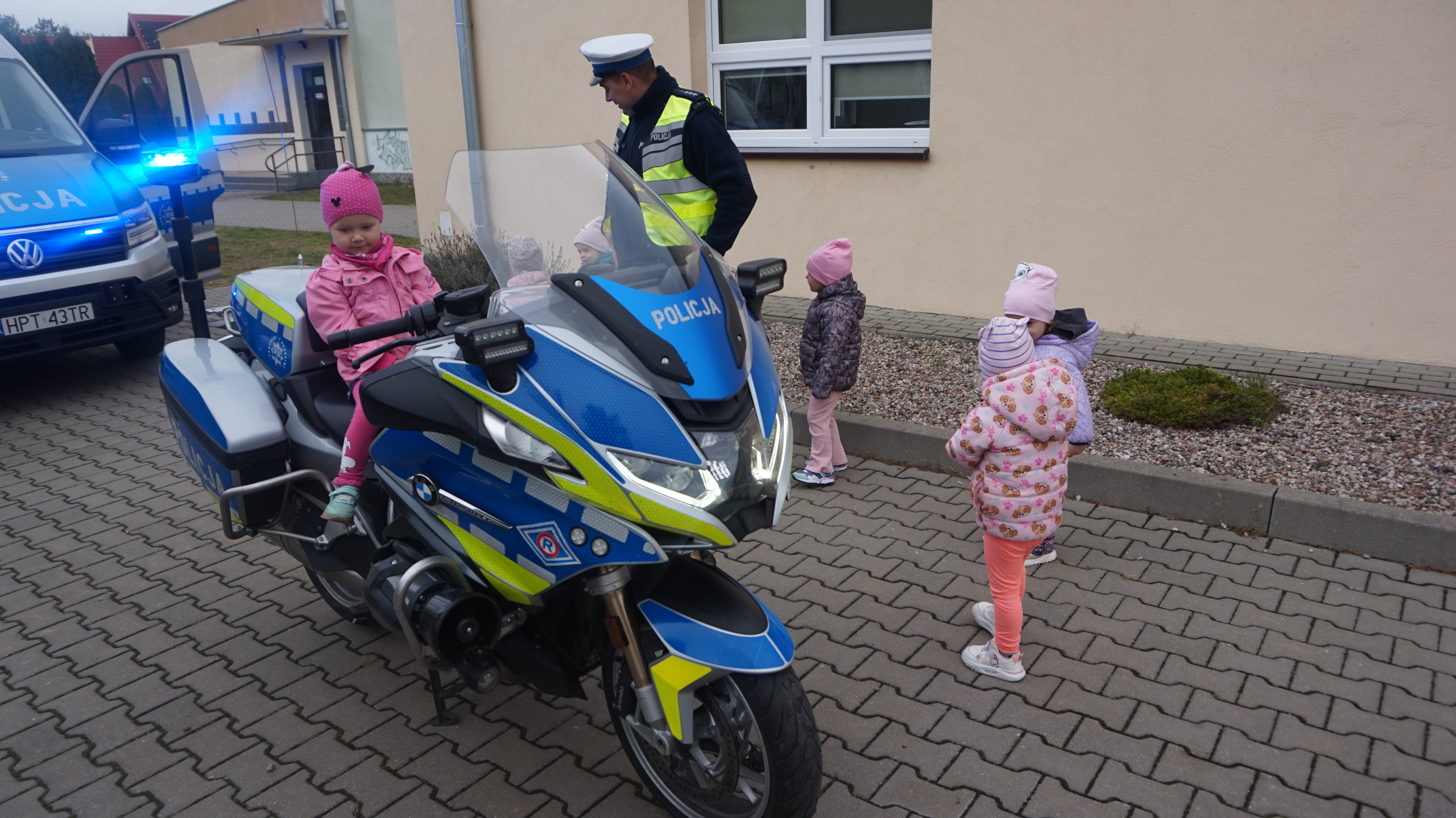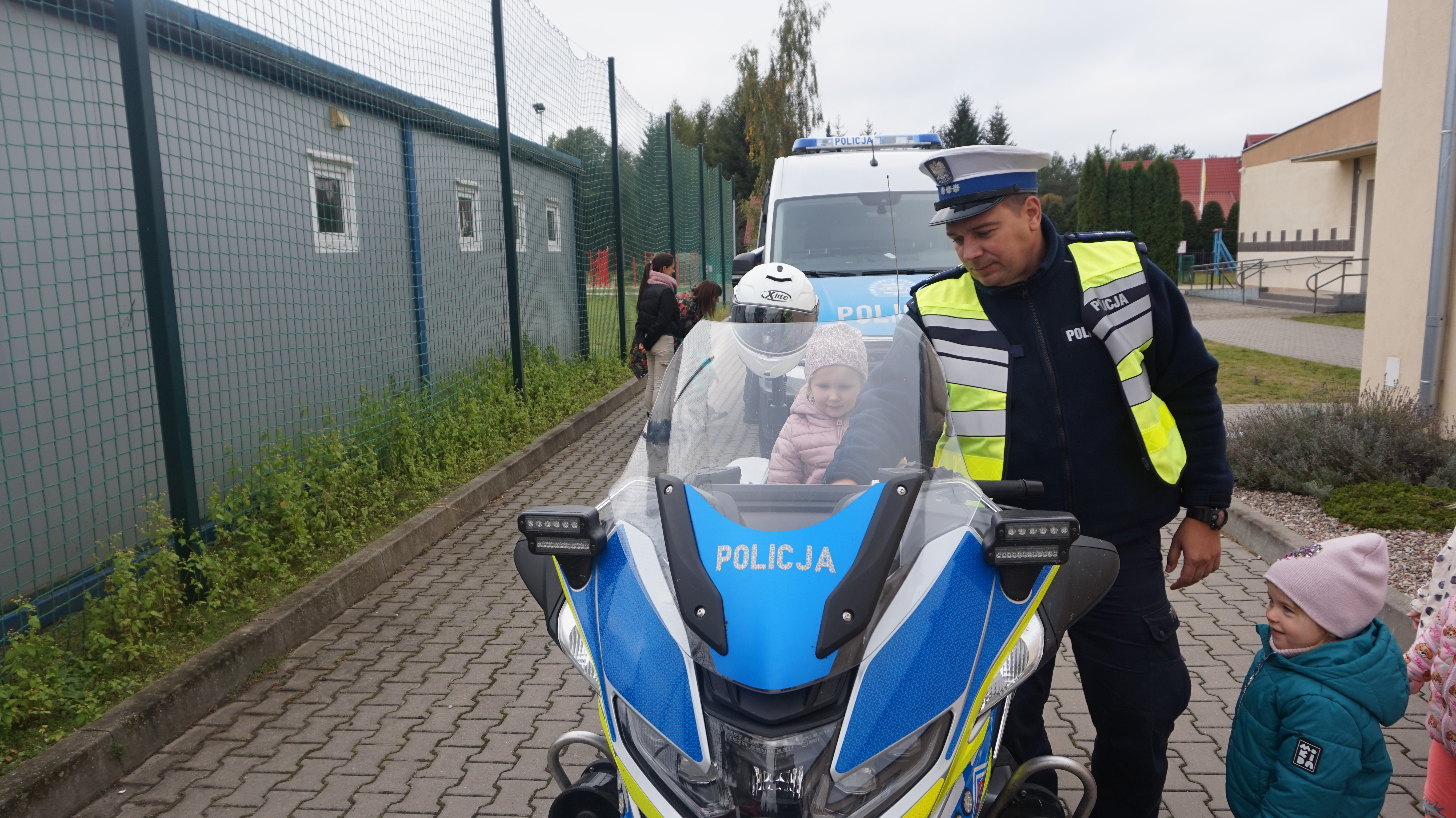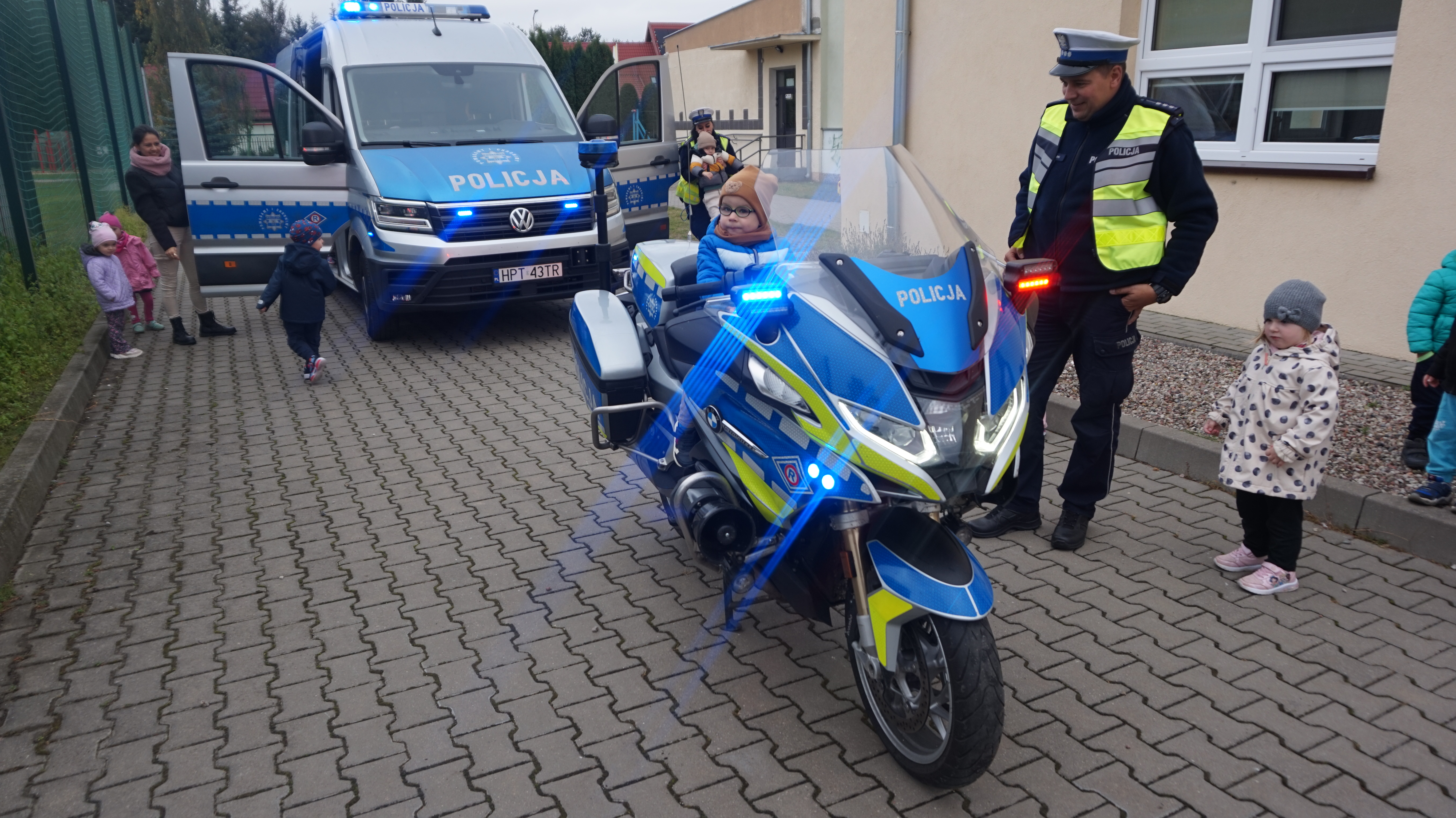 Nasze przedszkole odwiedzili wyjątkowi goście – policjanci z ostródzkiej komendy! Dzieci dowiedziały się, jak bezpiecznie poruszać się po drodze, jak reagować w sytuacjach zagrożenia oraz kogo prosić o pomoc. Najwięcej emocji wzbudziła możliwość obejrzenia z bliska radiowozu policyjnego oraz motocyklu, przymierzenia czapki i włączenie syren. To była niezwykle ciekawa i pouczająca lekcja bezpieczeństwa. Dziękujemy naszym gościom za wizytę!