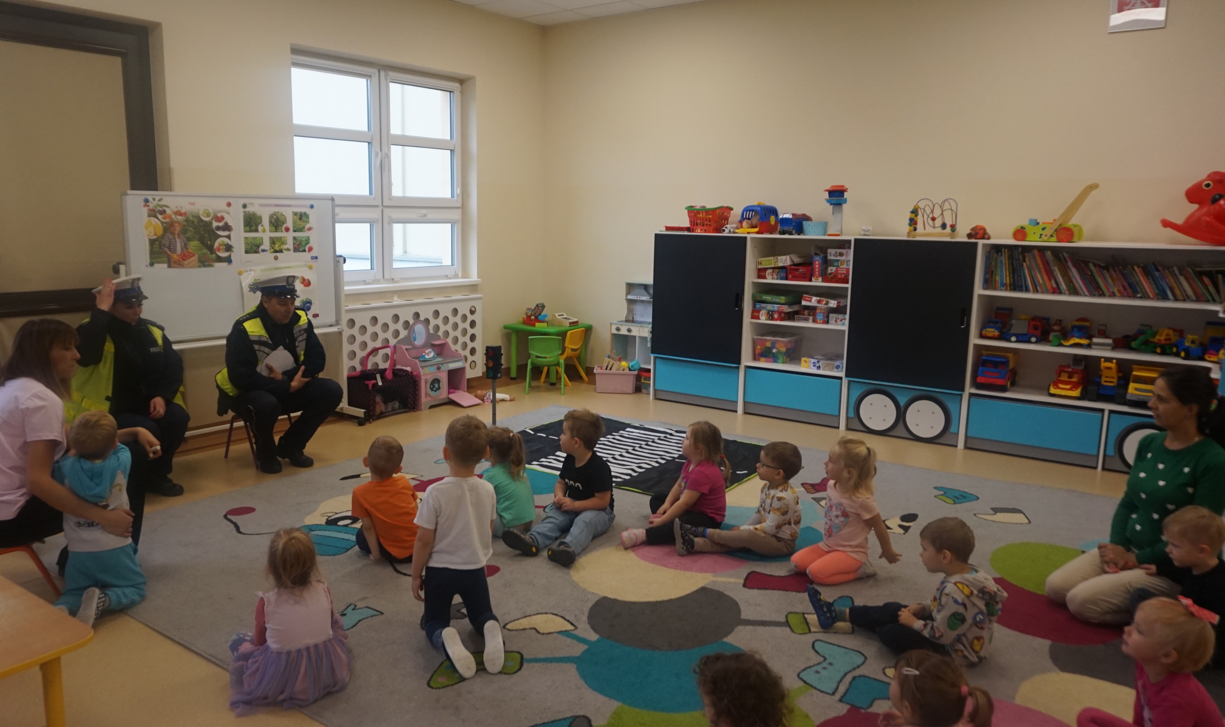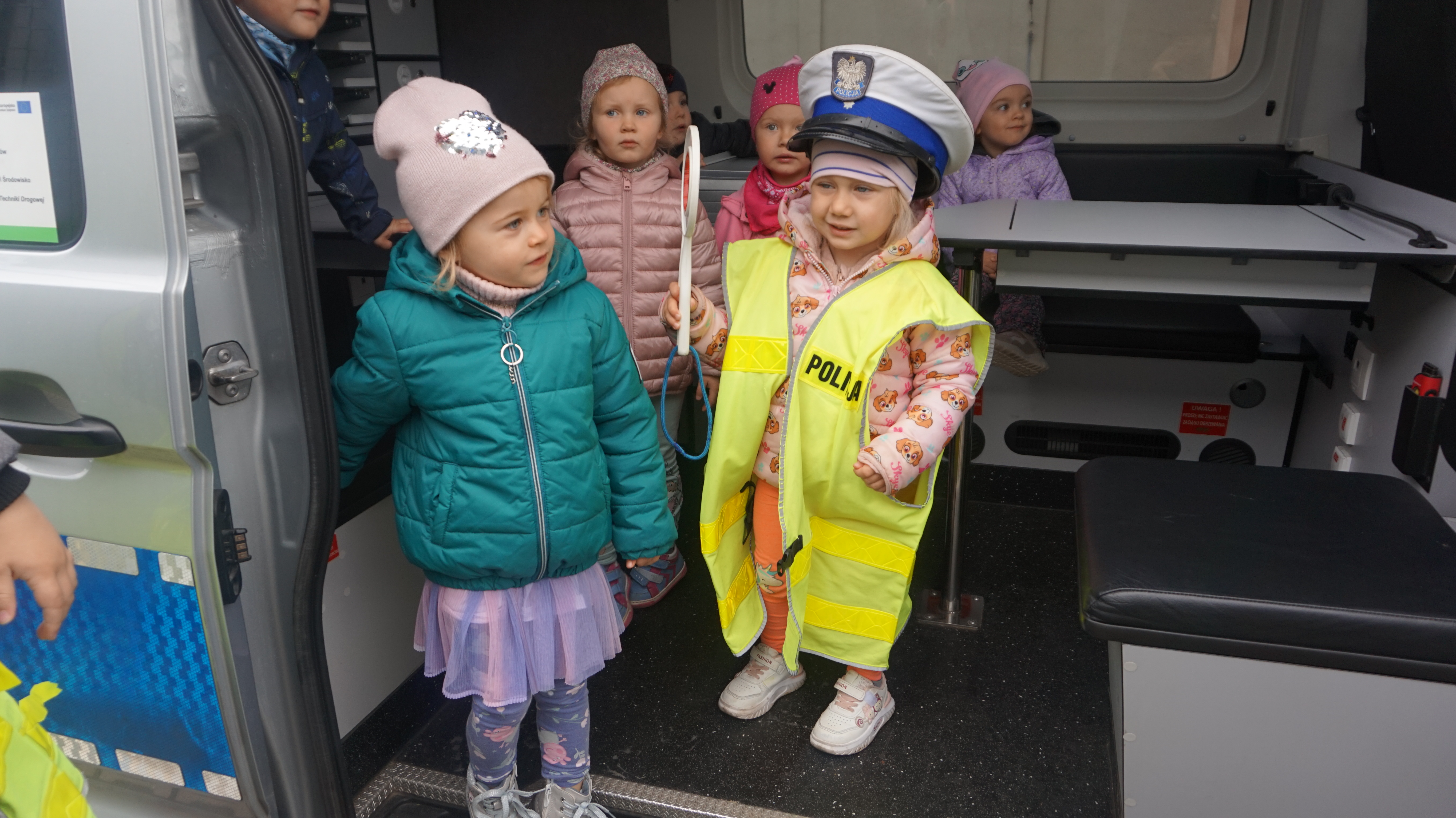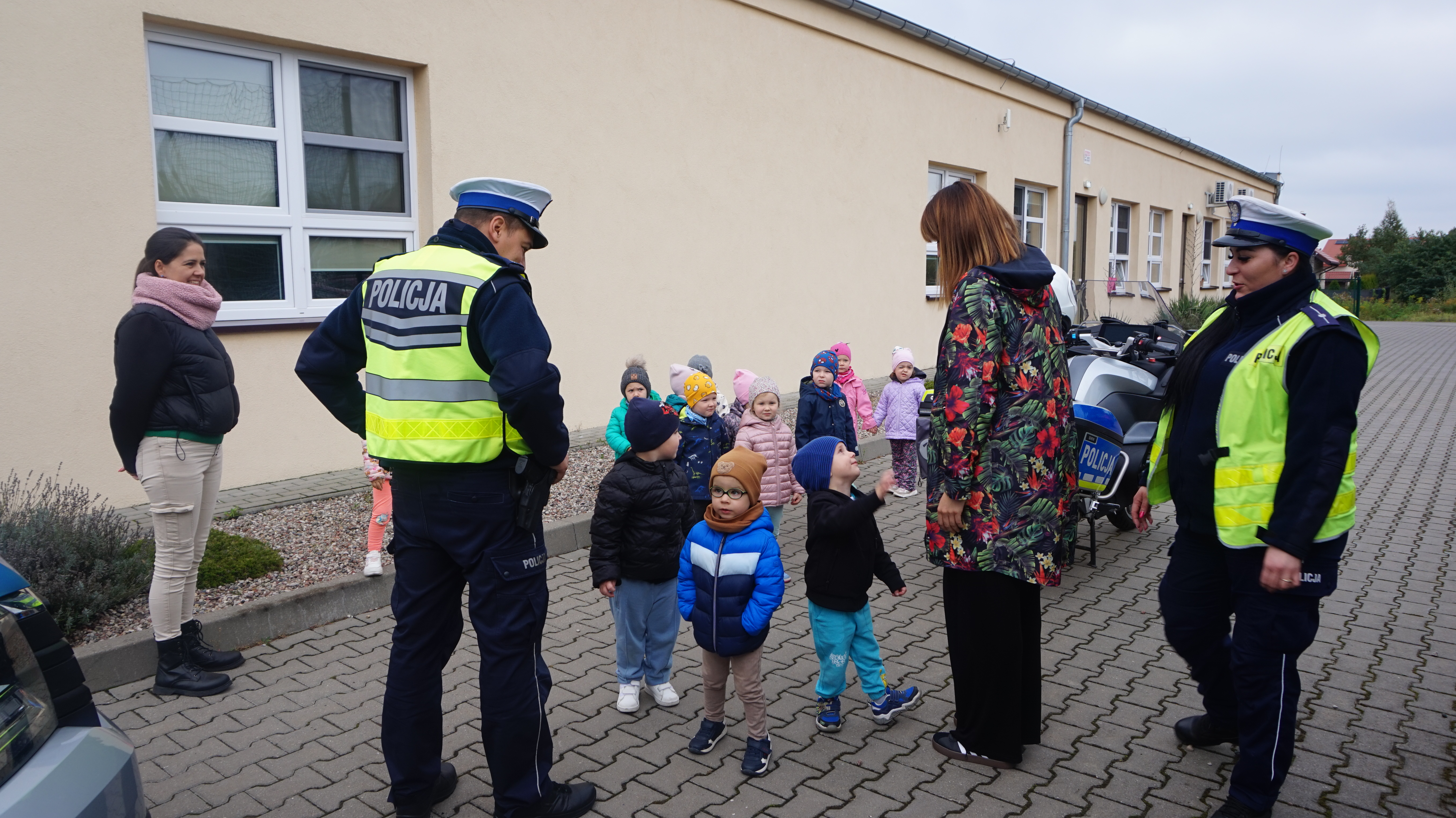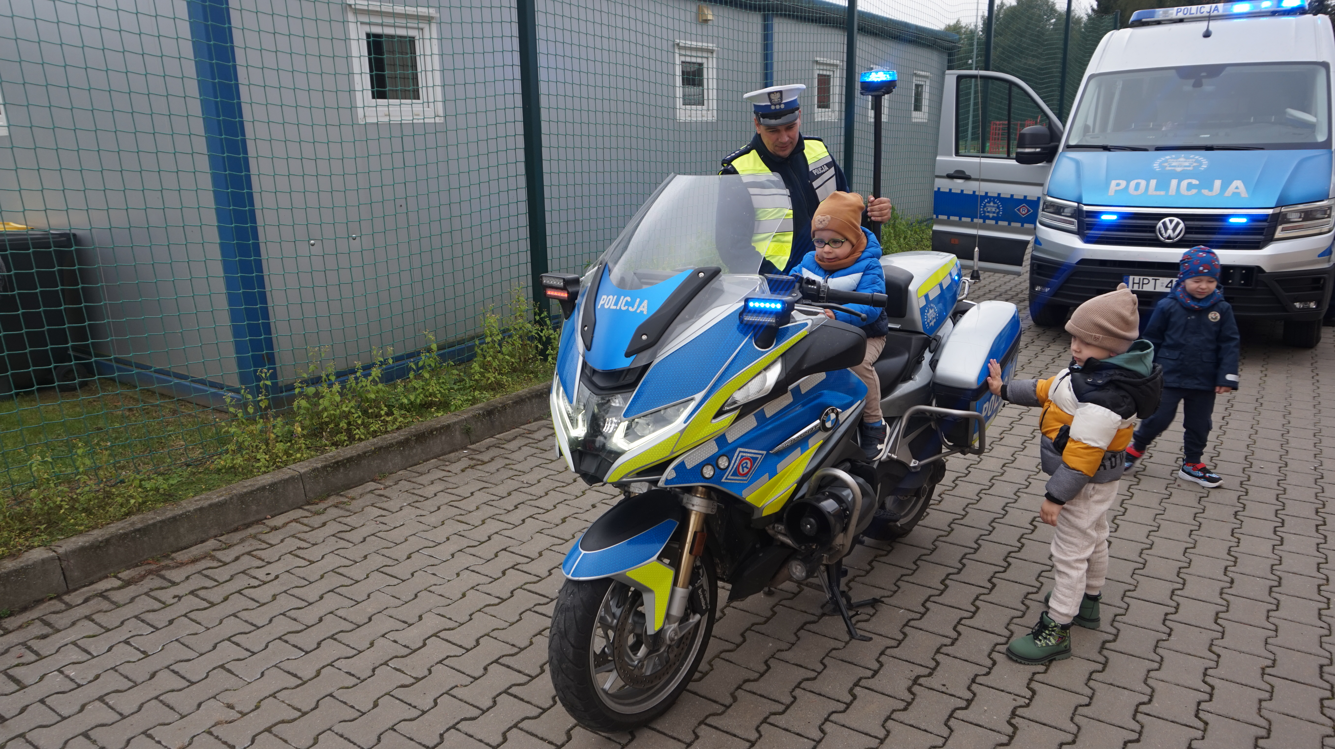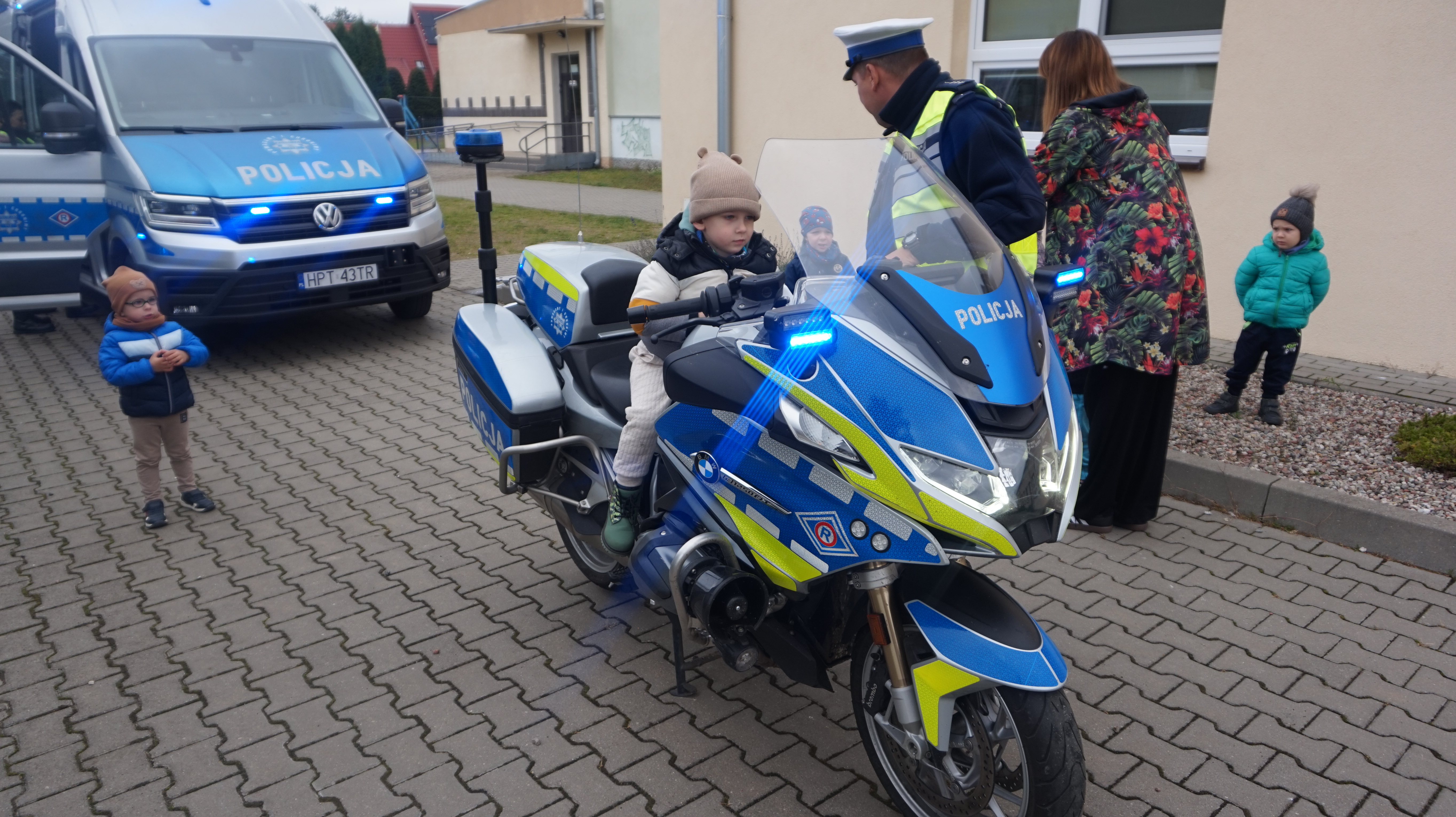 Nasze przedszkole odwiedzili wyjątkowi goście – policjanci z ostródzkiej komendy! Dzieci dowiedziały się, jak bezpiecznie poruszać się po drodze, jak reagować w sytuacjach zagrożenia oraz kogo prosić o pomoc. Najwięcej emocji wzbudziła możliwość obejrzenia z bliska radiowozu policyjnego oraz motocyklu, przymierzenia czapki i włączenie syren. To była niezwykle ciekawa i pouczająca lekcja bezpieczeństwa. Dziękujemy naszym gościom za wizytę!