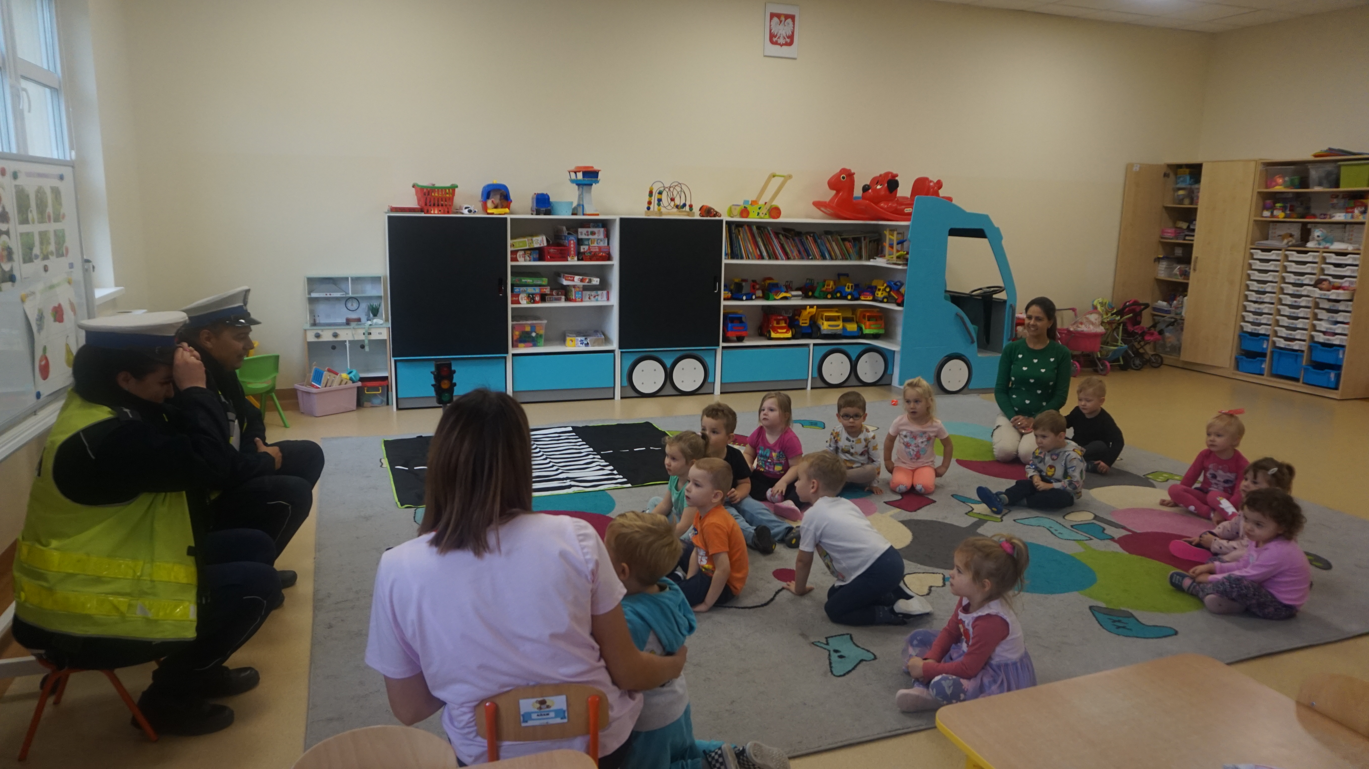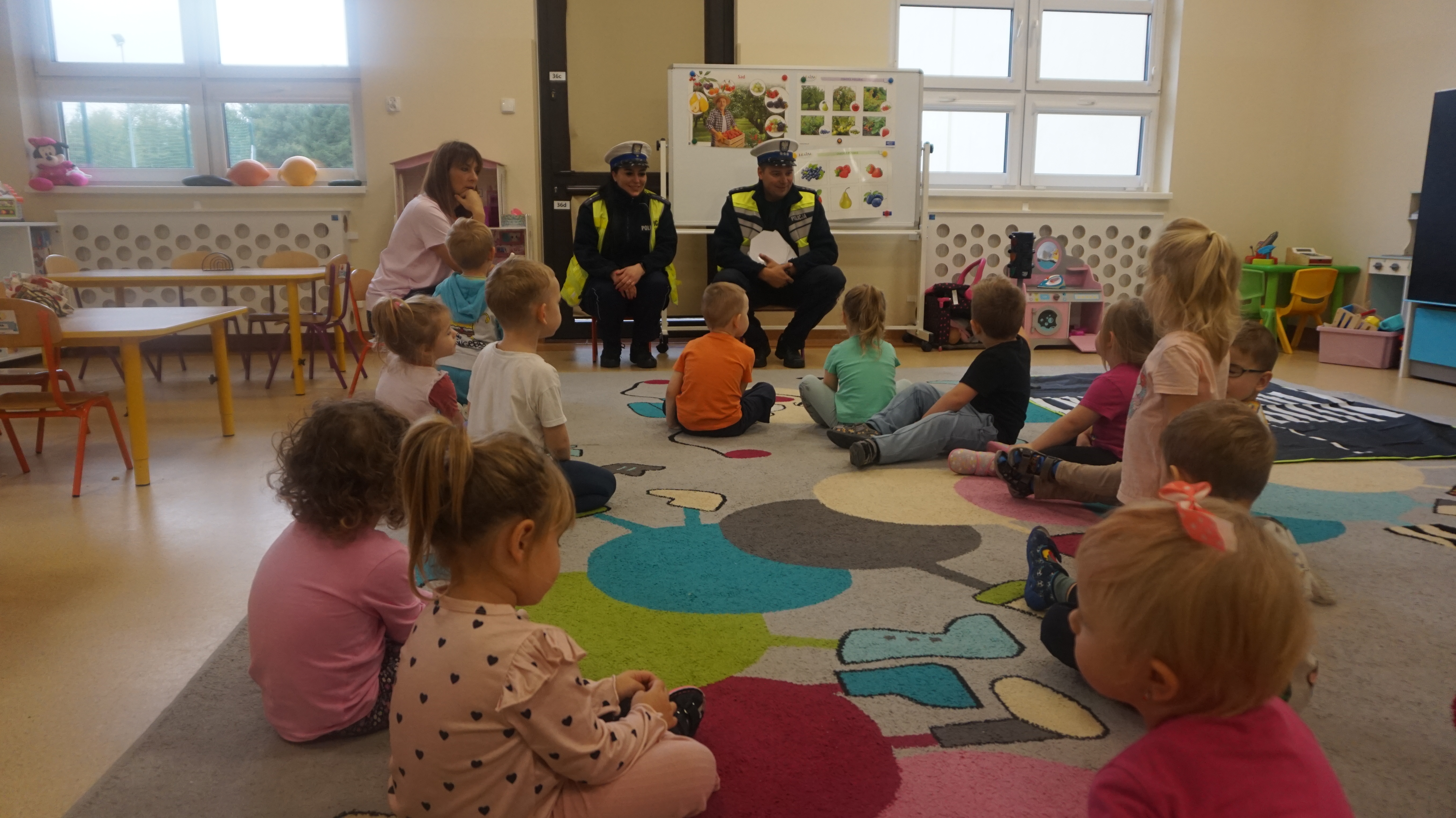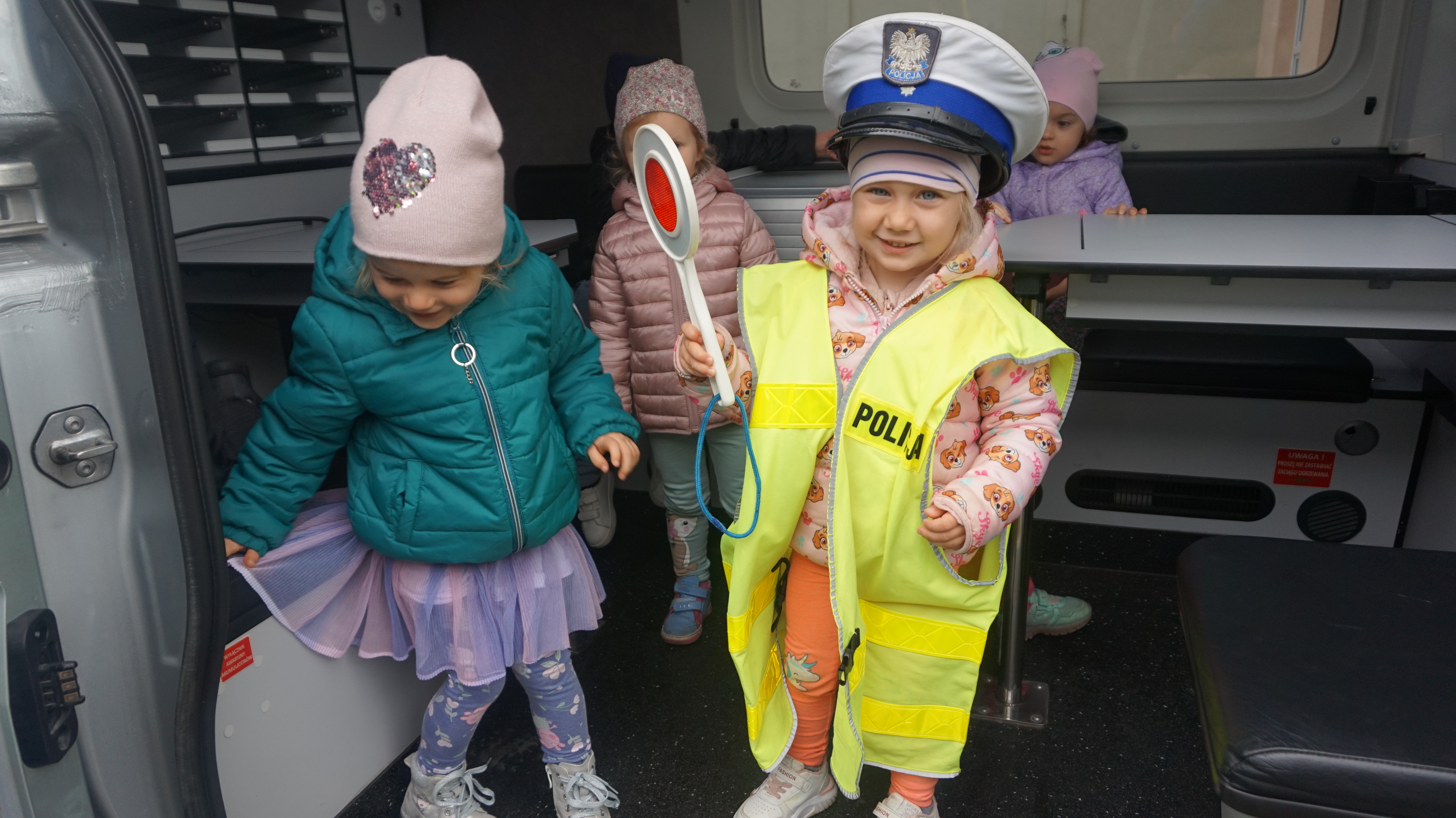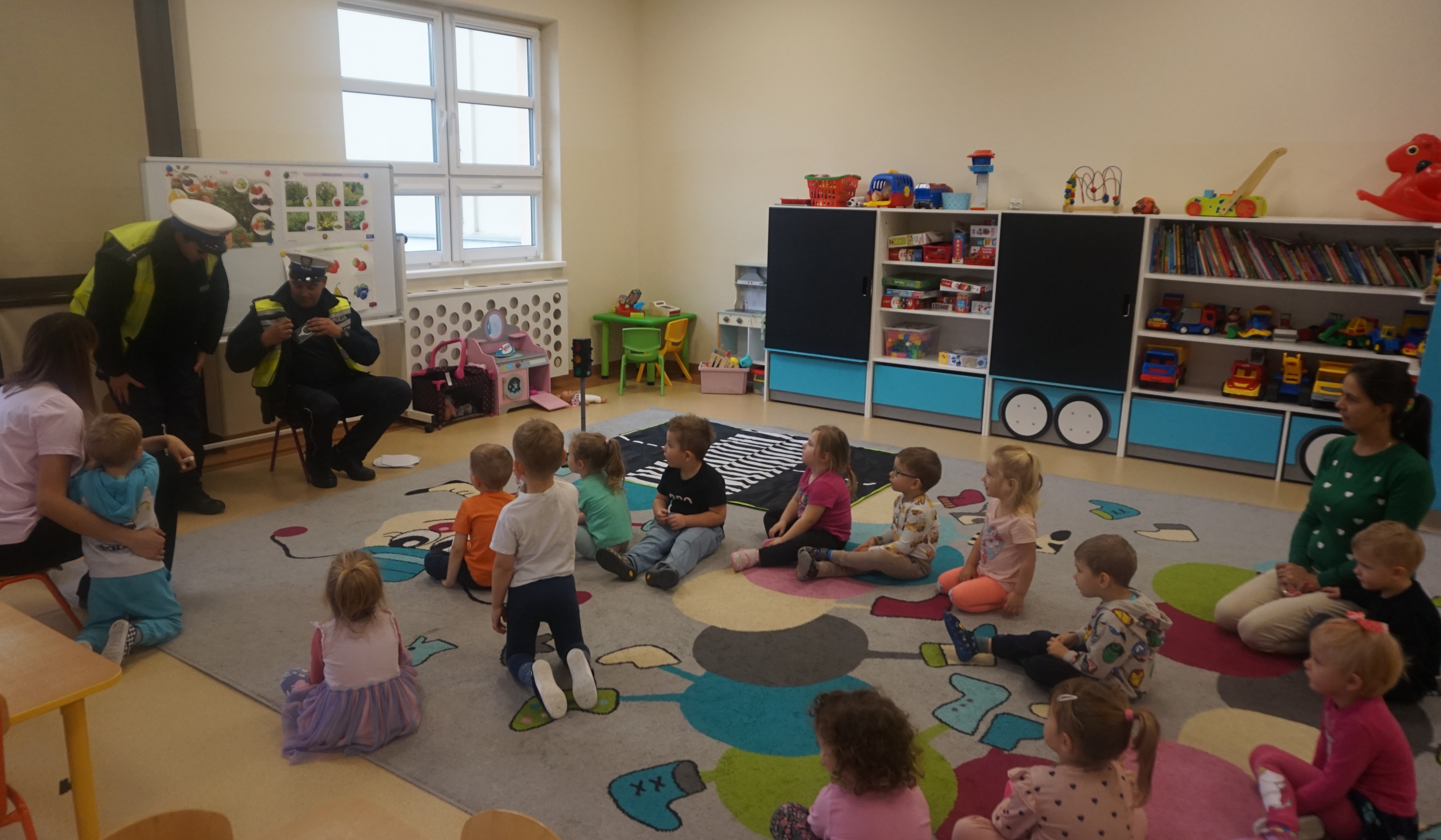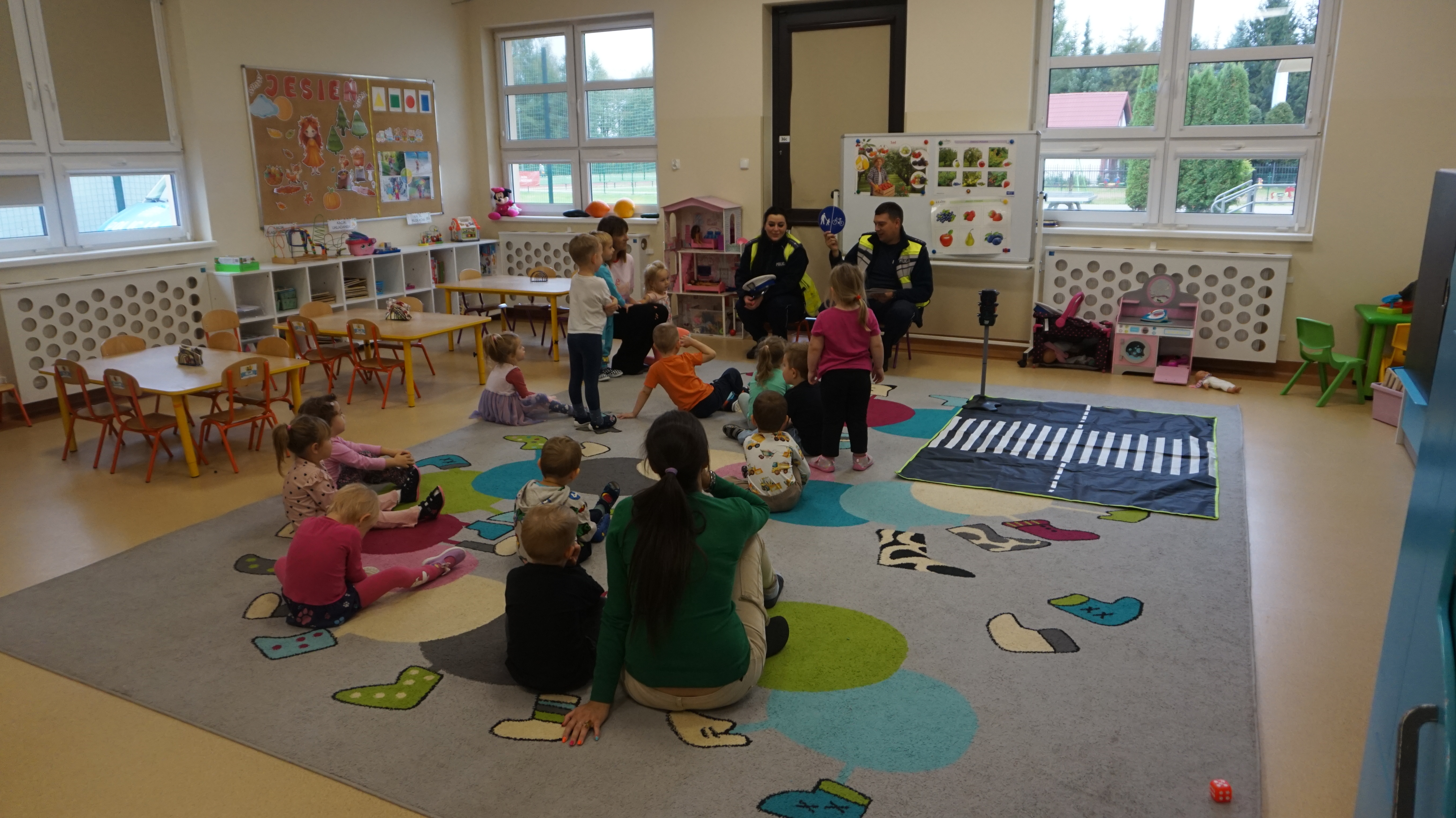 Nasze przedszkole odwiedzili wyjątkowi goście – policjanci z ostródzkiej komendy! Dzieci dowiedziały się, jak bezpiecznie poruszać się po drodze, jak reagować w sytuacjach zagrożenia oraz kogo prosić o pomoc. Najwięcej emocji wzbudziła możliwość obejrzenia z bliska radiowozu policyjnego oraz motocyklu, przymierzenia czapki i włączenie syren. To była niezwykle ciekawa i pouczająca lekcja bezpieczeństwa. Dziękujemy naszym gościom za wizytę!
