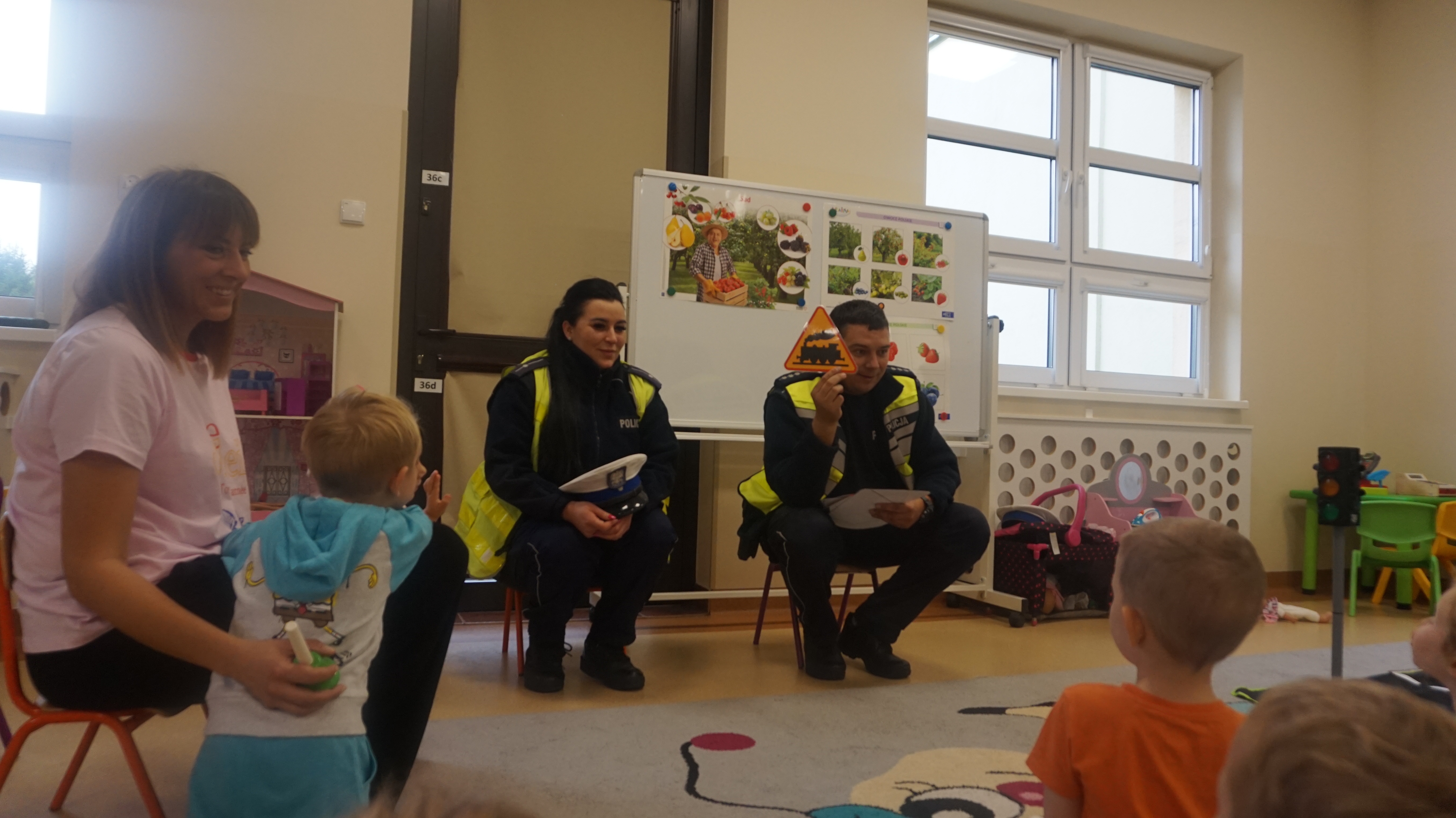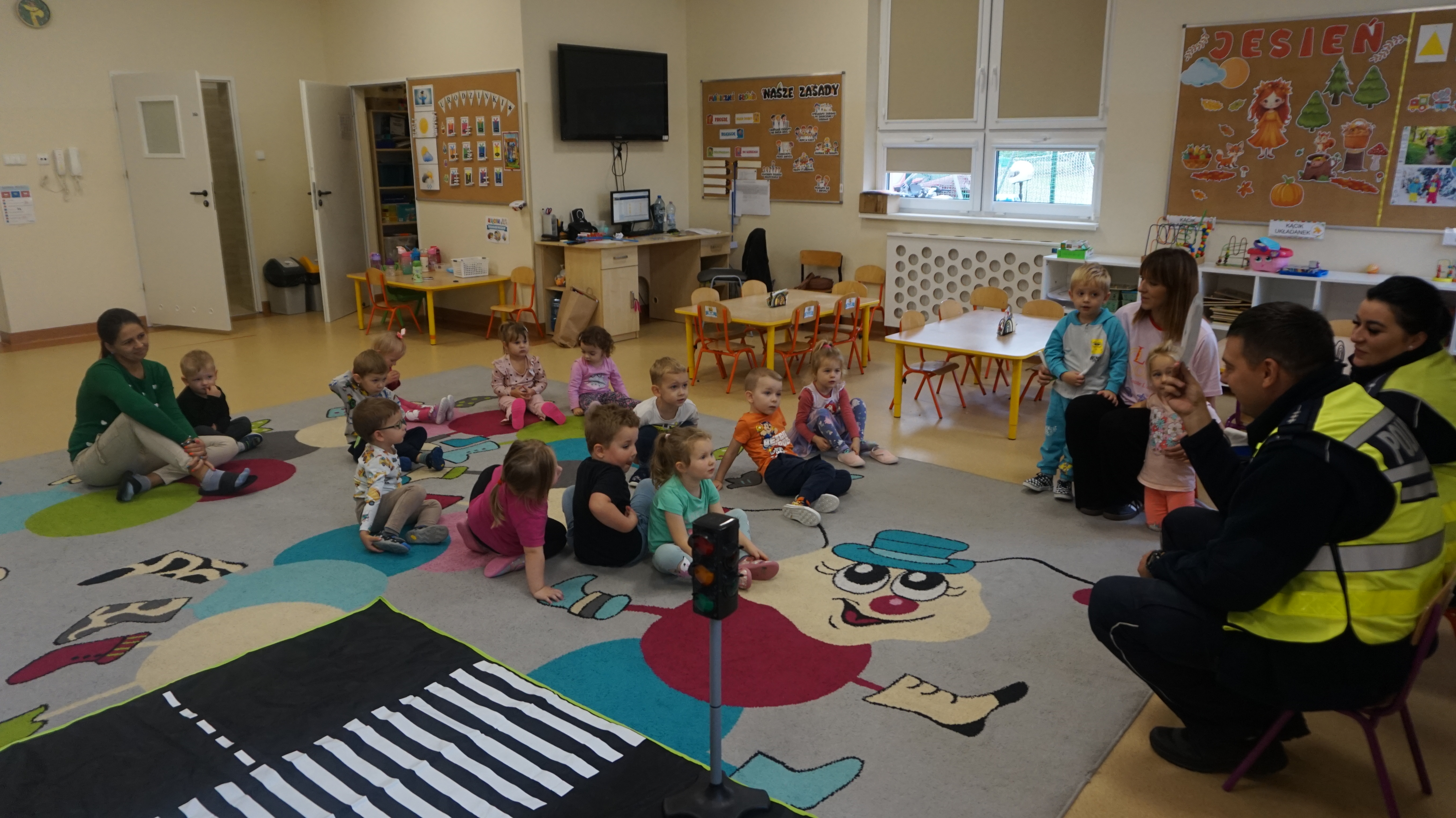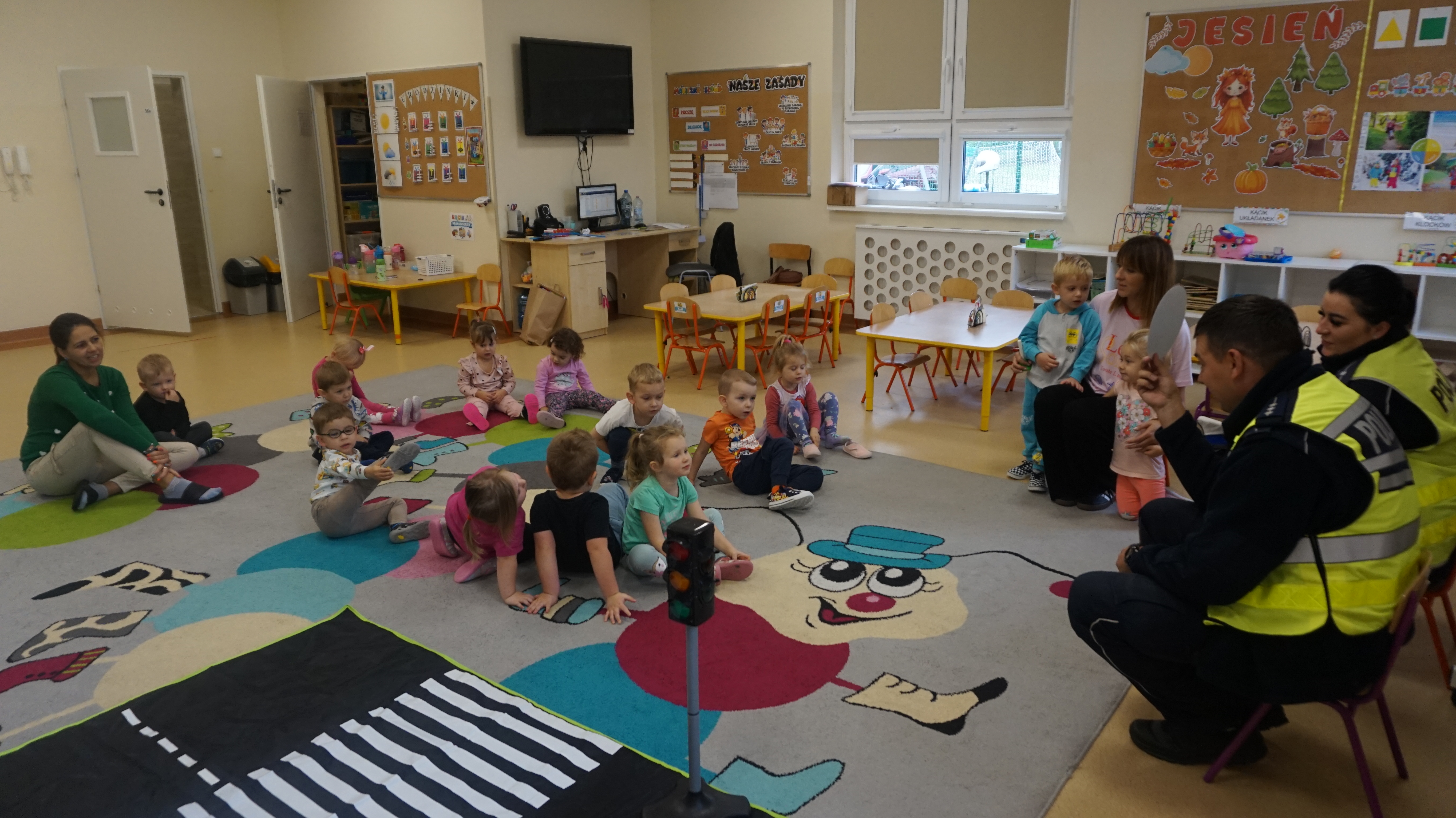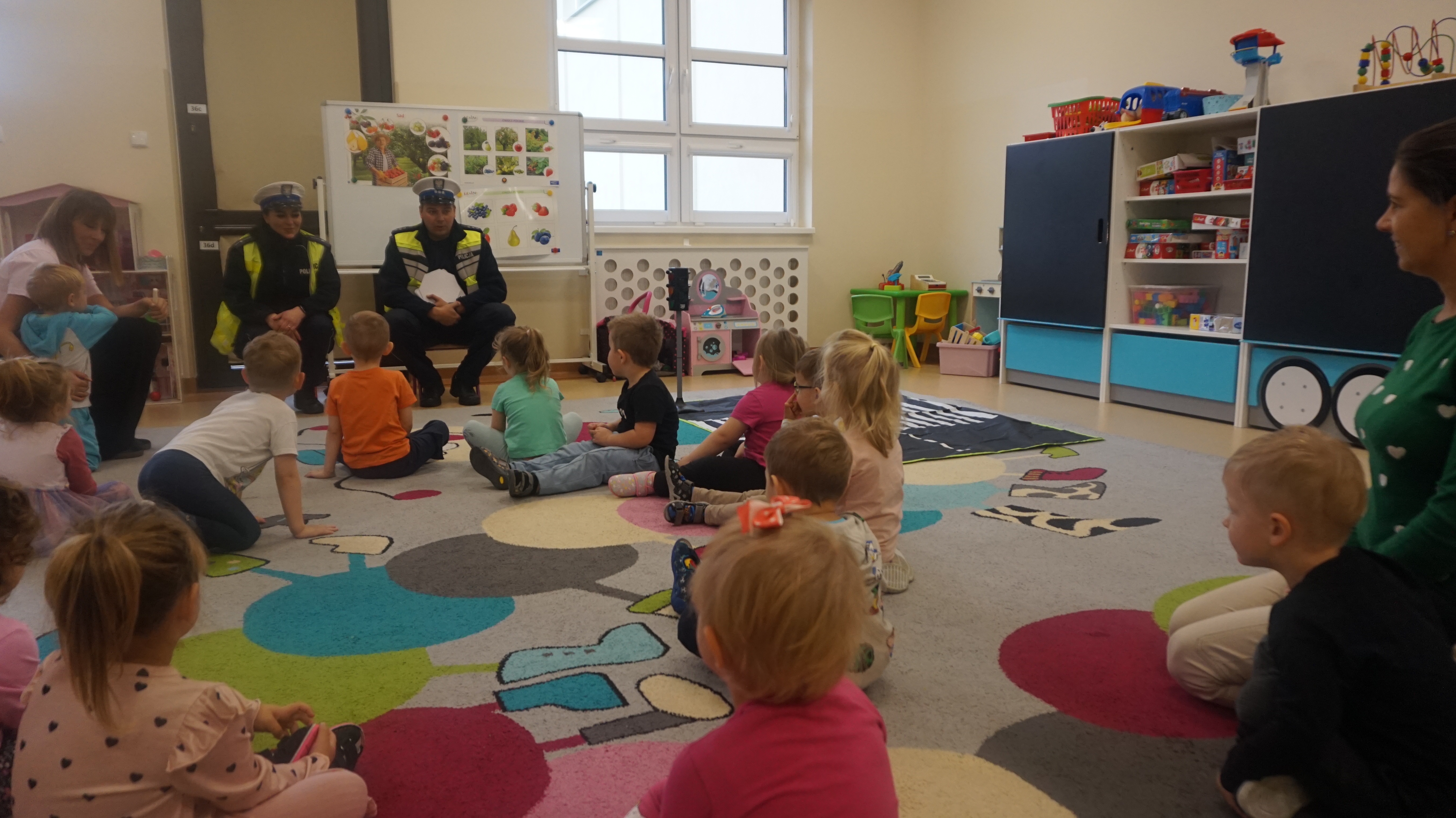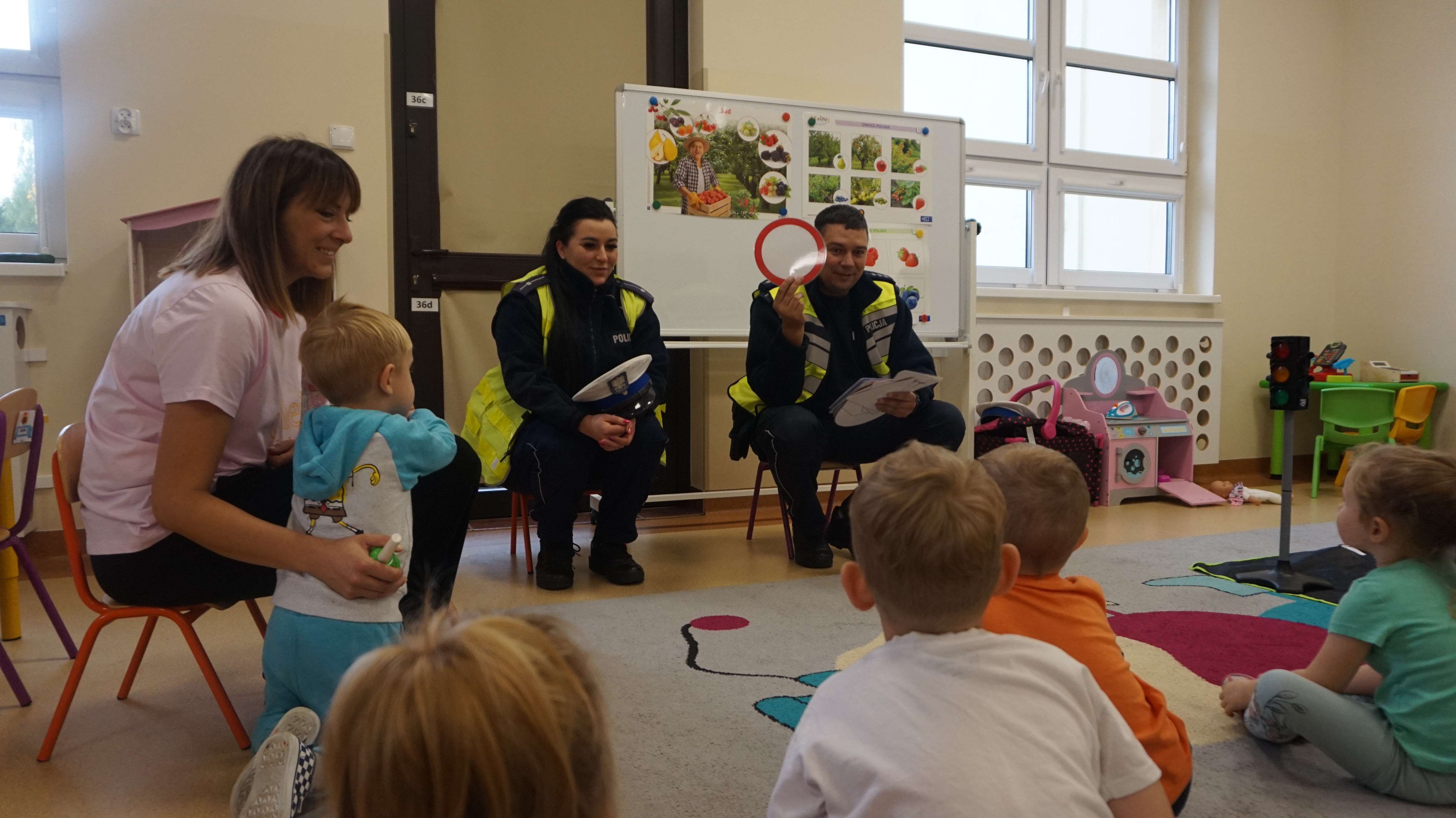 Nasze przedszkole odwiedzili wyjątkowi goście – policjanci z ostródzkiej komendy! Dzieci dowiedziały się, jak bezpiecznie poruszać się po drodze, jak reagować w sytuacjach zagrożenia oraz kogo prosić o pomoc. Najwięcej emocji wzbudziła możliwość obejrzenia z bliska radiowozu policyjnego oraz motocyklu, przymierzenia czapki i włączenie syren. To była niezwykle ciekawa i pouczająca lekcja bezpieczeństwa. Dziękujemy naszym gościom za wizytę!