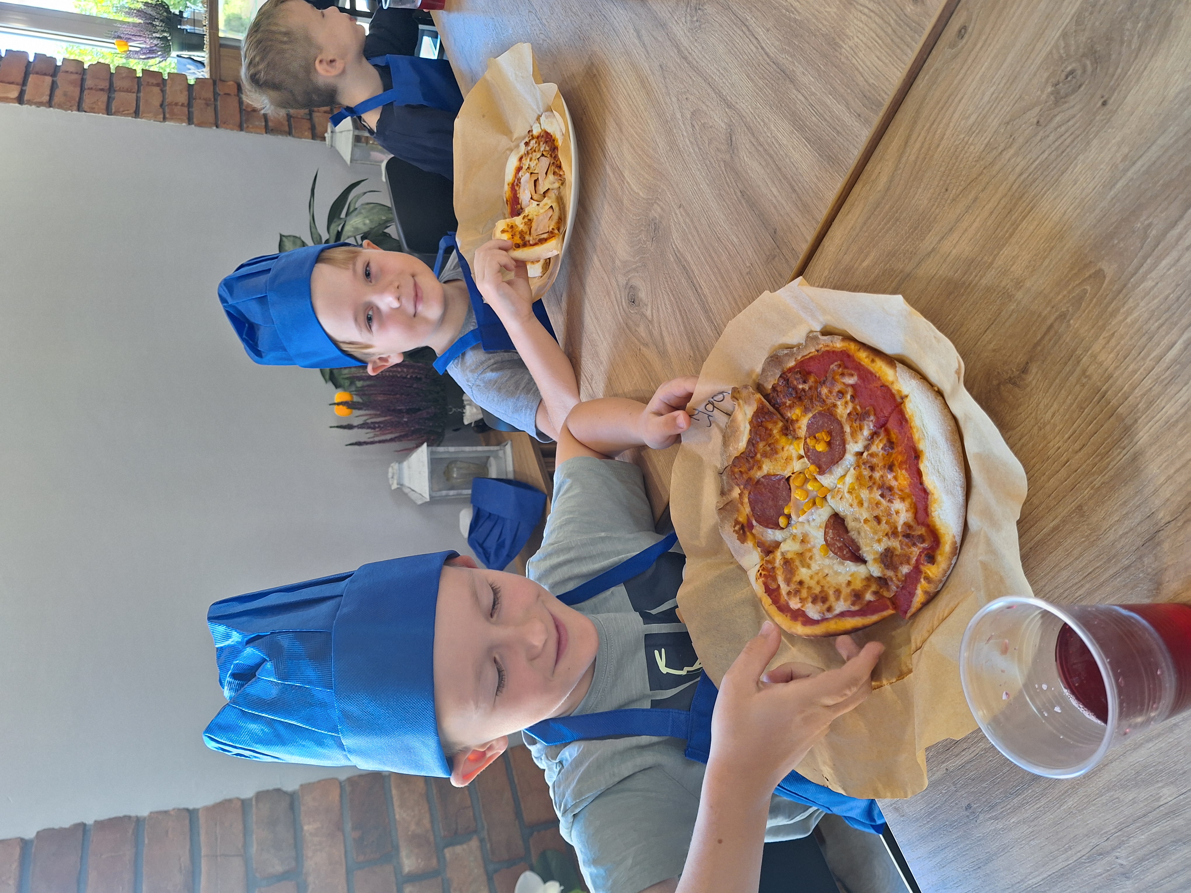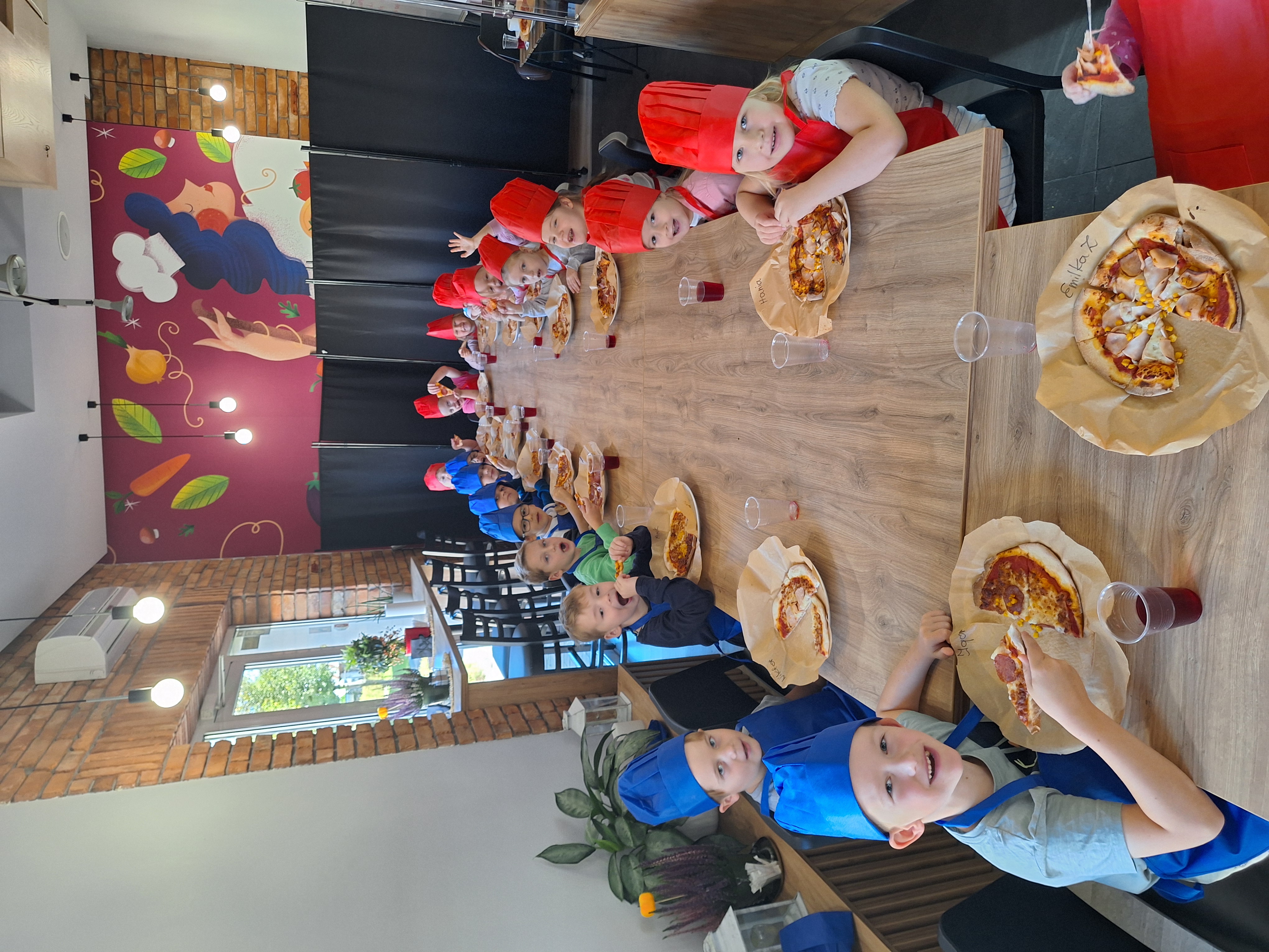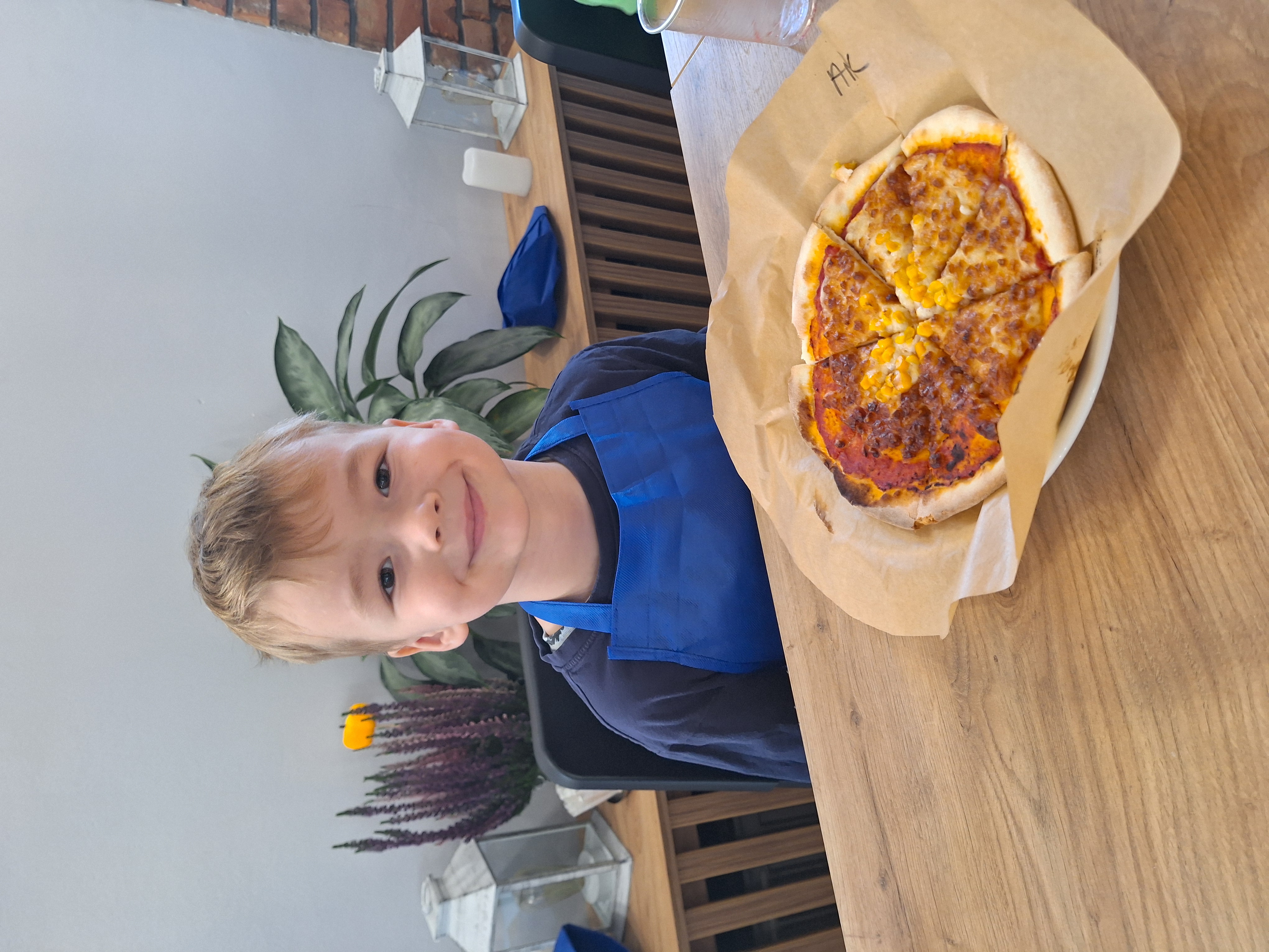 Mali Odkrywcy wzięli udział w warsztatach kulinarnych w restauracji Garmistrz. Dzieci miały okazję samodzielnie przygotować pizzę pod okiem Kucharza, wybierając swoje ulubione składniki i obserwując, jak trafia do pieca. Była to świetna zabawa, pełna radości i smaków!