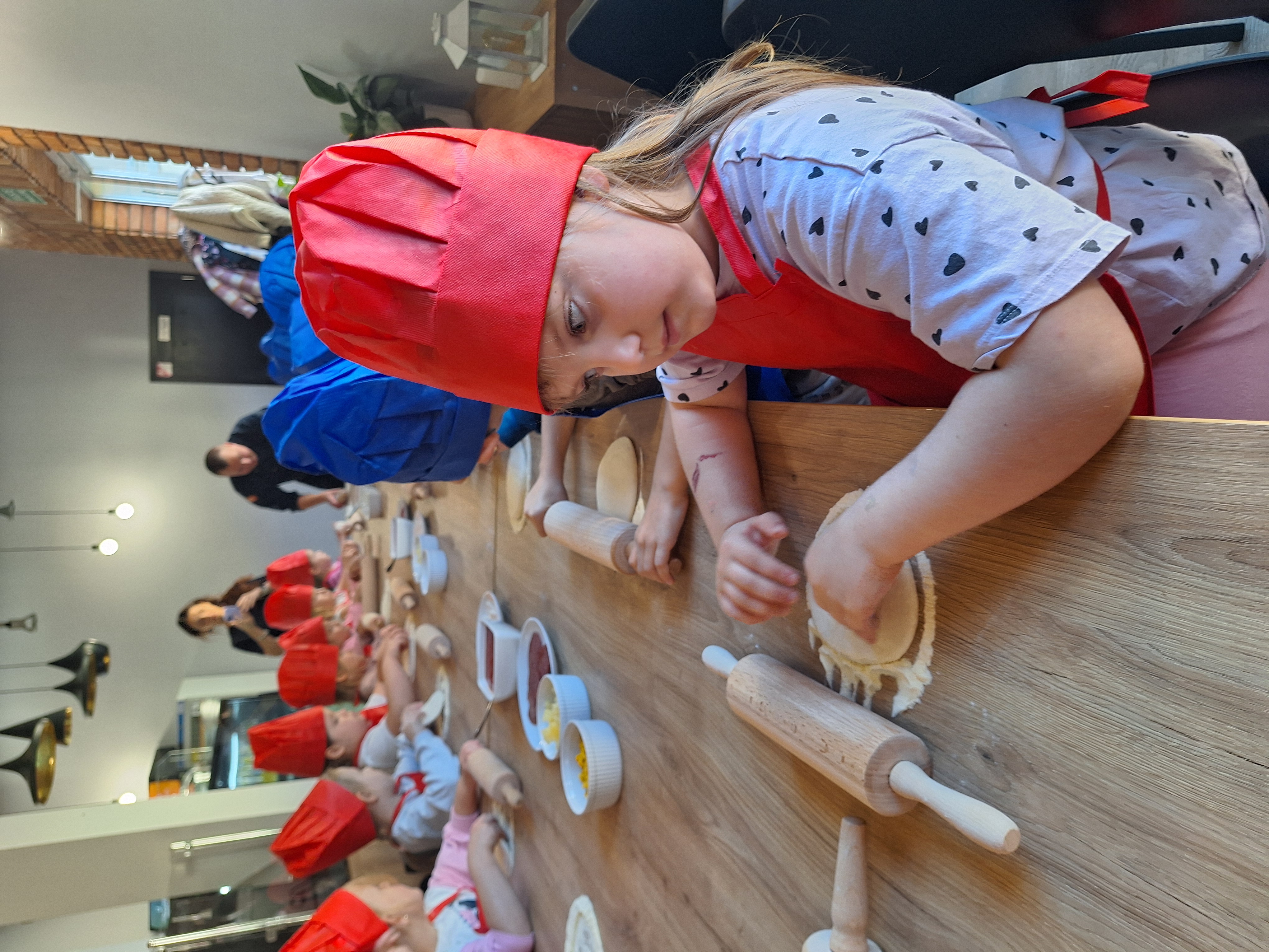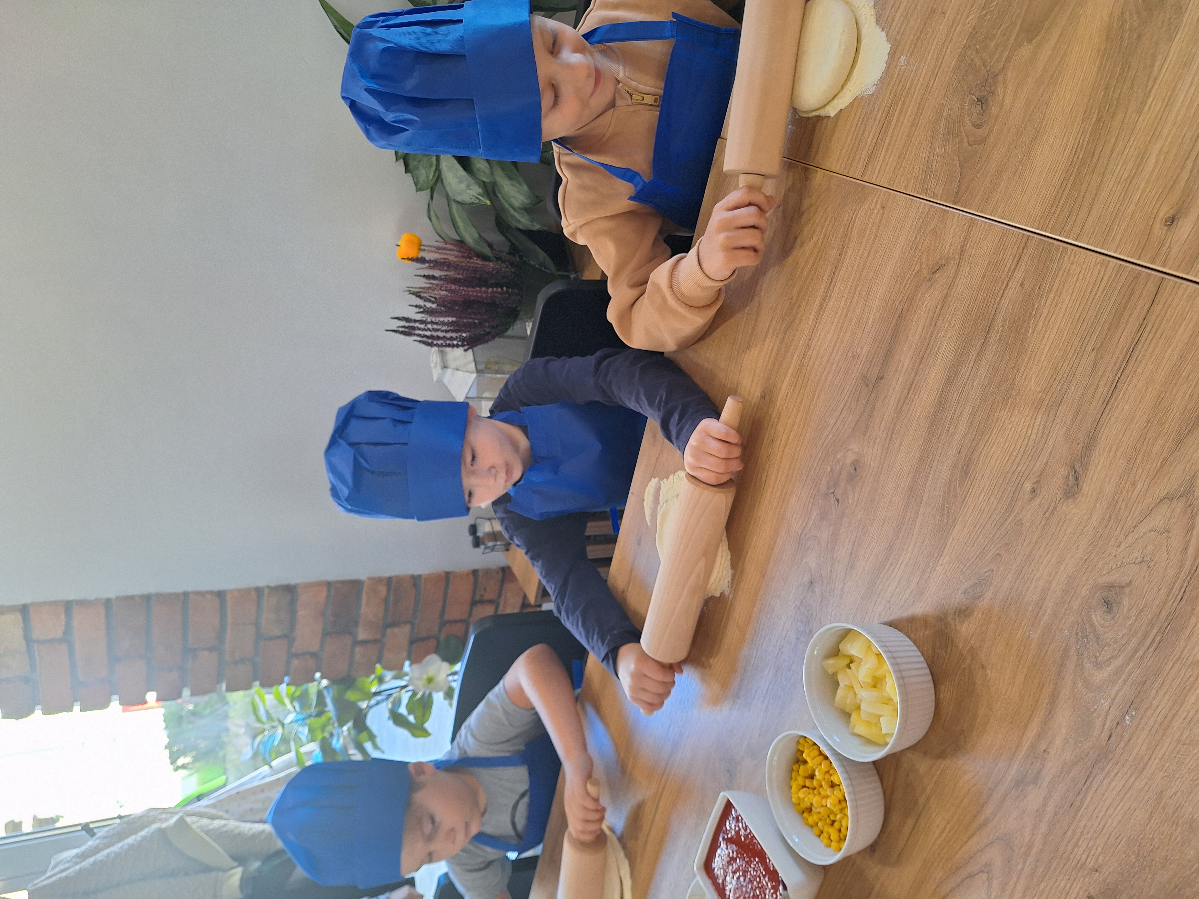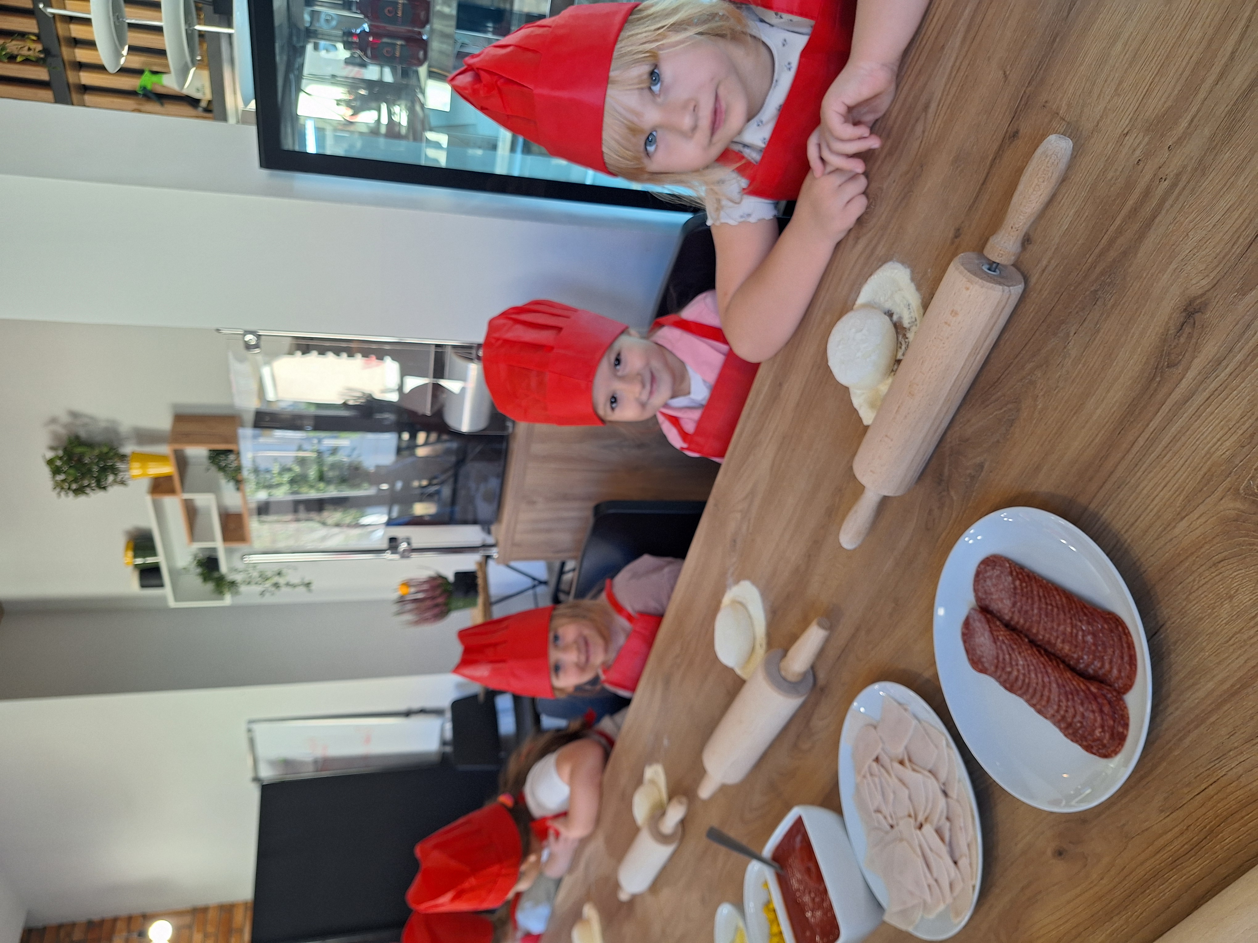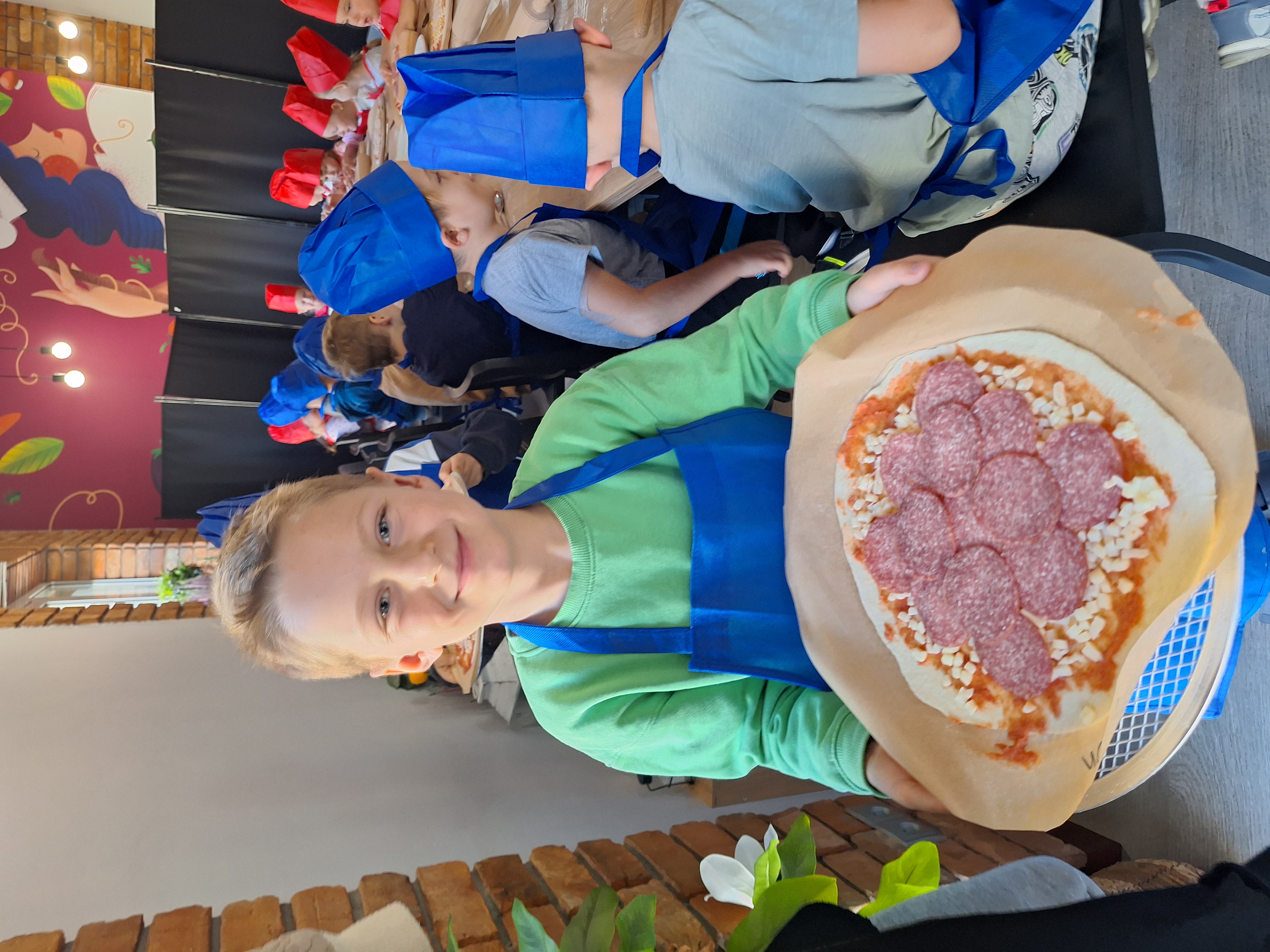 Mali Odkrywcy wzięli udział w warsztatach kulinarnych w restauracji Garmistrz. Dzieci miały okazję samodzielnie przygotować pizzę pod okiem Kucharza, wybierając swoje ulubione składniki i obserwując, jak trafia do pieca. Była to świetna zabawa, pełna radości i smaków!
