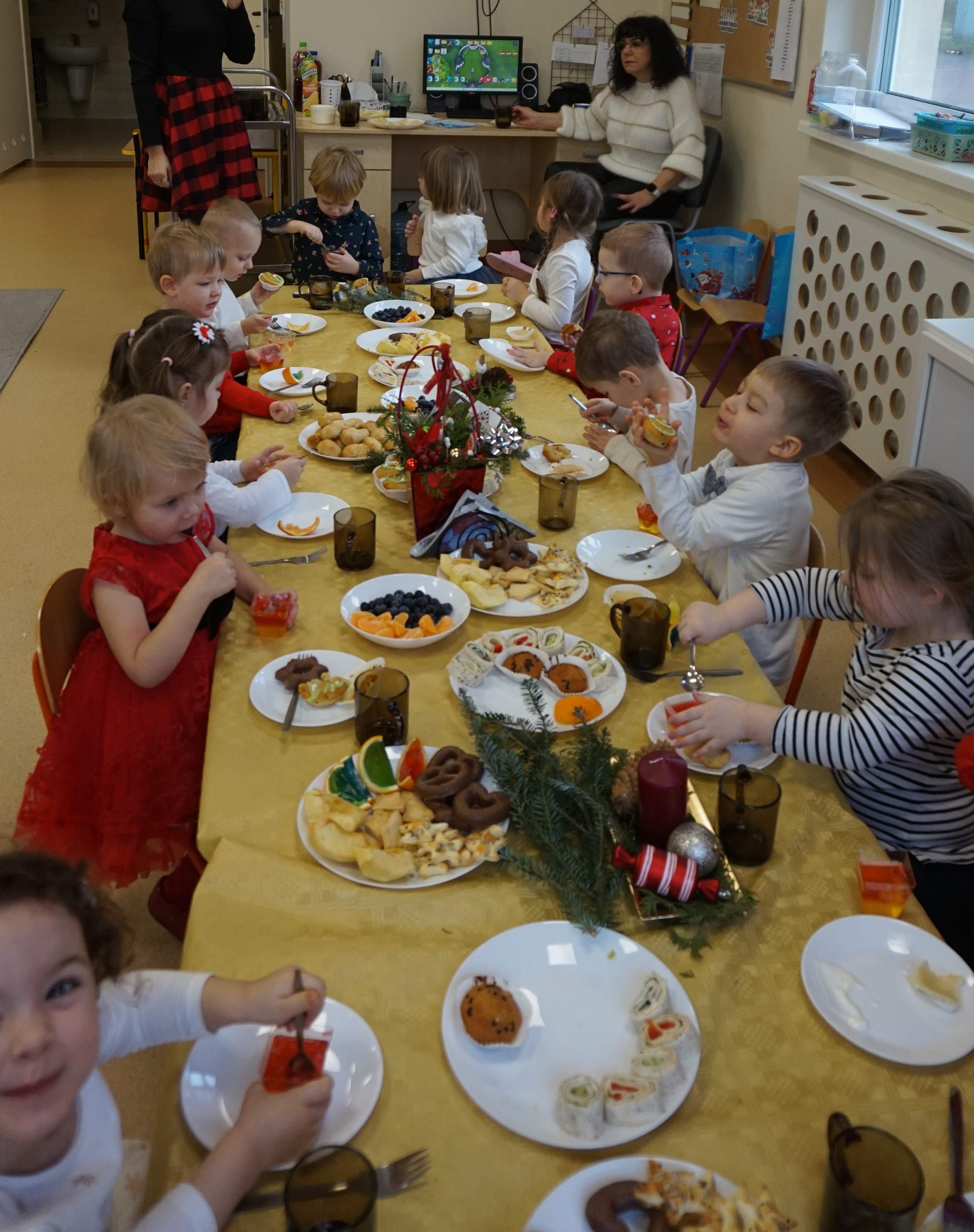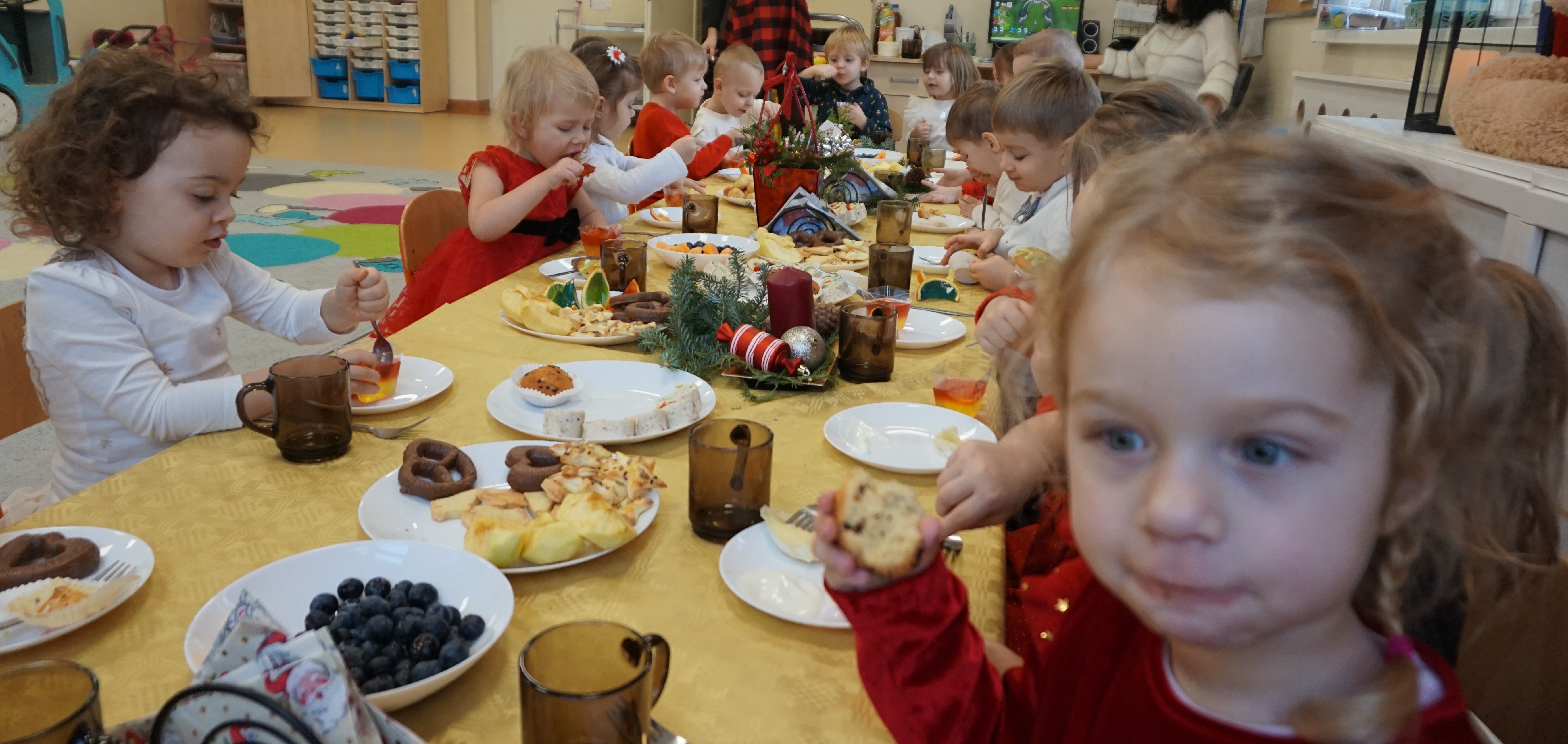 Przed ÅšwiÄ™tami Bożego Narodzenia w naszej grupie przygotowaliÅ›my uroczystÄ… WigiliÄ™. Dzieci wspólnie z Paniami kolÄ™dowaÅ‚y, skÅ‚adaÅ‚y sobie życzenia i jadÅ‚y wspólny Å›wiÄ…teczny obiad przy piÄ™knie udekorowanym stole. Takie podniosÅ‚e chwile nie tylko utrwalajÄ….