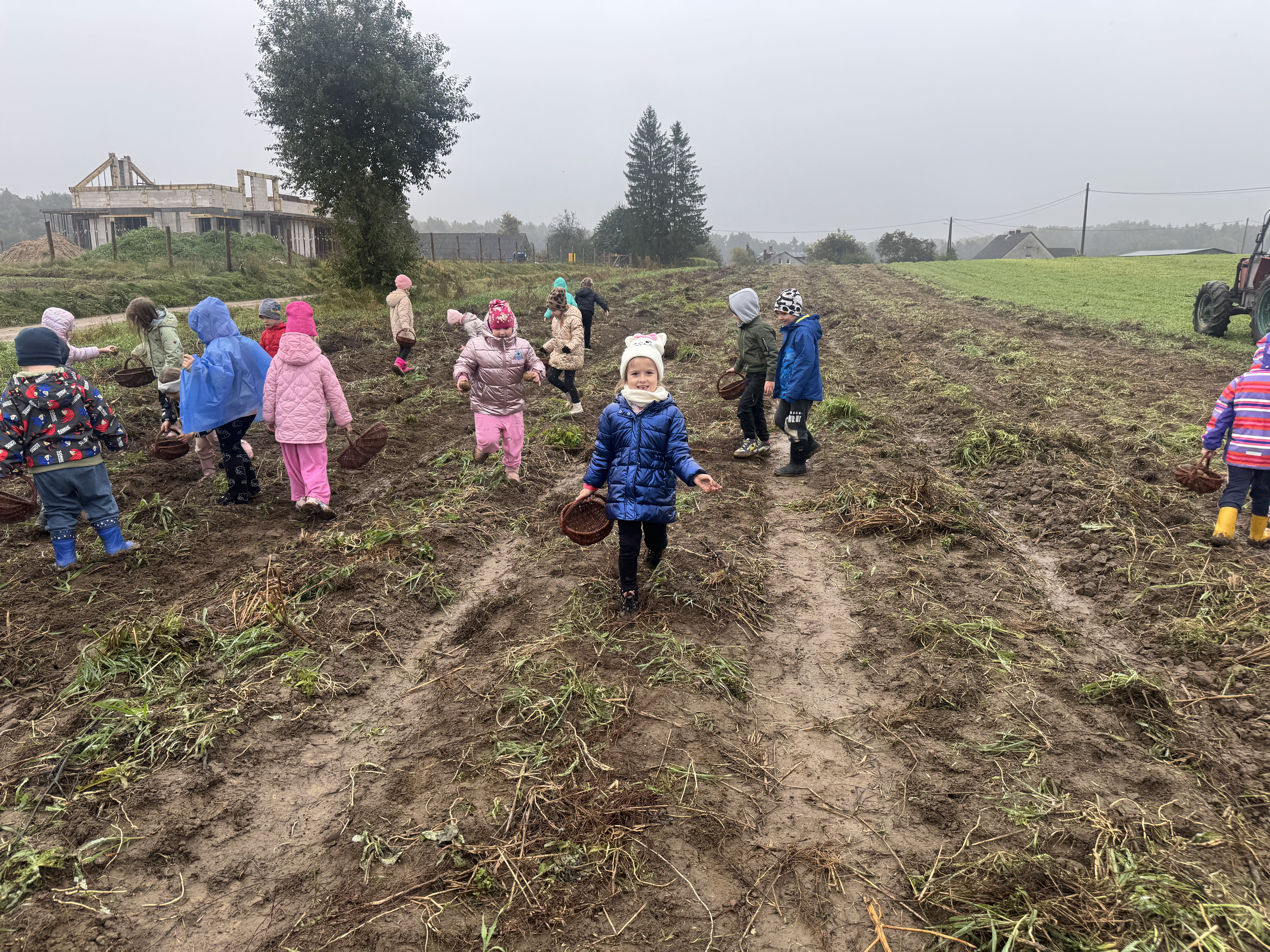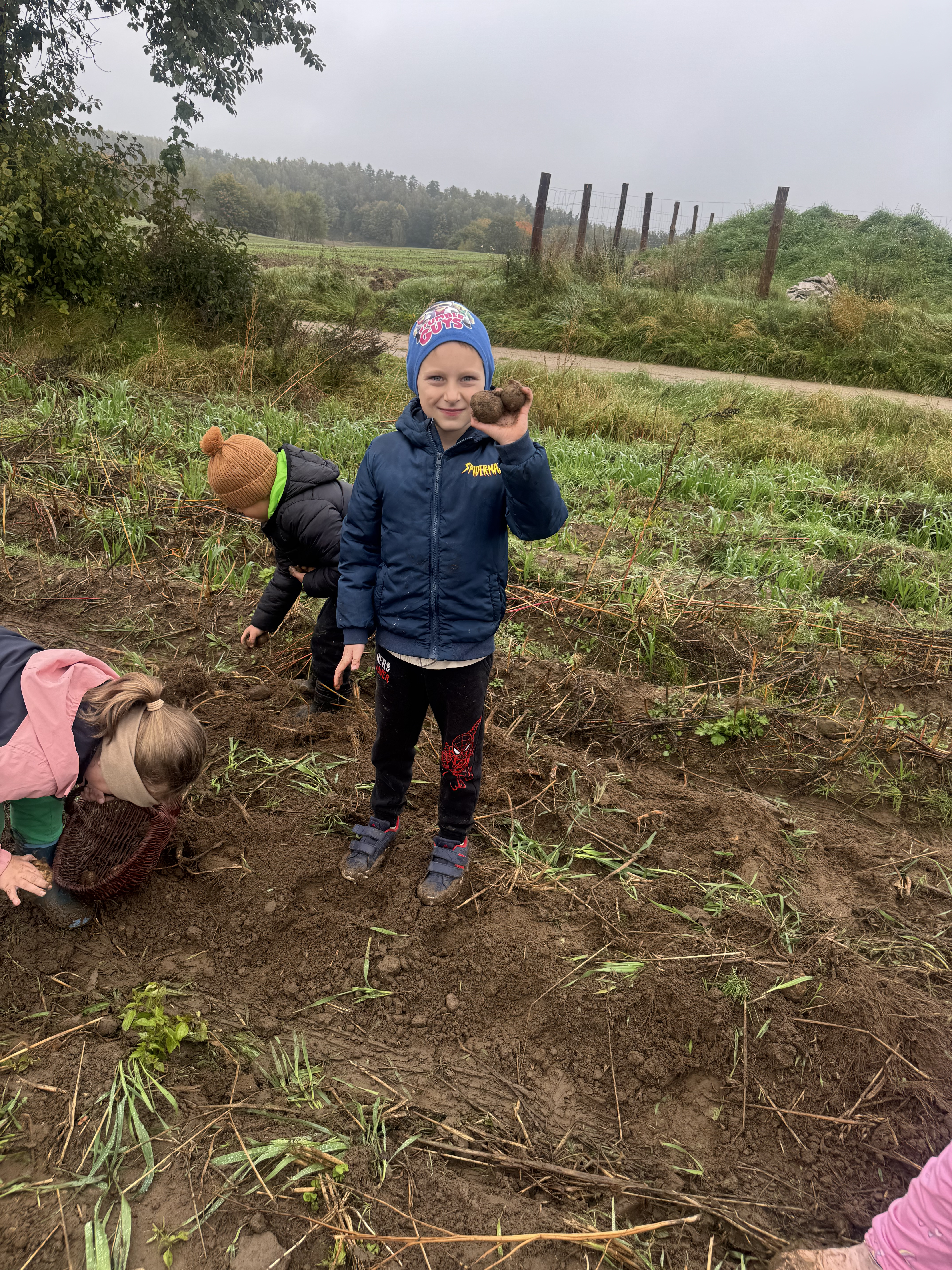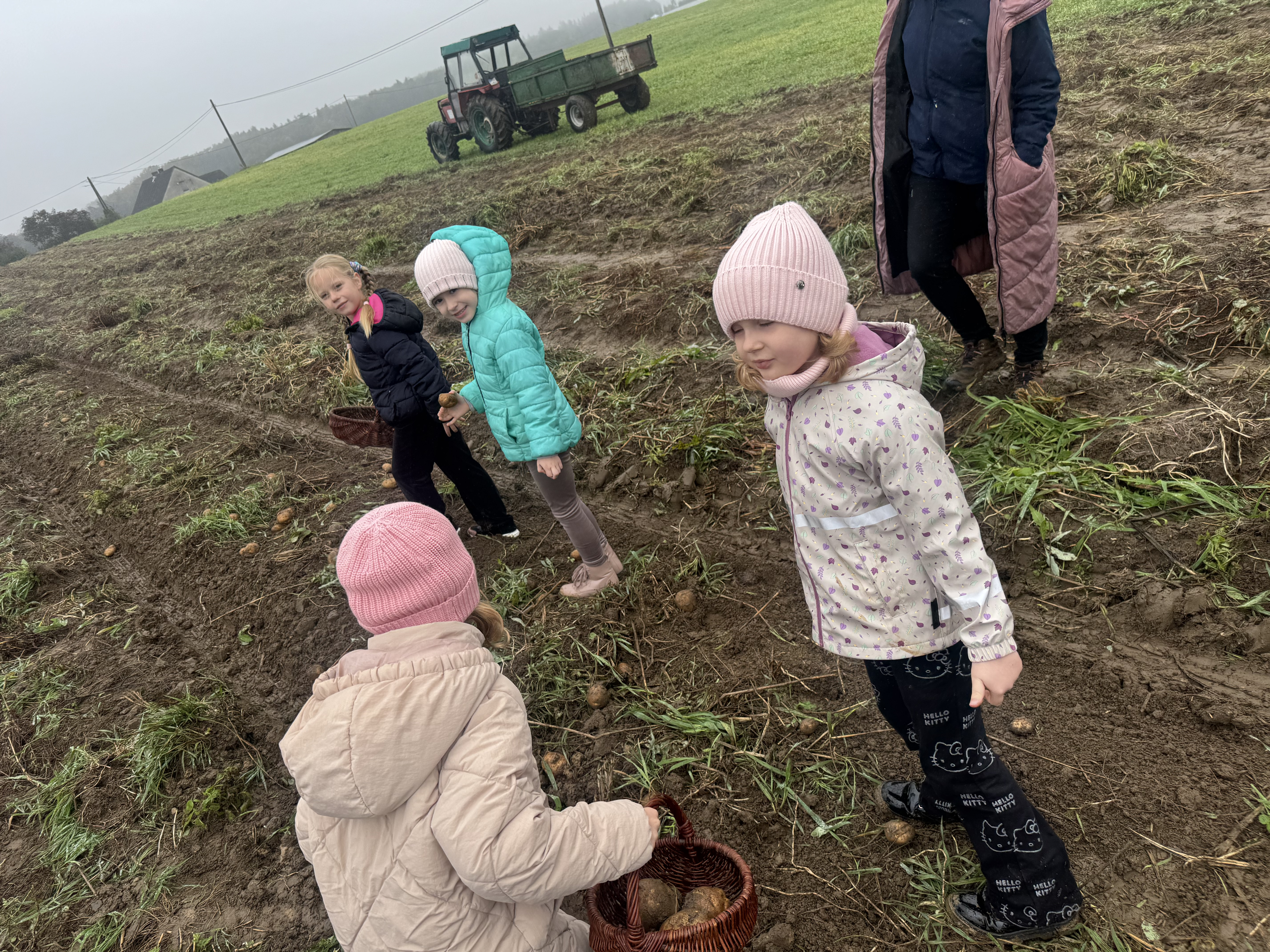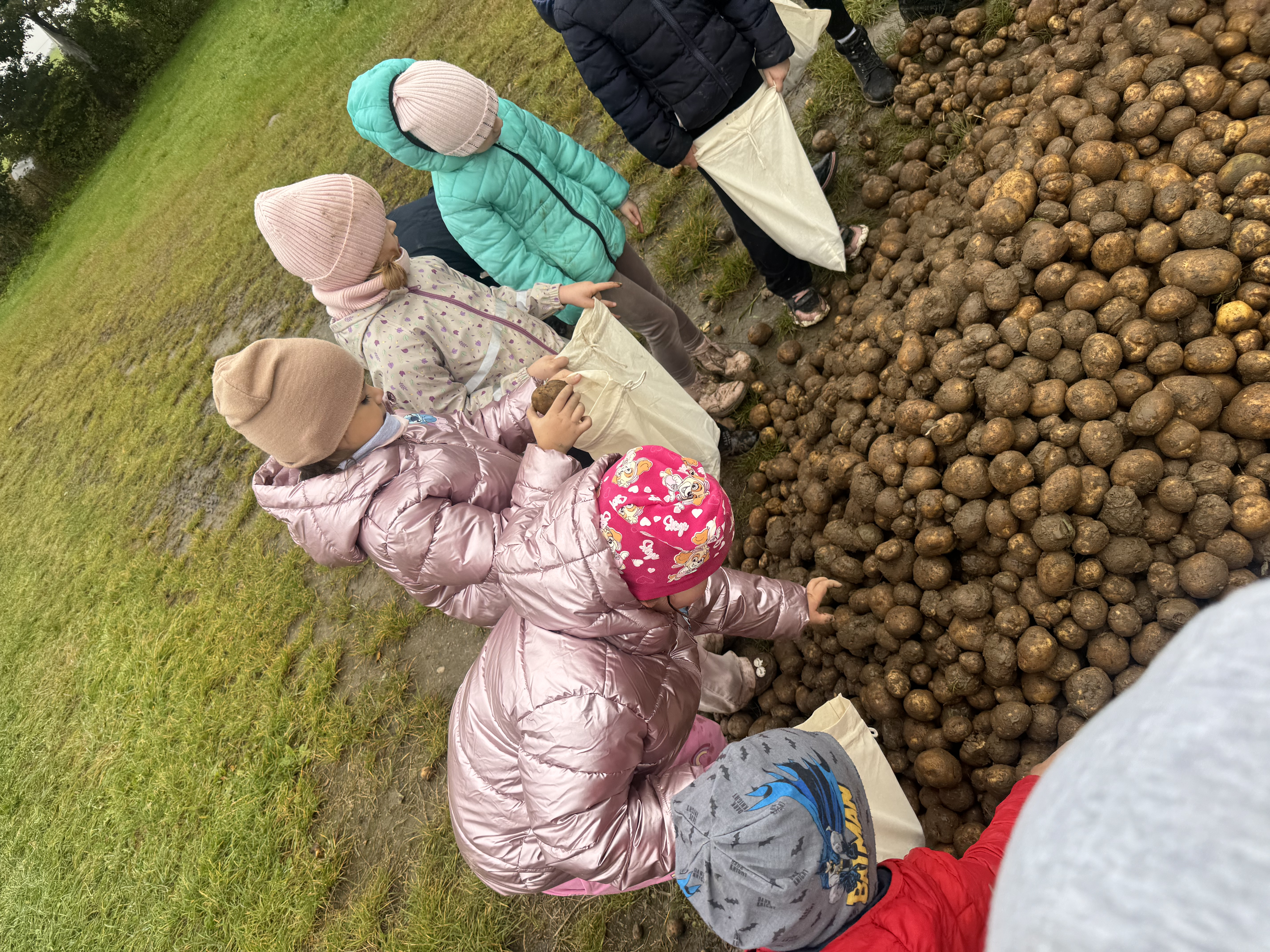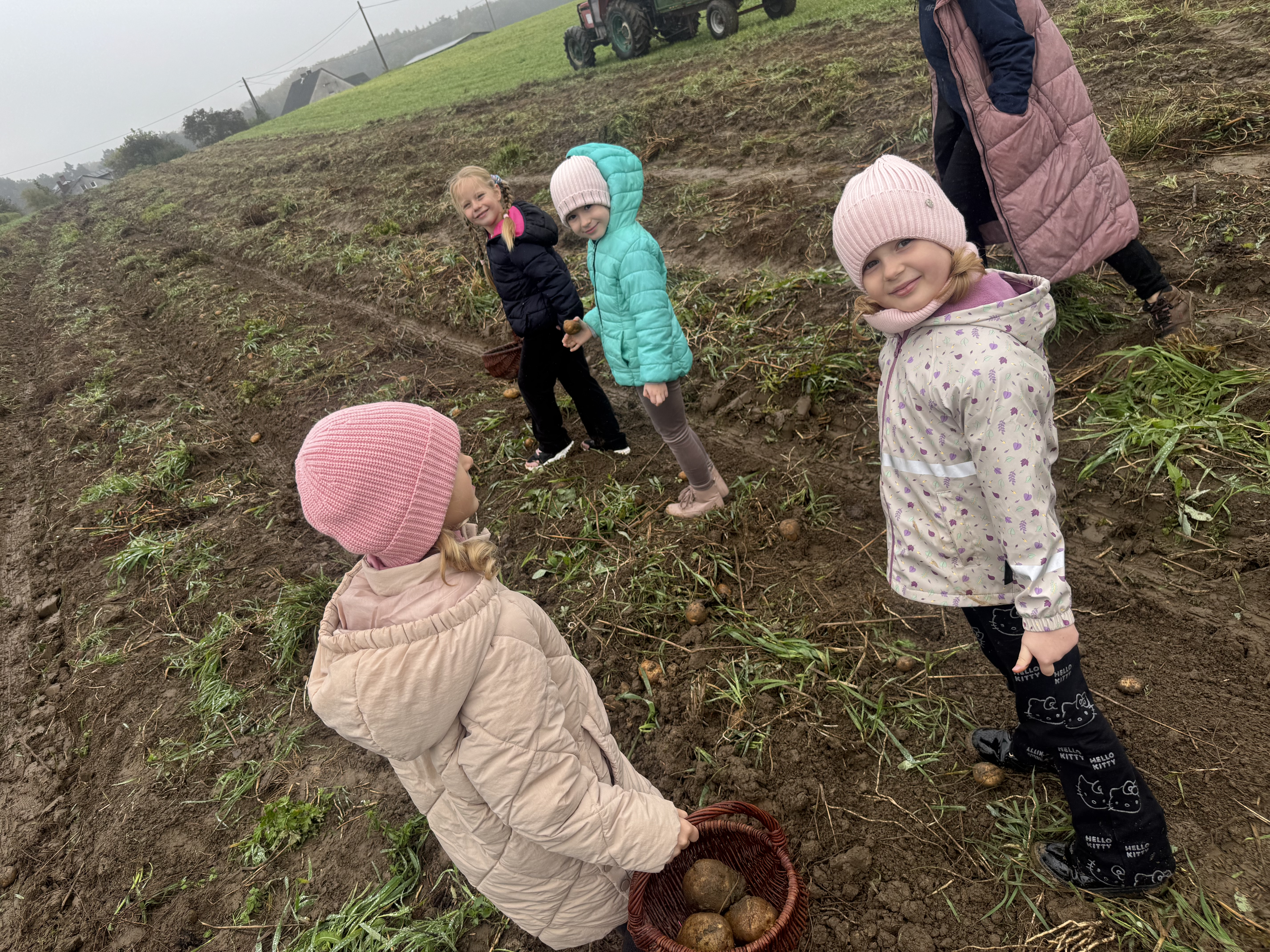 Z okazji Dnia Ziemniaka wybraliśmy się na niezwykle udaną wycieczkę do Lubstynka. Dzieci z entuzjazmem zbierały ziemniaki, a każdy uczestnik otrzymał własny woreczek ze zbiorami. Nie zabrakło też twórczej zabawy – powstały pomysłowe pacynki z ziemniaków. Na zakończenie wszyscy spotkali się przy ognisku, gdzie czekały pyszne, gorące kiełbaski. Pomimo zmiennej pogody – raz słońce, raz deszcz – przez cały dzień panowała radosna atmosfera i świetny humor.