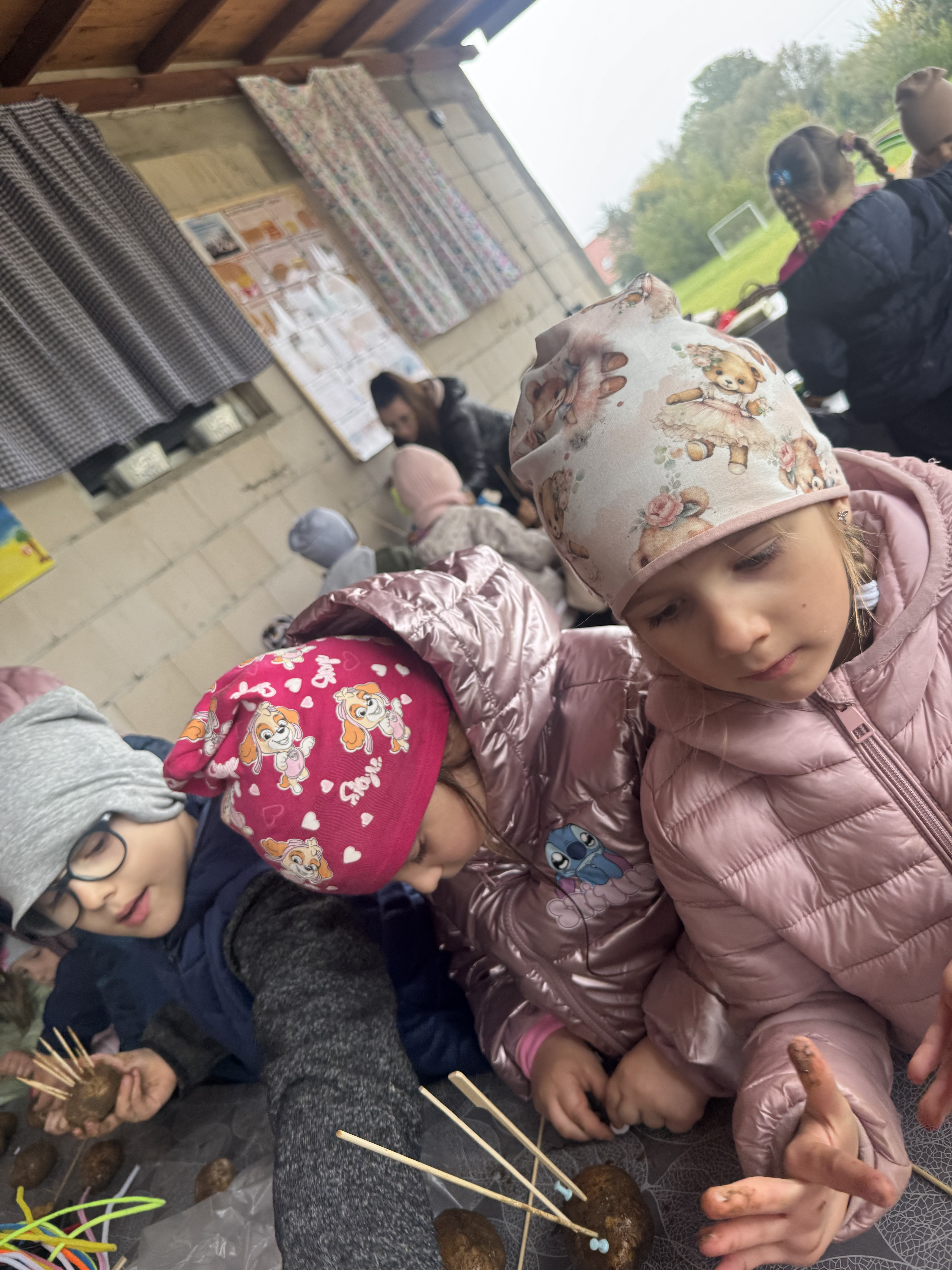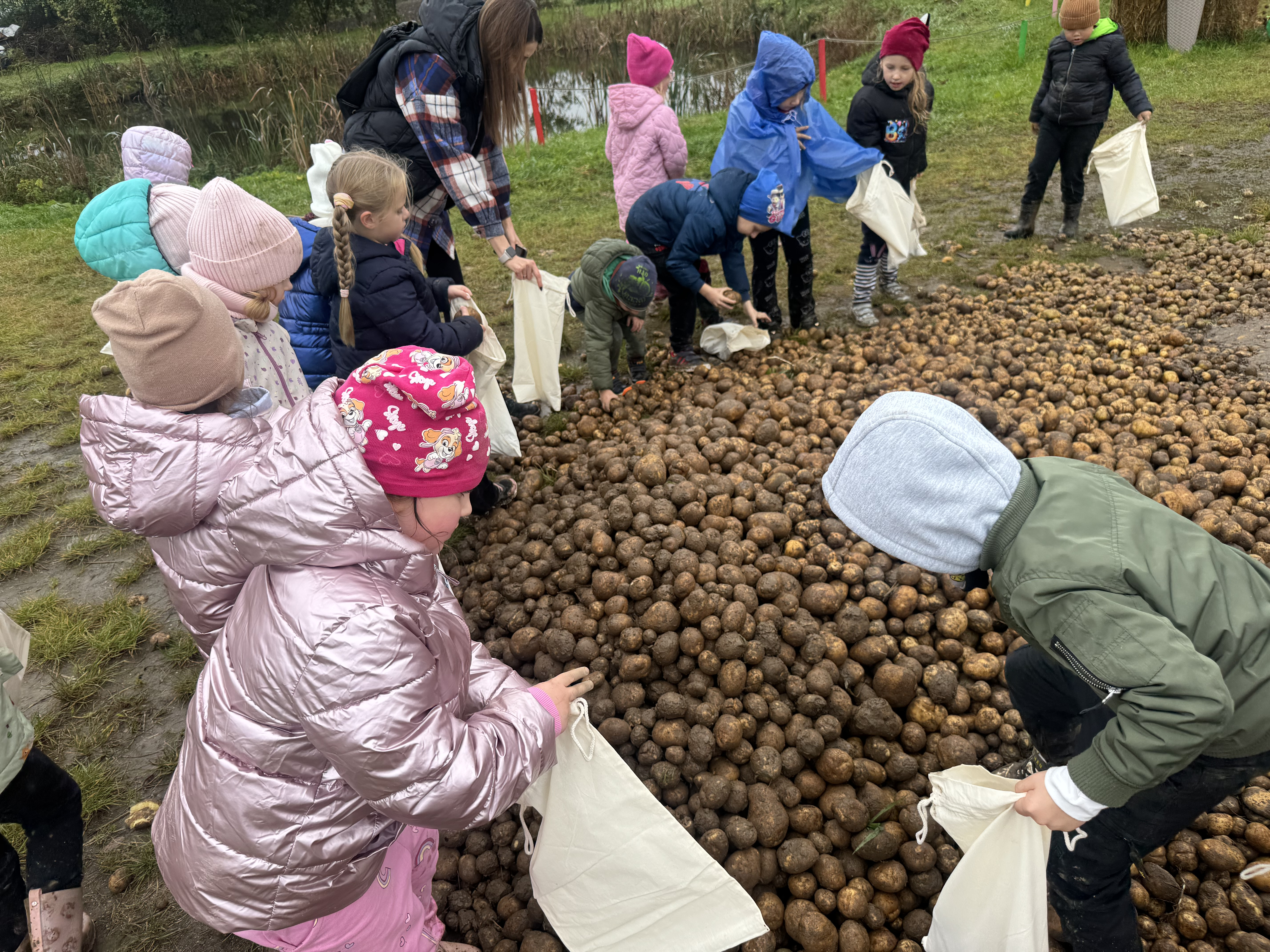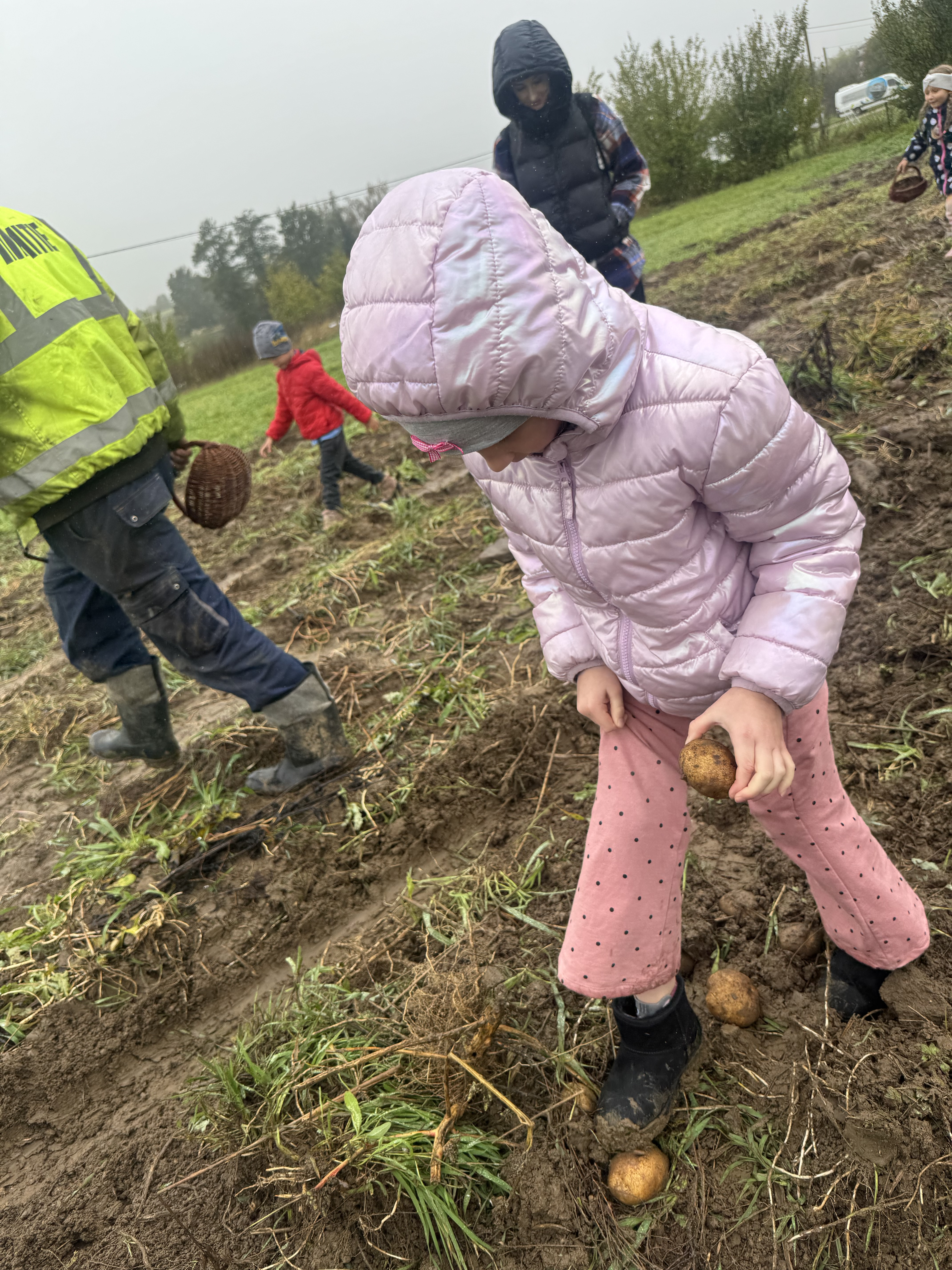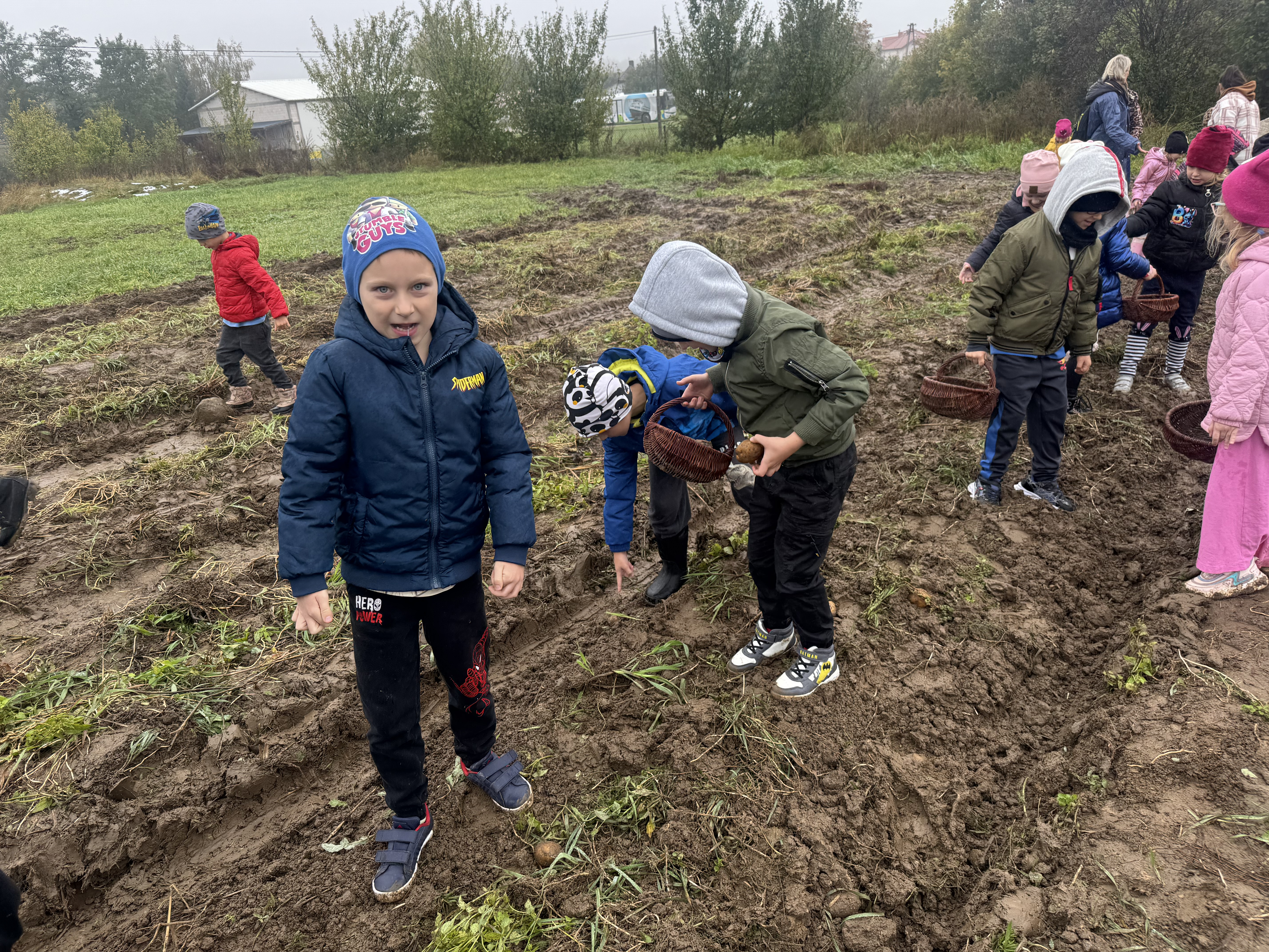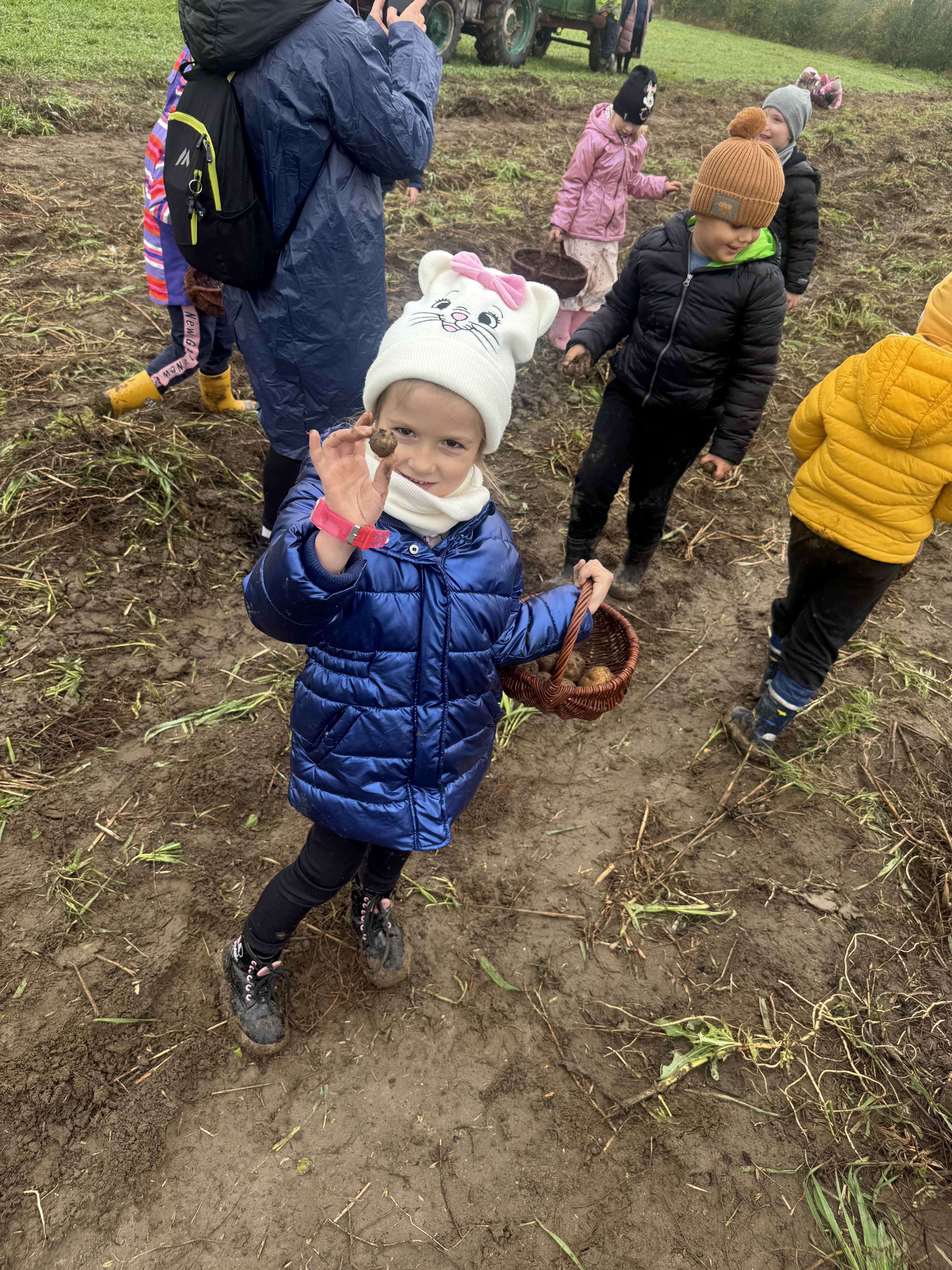 Z okazji Dnia Ziemniaka wybraliśmy się na niezwykle udaną wycieczkę do Lubstynka. Dzieci z entuzjazmem zbierały ziemniaki, a każdy uczestnik otrzymał własny woreczek ze zbiorami. Nie zabrakło też twórczej zabawy – powstały pomysłowe pacynki z ziemniaków. Na zakończenie wszyscy spotkali się przy ognisku, gdzie czekały pyszne, gorące kiełbaski. Pomimo zmiennej pogody – raz słońce, raz deszcz – przez cały dzień panowała radosna atmosfera i świetny humor.