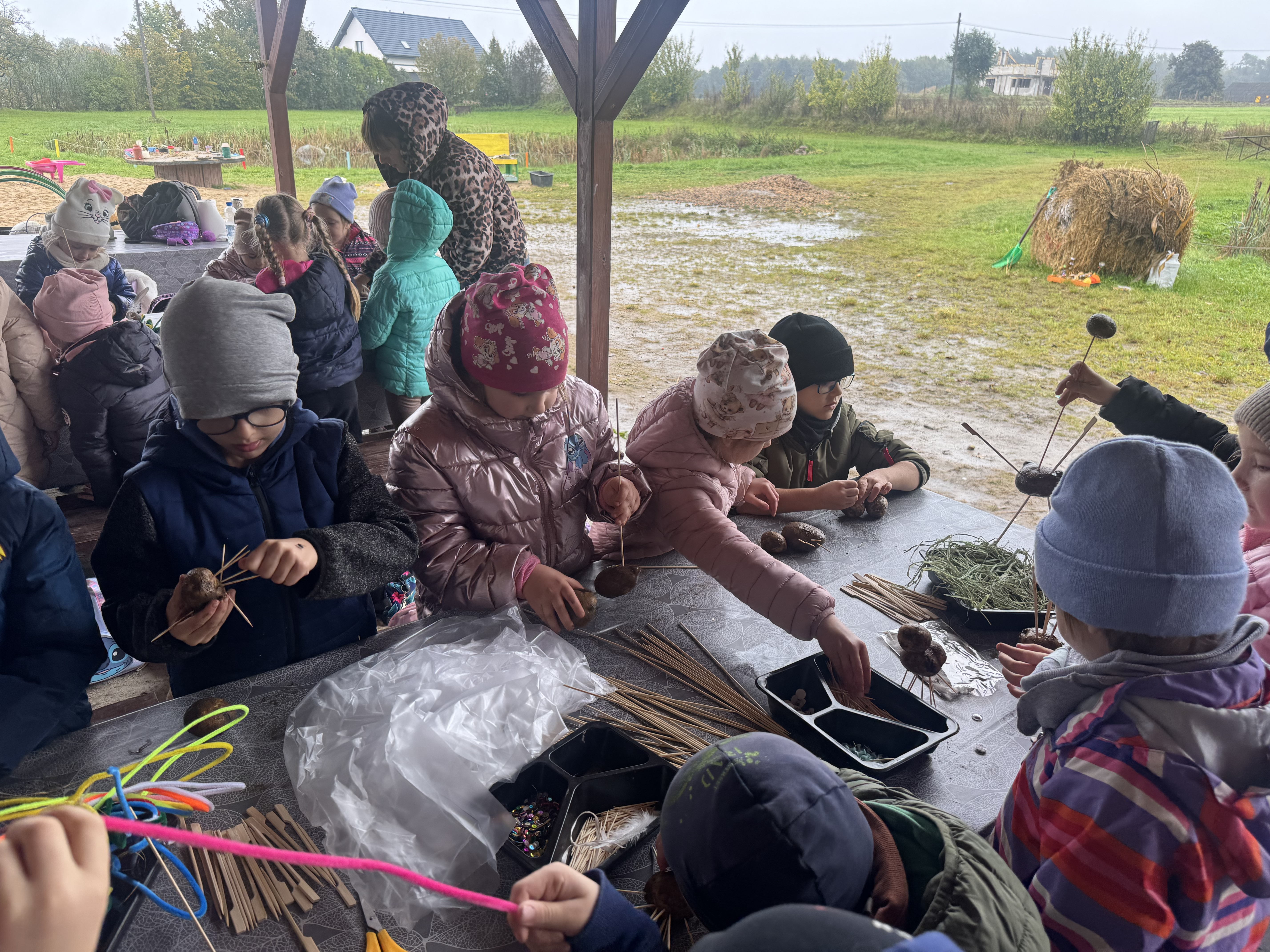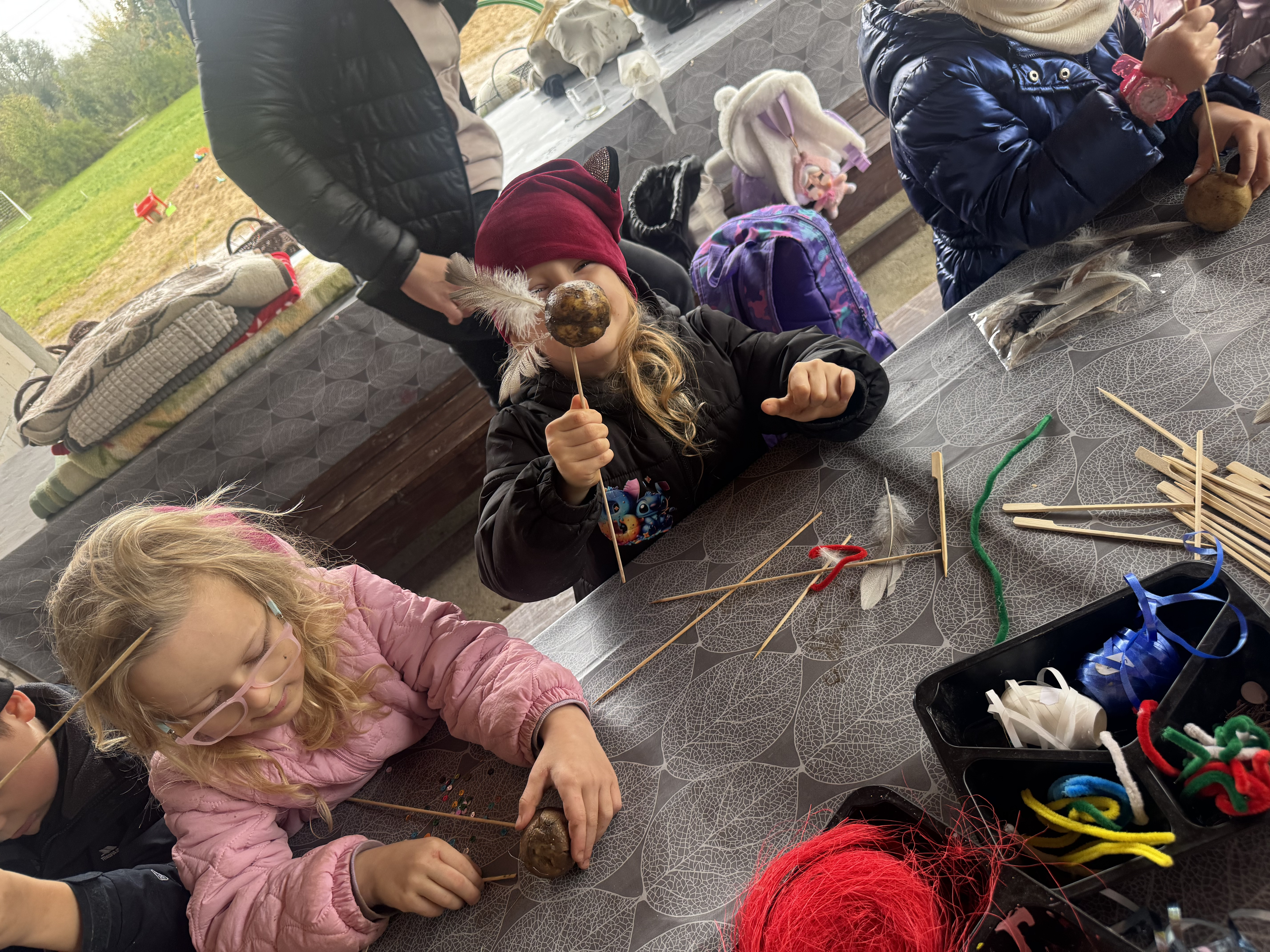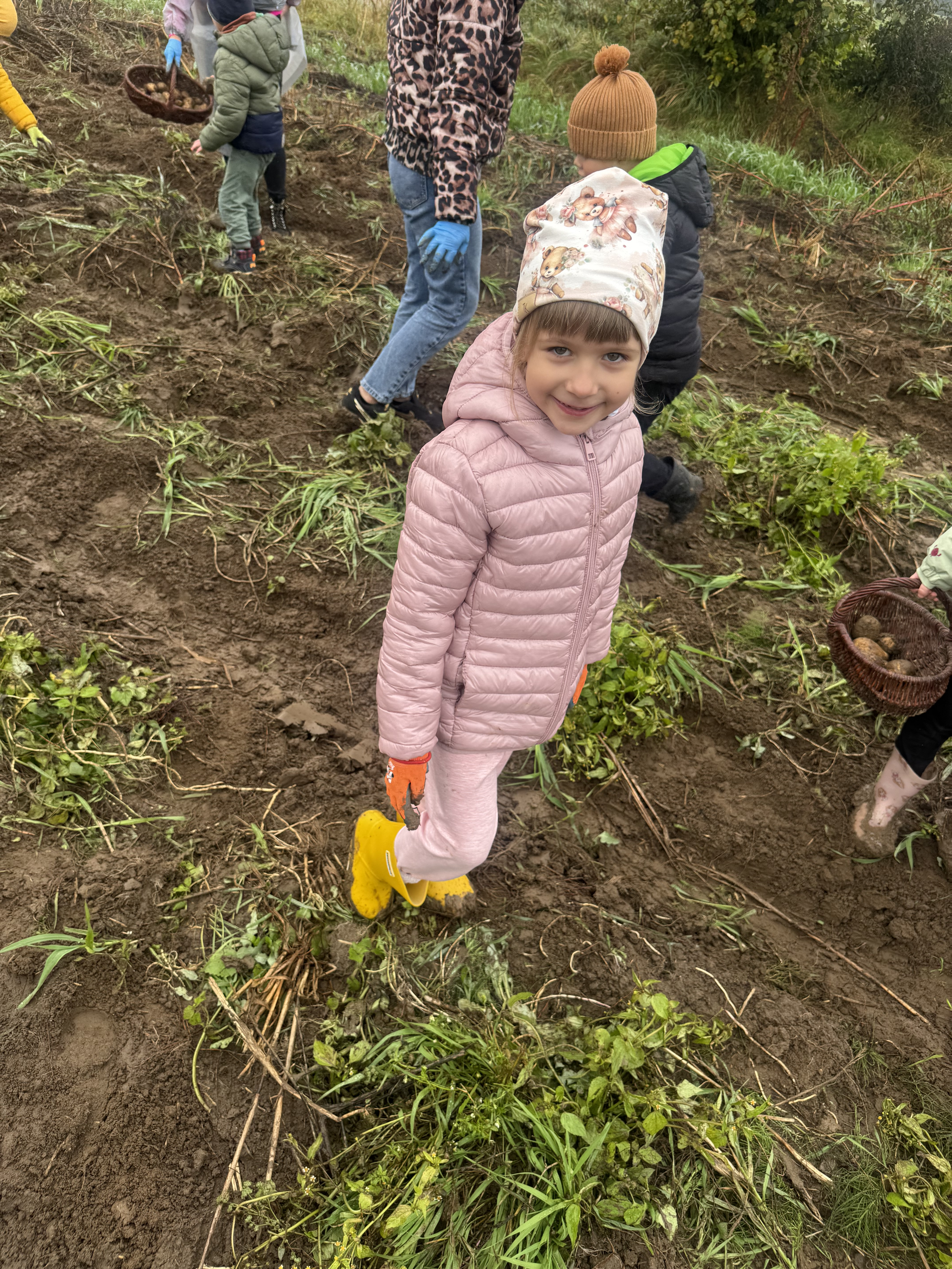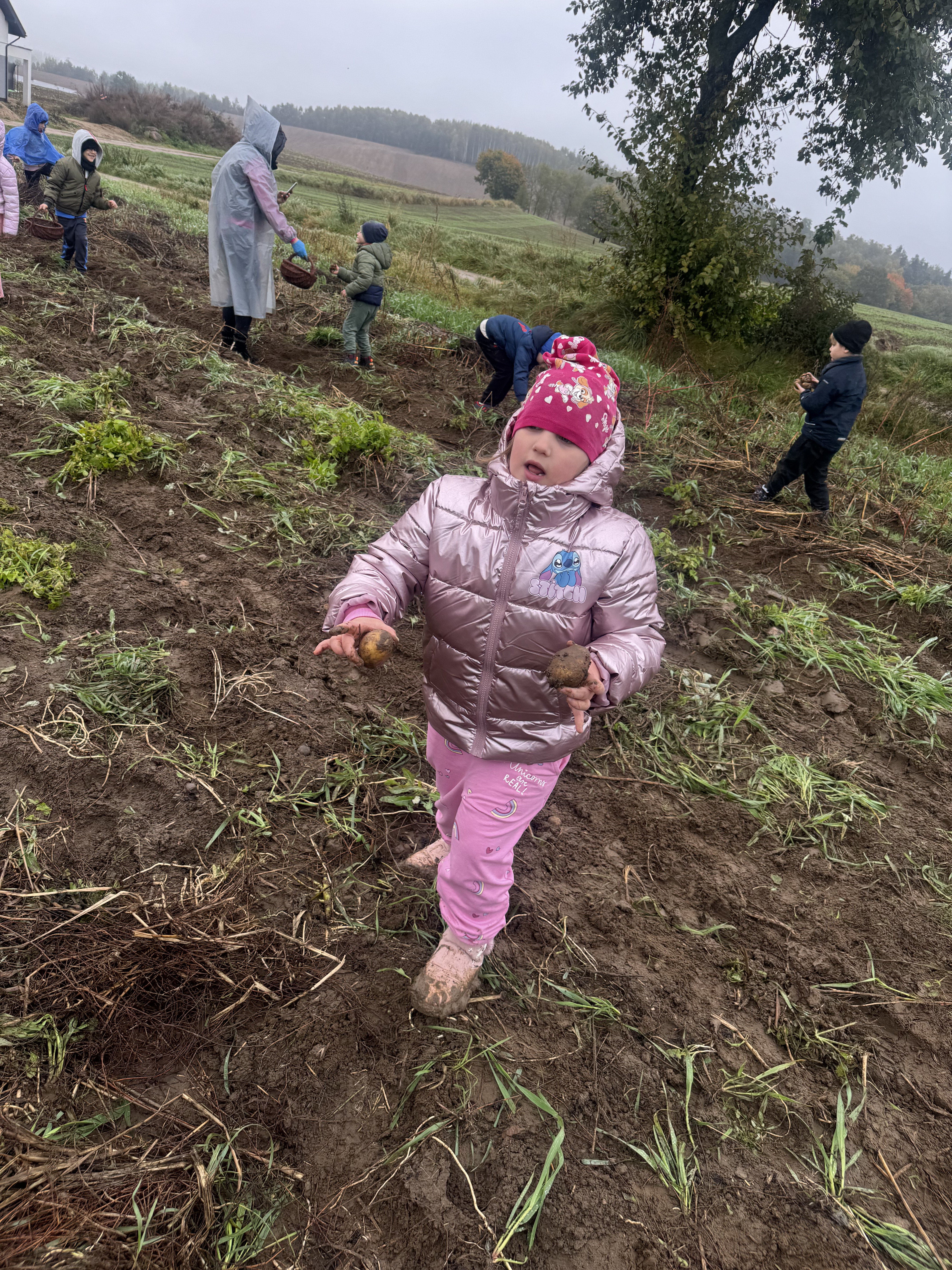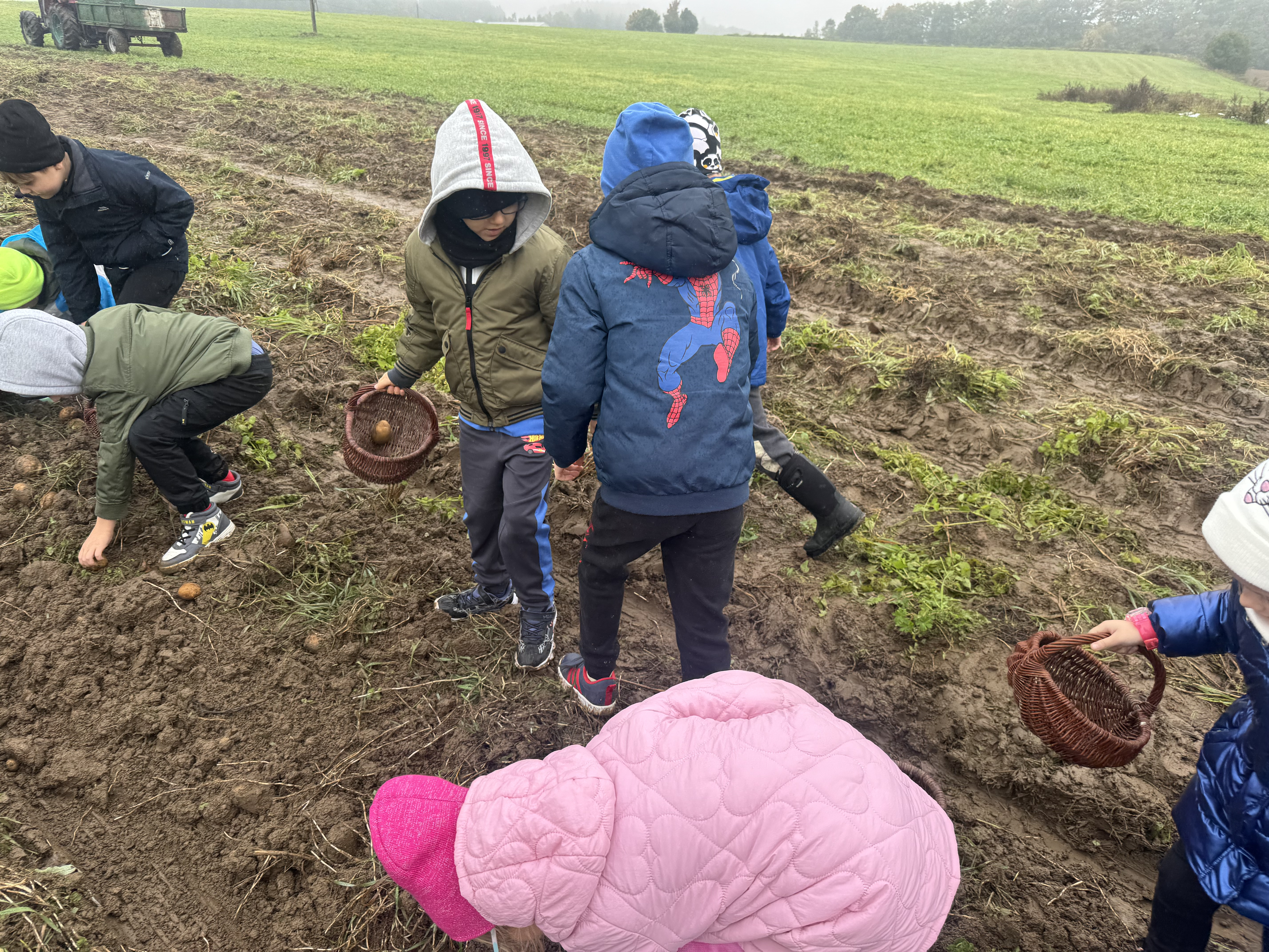 Z okazji Dnia Ziemniaka wybraliśmy się na niezwykle udaną wycieczkę do Lubstynka. Dzieci z entuzjazmem zbierały ziemniaki, a każdy uczestnik otrzymał własny woreczek ze zbiorami. Nie zabrakło też twórczej zabawy – powstały pomysłowe pacynki z ziemniaków. Na zakończenie wszyscy spotkali się przy ognisku, gdzie czekały pyszne, gorące kiełbaski. Pomimo zmiennej pogody – raz słońce, raz deszcz – przez cały dzień panowała radosna atmosfera i świetny humor.