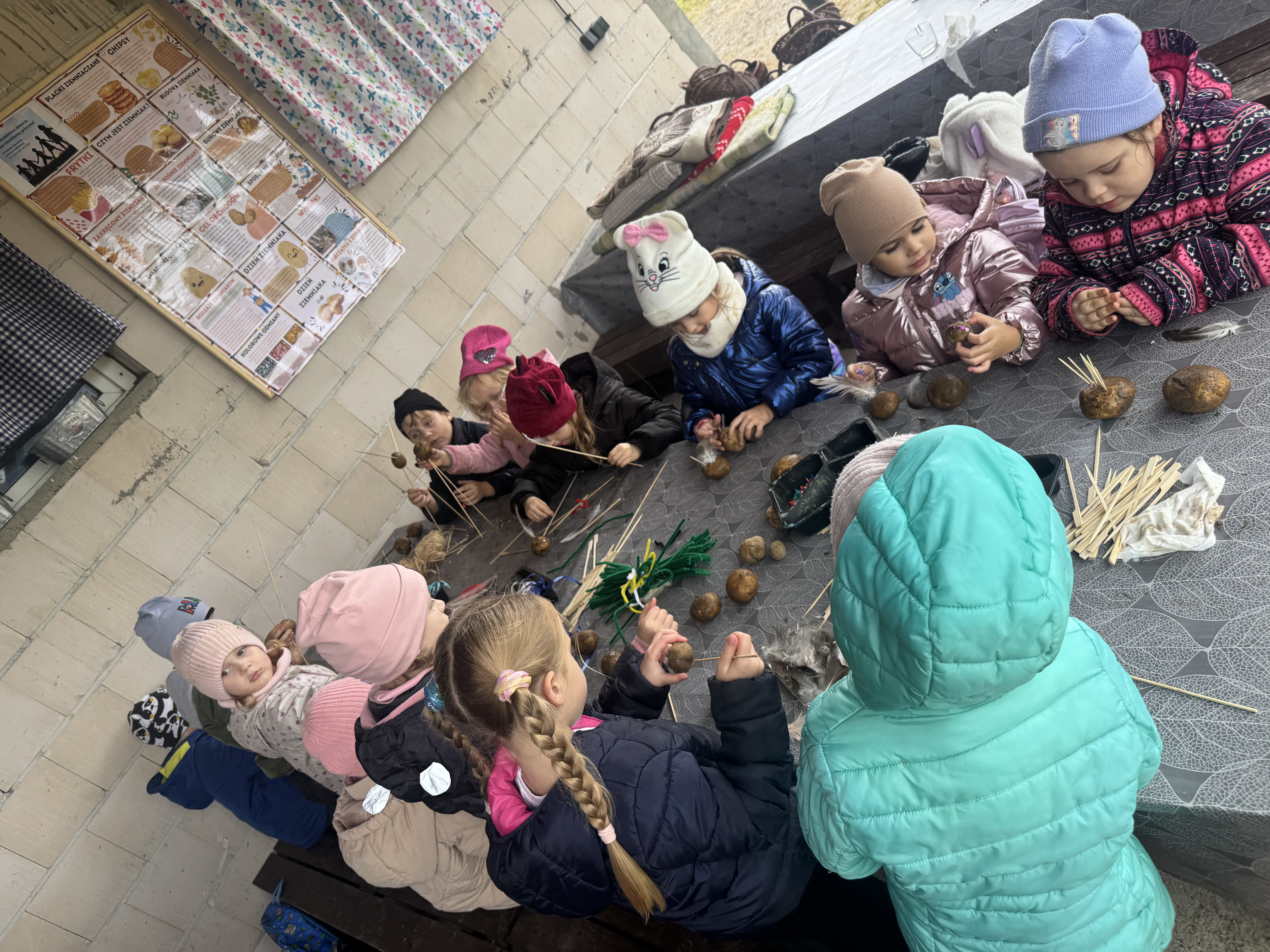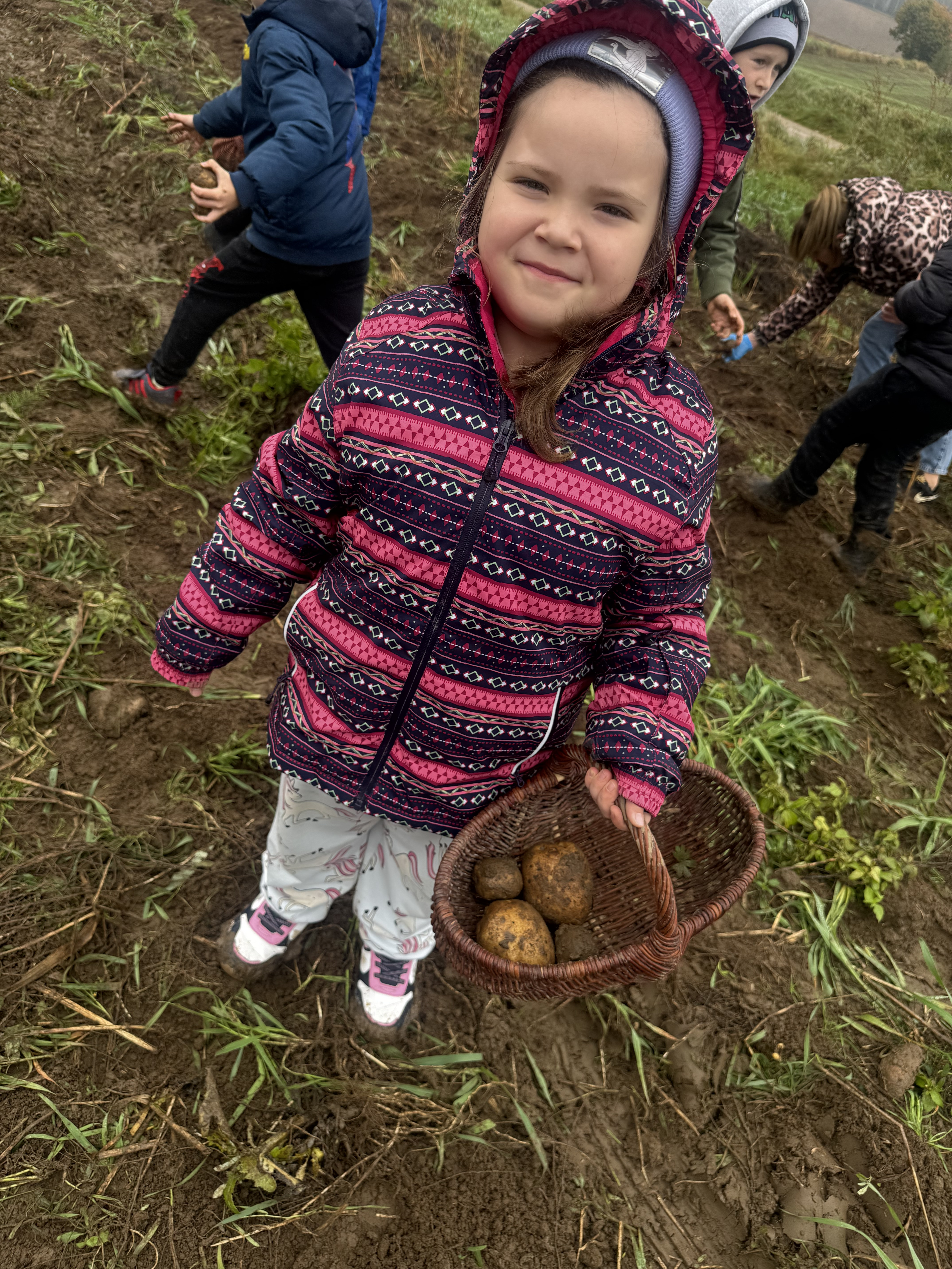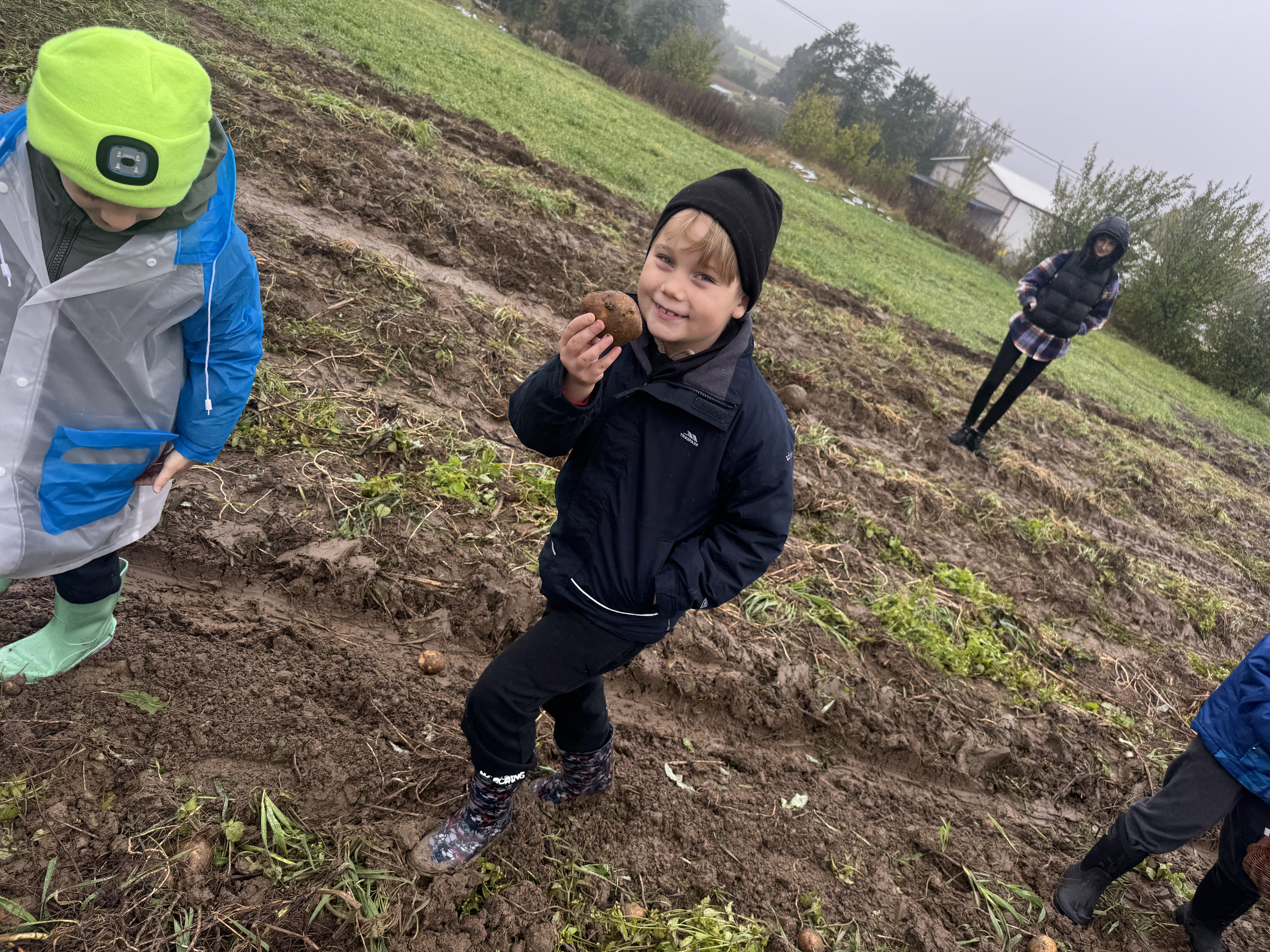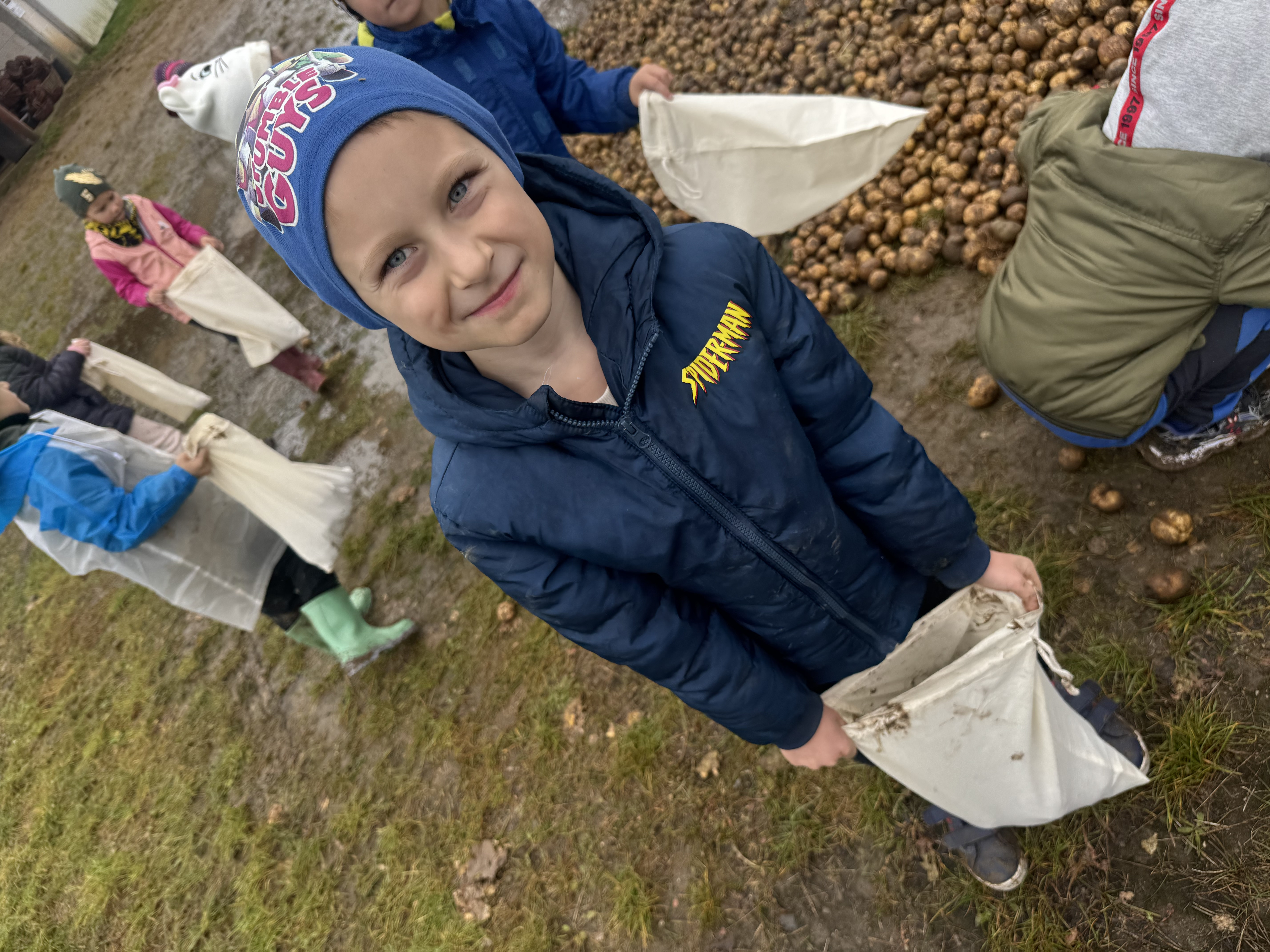 Z okazji Dnia Ziemniaka wybraliśmy się na niezwykle udaną wycieczkę do Lubstynka. Dzieci z entuzjazmem zbierały ziemniaki, a każdy uczestnik otrzymał własny woreczek ze zbiorami. Nie zabrakło też twórczej zabawy – powstały pomysłowe pacynki z ziemniaków. Na zakończenie wszyscy spotkali się przy ognisku, gdzie czekały pyszne, gorące kiełbaski. Pomimo zmiennej pogody – raz słońce, raz deszcz – przez cały dzień panowała radosna atmosfera i świetny humor.