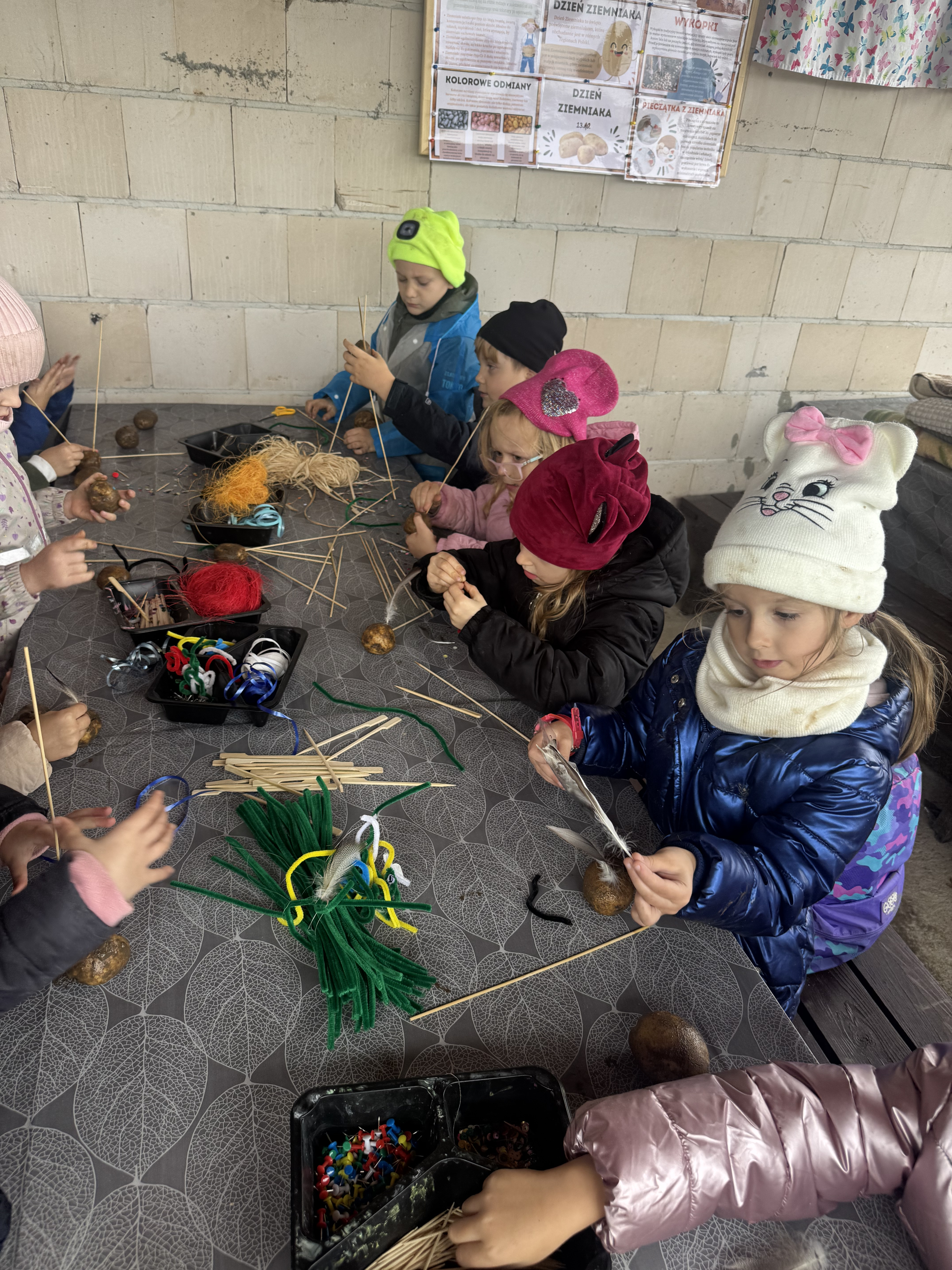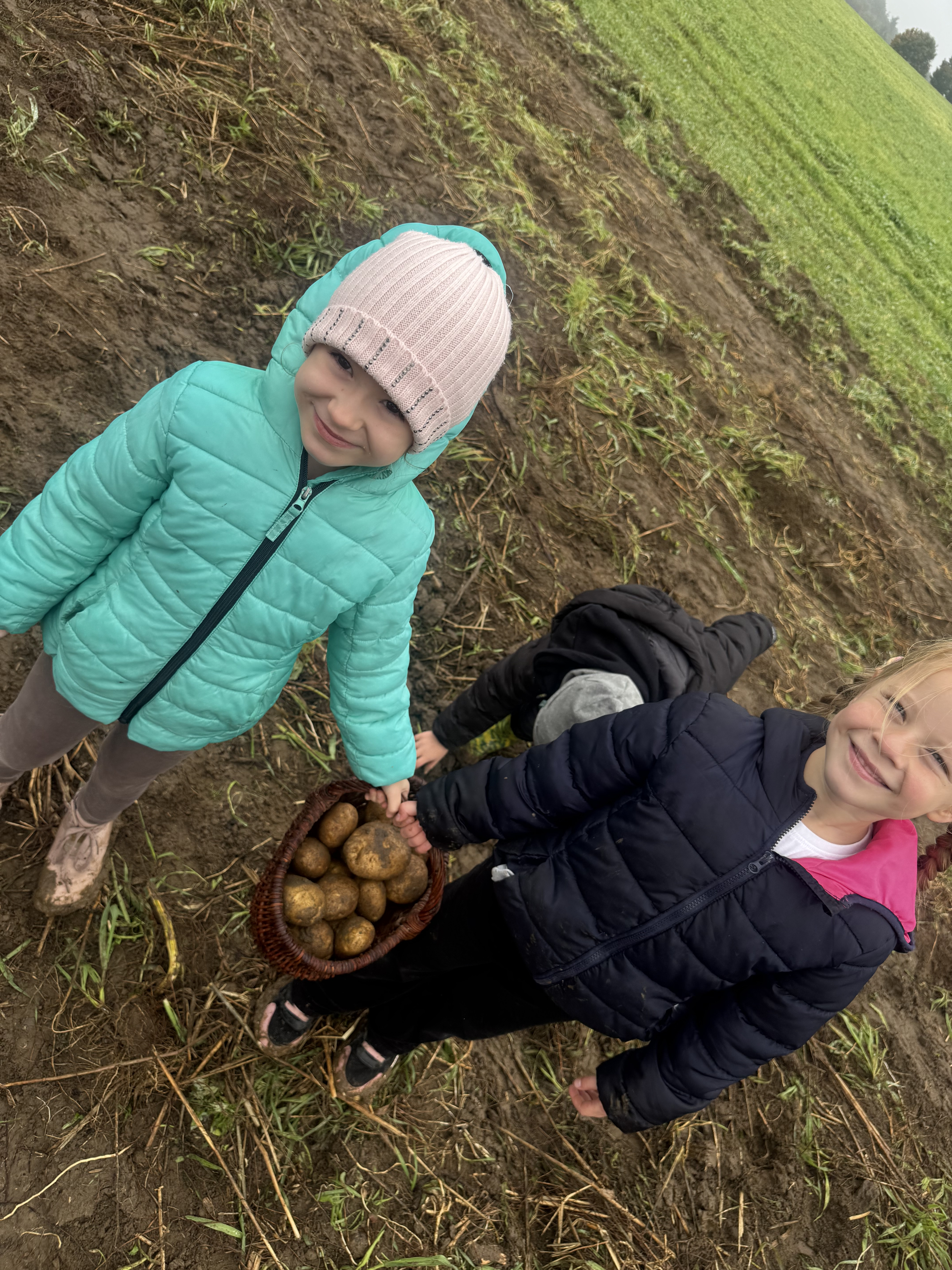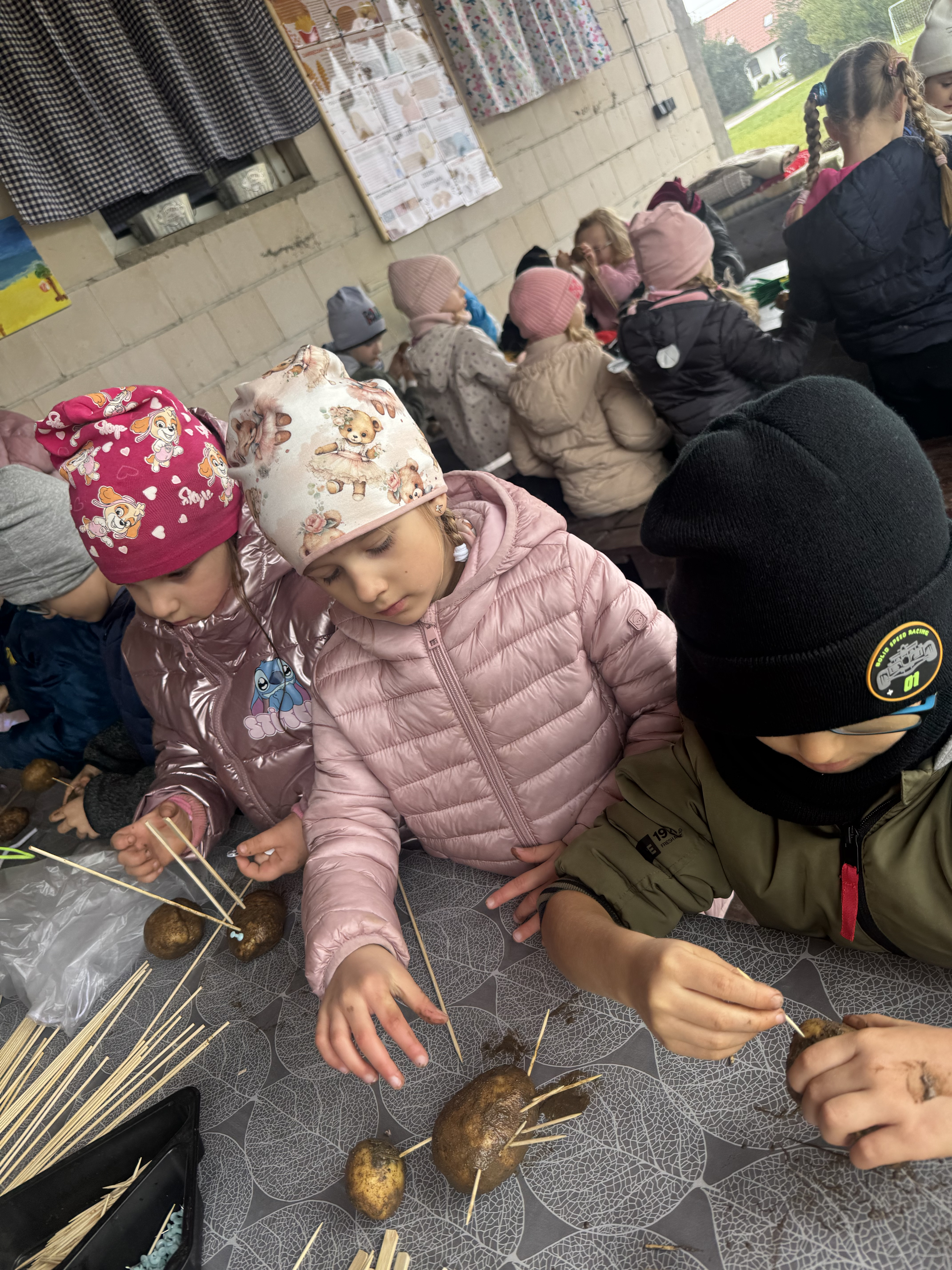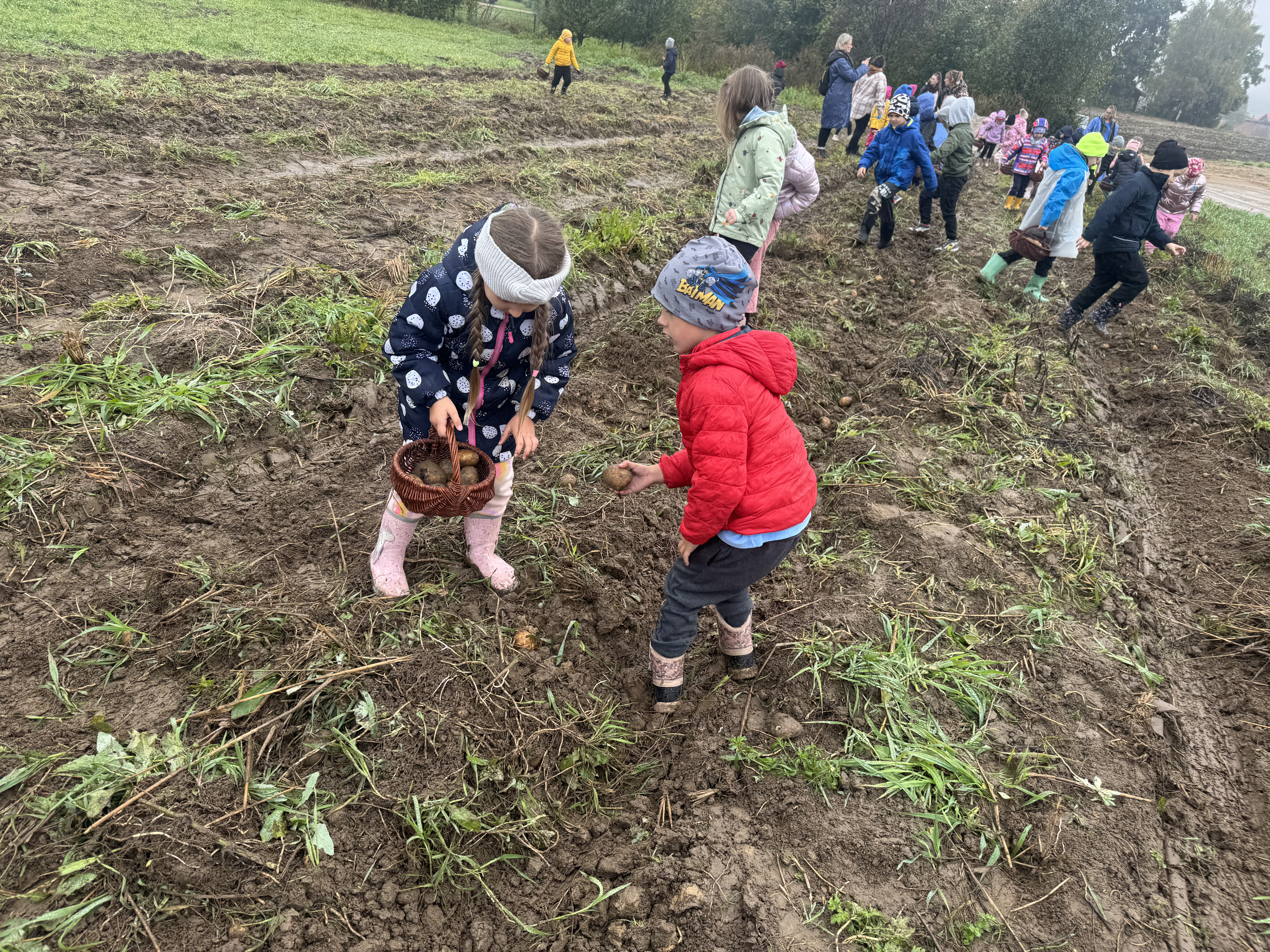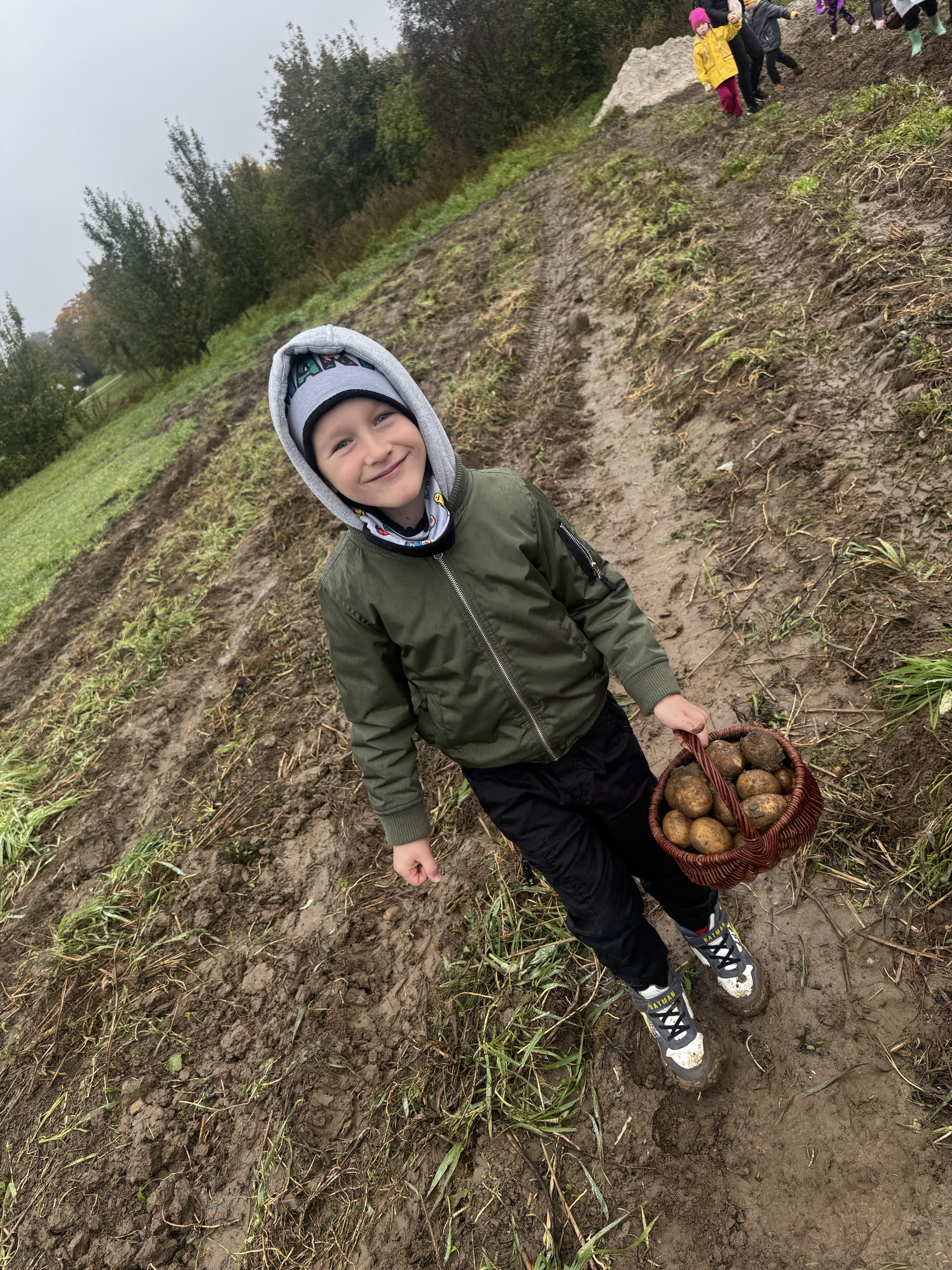 Z okazji Dnia Ziemniaka wybraliśmy się na niezwykle udaną wycieczkę do Lubstynka. Dzieci z entuzjazmem zbierały ziemniaki, a każdy uczestnik otrzymał własny woreczek ze zbiorami. Nie zabrakło też twórczej zabawy – powstały pomysłowe pacynki z ziemniaków. Na zakończenie wszyscy spotkali się przy ognisku, gdzie czekały pyszne, gorące kiełbaski. Pomimo zmiennej pogody – raz słońce, raz deszcz – przez cały dzień panowała radosna atmosfera i świetny humor.