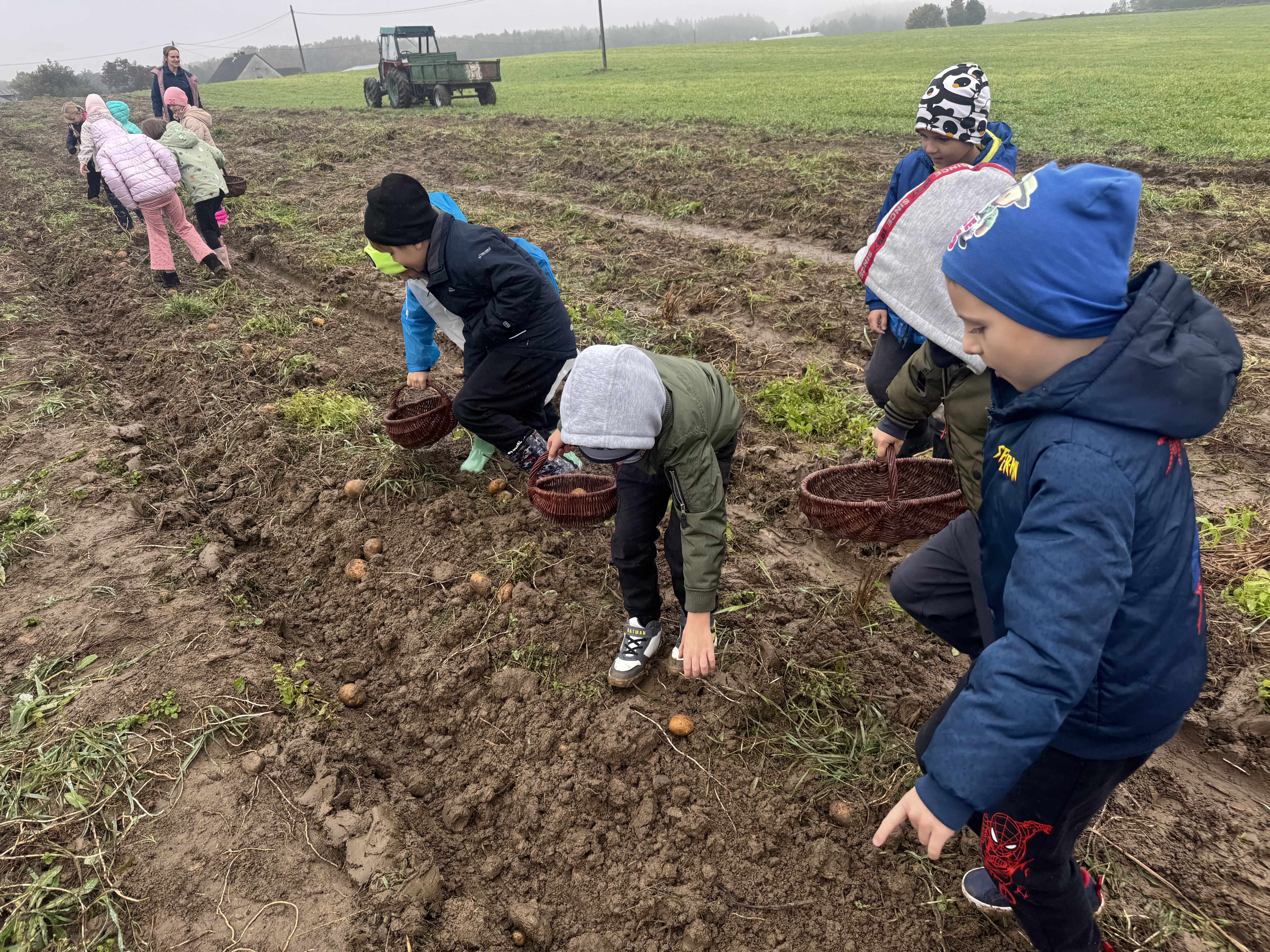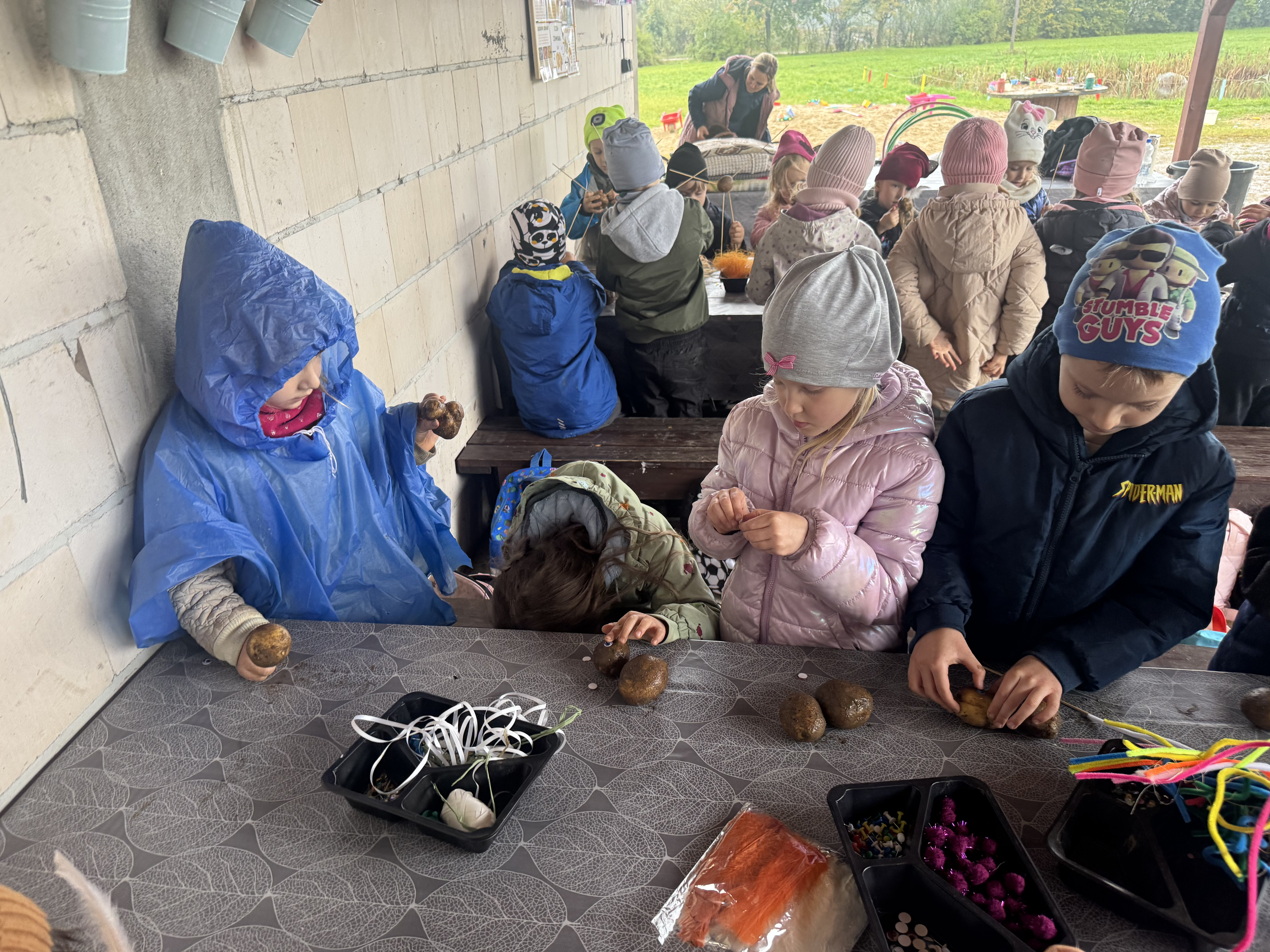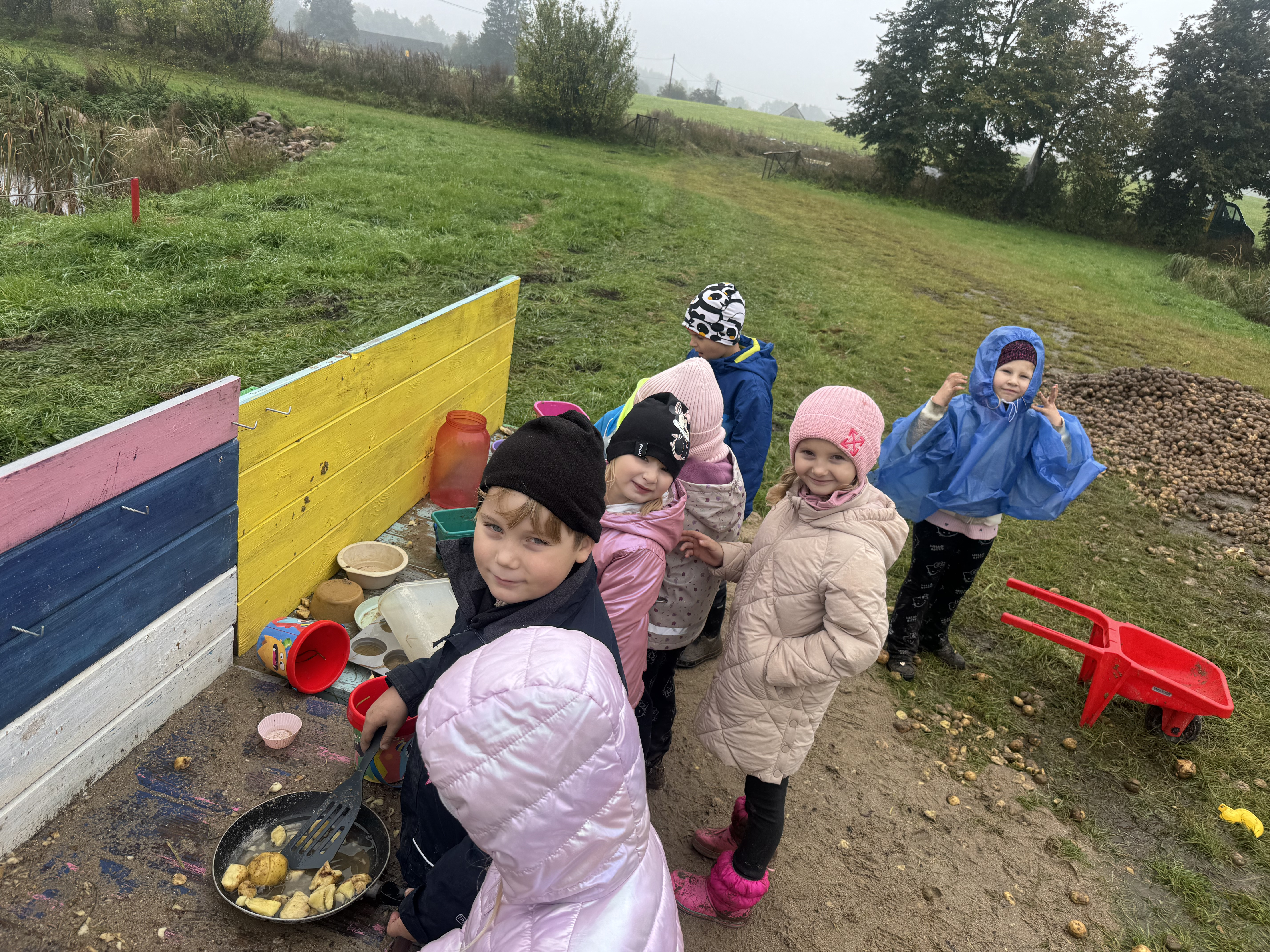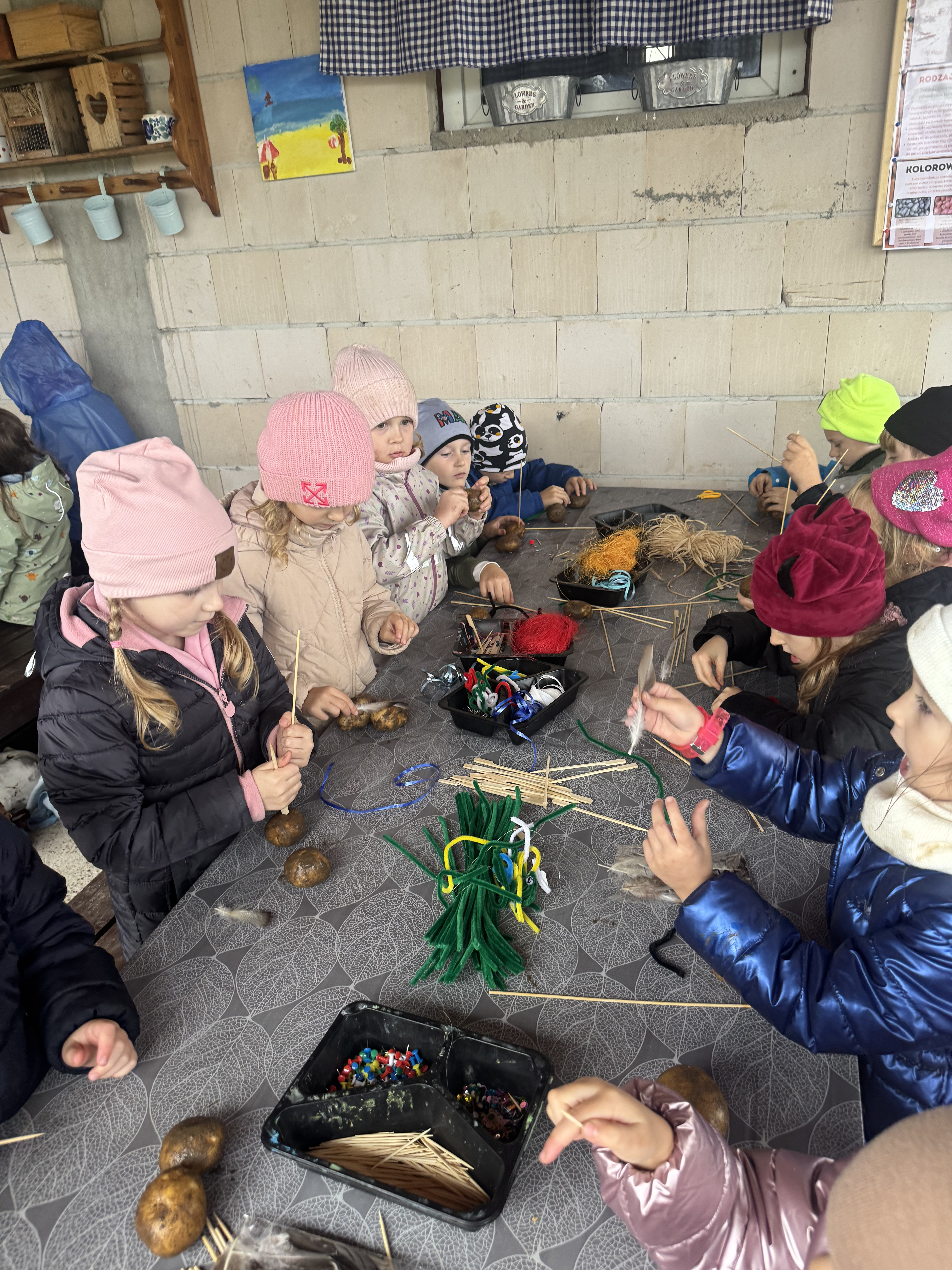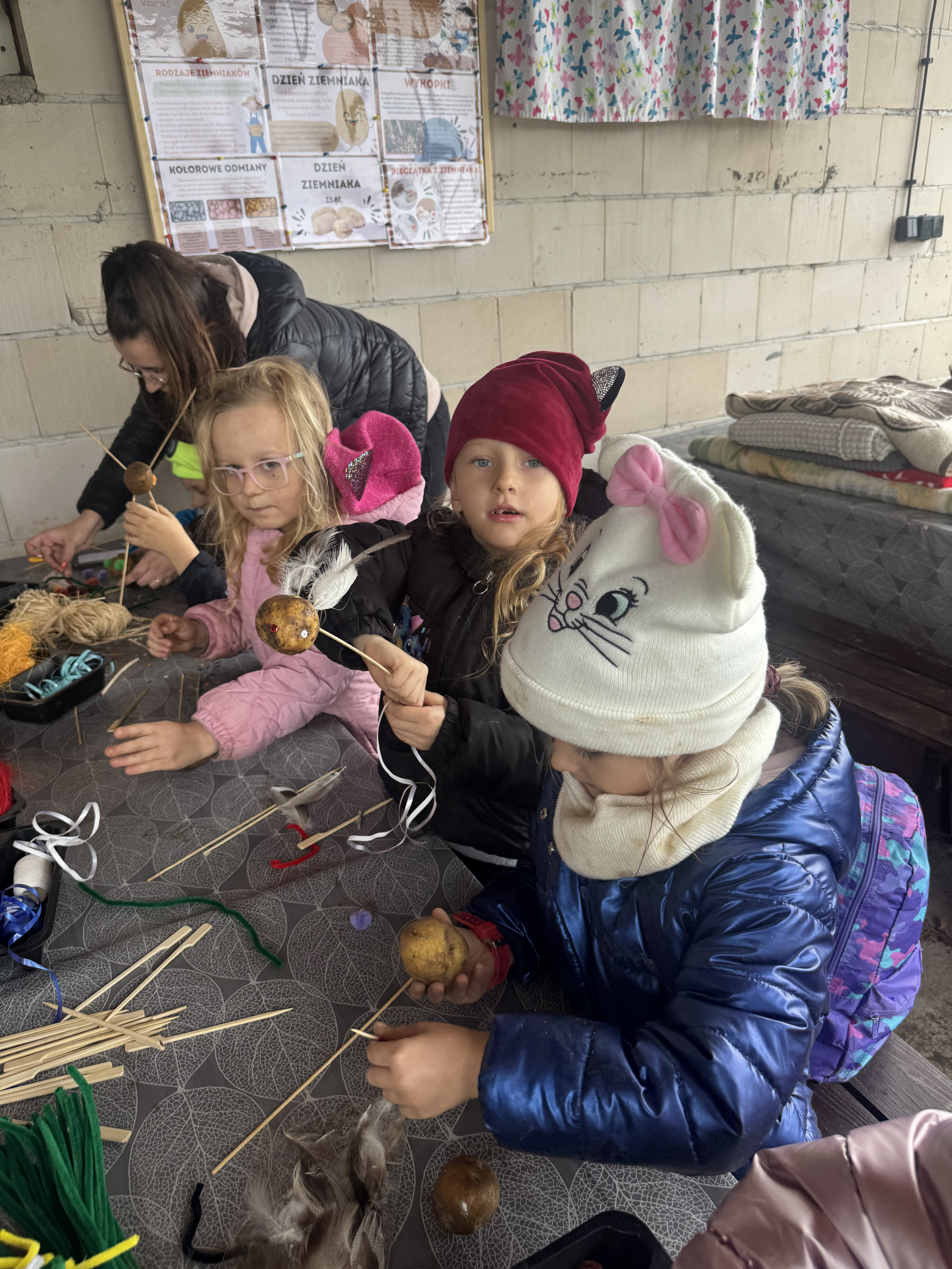 Z okazji Dnia Ziemniaka wybraliśmy się na niezwykle udaną wycieczkę do Lubstynka. Dzieci z entuzjazmem zbierały ziemniaki, a każdy uczestnik otrzymał własny woreczek ze zbiorami. Nie zabrakło też twórczej zabawy – powstały pomysłowe pacynki z ziemniaków. Na zakończenie wszyscy spotkali się przy ognisku, gdzie czekały pyszne, gorące kiełbaski. Pomimo zmiennej pogody – raz słońce, raz deszcz – przez cały dzień panowała radosna atmosfera i świetny humor.