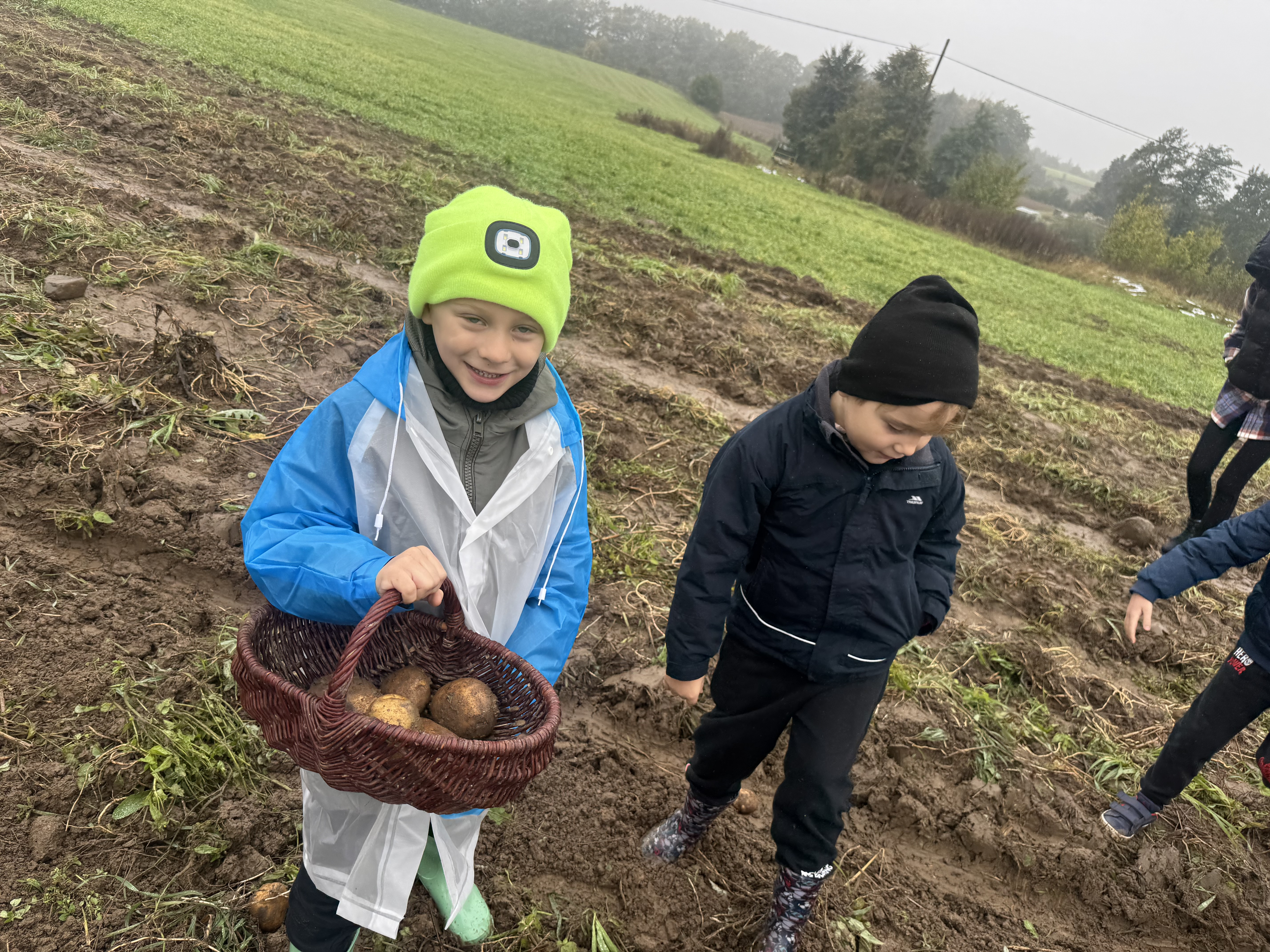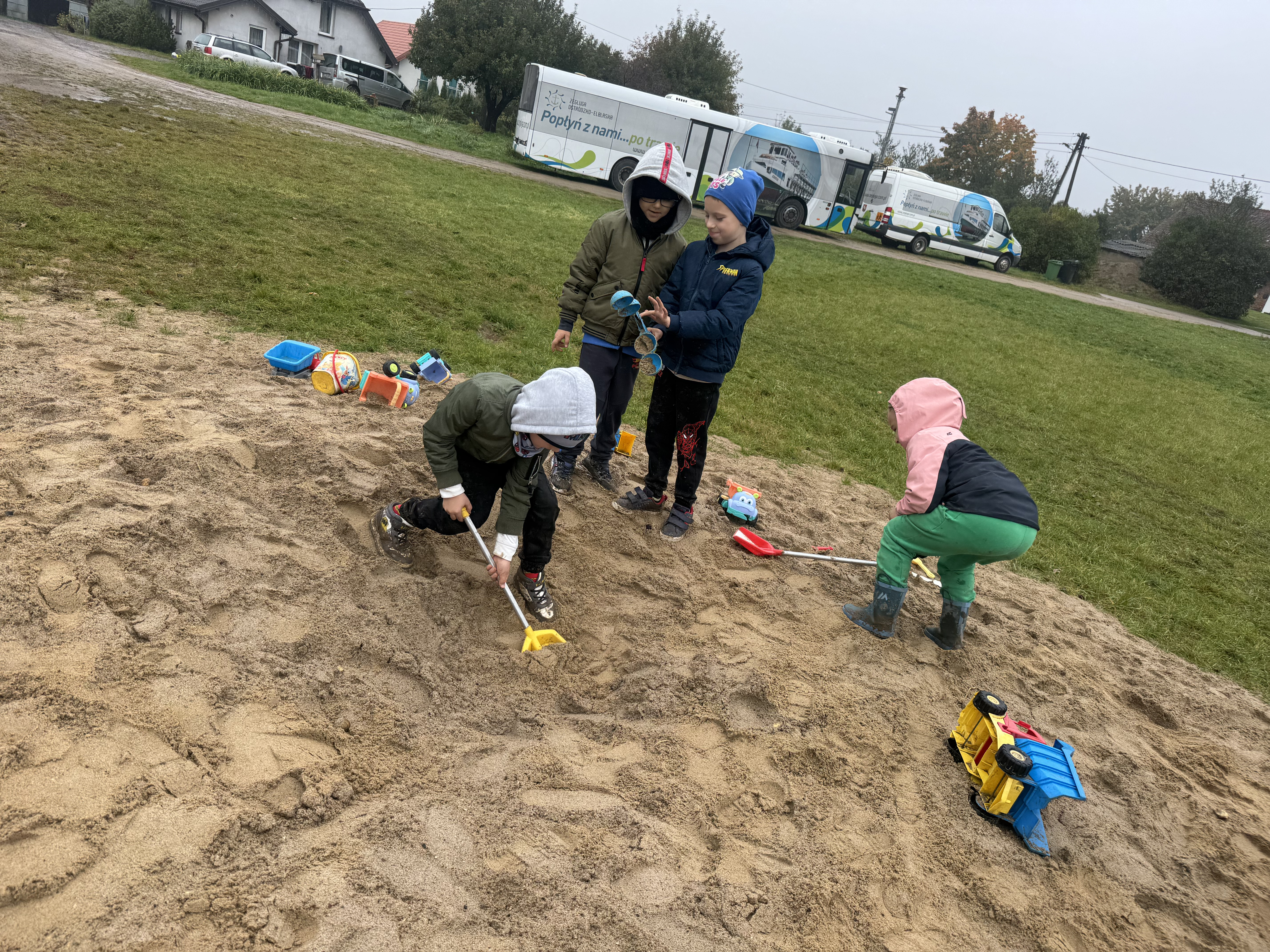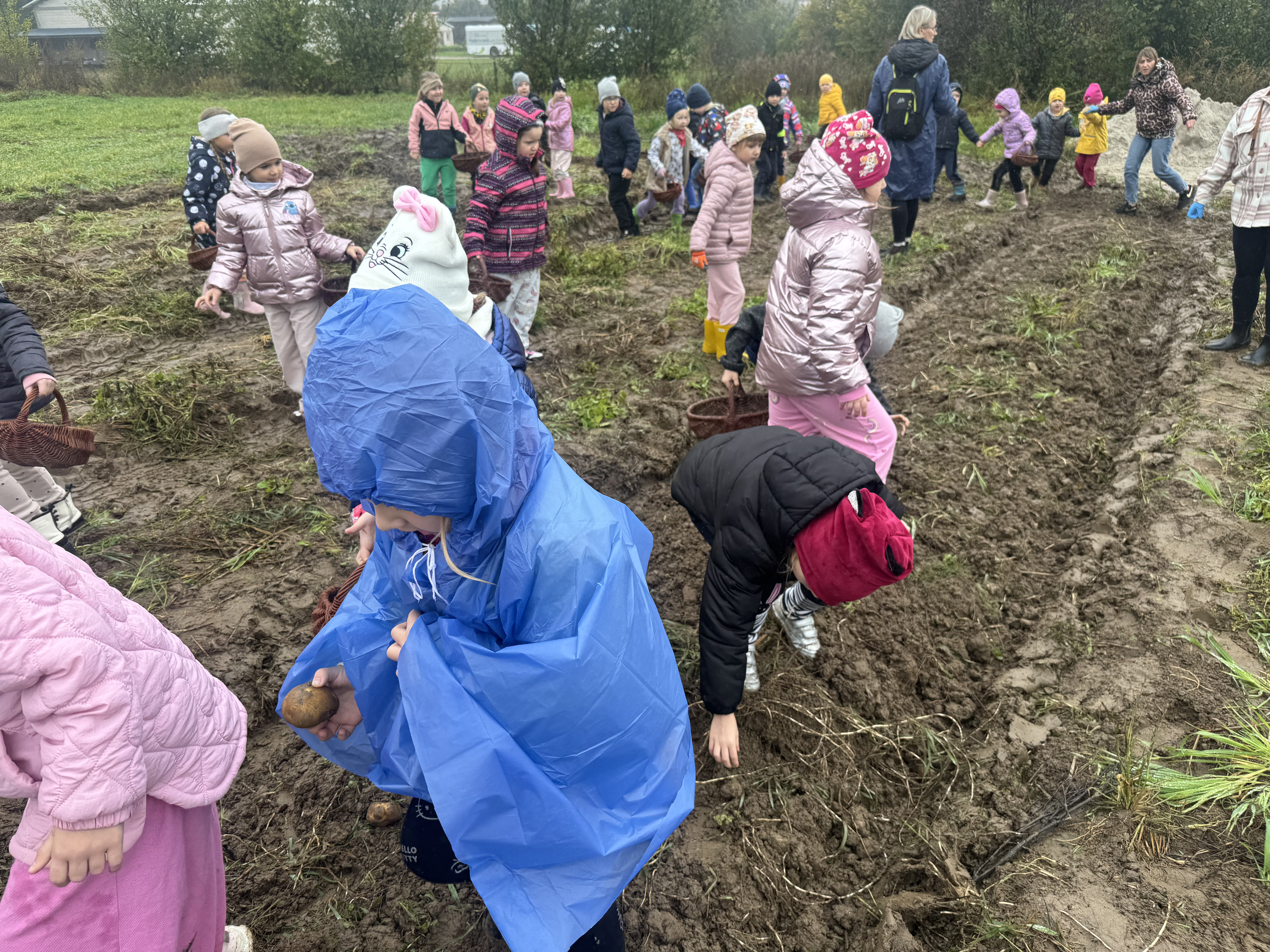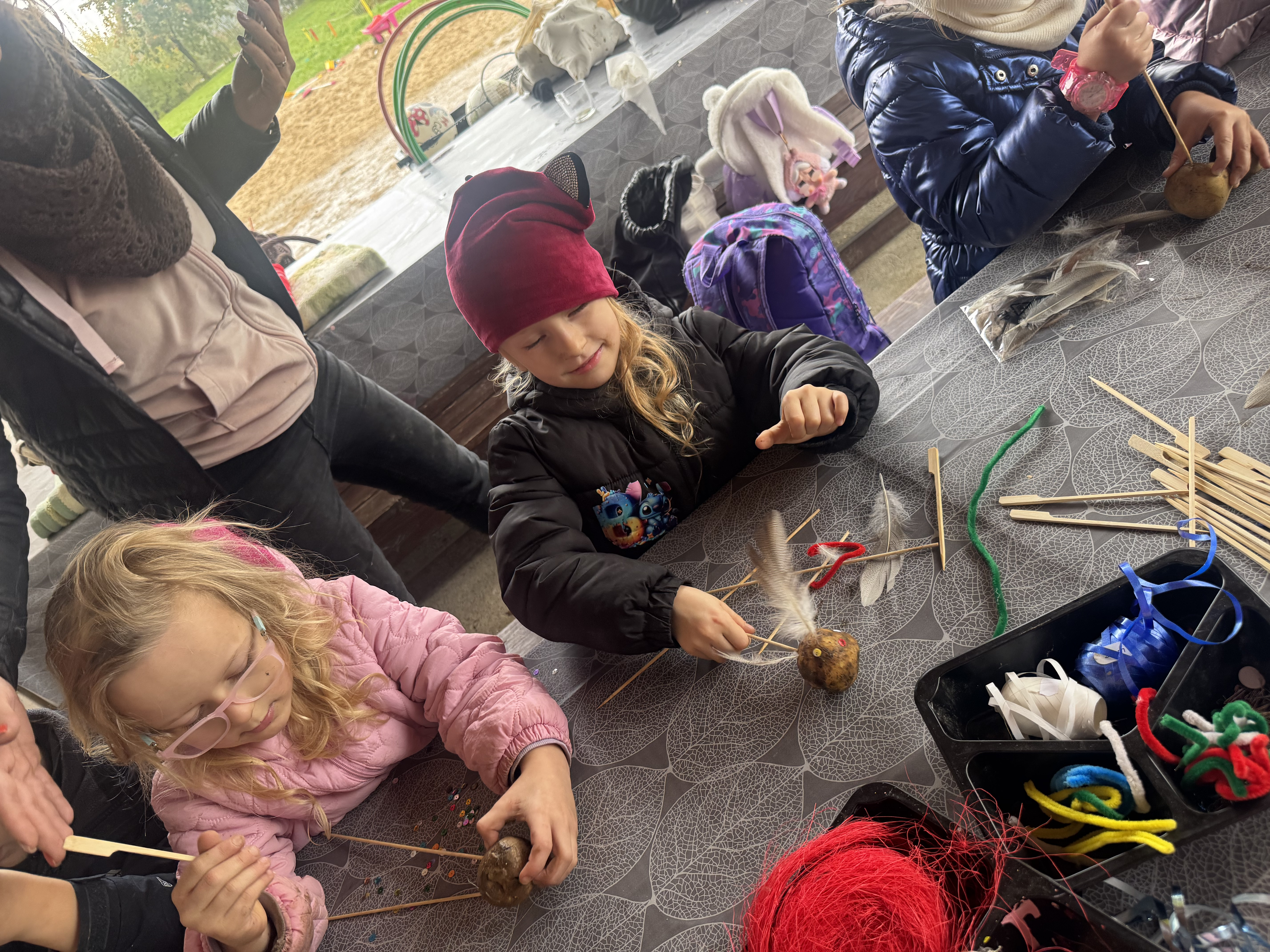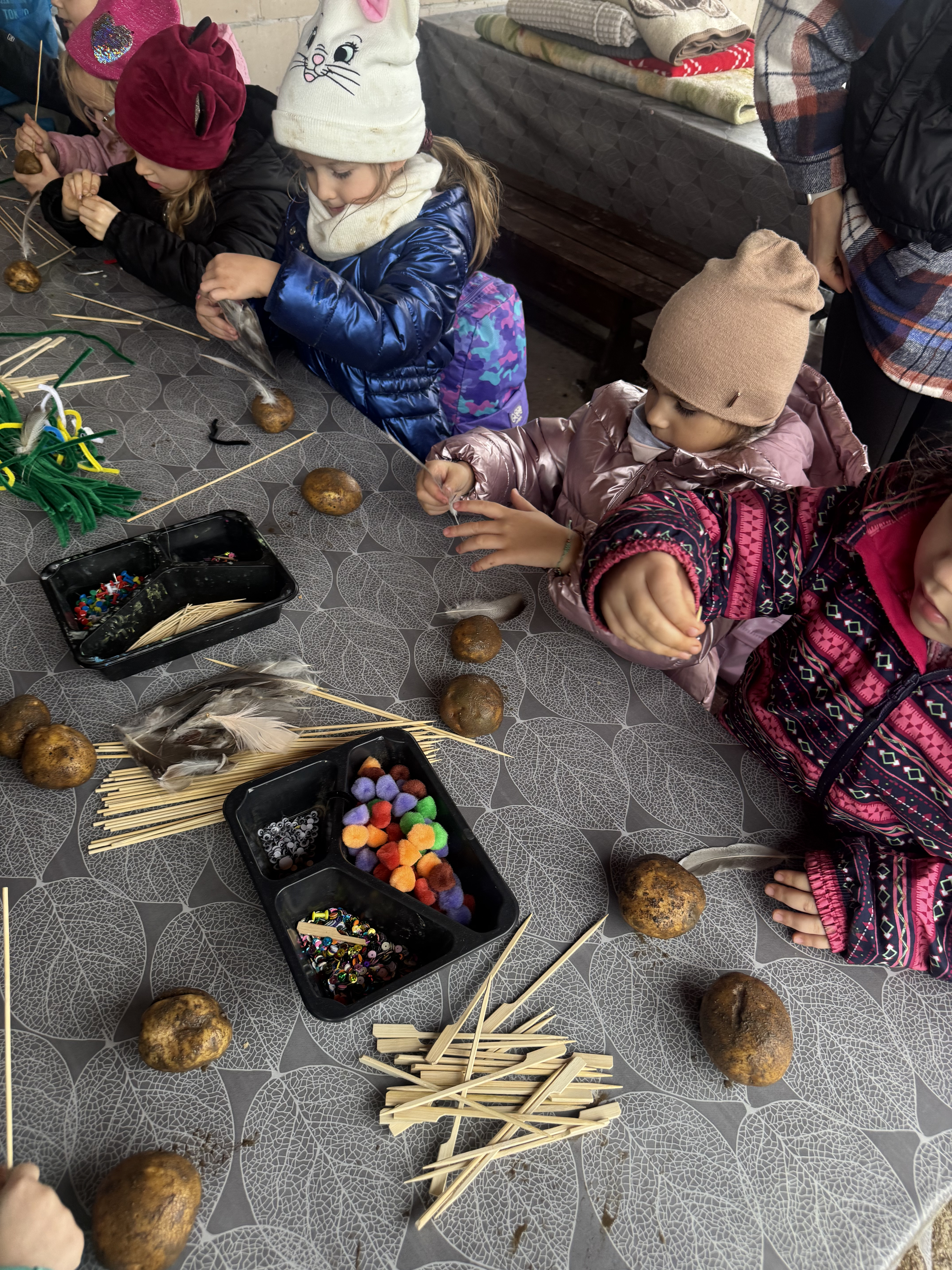 Z okazji Dnia Ziemniaka wybraliśmy się na niezwykle udaną wycieczkę do Lubstynka. Dzieci z entuzjazmem zbierały ziemniaki, a każdy uczestnik otrzymał własny woreczek ze zbiorami. Nie zabrakło też twórczej zabawy – powstały pomysłowe pacynki z ziemniaków. Na zakończenie wszyscy spotkali się przy ognisku, gdzie czekały pyszne, gorące kiełbaski. Pomimo zmiennej pogody – raz słońce, raz deszcz – przez cały dzień panowała radosna atmosfera i świetny humor.