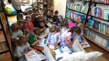 W dniu 24.05.2025 r. Ekoludki uczestniczyły w spotkaniu w bibliotece szkolnej. Pani bibliotekarka opowiedziała dzieciom bajkę o ,,Panu Maluśkiewiczu i Wielorybie" na podstawie utworu J. Tuwima. Ekoludki dowidziały się ,co można robić w bibliotece oraz jak należy się w niej zachować. Z zainteresowaniem oglądały książki i rozwiązywały zagadki dotyczące bohaterów ze znanych bajek. Na zakończenie Pani Bogusia wręczyła przedszkolakom małe upominki.